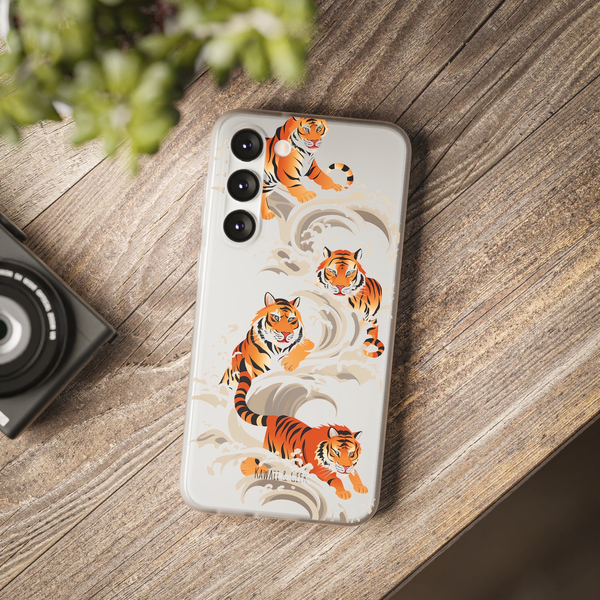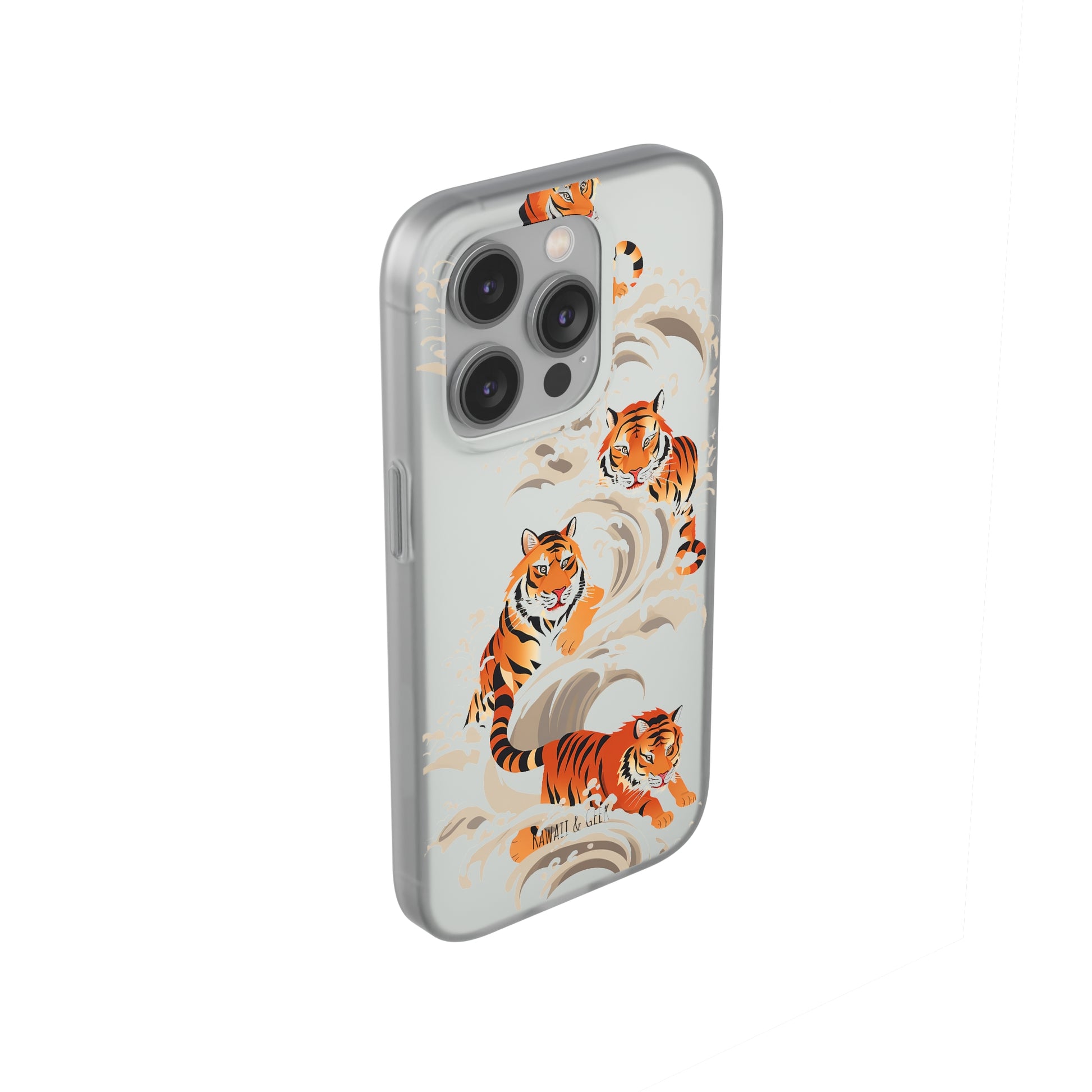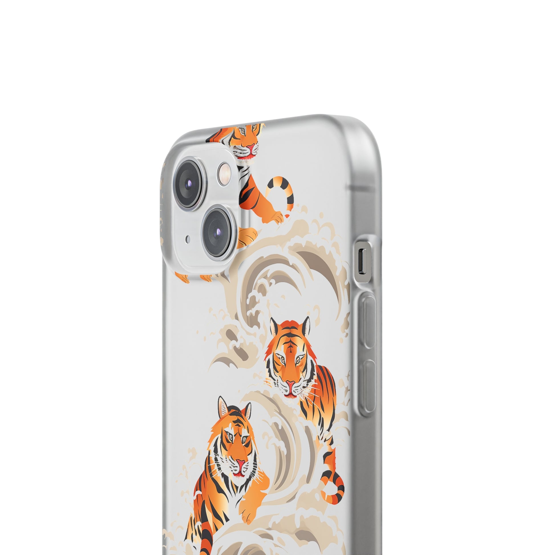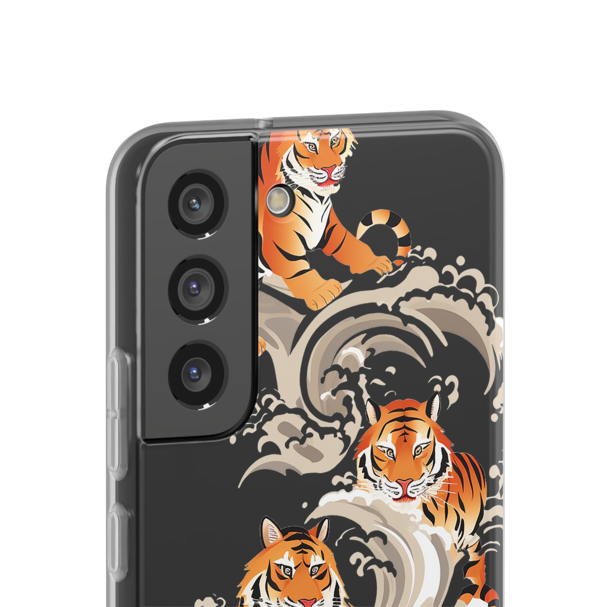 Keywords : Chinese ink, Majestic tiger, Traditional art, Flexi case, Phone protection, Elegant design, Unique artistry, Fluid strokes, Bold aesthetics, Delicate balance, Transparent case, Cultural blend, Contemporary style.