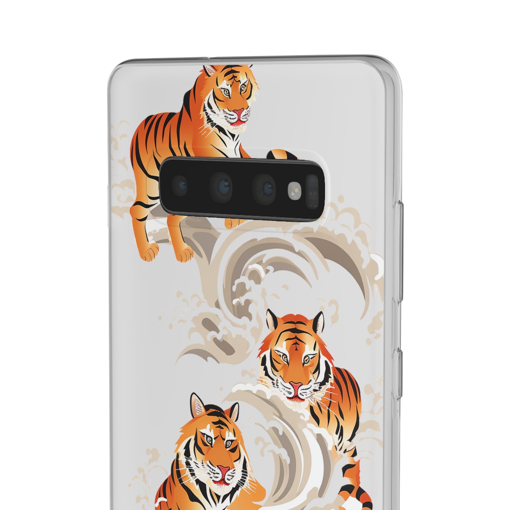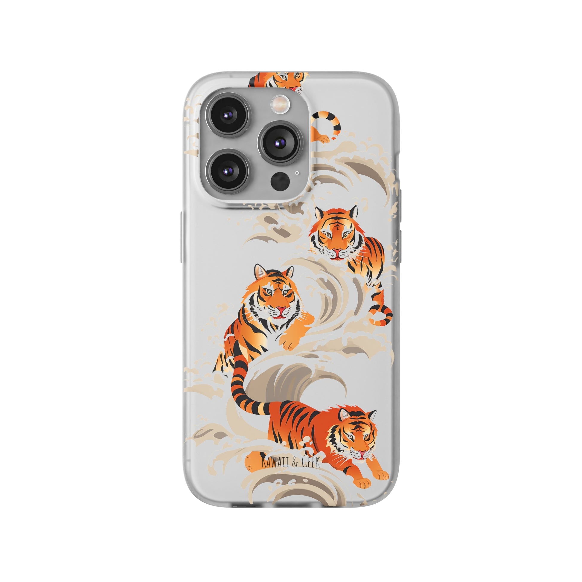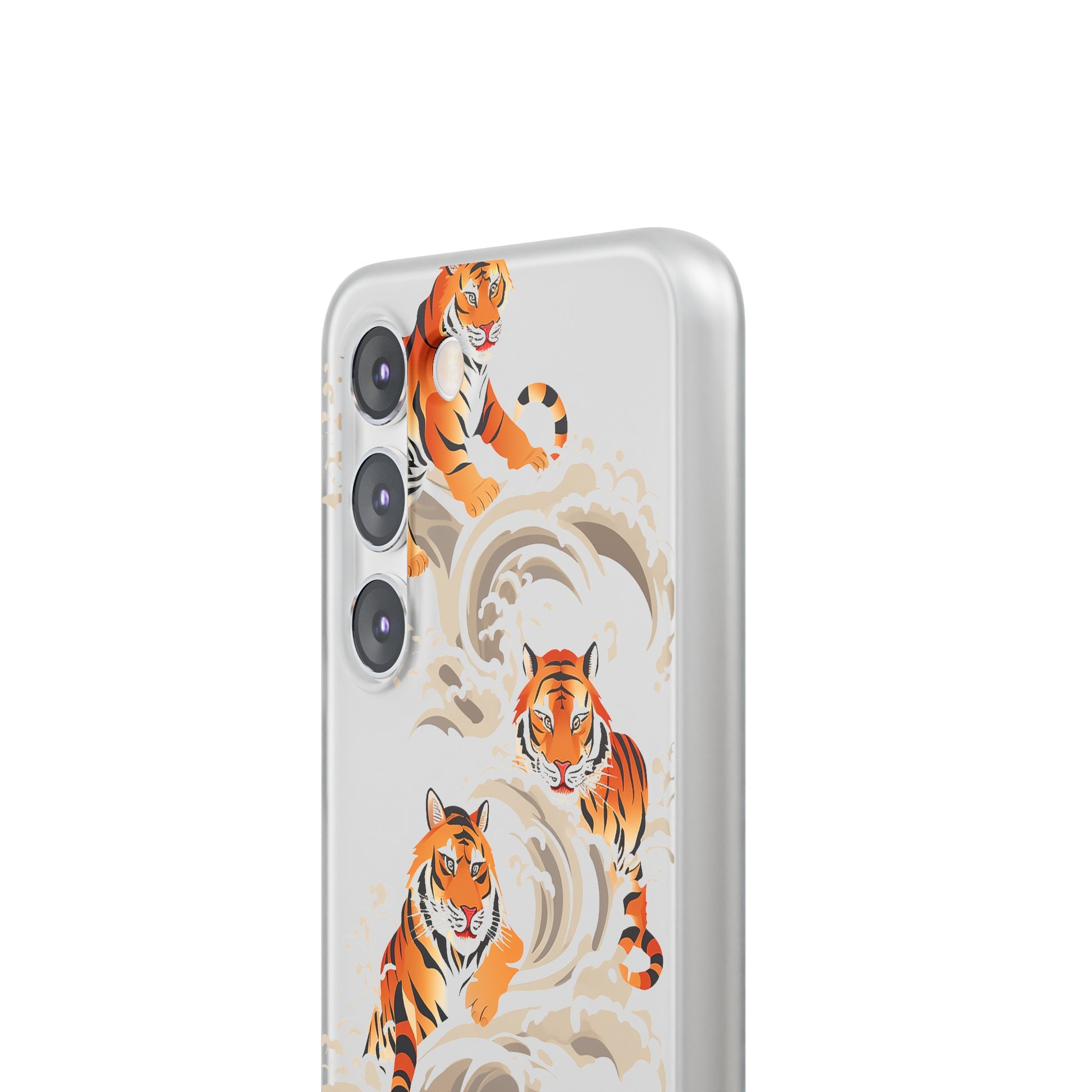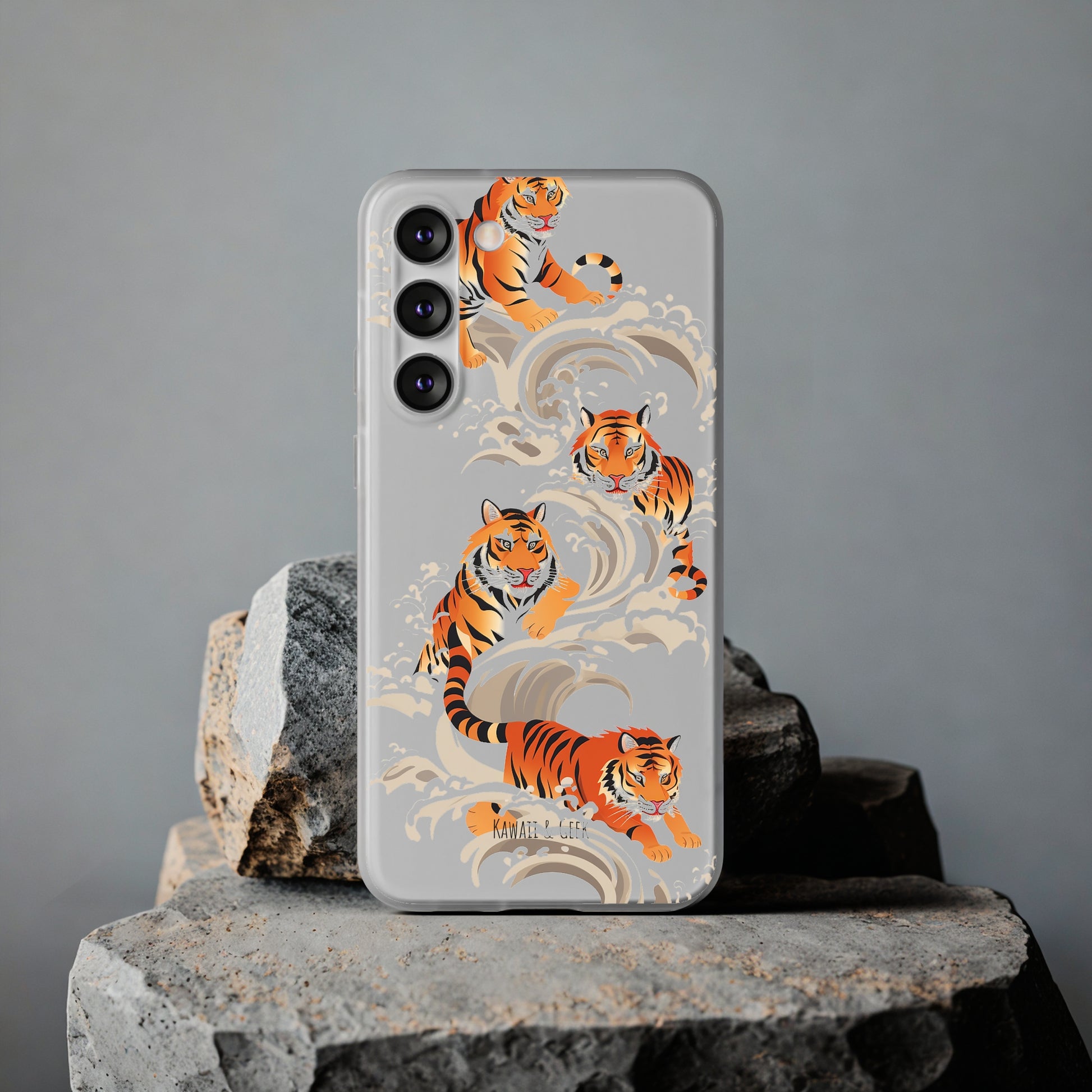 Keywords : Chinese ink, Majestic tiger, Traditional art, Flexi case, Phone protection, Elegant design, Unique artistry, Fluid strokes, Bold aesthetics, Delicate balance, Transparent case, Cultural blend, Contemporary style.