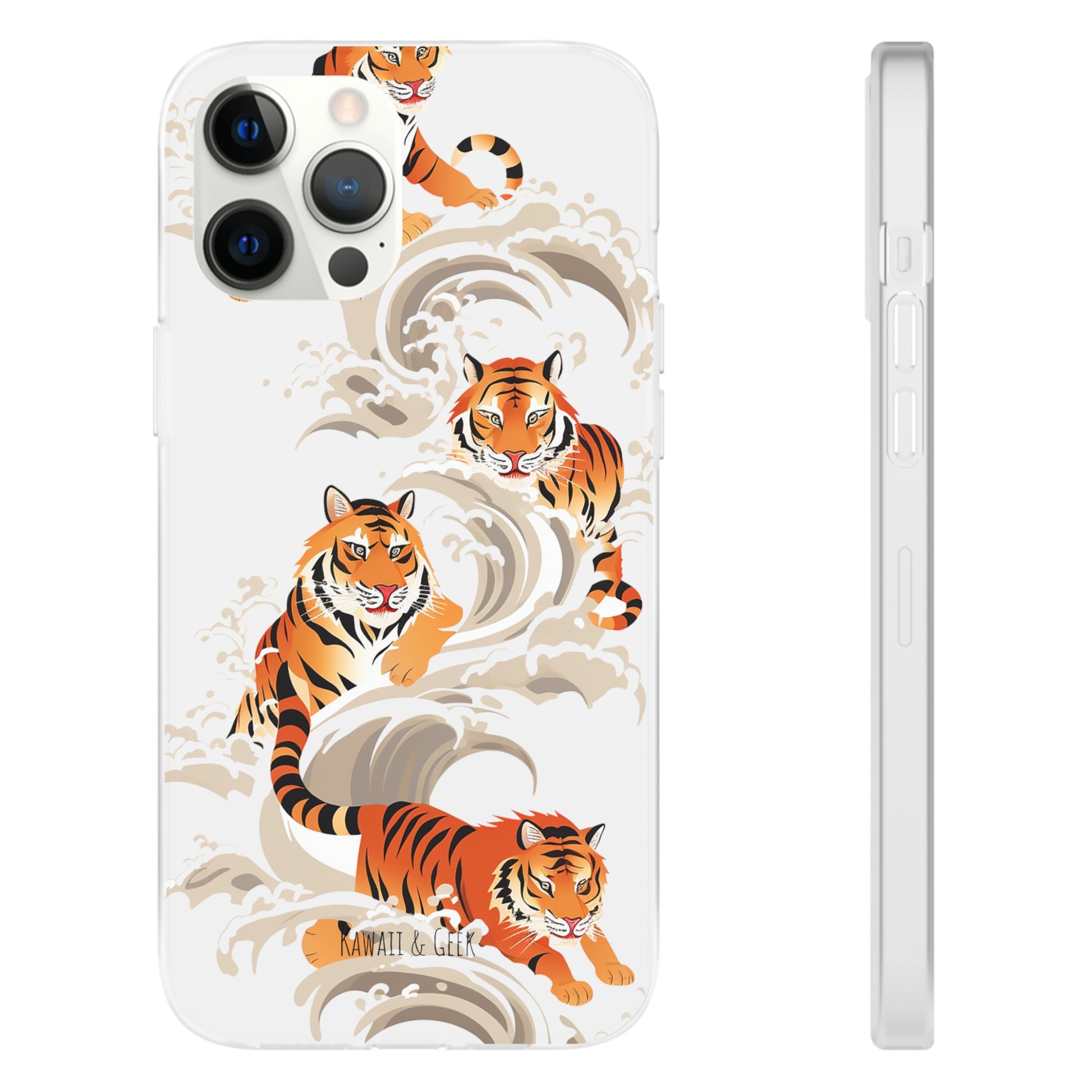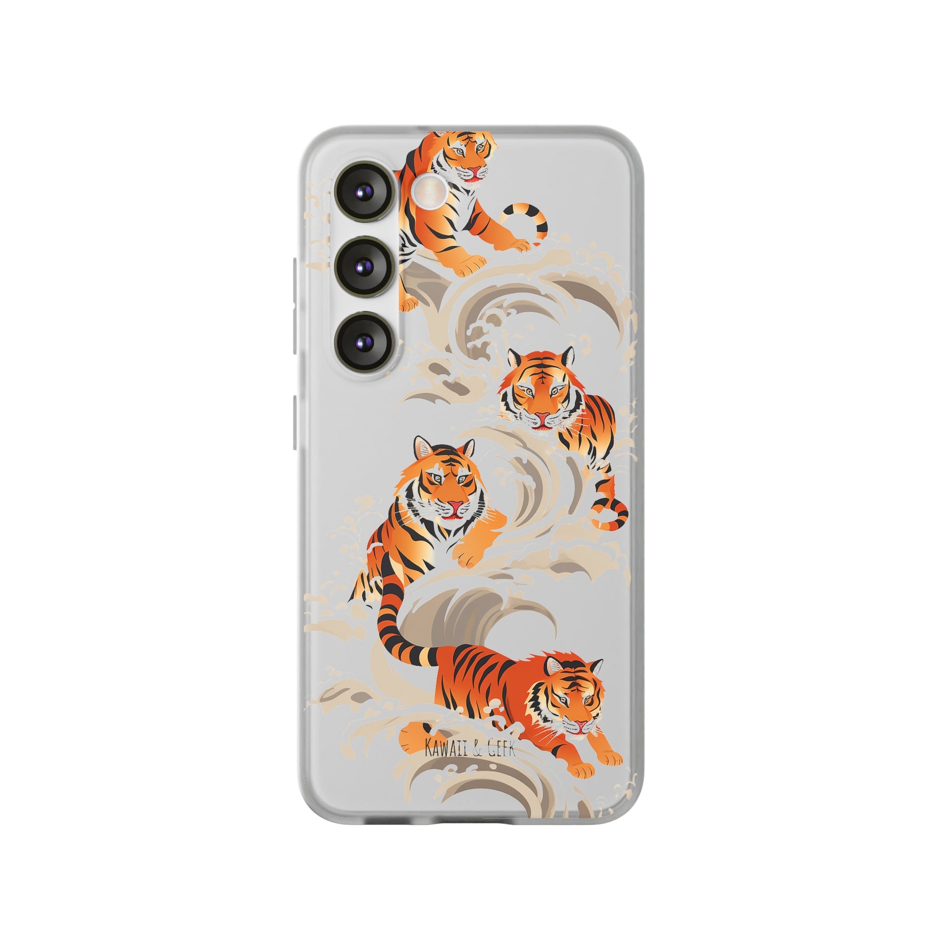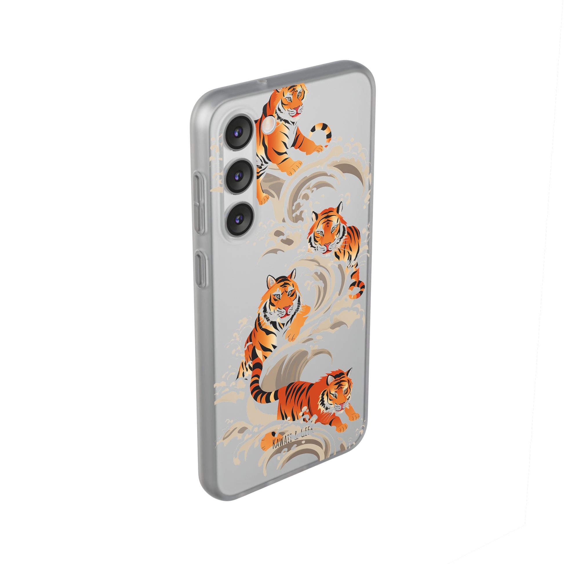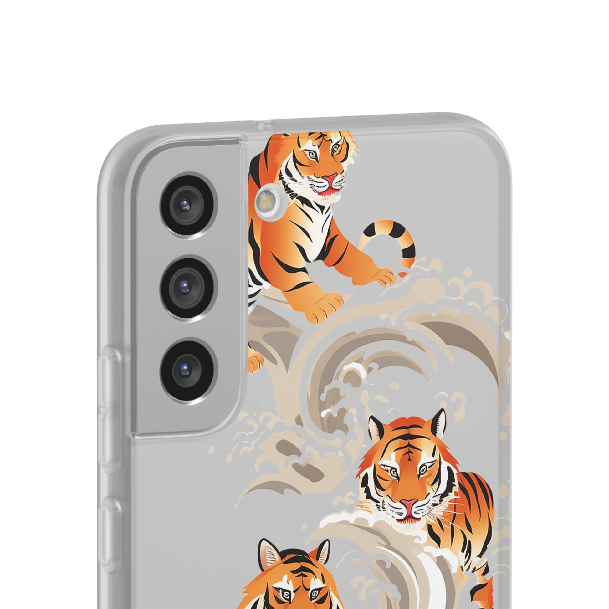 Keywords : Chinese ink, Majestic tiger, Traditional art, Flexi case, Phone protection, Elegant design, Unique artistry, Fluid strokes, Bold aesthetics, Delicate balance, Transparent case, Cultural blend, Contemporary style.