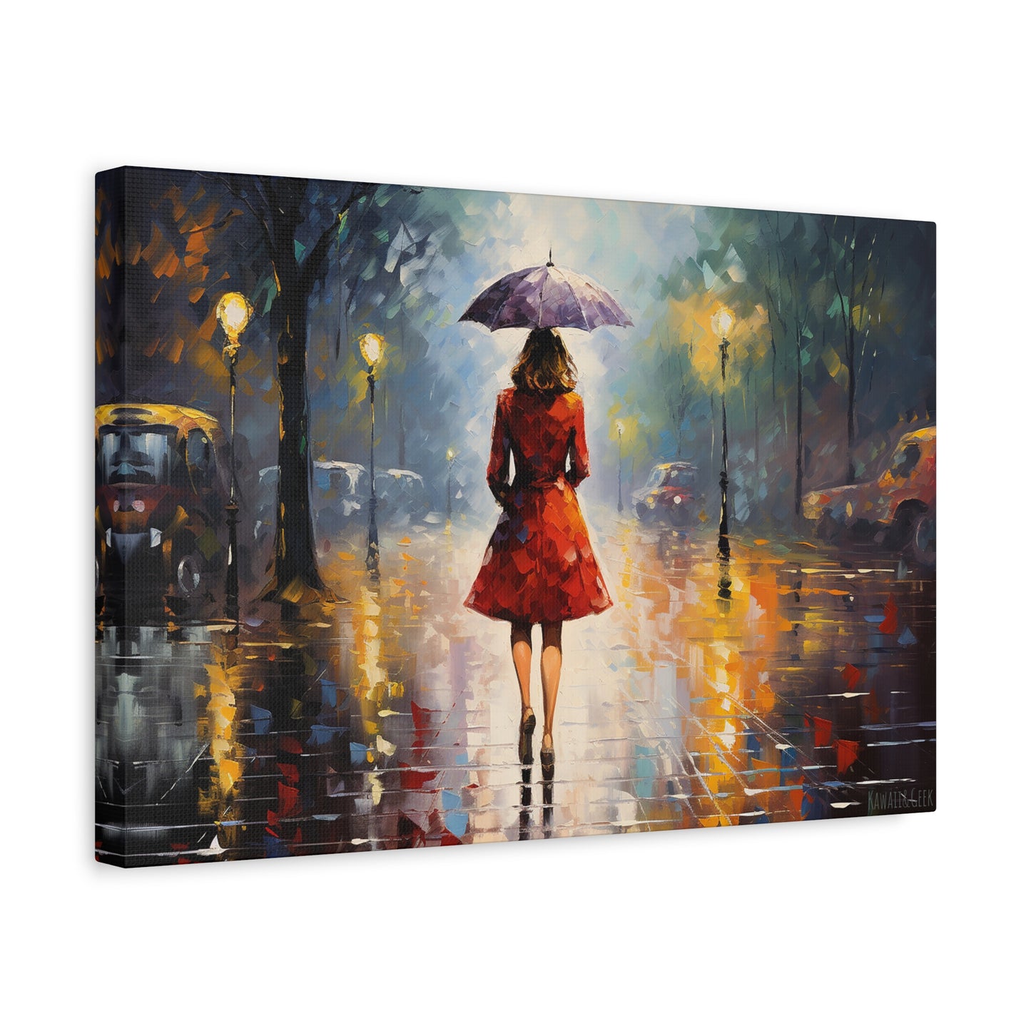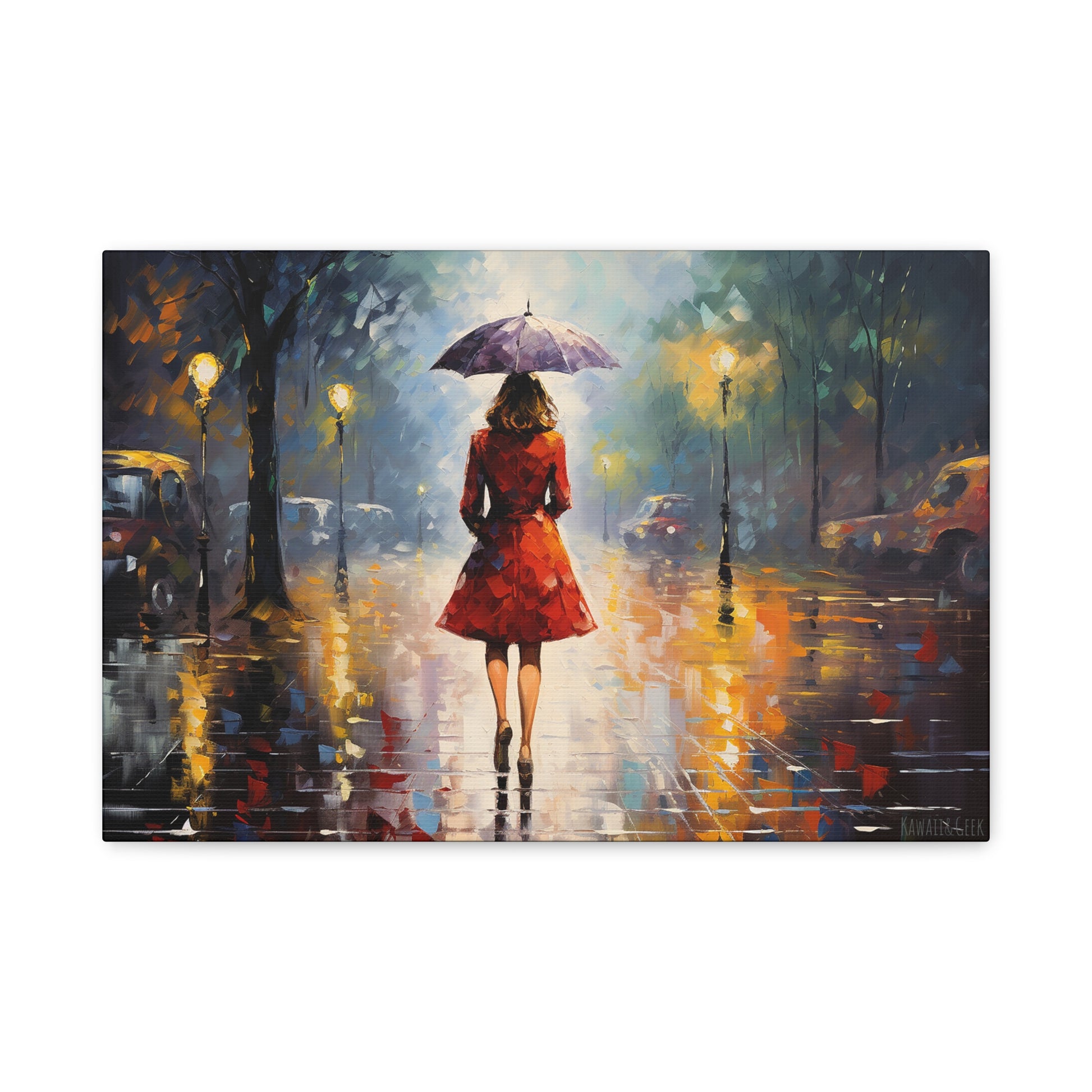 Elegant Woman in Parisian Rain: Premium Cotton Canvas Art