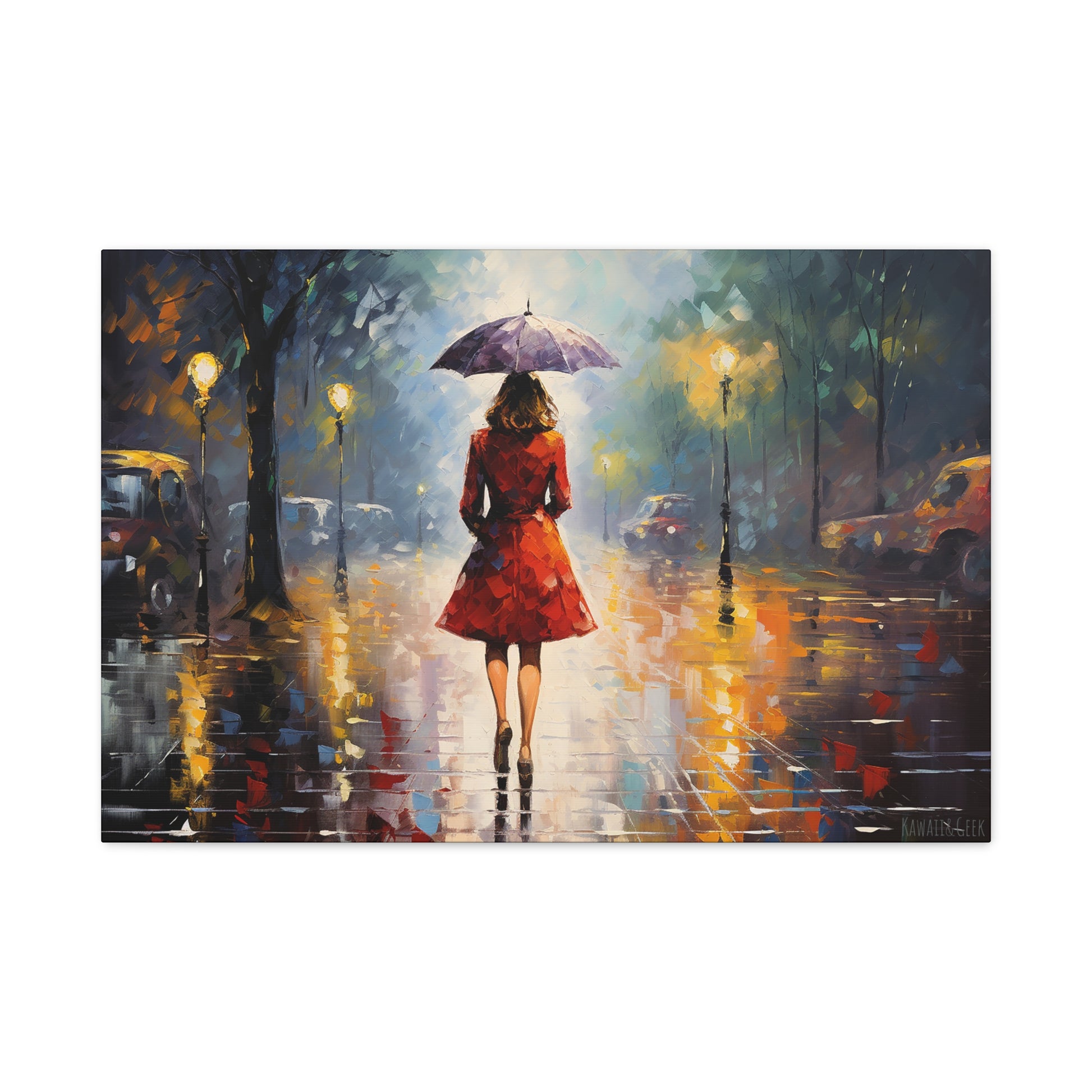 Keywords**: Parisian elegance art, Rainy Paris canva, Woman under umbrella, City of love painting, French charm decor, Rainy day canvas, Chic Parisian style, Elegant wall art, Classic French decor, Romantic room addition, Urban Paris scene, Stylish woman art, Sophisticated decor piece.