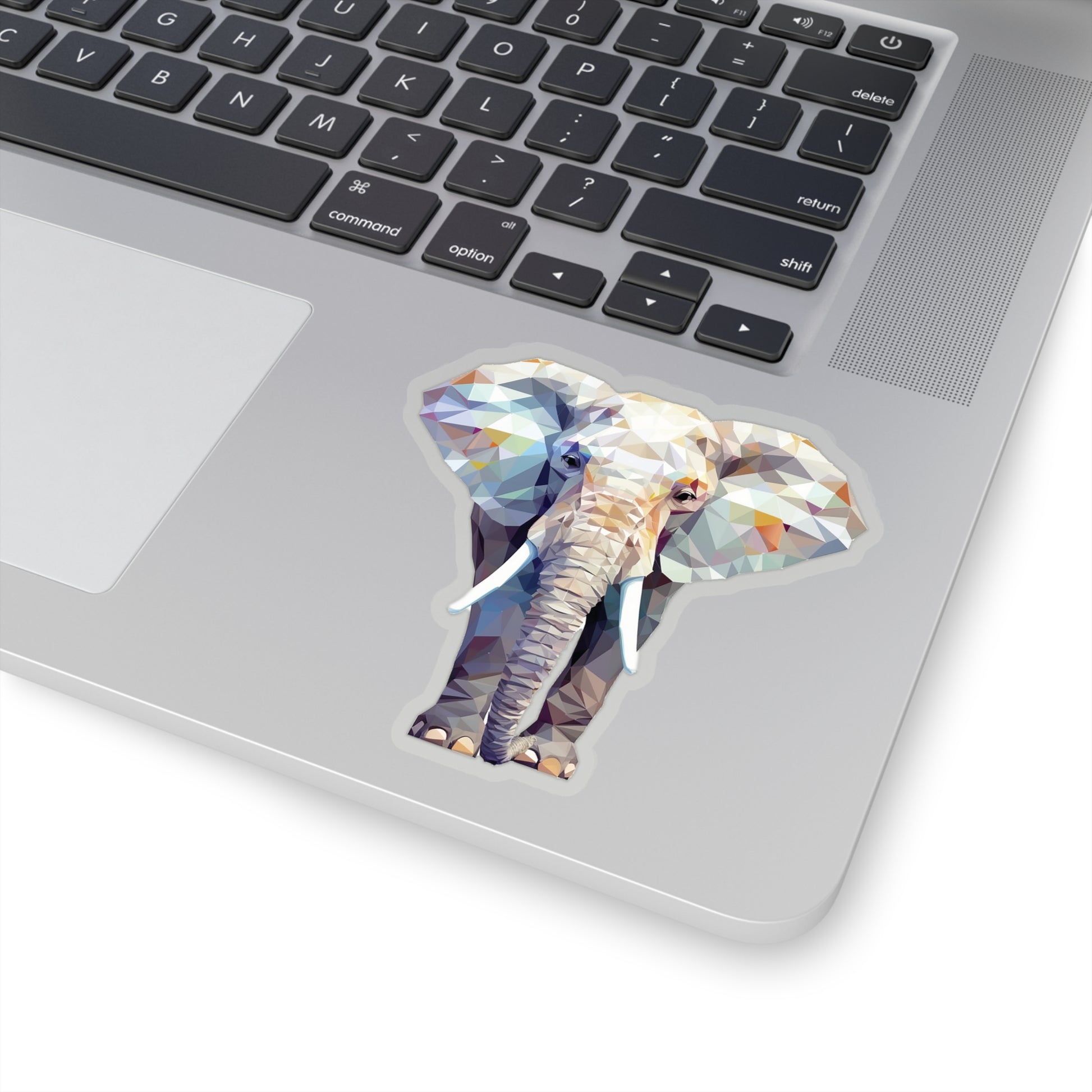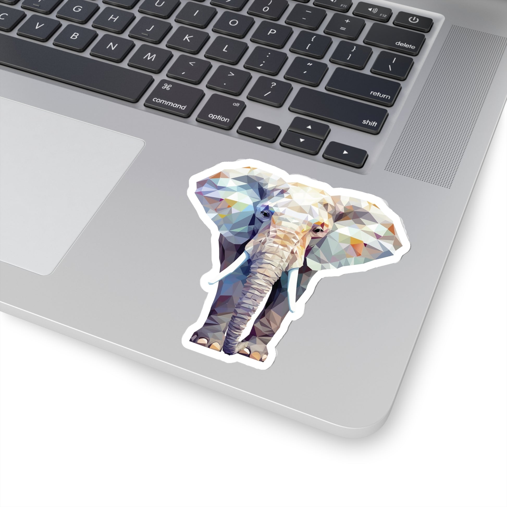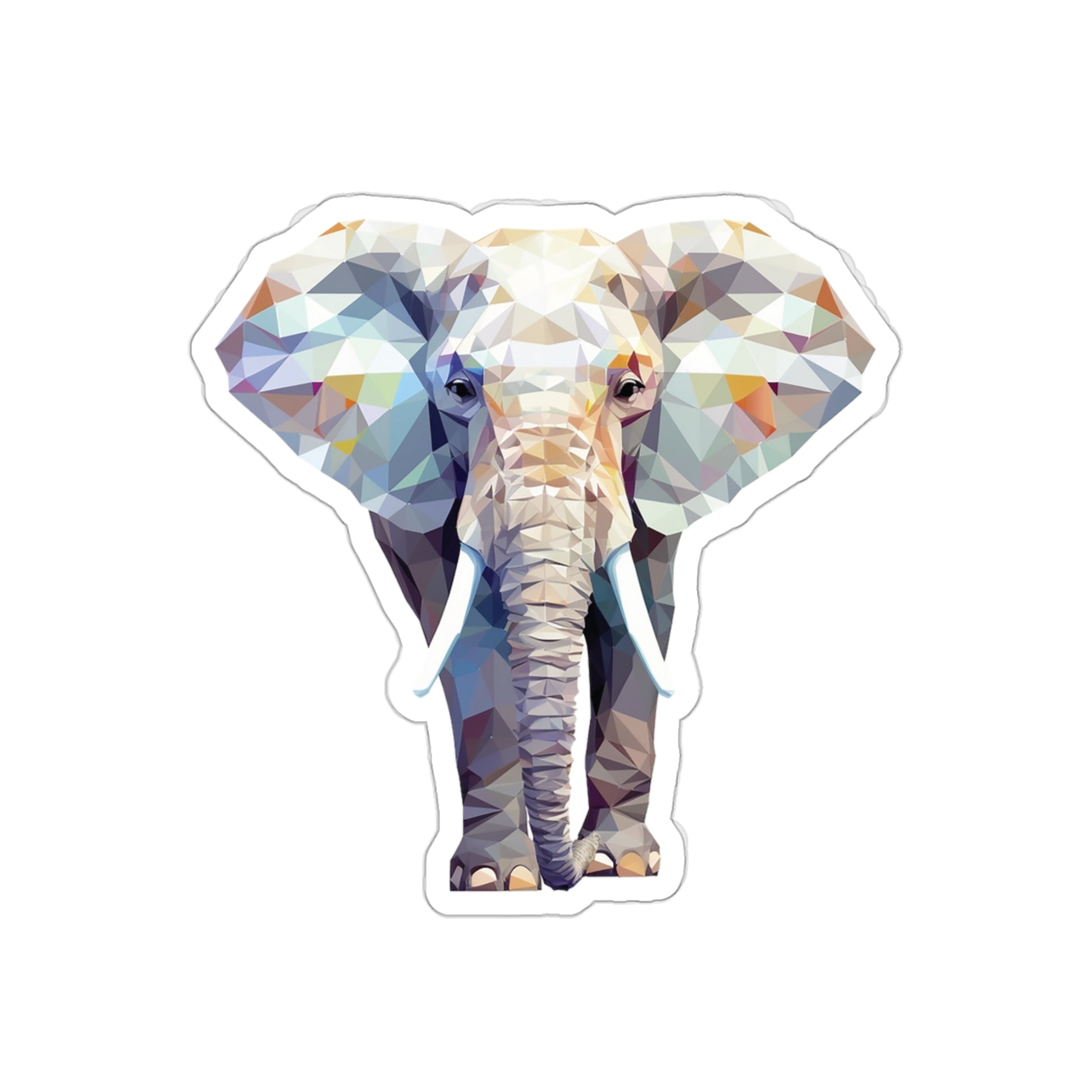 Keywords: Elephant sticker, facet geometric style, high-quality materials, majestic beauty, gentle curves, unique design, nature lover, modern decor.