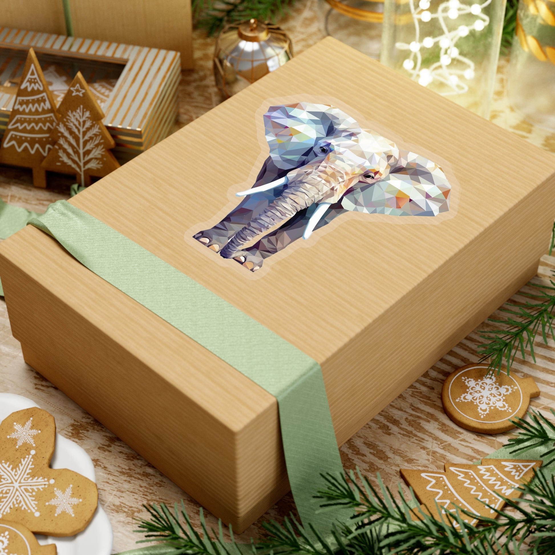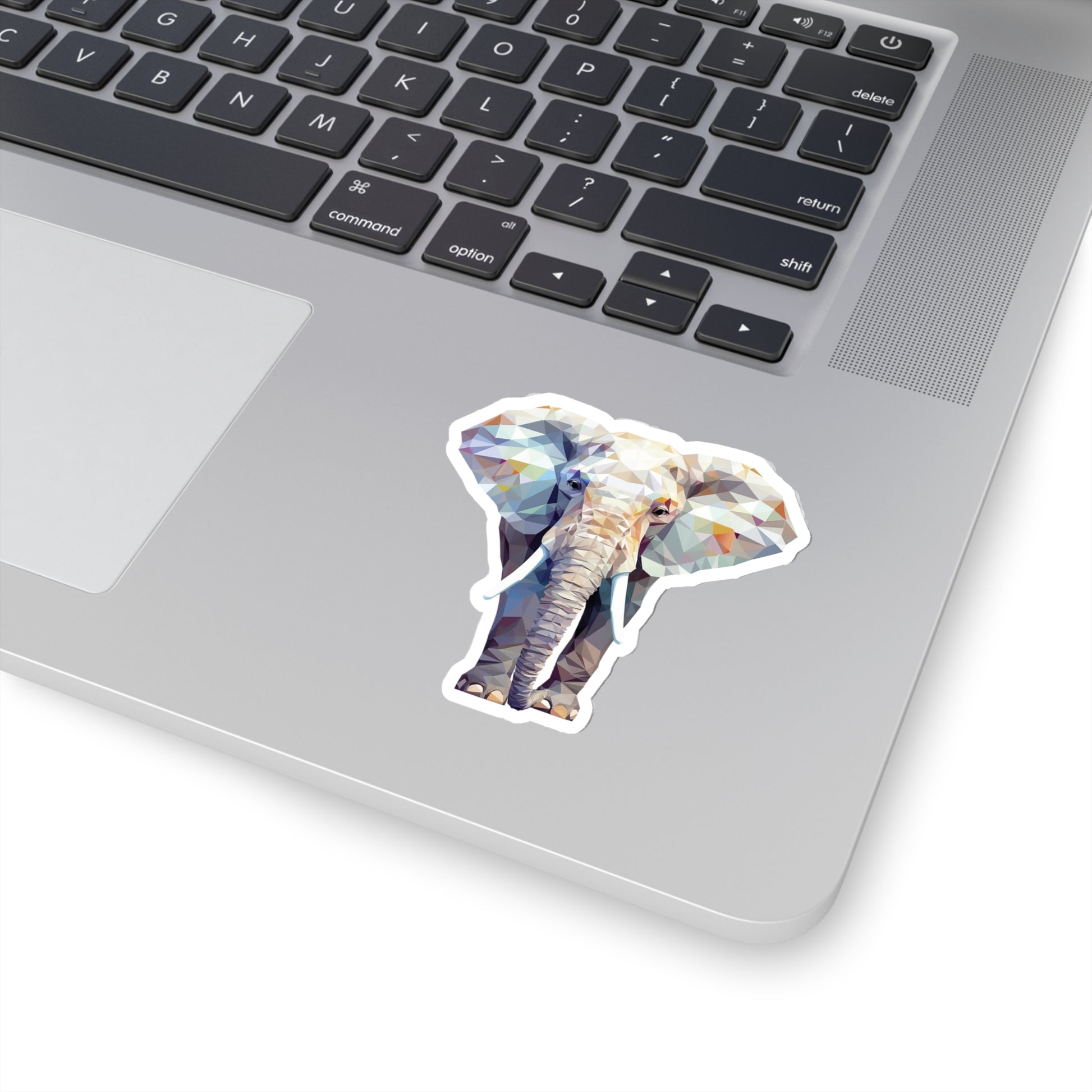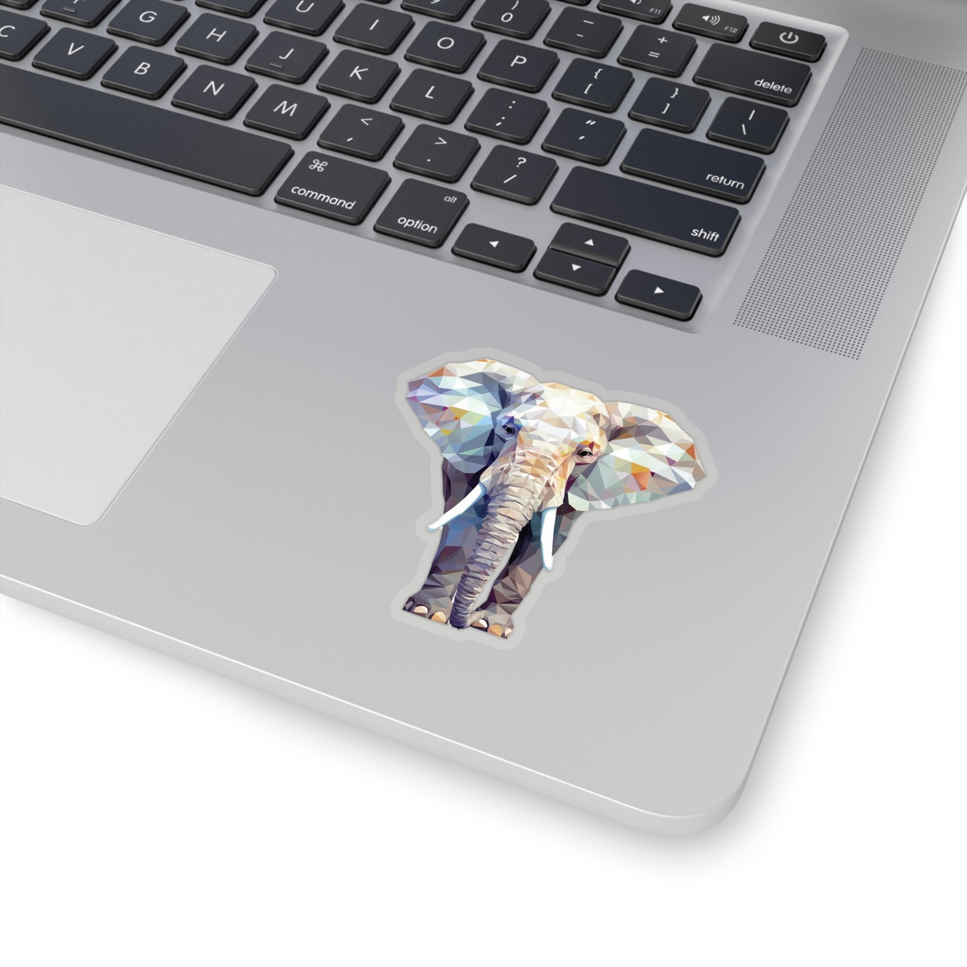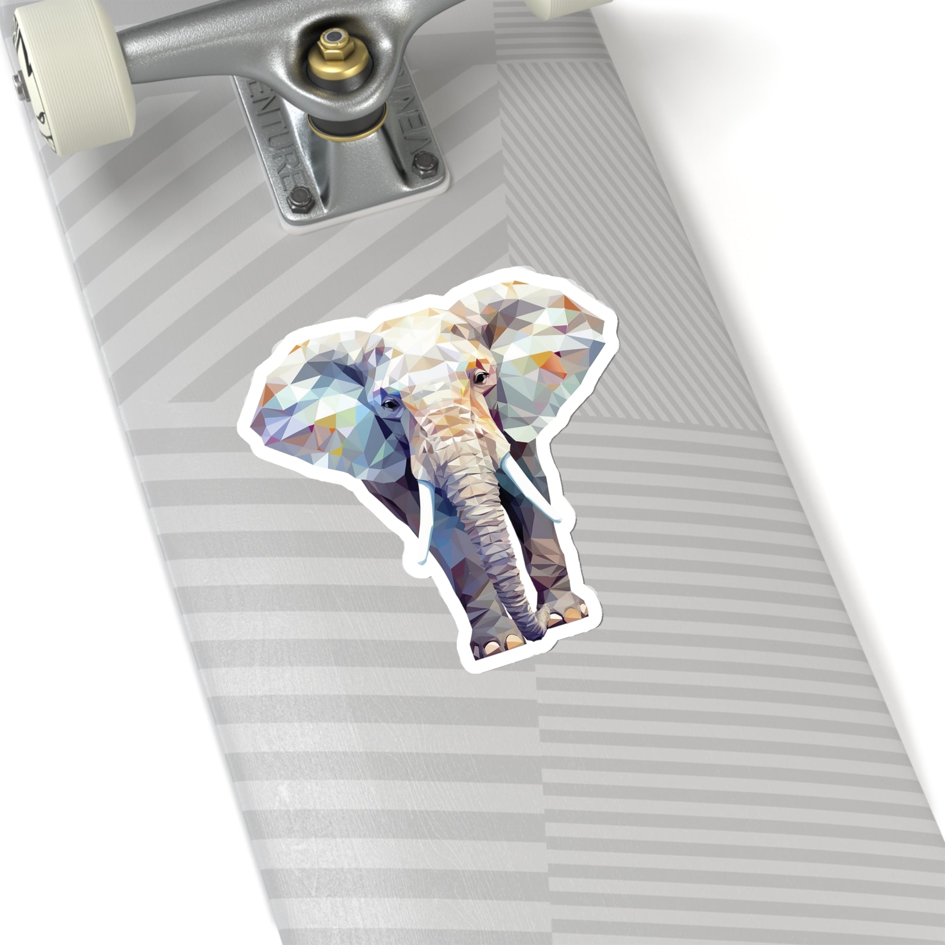 Keywords: Elephant sticker, facet geometric style, high-quality materials, majestic beauty, gentle curves, unique design, nature lover, modern decor.