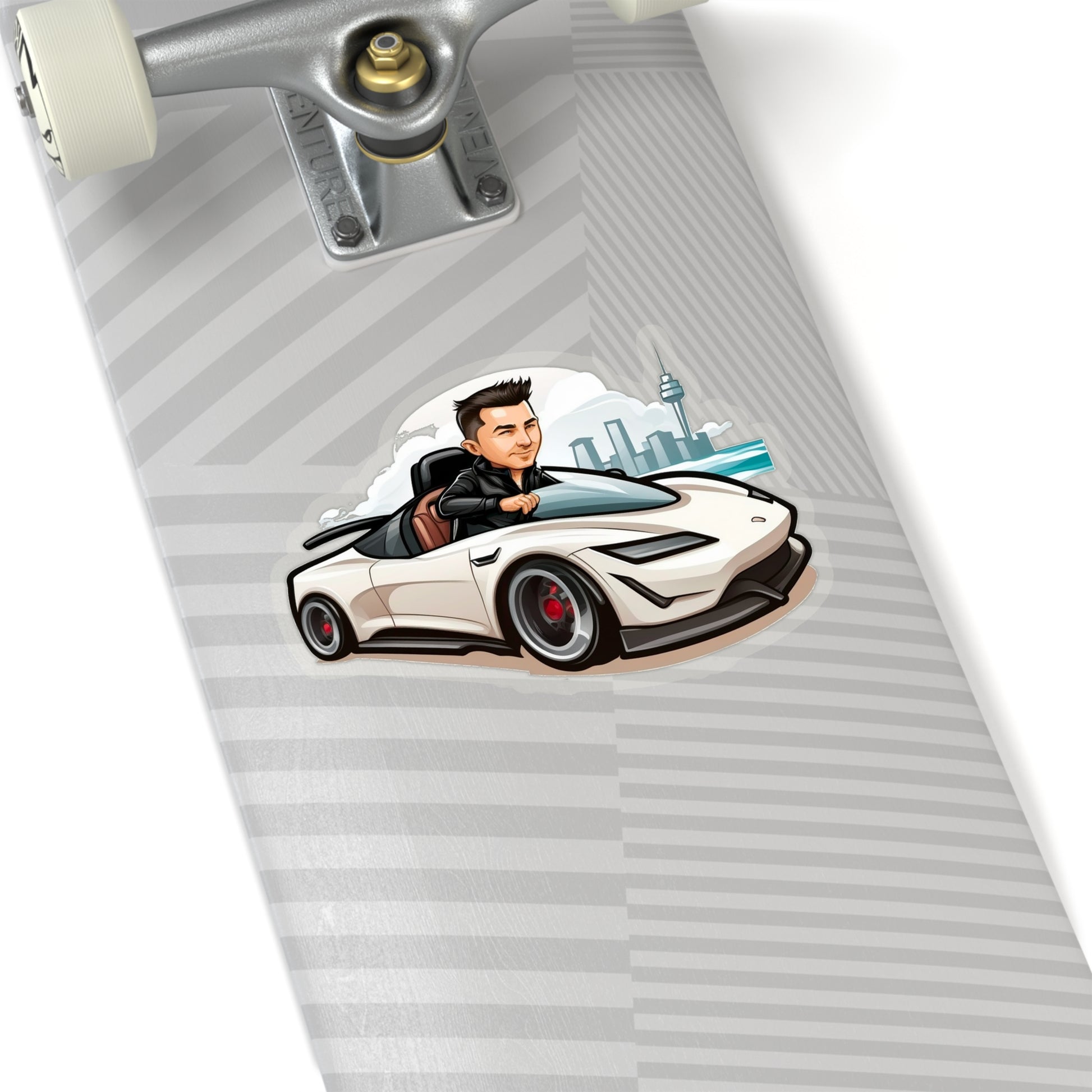 Elon Musk in White Tesla Roadster Sticker - Add Some Unique and Bold Style to Your Tech