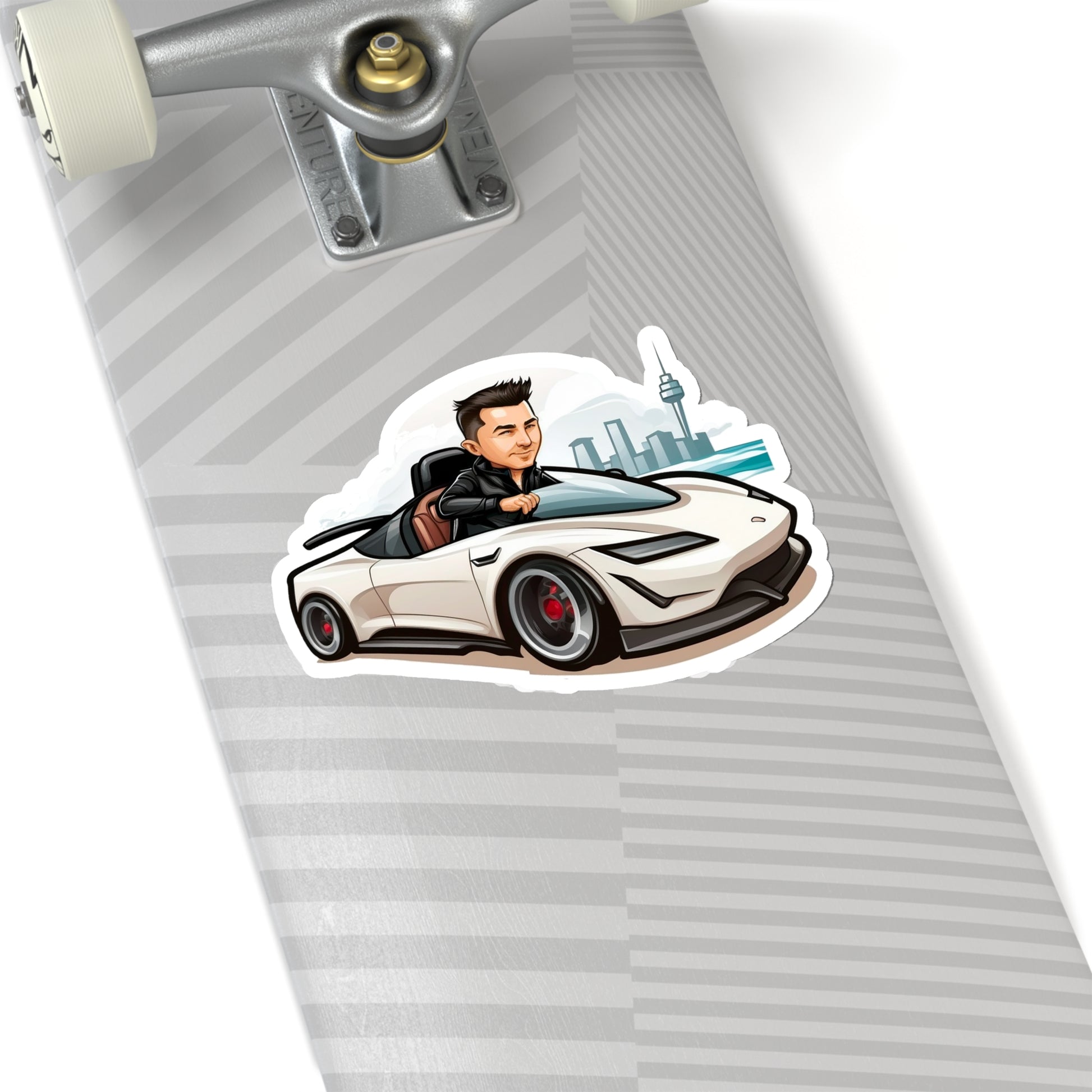 This sticker features Elon Musk, the visionary entrepreneur and CEO of Tesla, in a bold and unique design driving his white Tesla Roadster. The high-quality vector-style design adds a unique touch to this sticker, making it stand out from other tech and entrepreneur-themed stickers on the market. This sticker is perfect for anyone who admires Elon Musk and his innovative spirit and wants to add some unique and bold style to their Macbook, smartphone, or any other smooth surface.