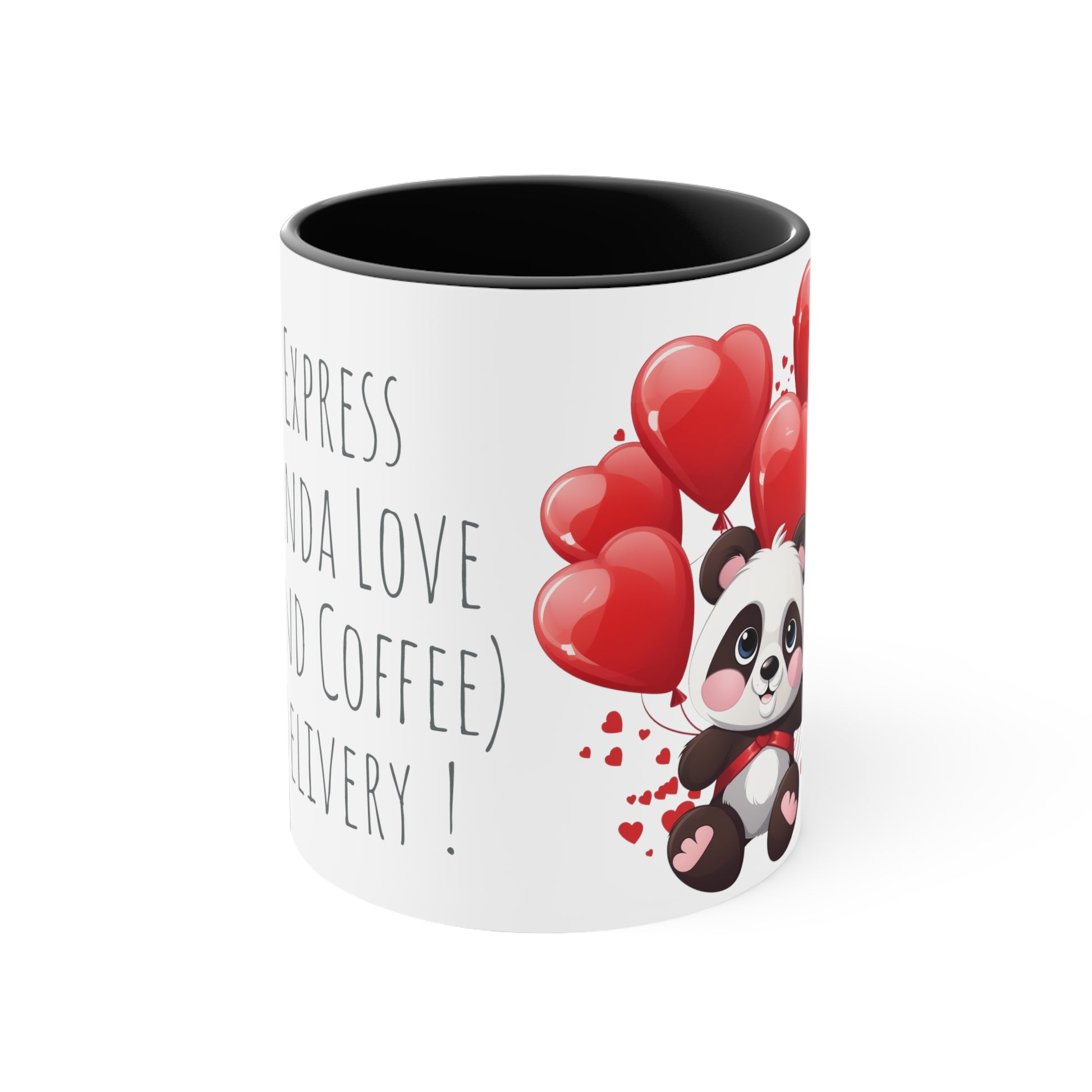 Celebrate Valentine's Day with a touch of whimsy using our 'Express Panda Love Coffee Mug'. This charming 11 oz bicolor mug features an adorable panda carrying a bunch of heart-shaped balloons, alongside the playful text, 'Express Panda Love (And Coffee) Delivery!'. Perfect for coffee lovers and panda enthusiasts alike, this mug brings a smile with every sip. Its sturdy design and comfortable handle make it ideal for daily use, whether at home or in the office. The vibrant, high-quality print is both microwave and dishwasher safe, ensuring long-lasting color and charm. A fantastic gift for your loved one or a delightful addition to your own collection, this mug is a must-have this Valentine’s Day for those who adore cute, kawaii-style designs and a good cup of coffee.