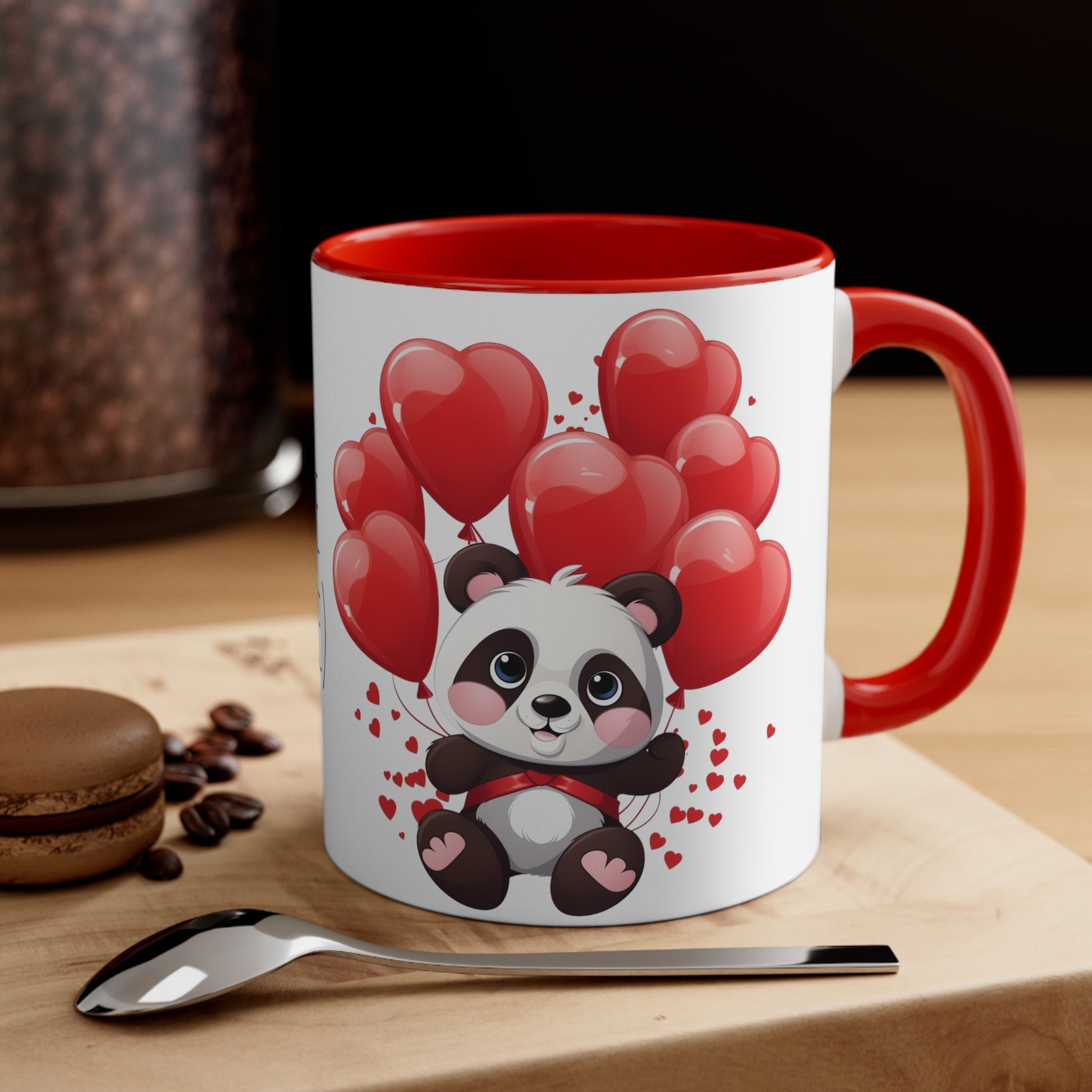 Keywords:Panda Mug, Valentine Cup, Love Coffee, Heart Balloons, Bicolor Mug, Whimsy Cup, Panda Gift, Kawaii Mug, Coffee Lover, Valentine Panda