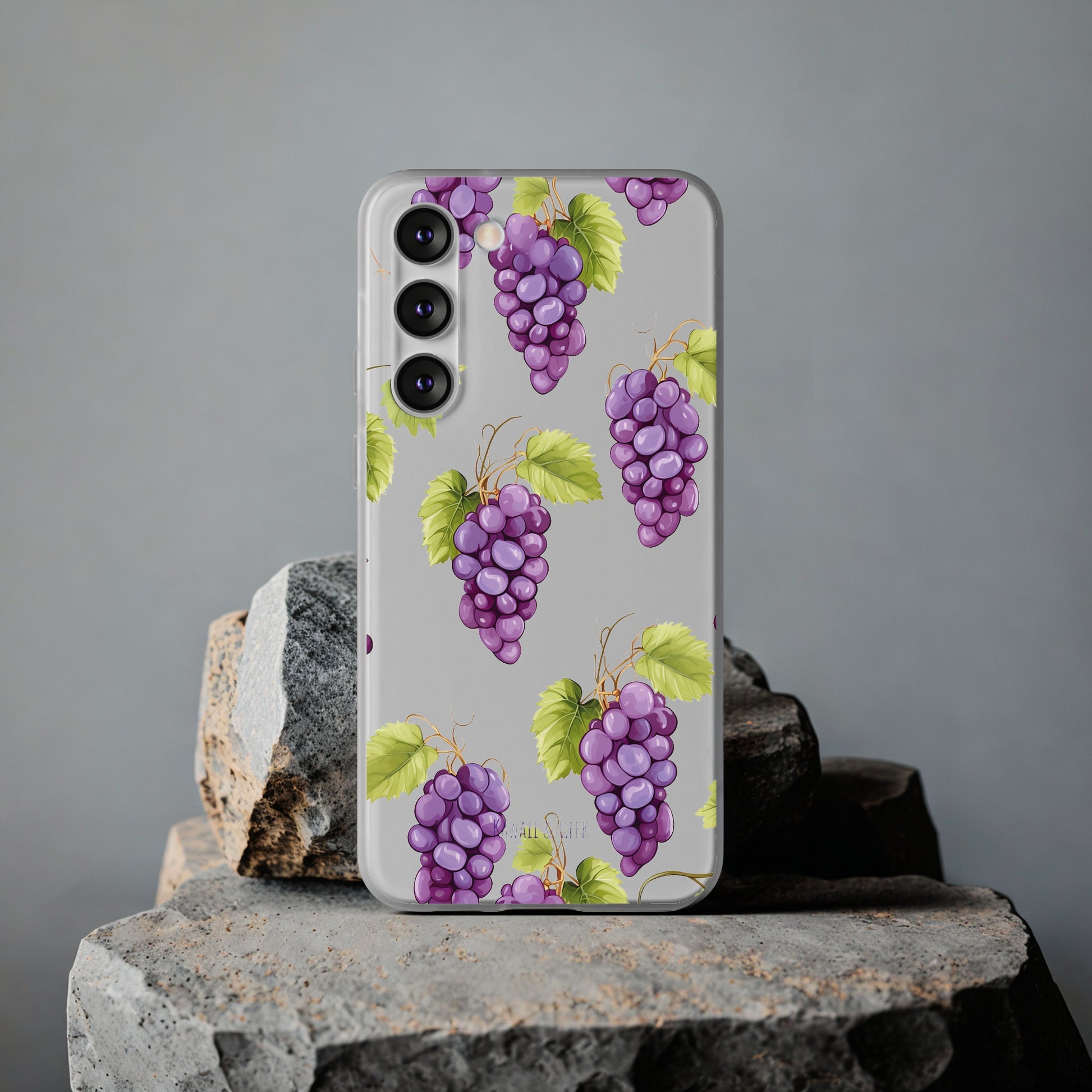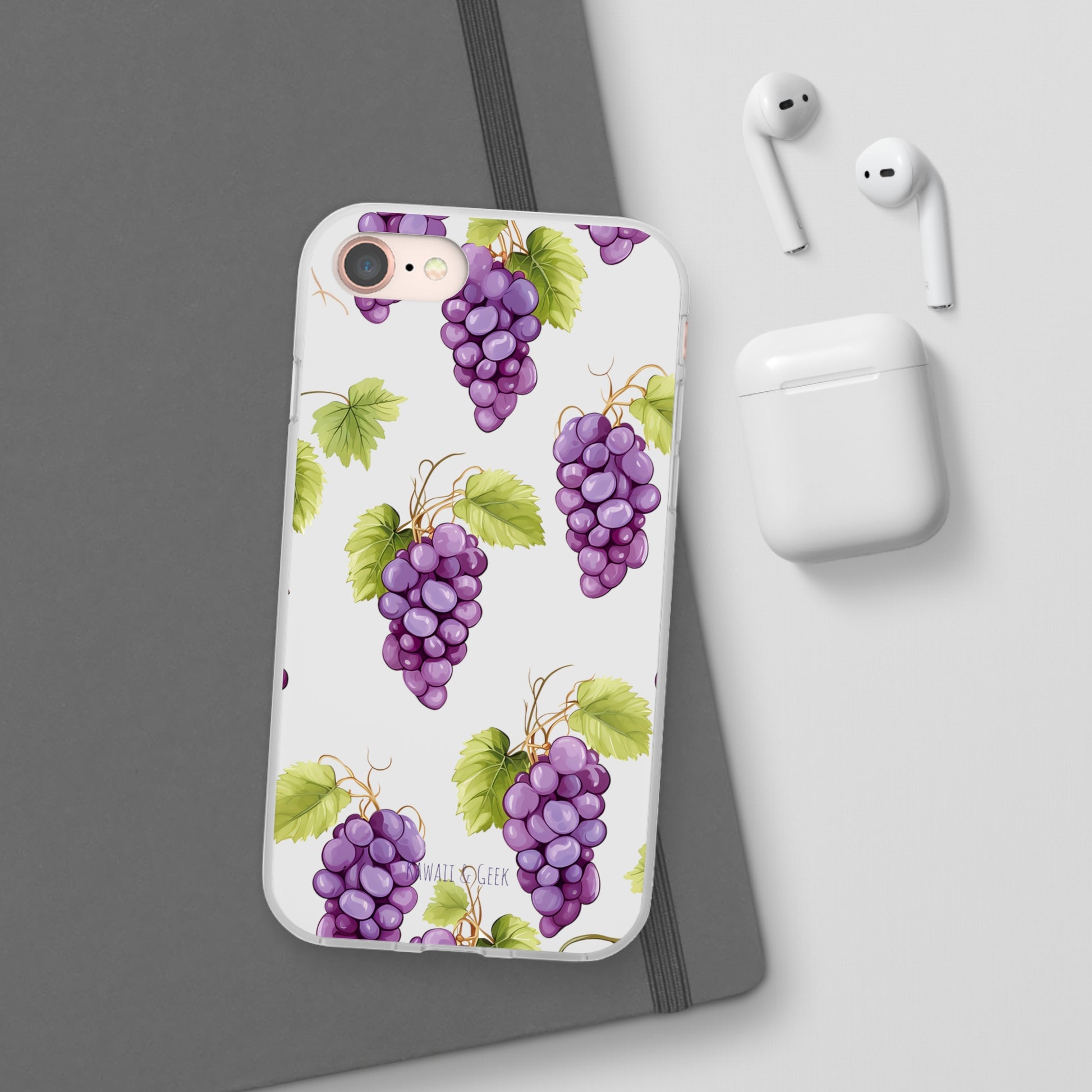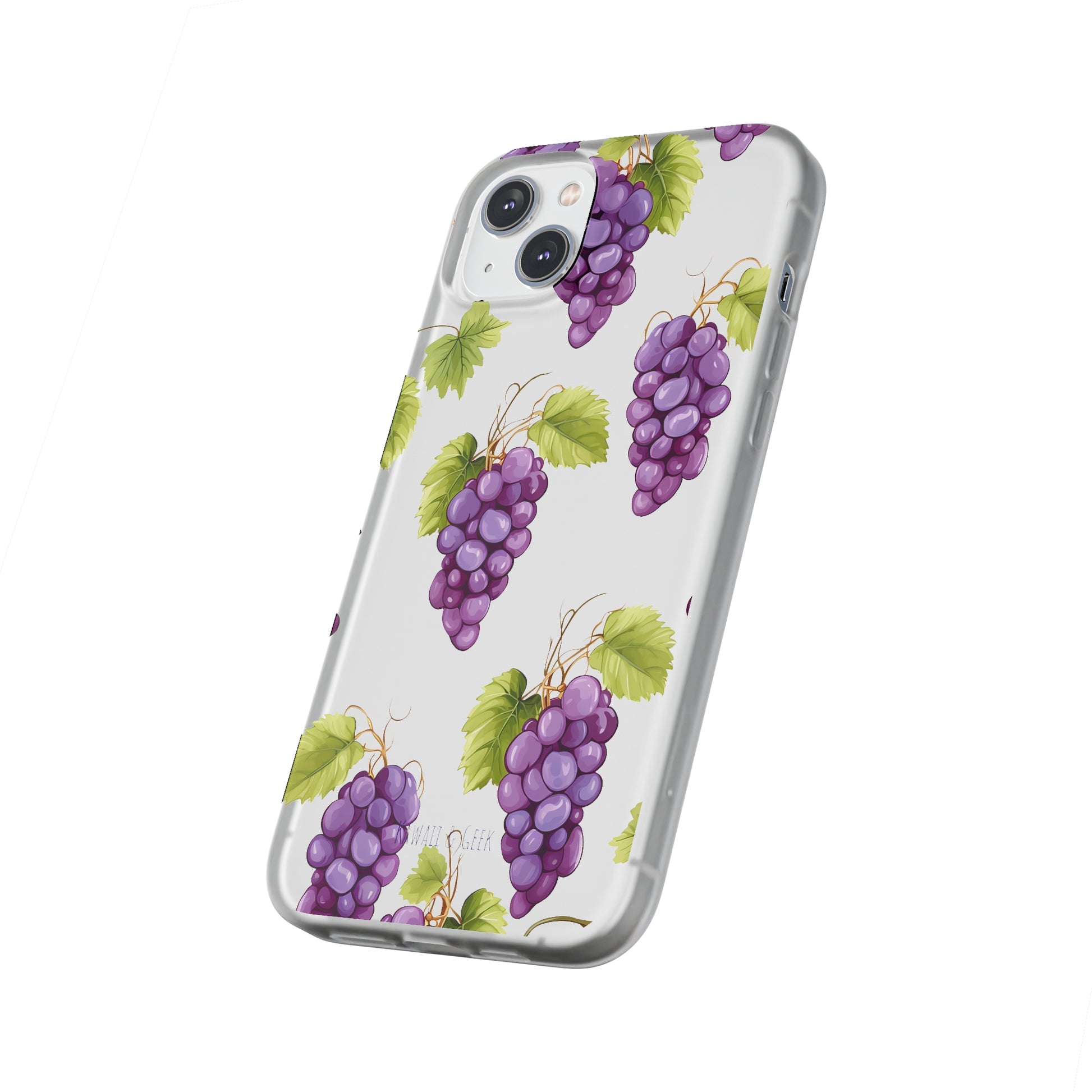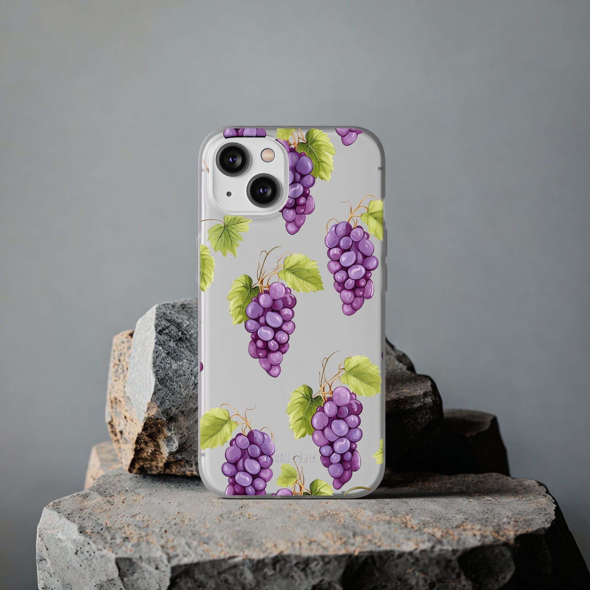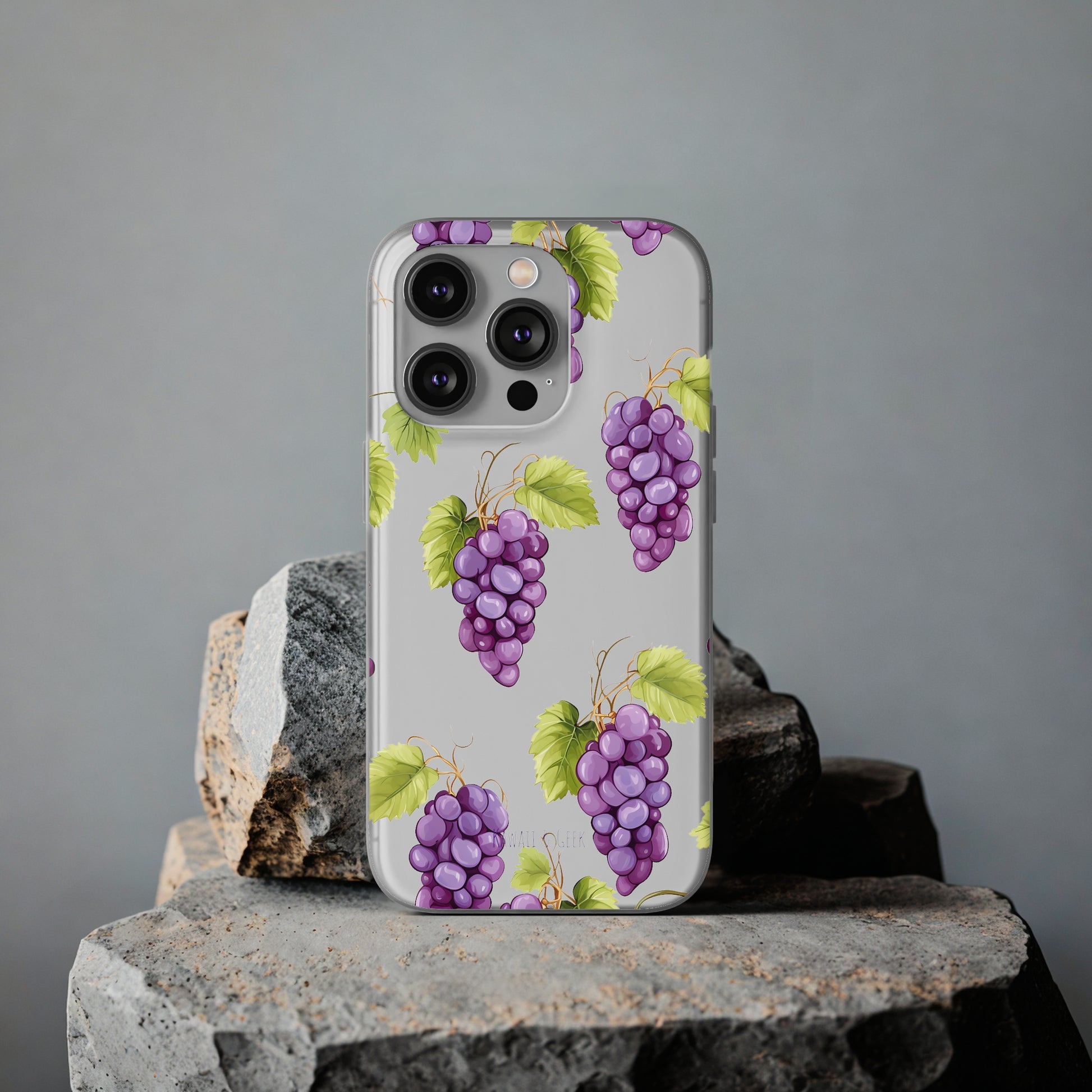 Keywords: Grape design case, Flexi phone cover, Transparent case, Vineyard accessory, Nature-inspired, Fruit motif, Wine lover gift, Premium protection, Cellphone chic, Artistic design, Harvest aesthetic, Elegant style, Summer vibes.The Flexi Case is designed with modern form and function in mind. It’s made from a premium-quality clear TPU (Thermoplastic Polyurethane) that holds up to wear and tear with style. Perfect for people who love a beautiful, slim-fitting case that doesn’t overwhelm the phone’s design. Plus, you can offer your customers gift packaging options.