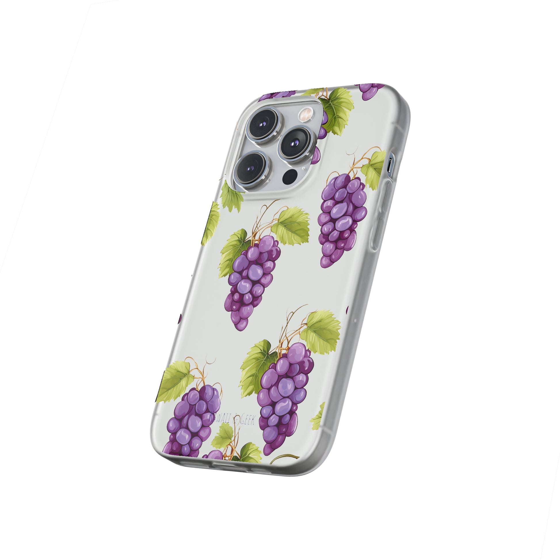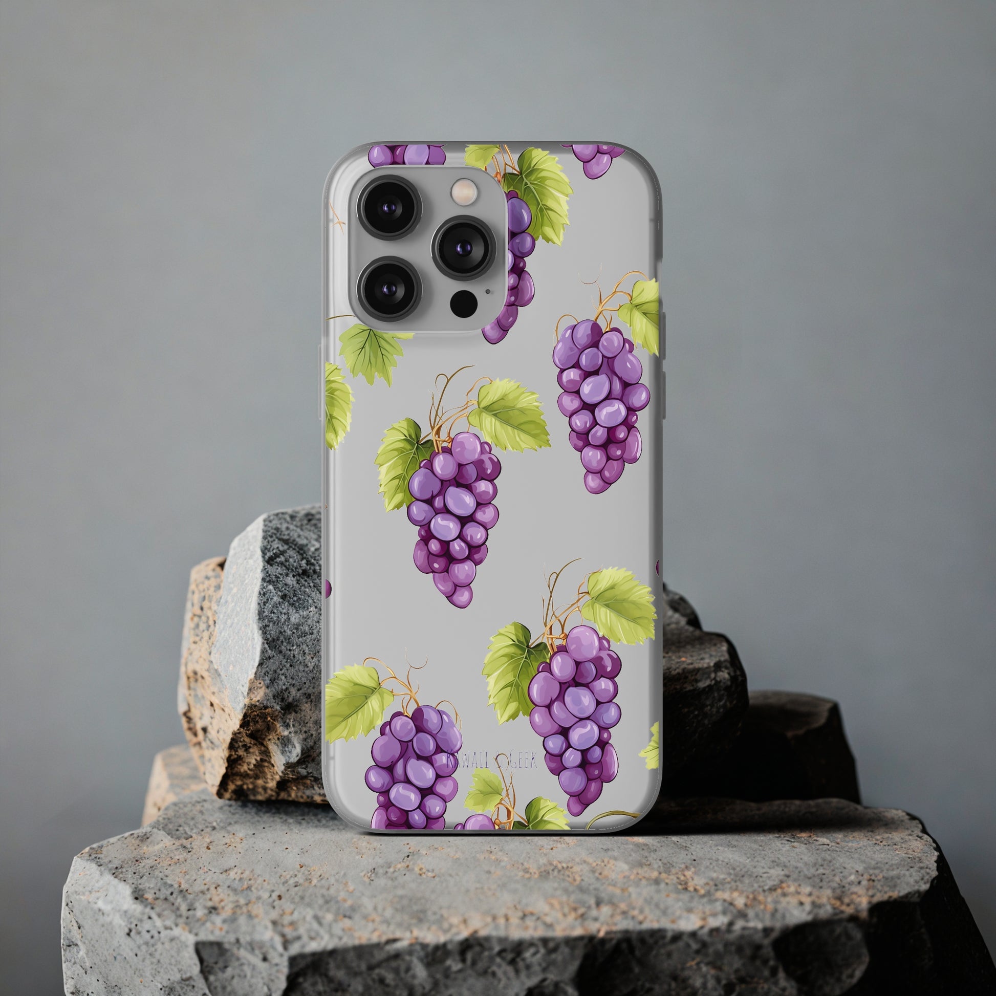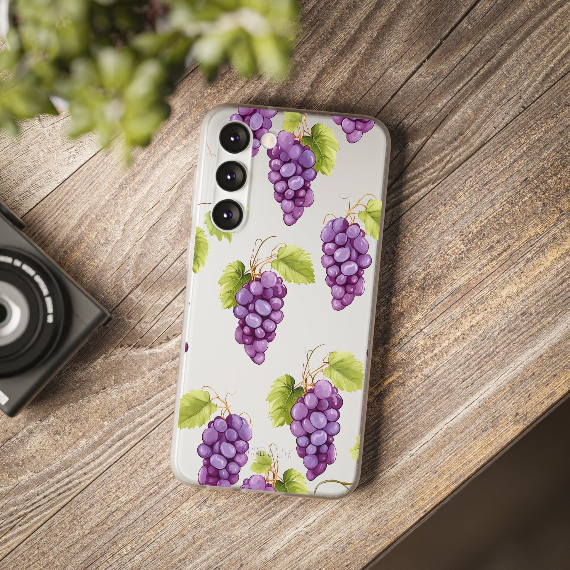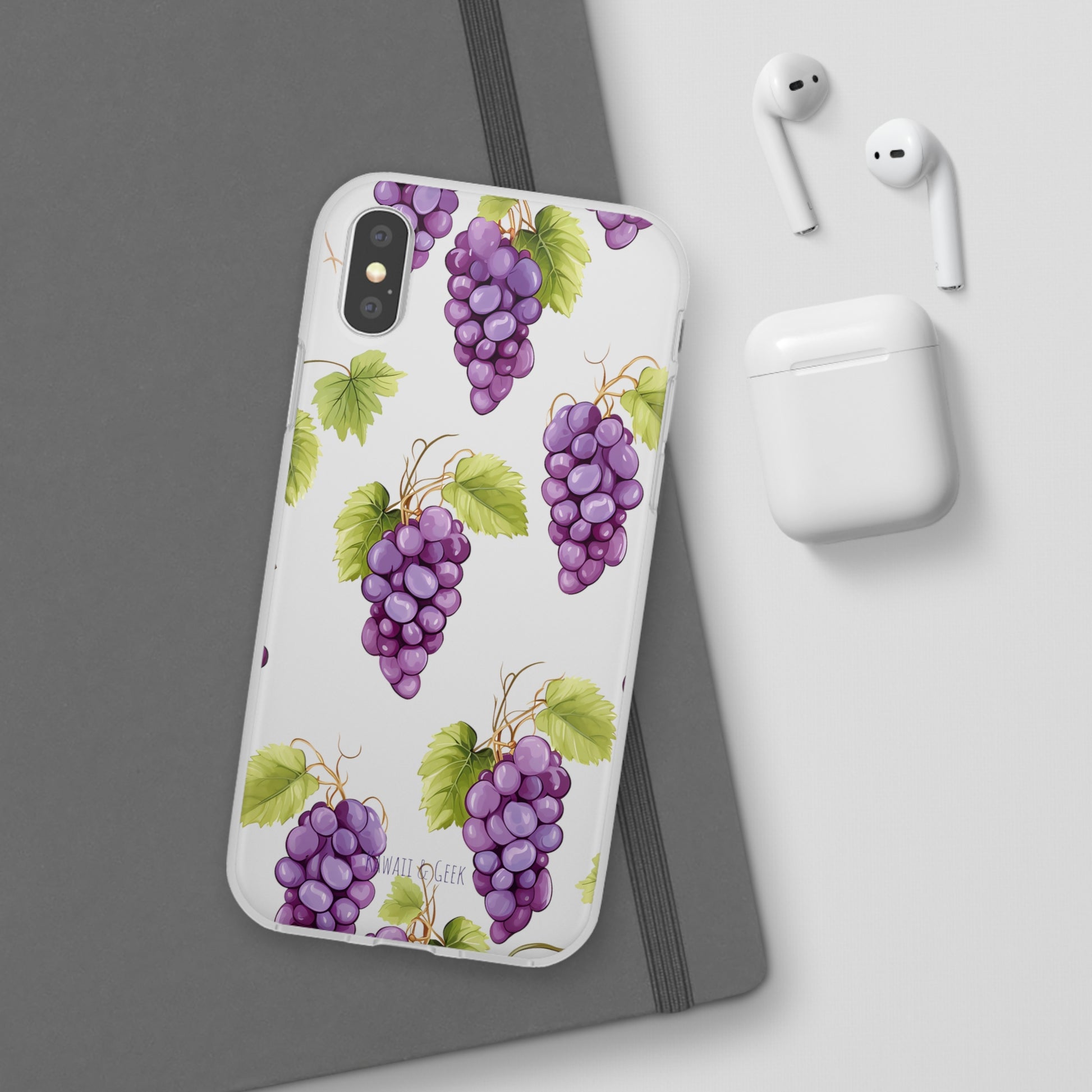 Keywords: Grape design case, Flexi phone cover, Transparent case, Vineyard accessory, Nature-inspired, Fruit motif, Wine lover gift, Premium protection, Cellphone chic, Artistic design, Harvest aesthetic, Elegant style, Summer vibes.The Flexi Case is designed with modern form and function in mind. It’s made from a premium-quality clear TPU (Thermoplastic Polyurethane) that holds up to wear and tear with style. Perfect for people who love a beautiful, slim-fitting case that doesn’t overwhelm the phone’s design. Plus, you can offer your customers gift packaging options.