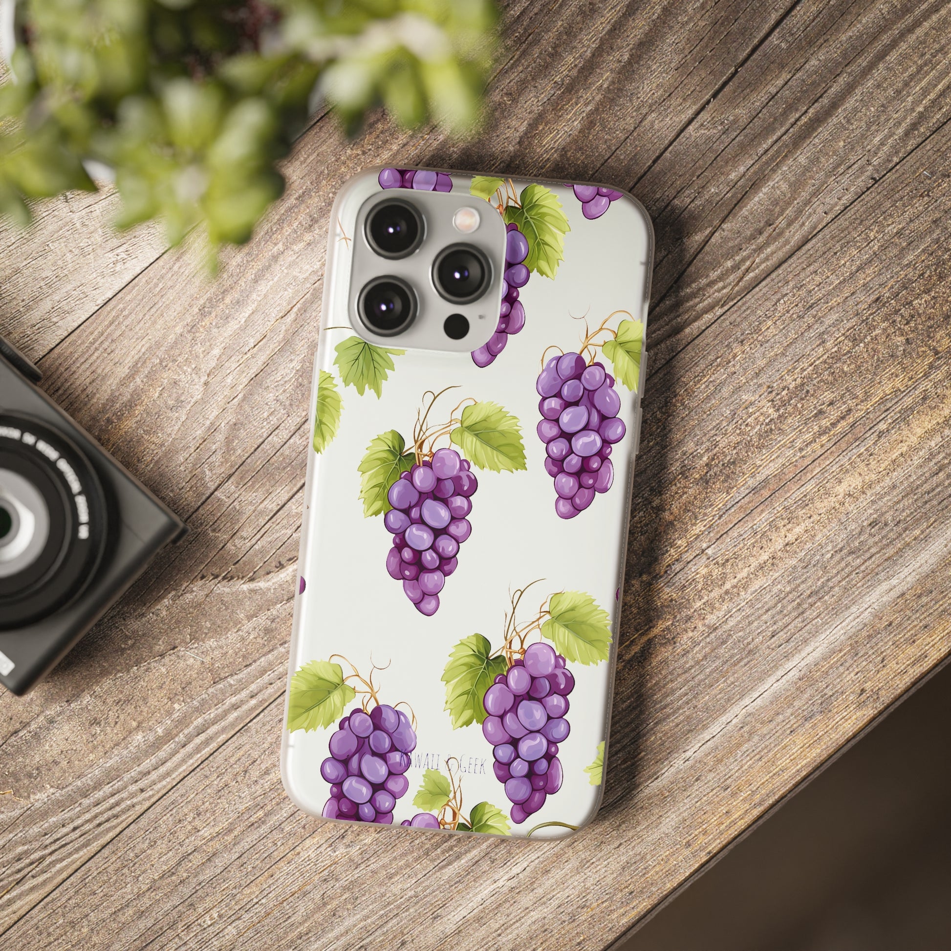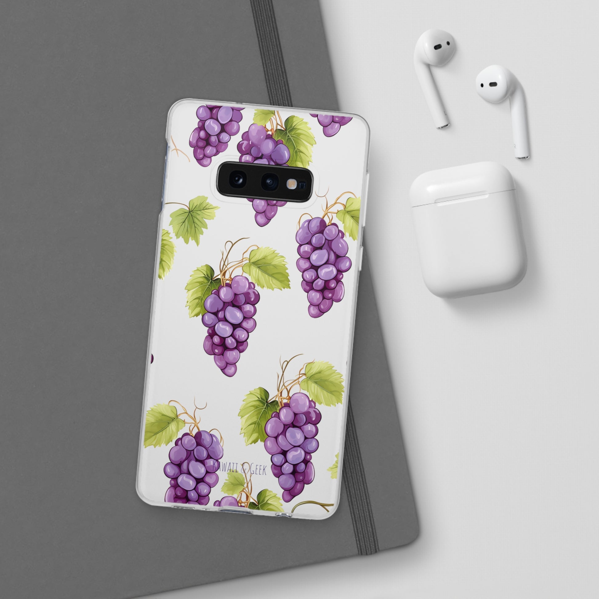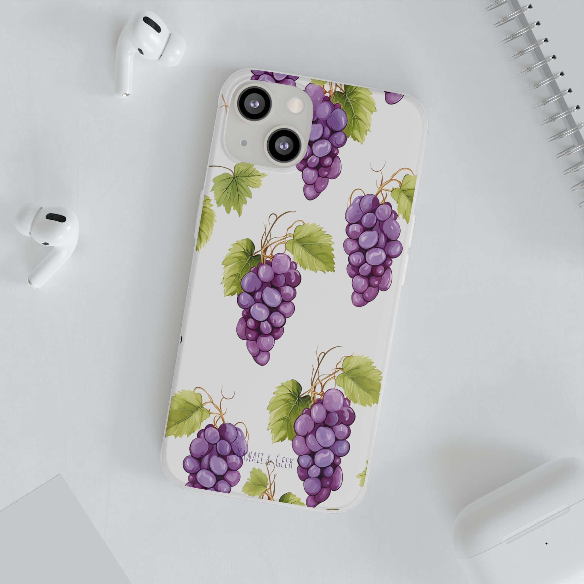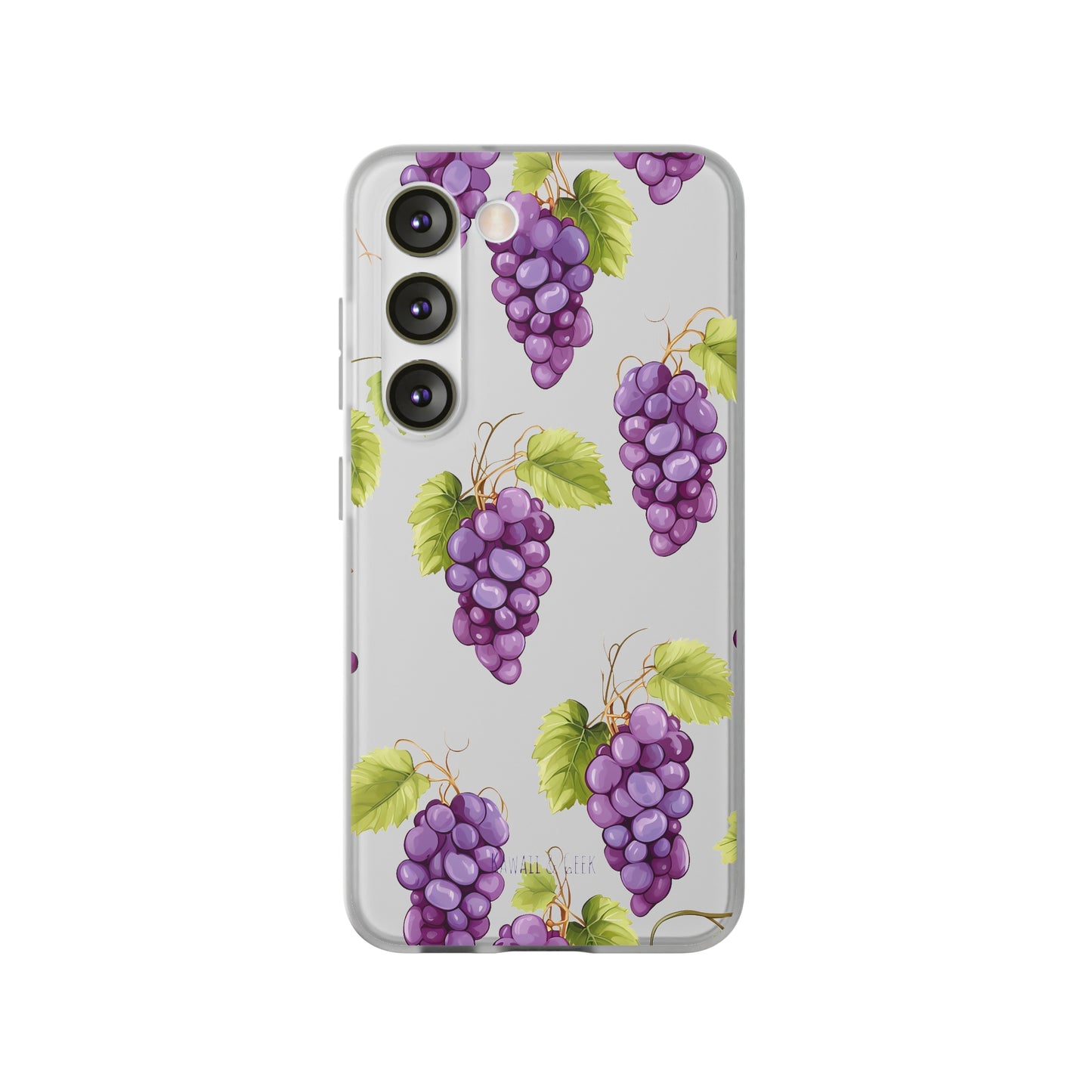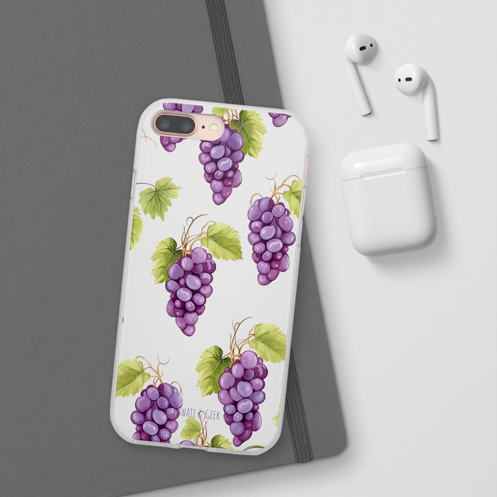 Keywords: Grape design case, Flexi phone cover, Transparent case, Vineyard accessory, Nature-inspired, Fruit motif, Wine lover gift, Premium protection, Cellphone chic, Artistic design, Harvest aesthetic, Elegant style, Summer vibes.The Flexi Case is designed with modern form and function in mind. It’s made from a premium-quality clear TPU (Thermoplastic Polyurethane) that holds up to wear and tear with style. Perfect for people who love a beautiful, slim-fitting case that doesn’t overwhelm the phone’s design. Plus, you can offer your customers gift packaging options.