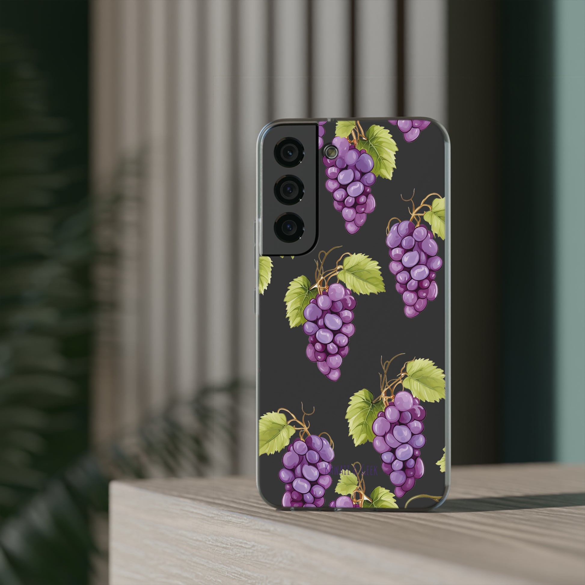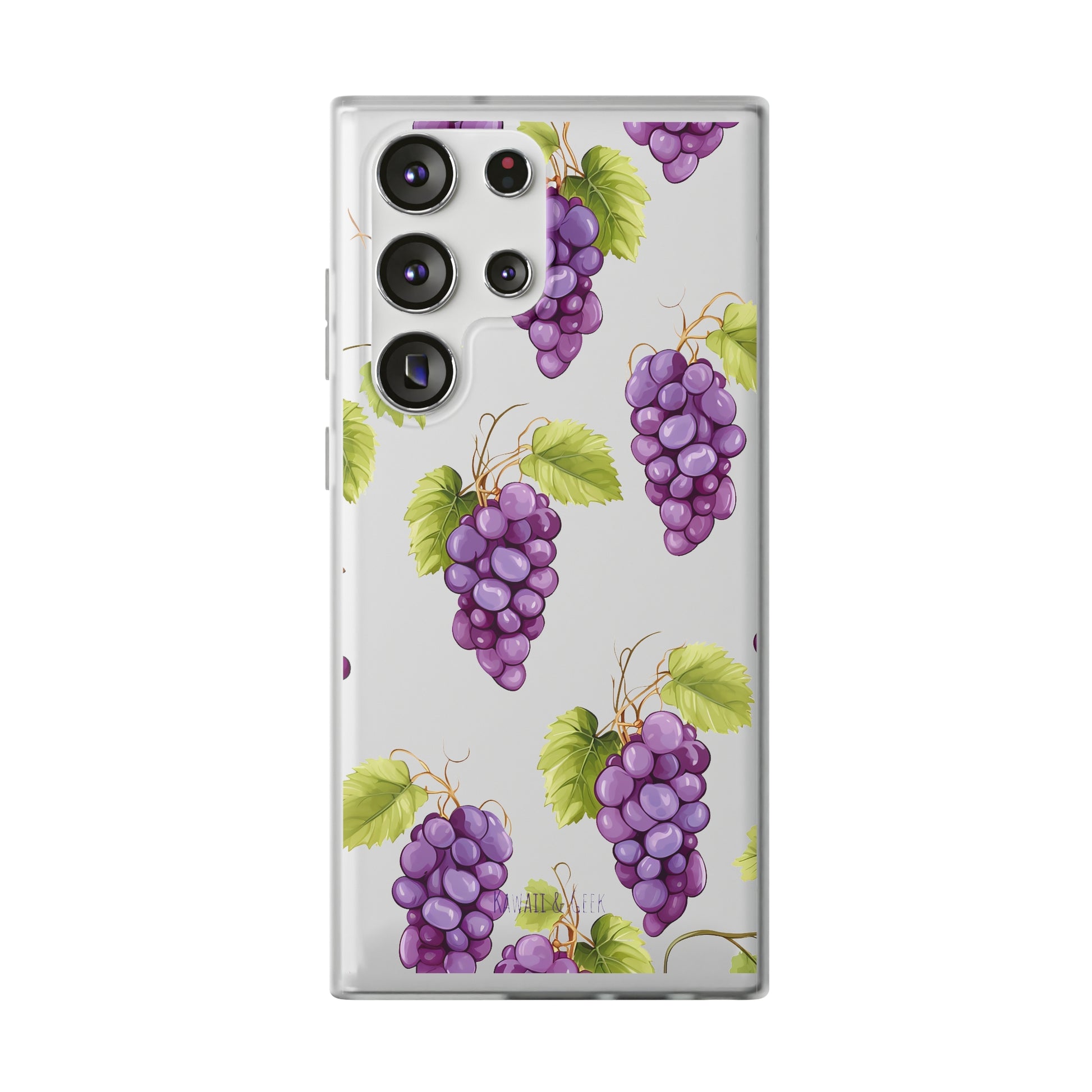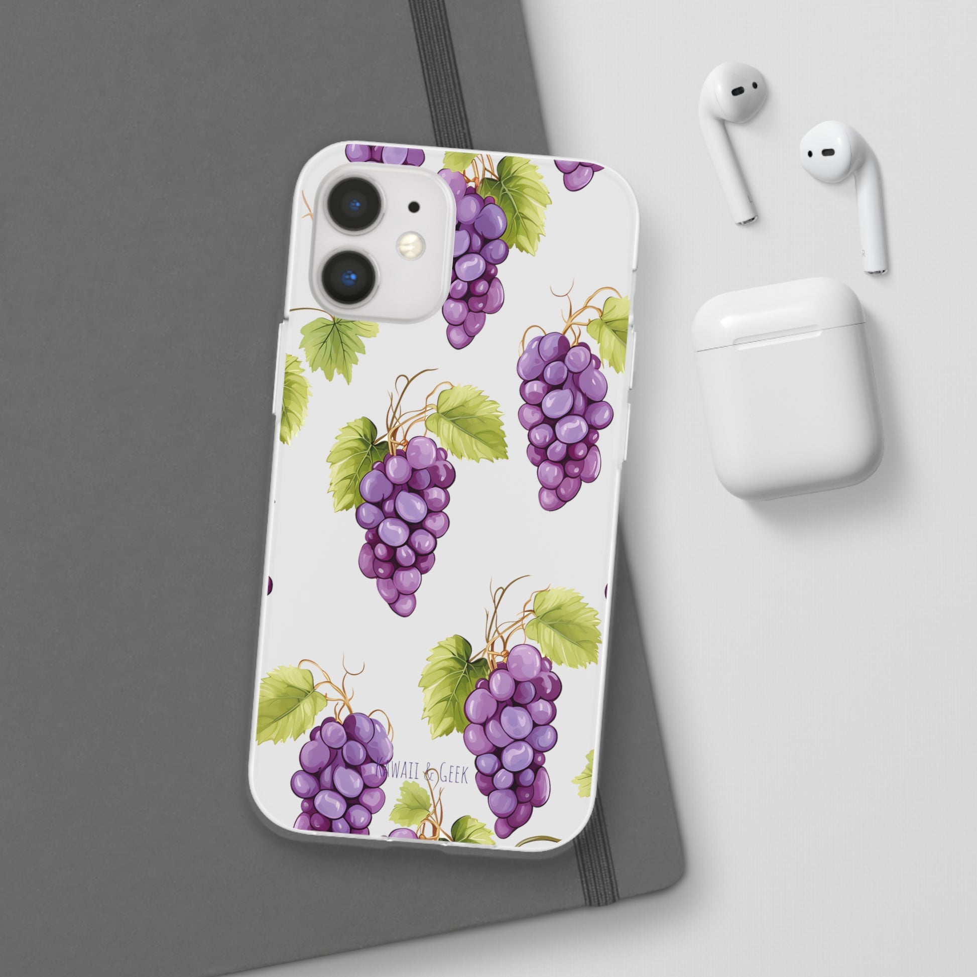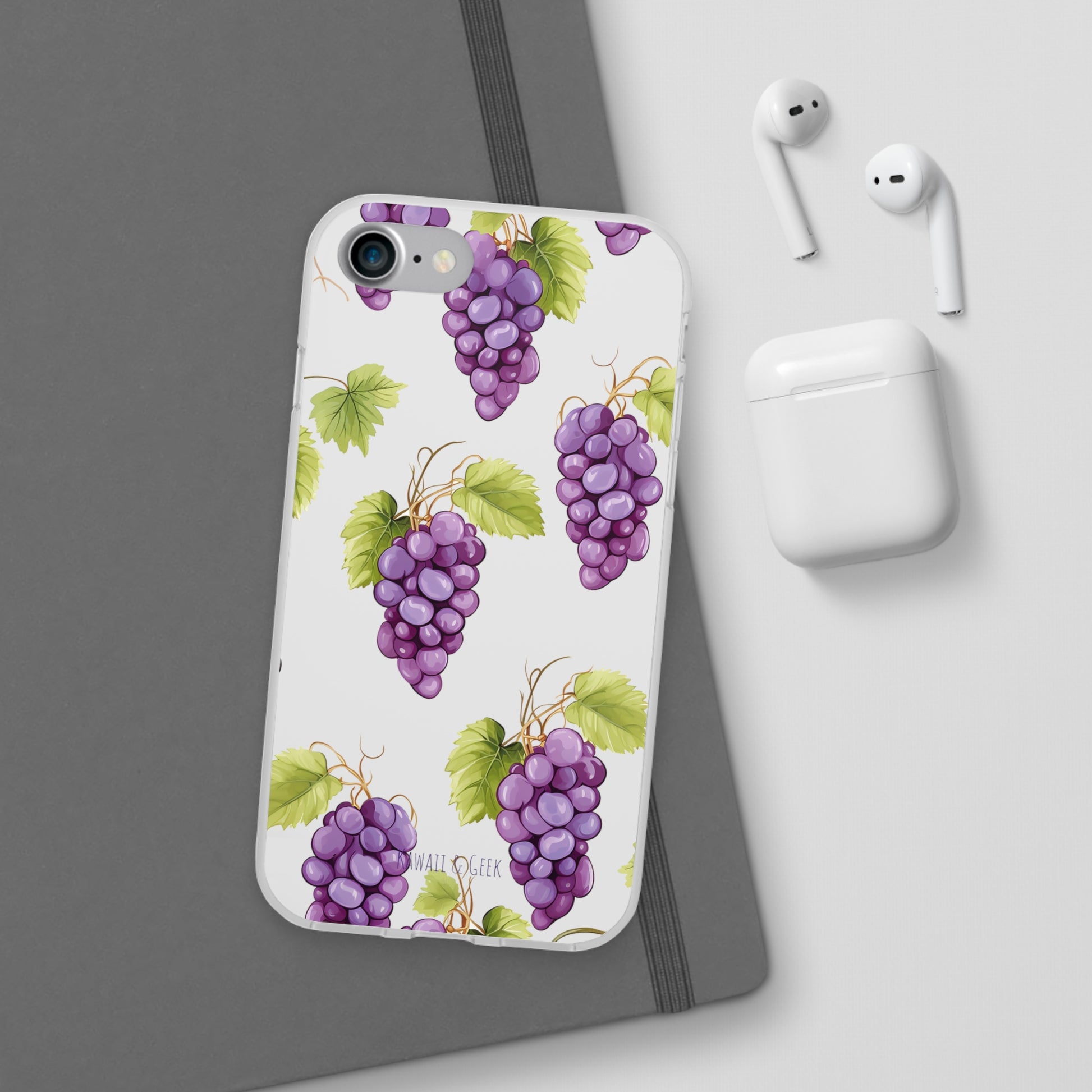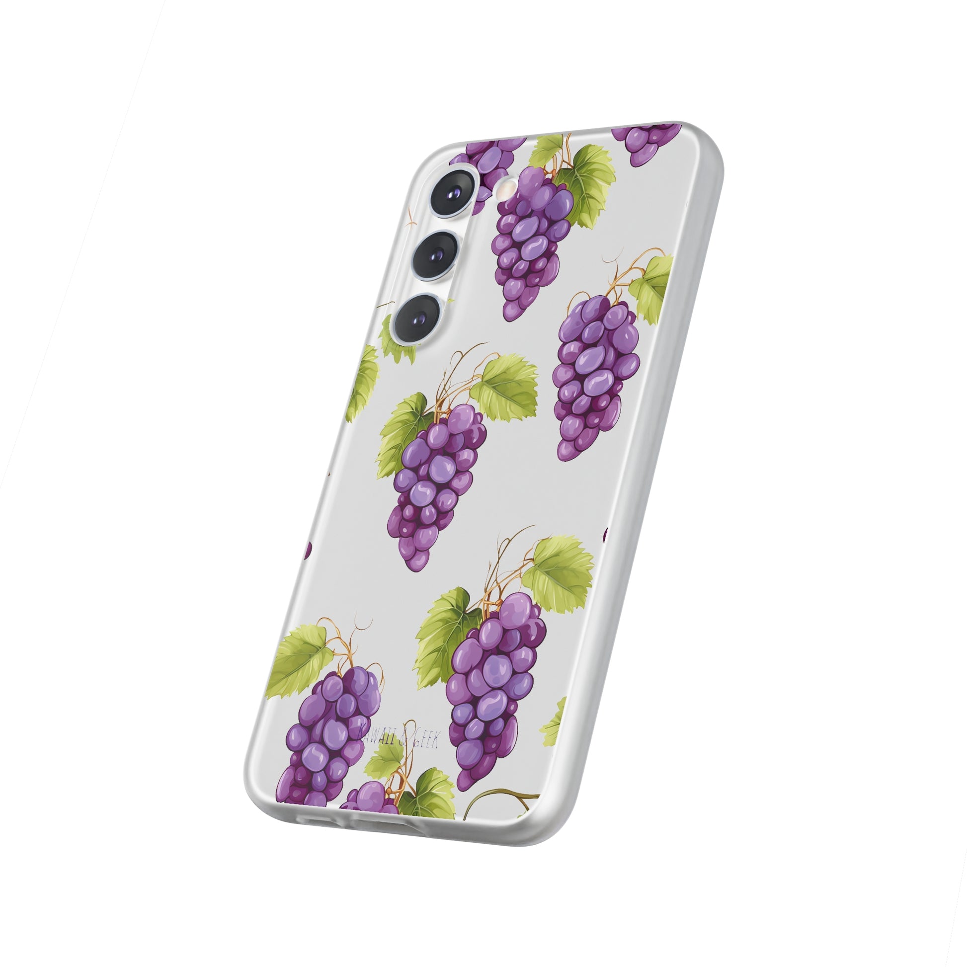 Keywords: Grape design case, Flexi phone cover, Transparent case, Vineyard accessory, Nature-inspired, Fruit motif, Wine lover gift, Premium protection, Cellphone chic, Artistic design, Harvest aesthetic, Elegant style, Summer vibes.The Flexi Case is designed with modern form and function in mind. It’s made from a premium-quality clear TPU (Thermoplastic Polyurethane) that holds up to wear and tear with style. Perfect for people who love a beautiful, slim-fitting case that doesn’t overwhelm the phone’s design. Plus, you can offer your customers gift packaging options.