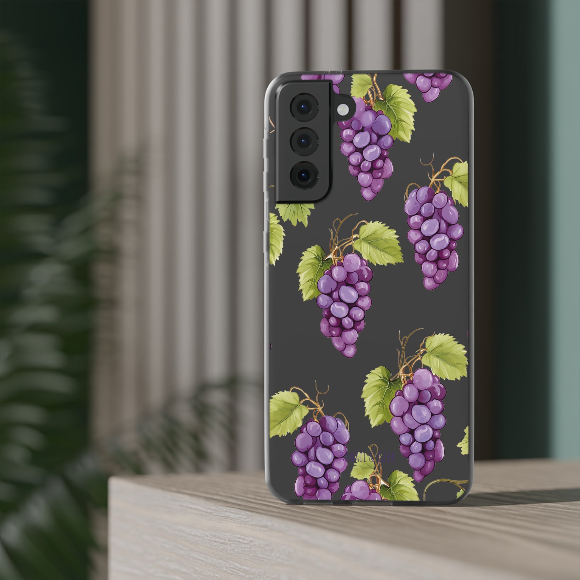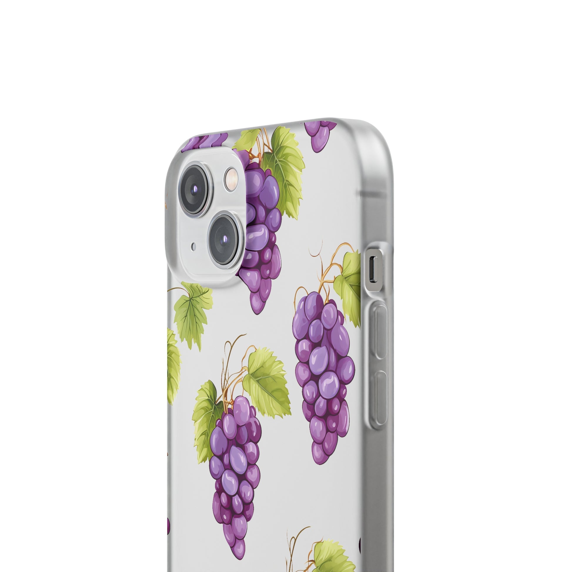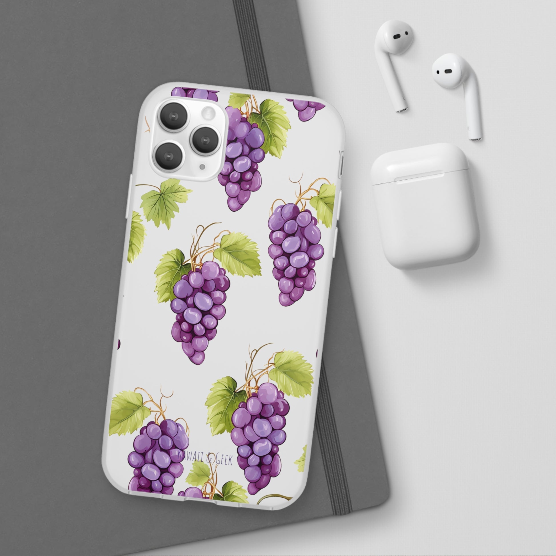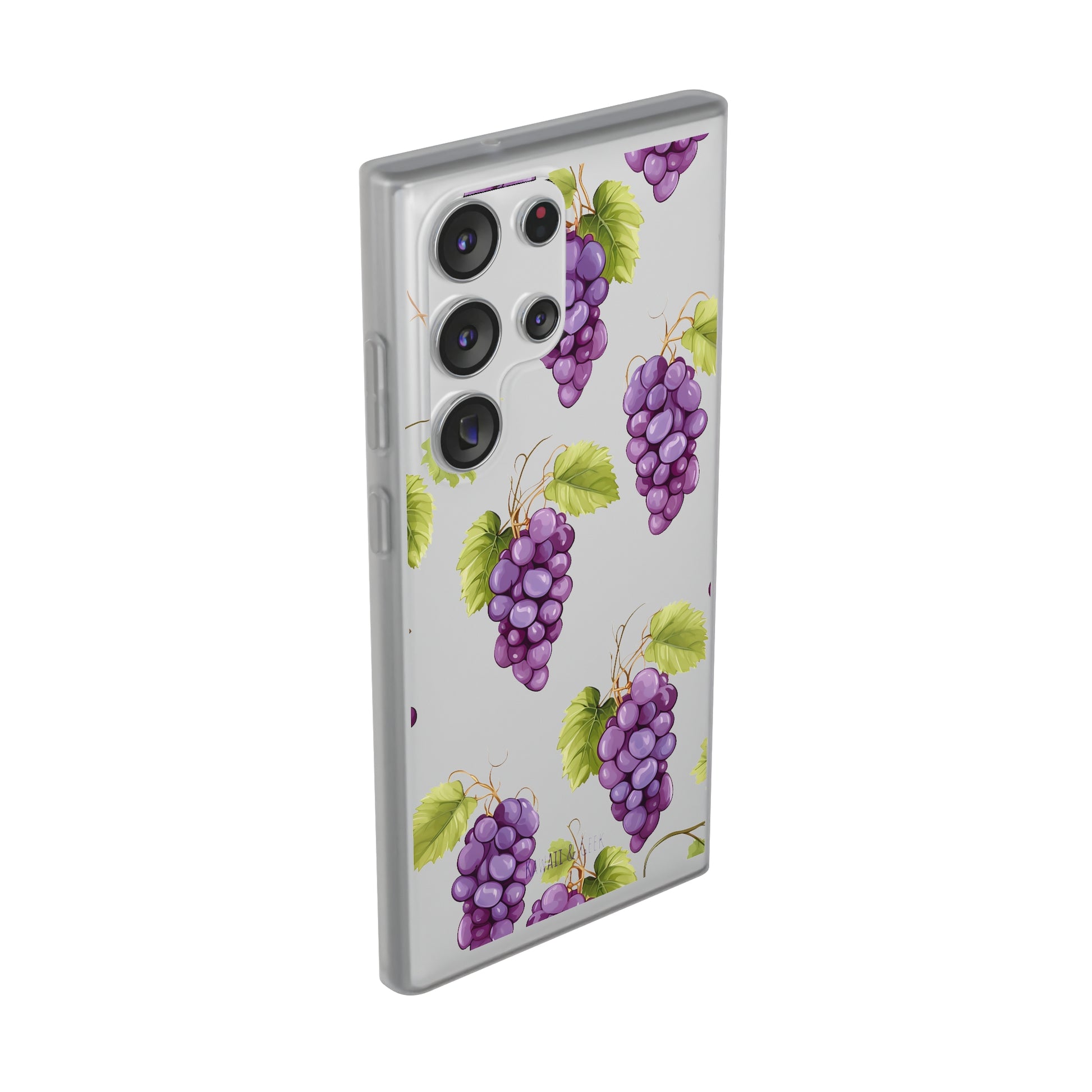 Keywords: Grape design case, Flexi phone cover, Transparent case, Vineyard accessory, Nature-inspired, Fruit motif, Wine lover gift, Premium protection, Cellphone chic, Artistic design, Harvest aesthetic, Elegant style, Summer vibes.The Flexi Case is designed with modern form and function in mind. It’s made from a premium-quality clear TPU (Thermoplastic Polyurethane) that holds up to wear and tear with style. Perfect for people who love a beautiful, slim-fitting case that doesn’t overwhelm the phone’s design. Plus, you can offer your customers gift packaging options.