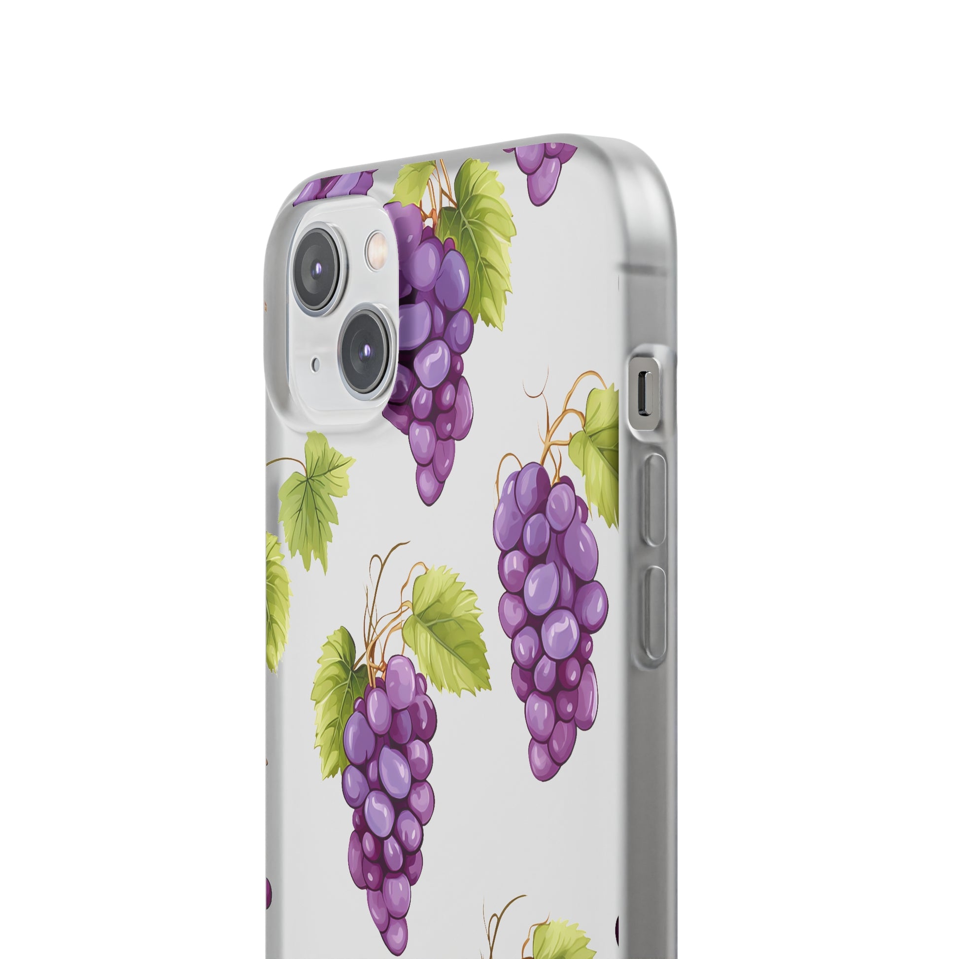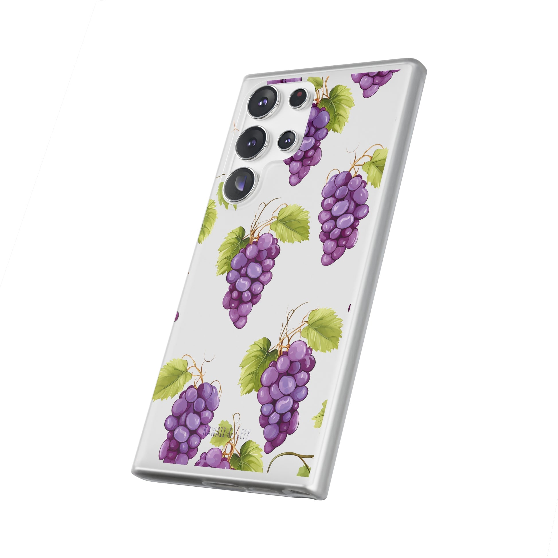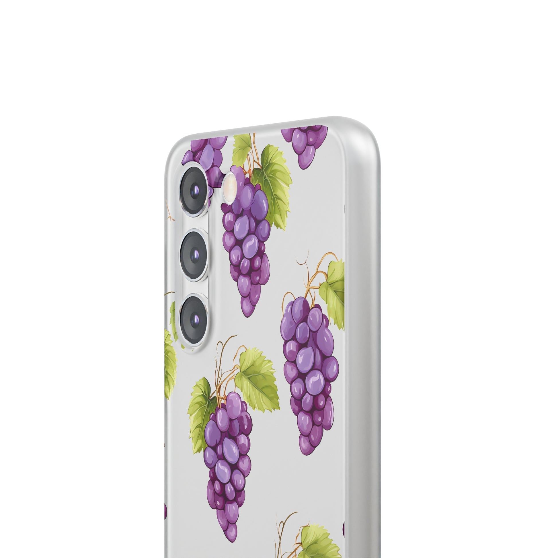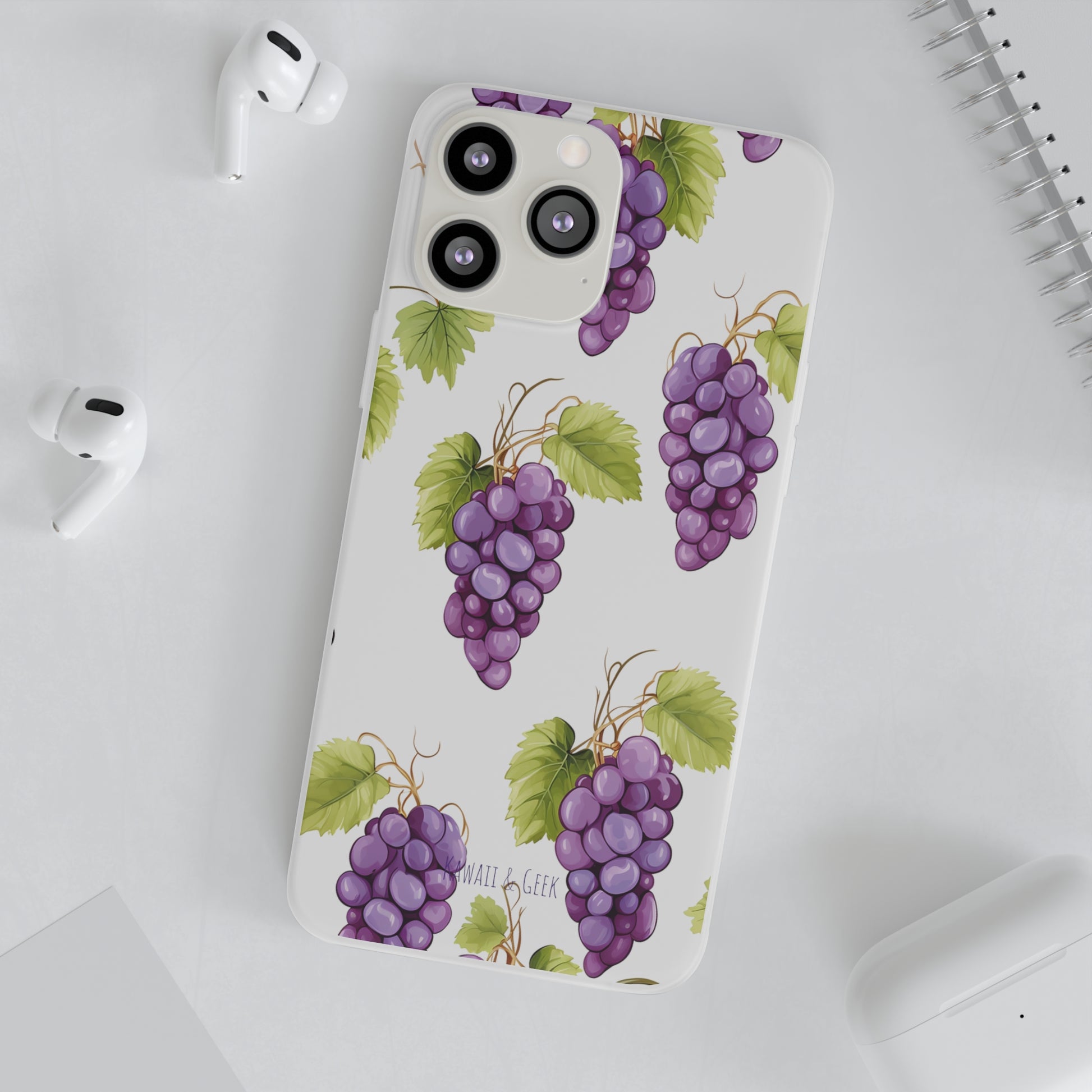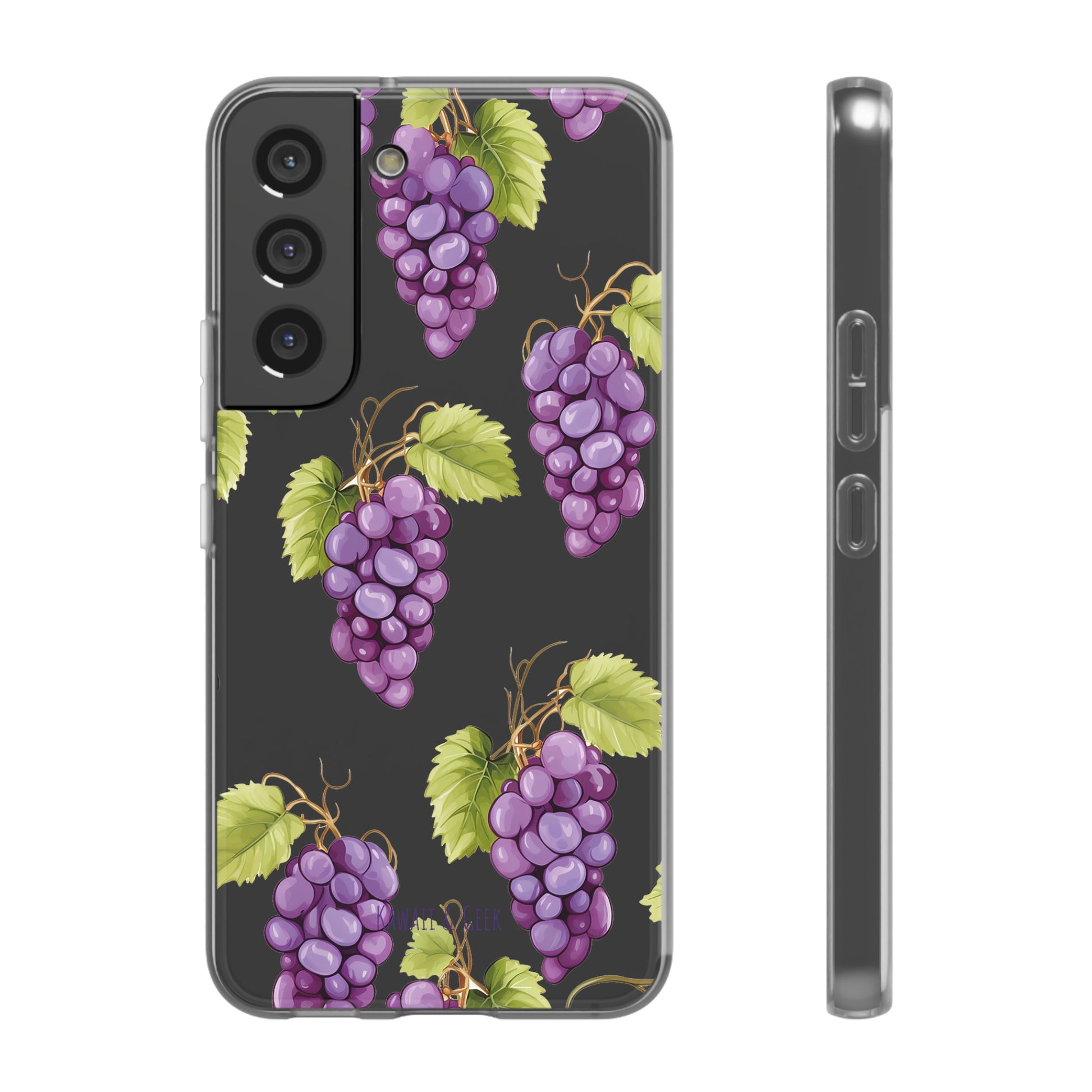 Keywords: Grape design case, Flexi phone cover, Transparent case, Vineyard accessory, Nature-inspired, Fruit motif, Wine lover gift, Premium protection, Cellphone chic, Artistic design, Harvest aesthetic, Elegant style, Summer vibes.The Flexi Case is designed with modern form and function in mind. It’s made from a premium-quality clear TPU (Thermoplastic Polyurethane) that holds up to wear and tear with style. Perfect for people who love a beautiful, slim-fitting case that doesn’t overwhelm the phone’s design. Plus, you can offer your customers gift packaging options.