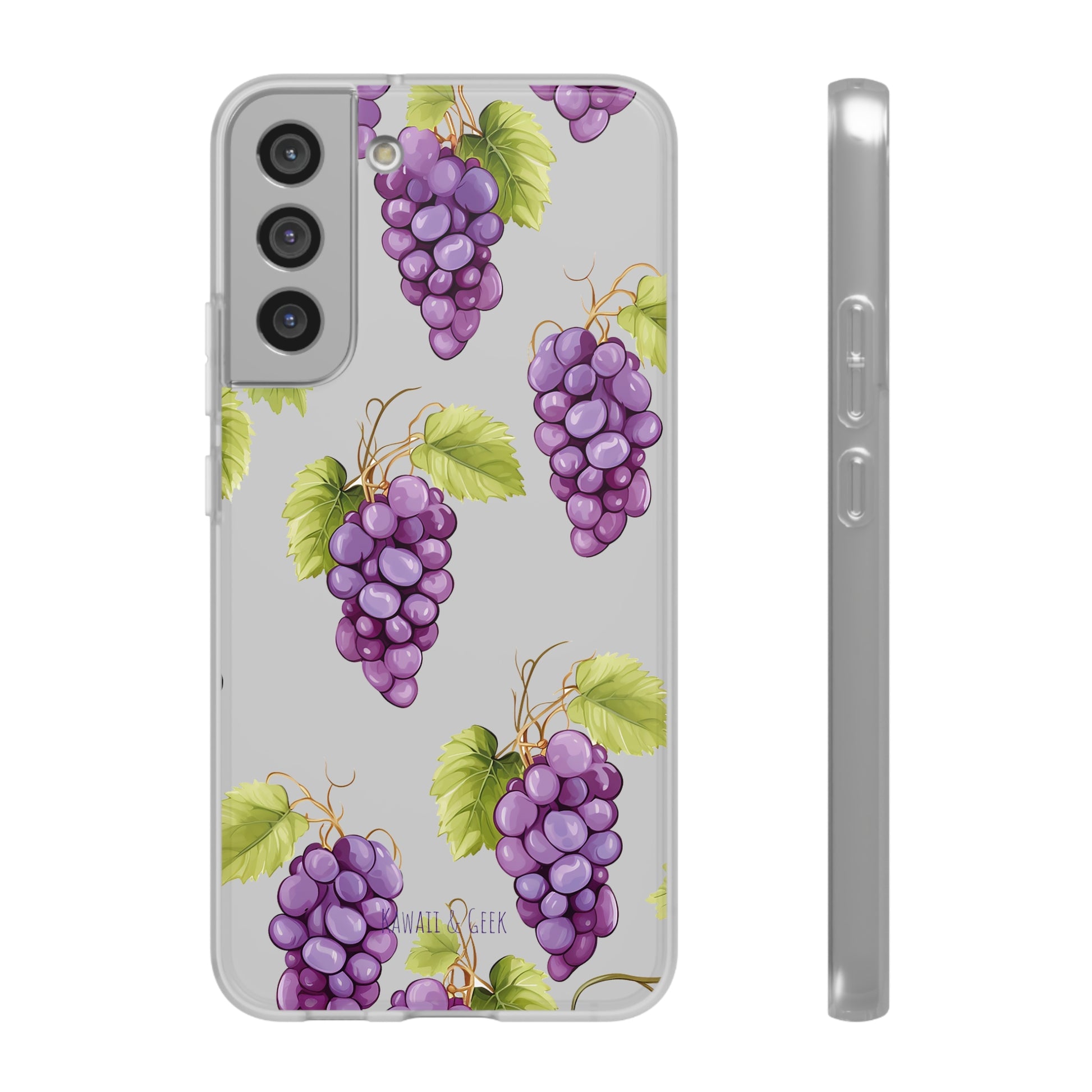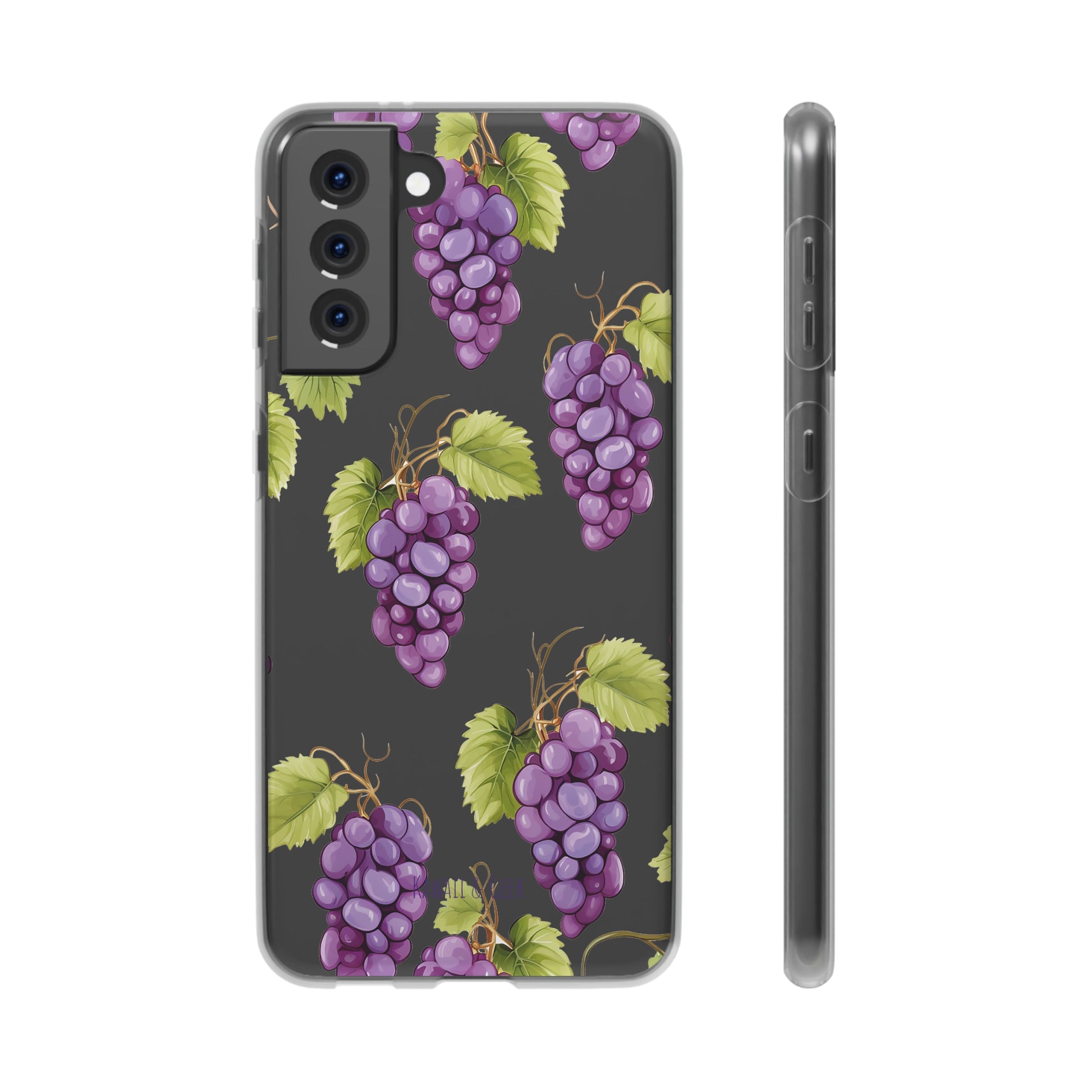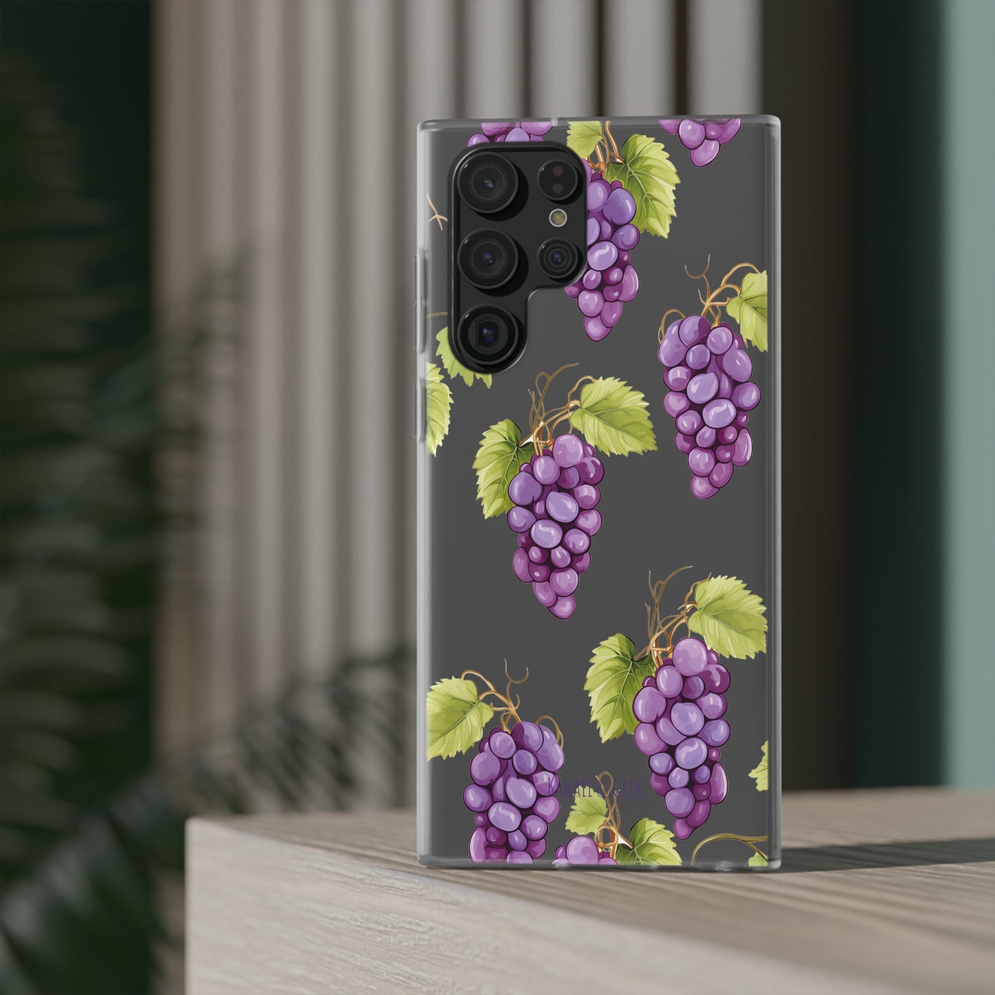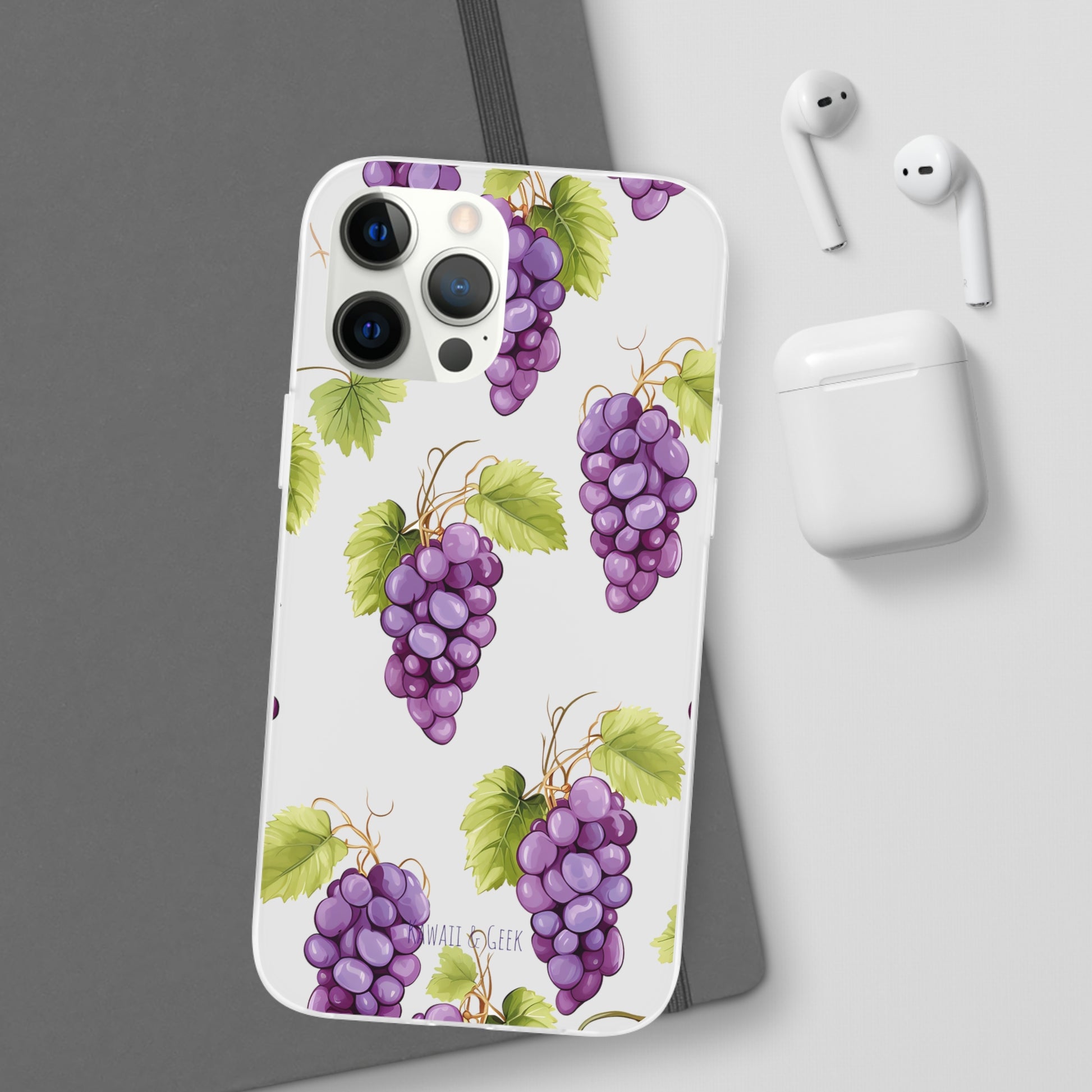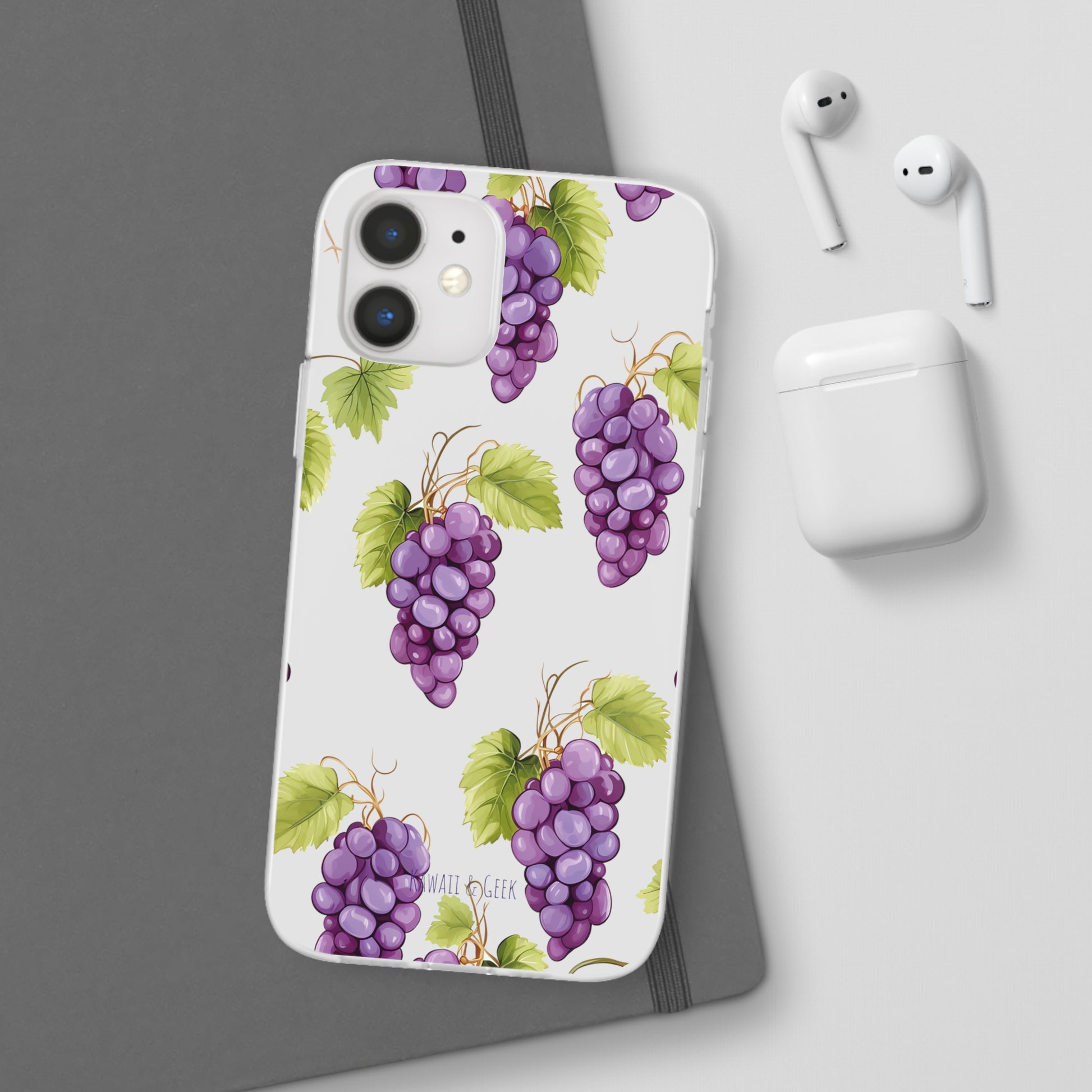 Keywords: Grape design case, Flexi phone cover, Transparent case, Vineyard accessory, Nature-inspired, Fruit motif, Wine lover gift, Premium protection, Cellphone chic, Artistic design, Harvest aesthetic, Elegant style, Summer vibes.The Flexi Case is designed with modern form and function in mind. It’s made from a premium-quality clear TPU (Thermoplastic Polyurethane) that holds up to wear and tear with style. Perfect for people who love a beautiful, slim-fitting case that doesn’t overwhelm the phone’s design. Plus, you can offer your customers gift packaging options.