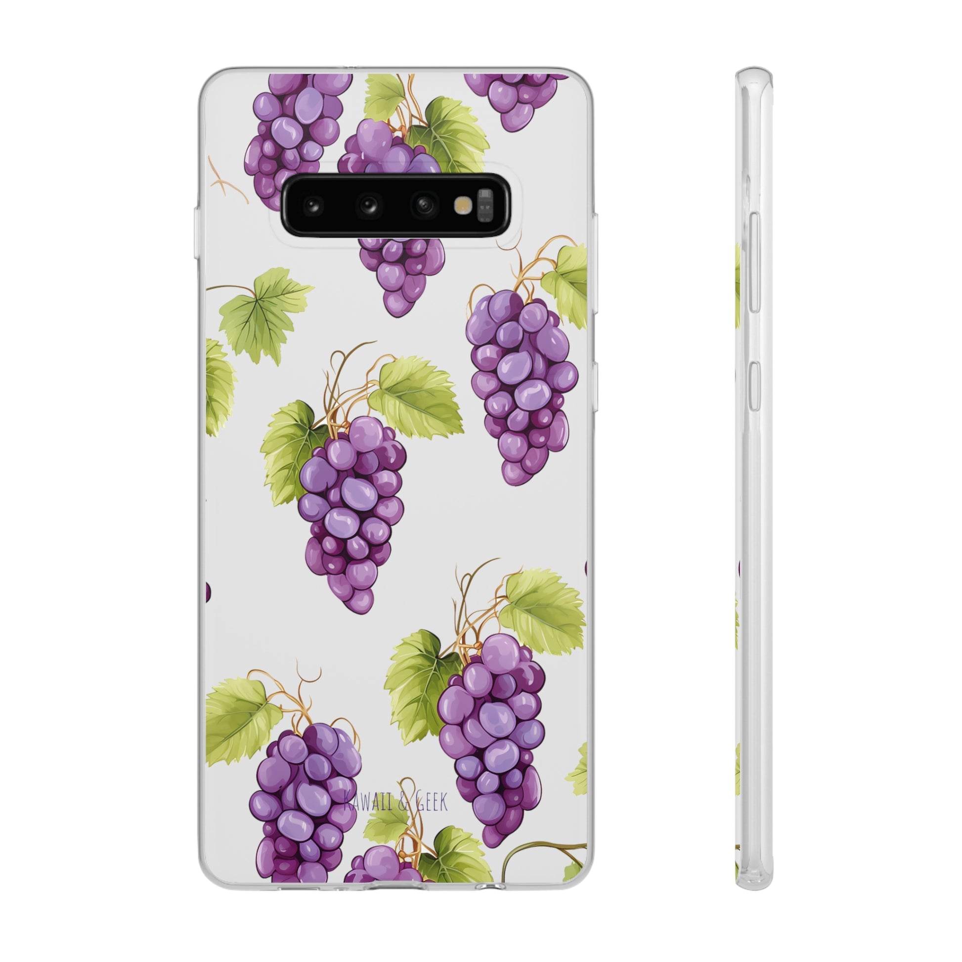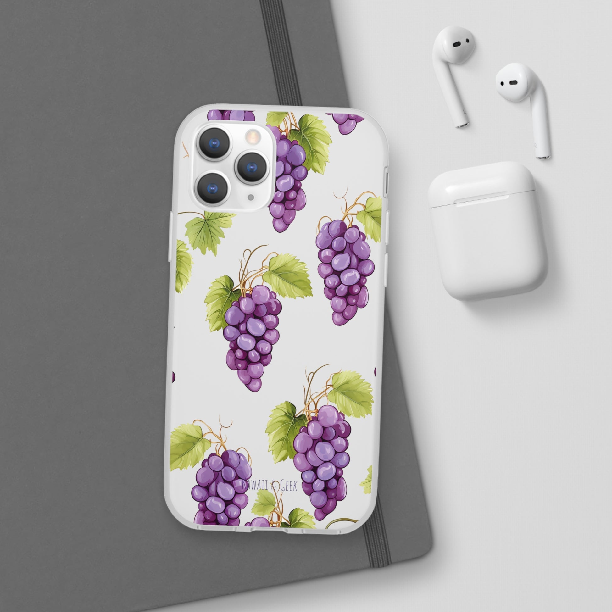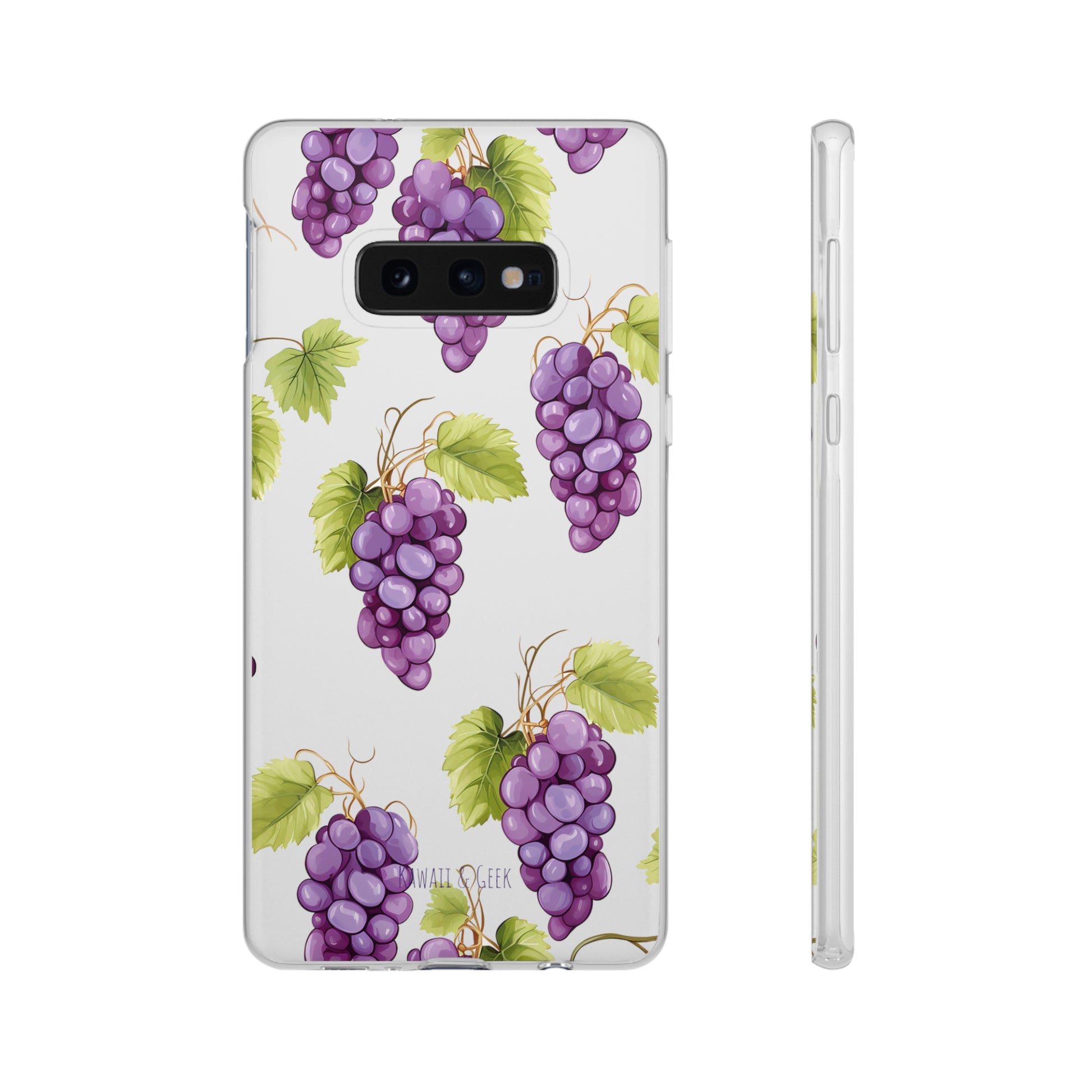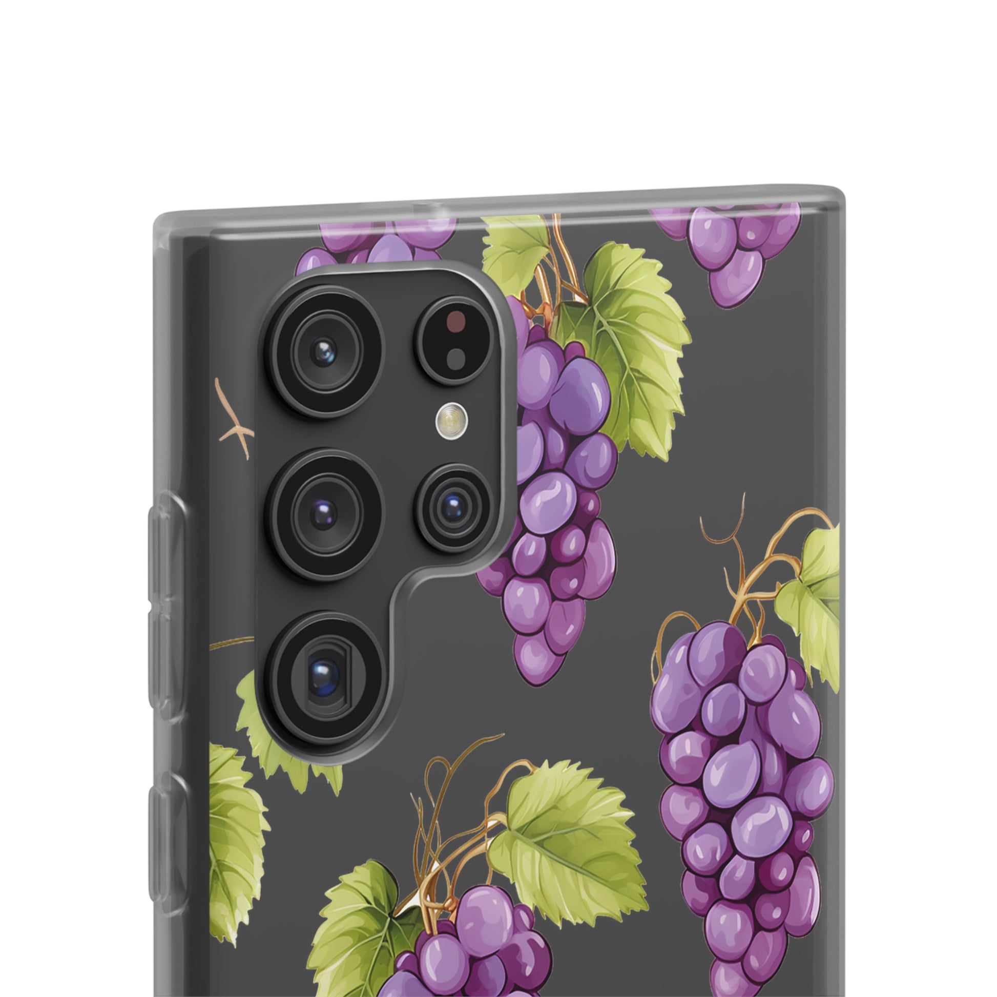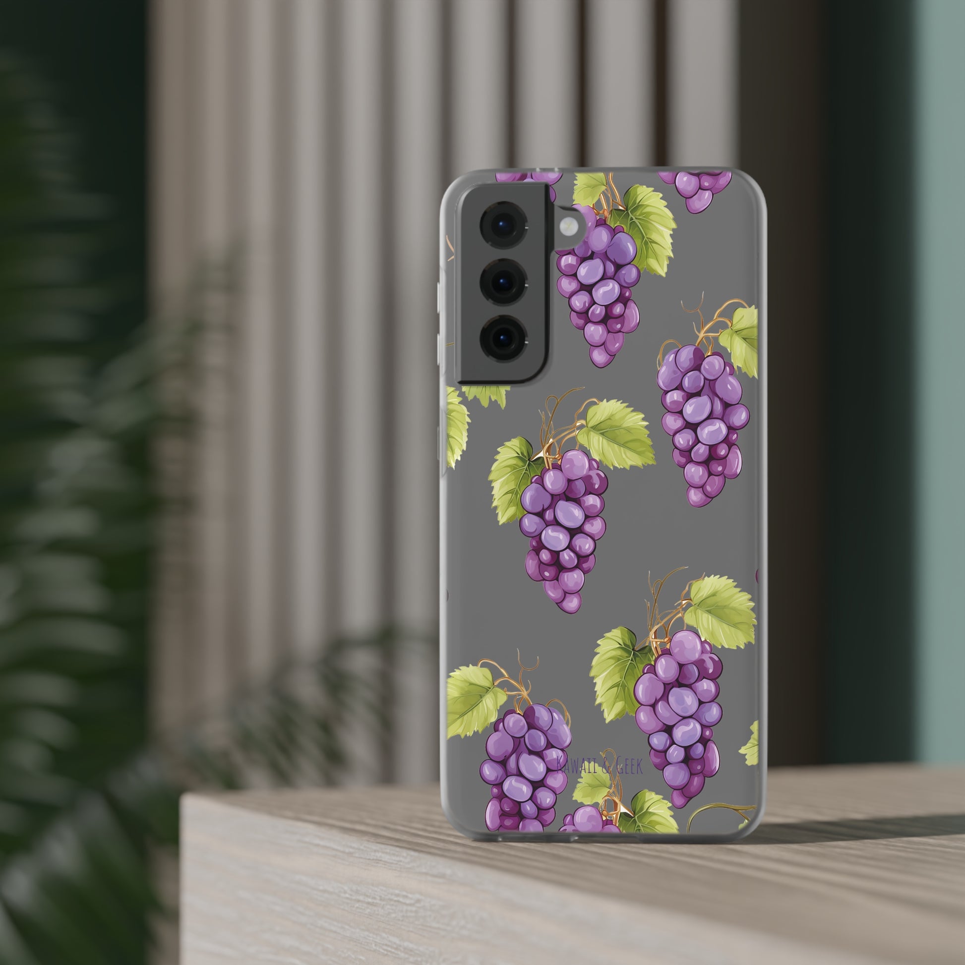 Keywords: Grape design case, Flexi phone cover, Transparent case, Vineyard accessory, Nature-inspired, Fruit motif, Wine lover gift, Premium protection, Cellphone chic, Artistic design, Harvest aesthetic, Elegant style, Summer vibes.The Flexi Case is designed with modern form and function in mind. It’s made from a premium-quality clear TPU (Thermoplastic Polyurethane) that holds up to wear and tear with style. Perfect for people who love a beautiful, slim-fitting case that doesn’t overwhelm the phone’s design. Plus, you can offer your customers gift packaging options.