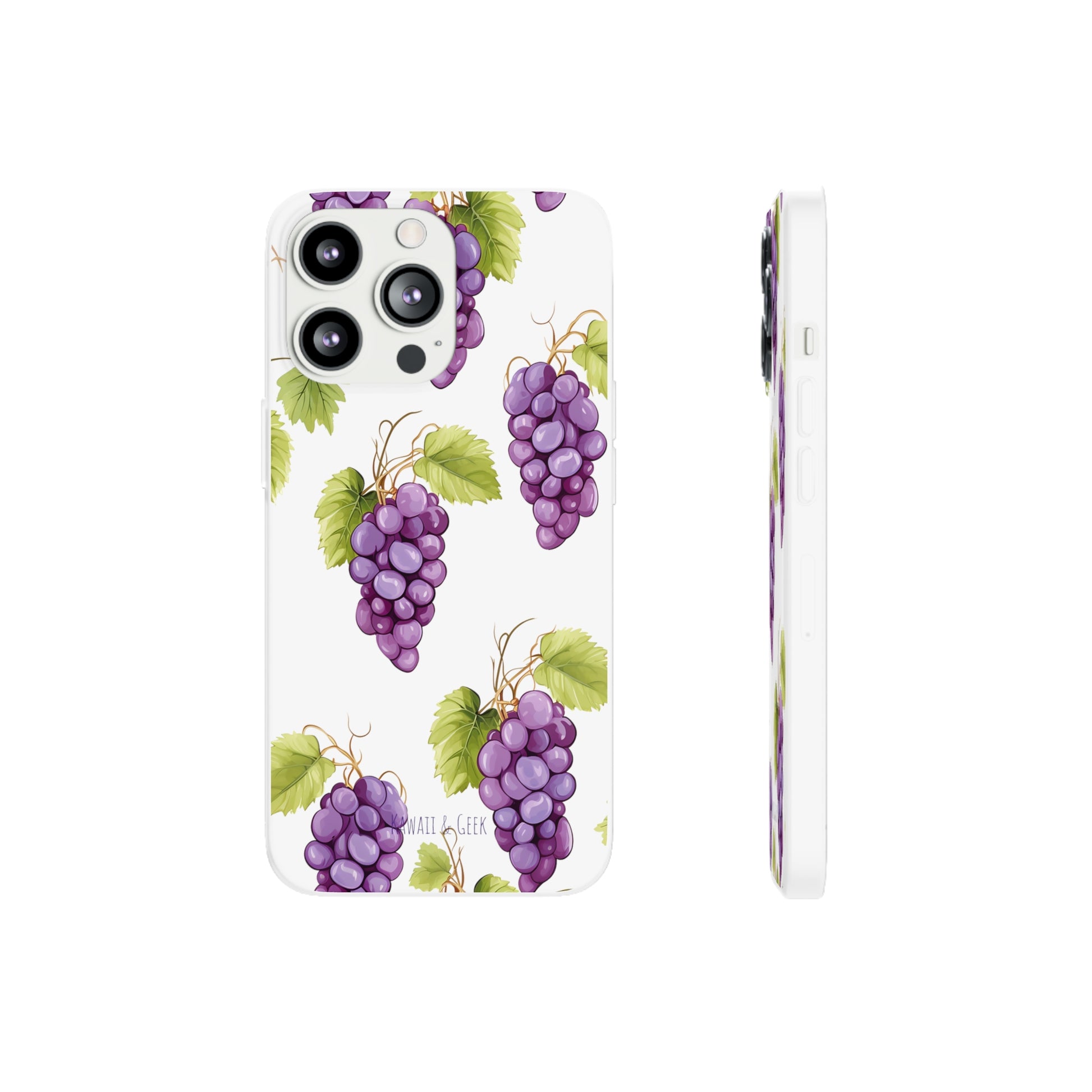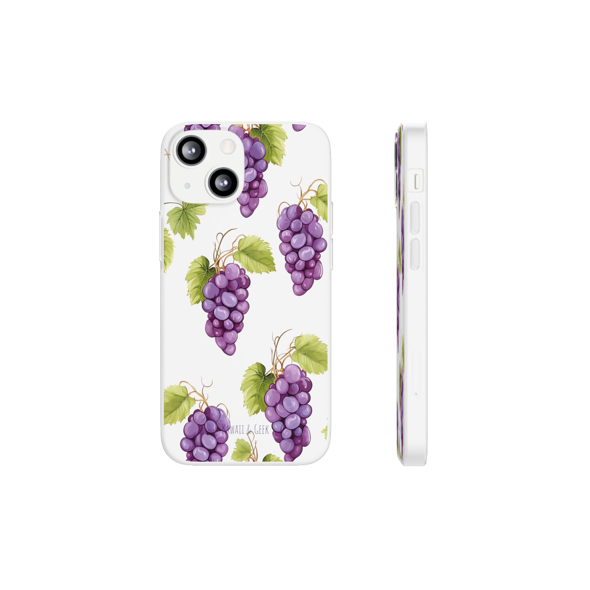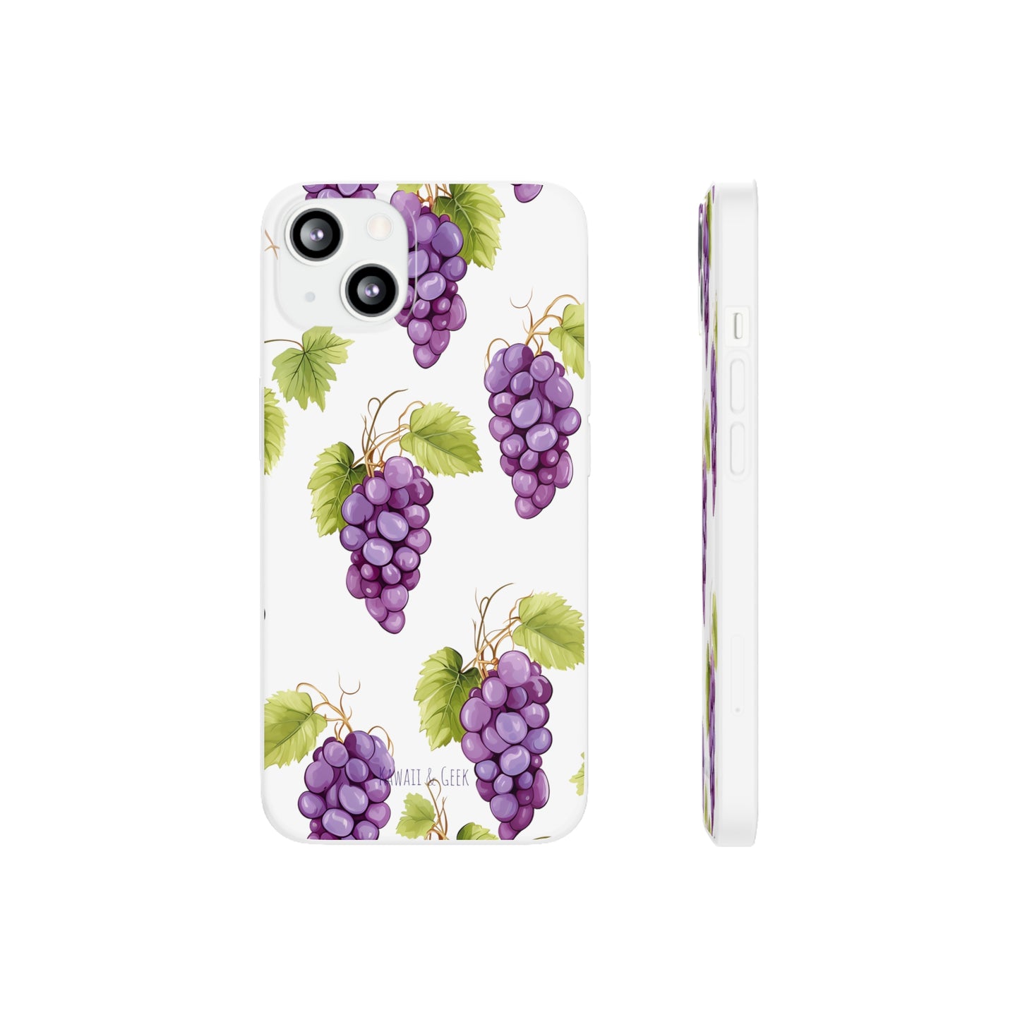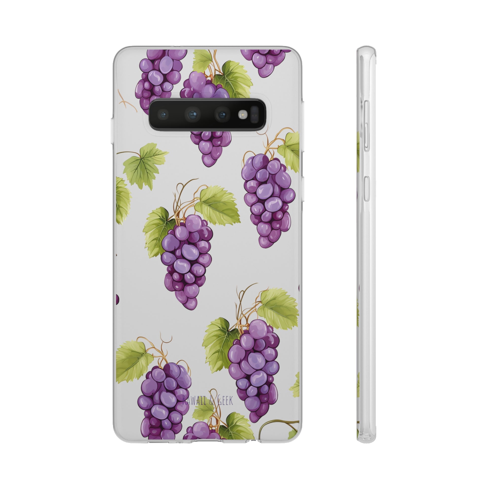 Keywords: Grape design case, Flexi phone cover, Transparent case, Vineyard accessory, Nature-inspired, Fruit motif, Wine lover gift, Premium protection, Cellphone chic, Artistic design, Harvest aesthetic, Elegant style, Summer vibes.The Flexi Case is designed with modern form and function in mind. It’s made from a premium-quality clear TPU (Thermoplastic Polyurethane) that holds up to wear and tear with style. Perfect for people who love a beautiful, slim-fitting case that doesn’t overwhelm the phone’s design. Plus, you can offer your customers gift packaging options.