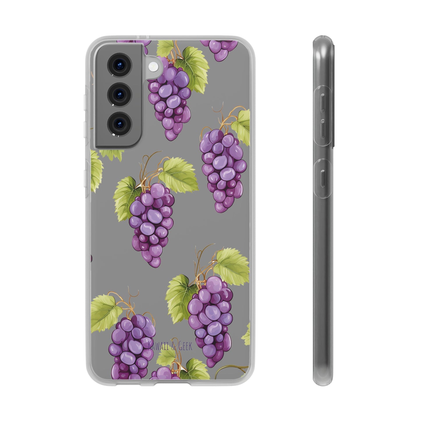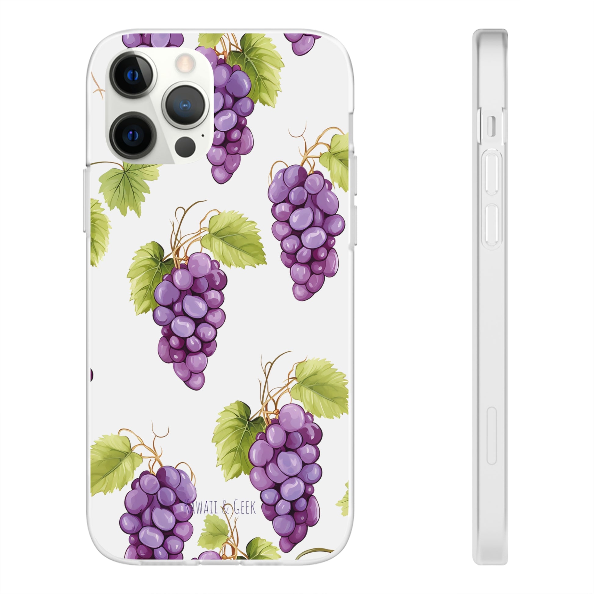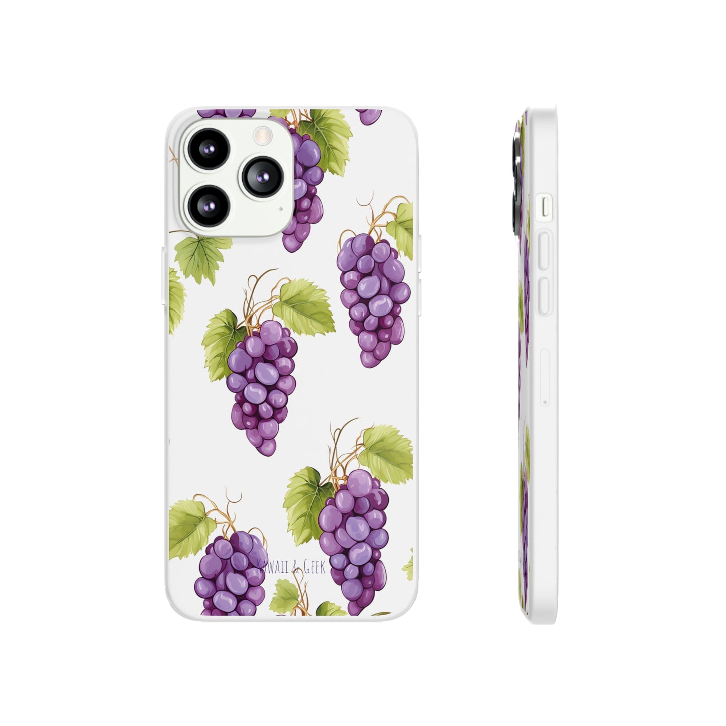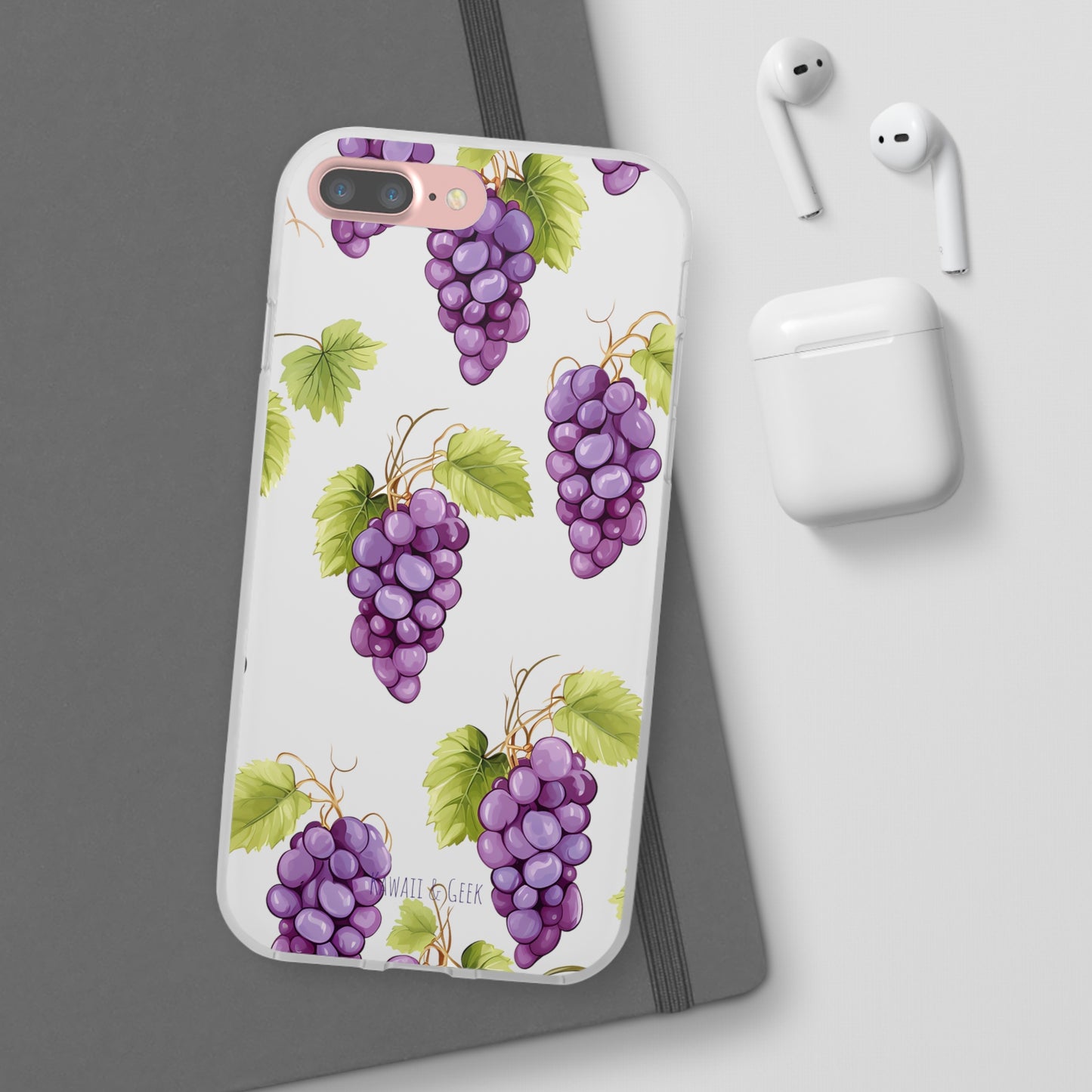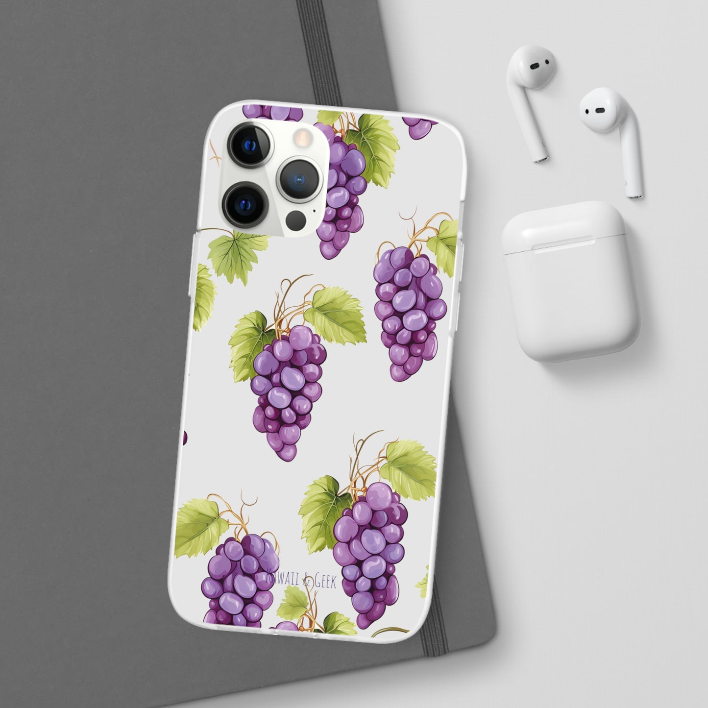 Keywords: Grape design case, Flexi phone cover, Transparent case, Vineyard accessory, Nature-inspired, Fruit motif, Wine lover gift, Premium protection, Cellphone chic, Artistic design, Harvest aesthetic, Elegant style, Summer vibes.The Flexi Case is designed with modern form and function in mind. It’s made from a premium-quality clear TPU (Thermoplastic Polyurethane) that holds up to wear and tear with style. Perfect for people who love a beautiful, slim-fitting case that doesn’t overwhelm the phone’s design. Plus, you can offer your customers gift packaging options.