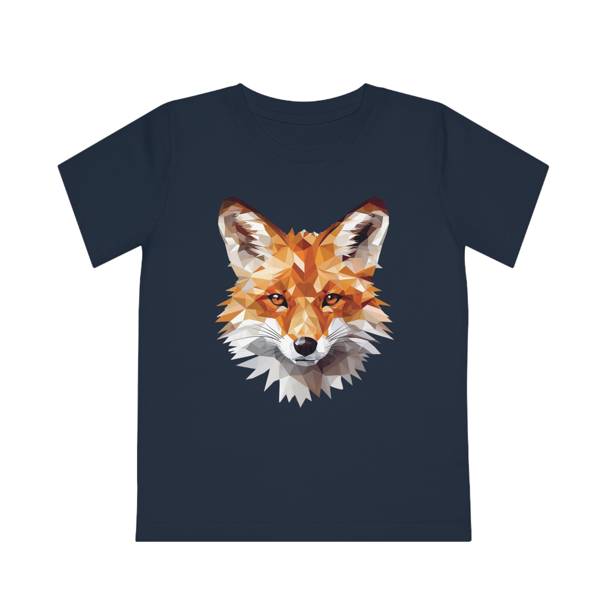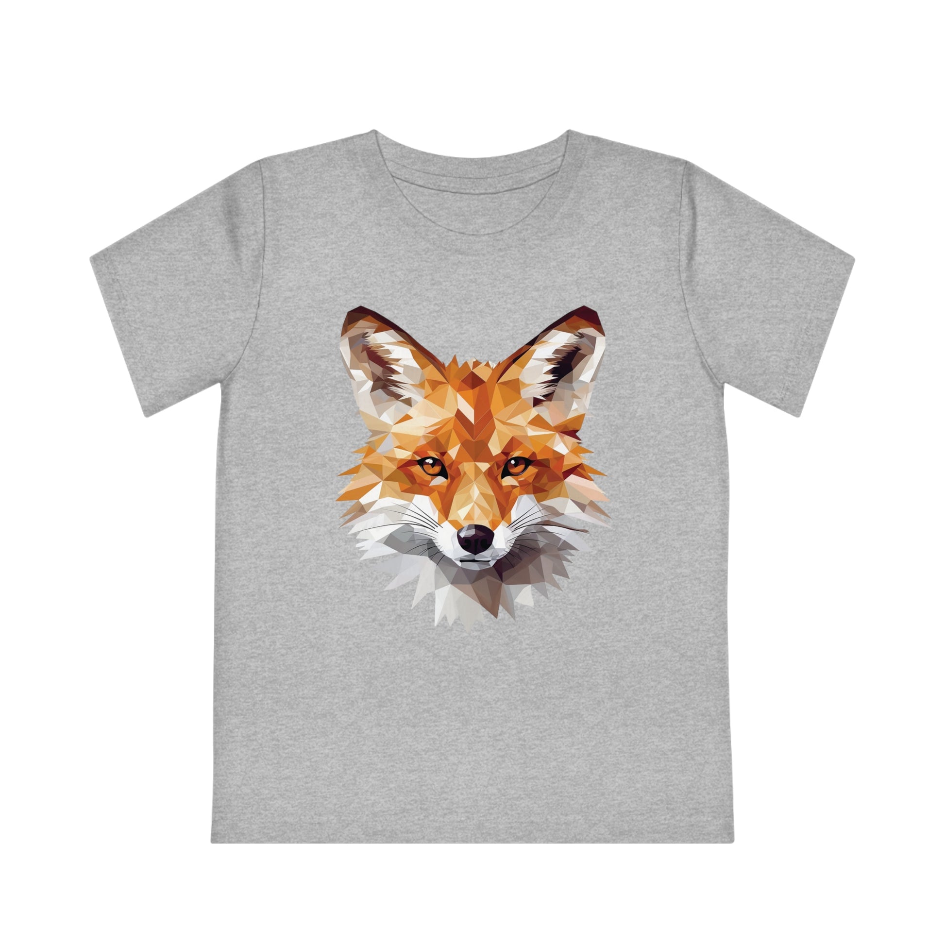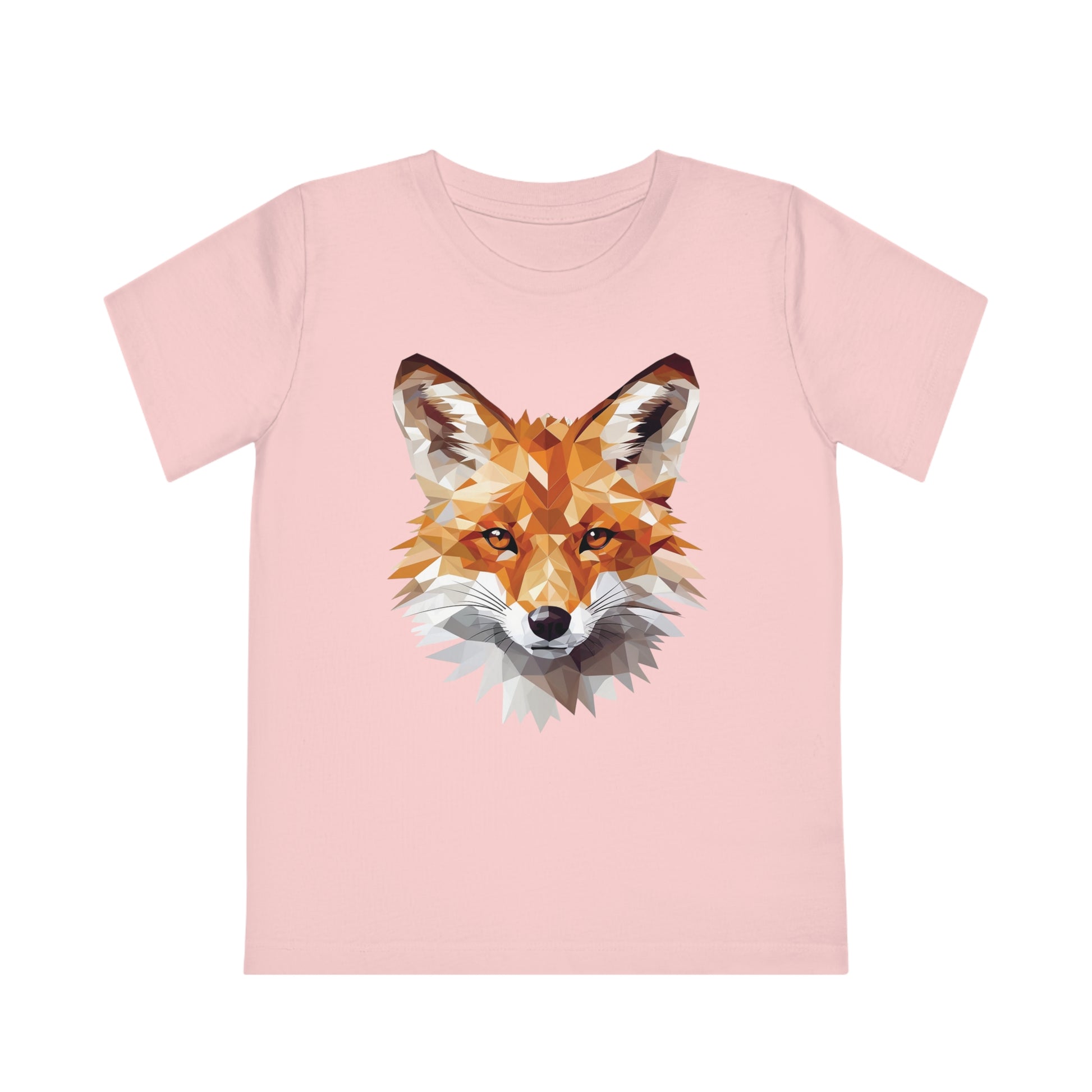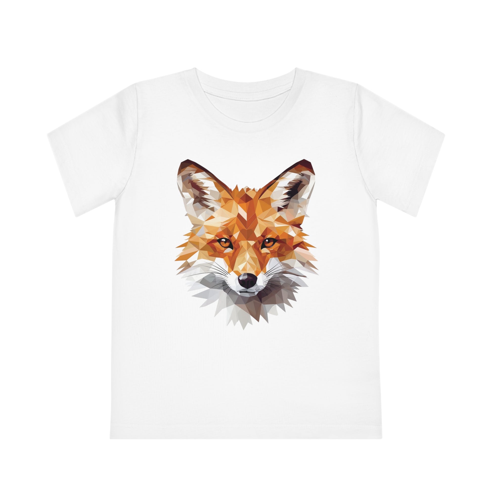 Keywords: Fox kids t-shirt, polygonal geometric style, eco-friendly materials, clever charm, playful design, unique style, animal lover, sustainable fashion.