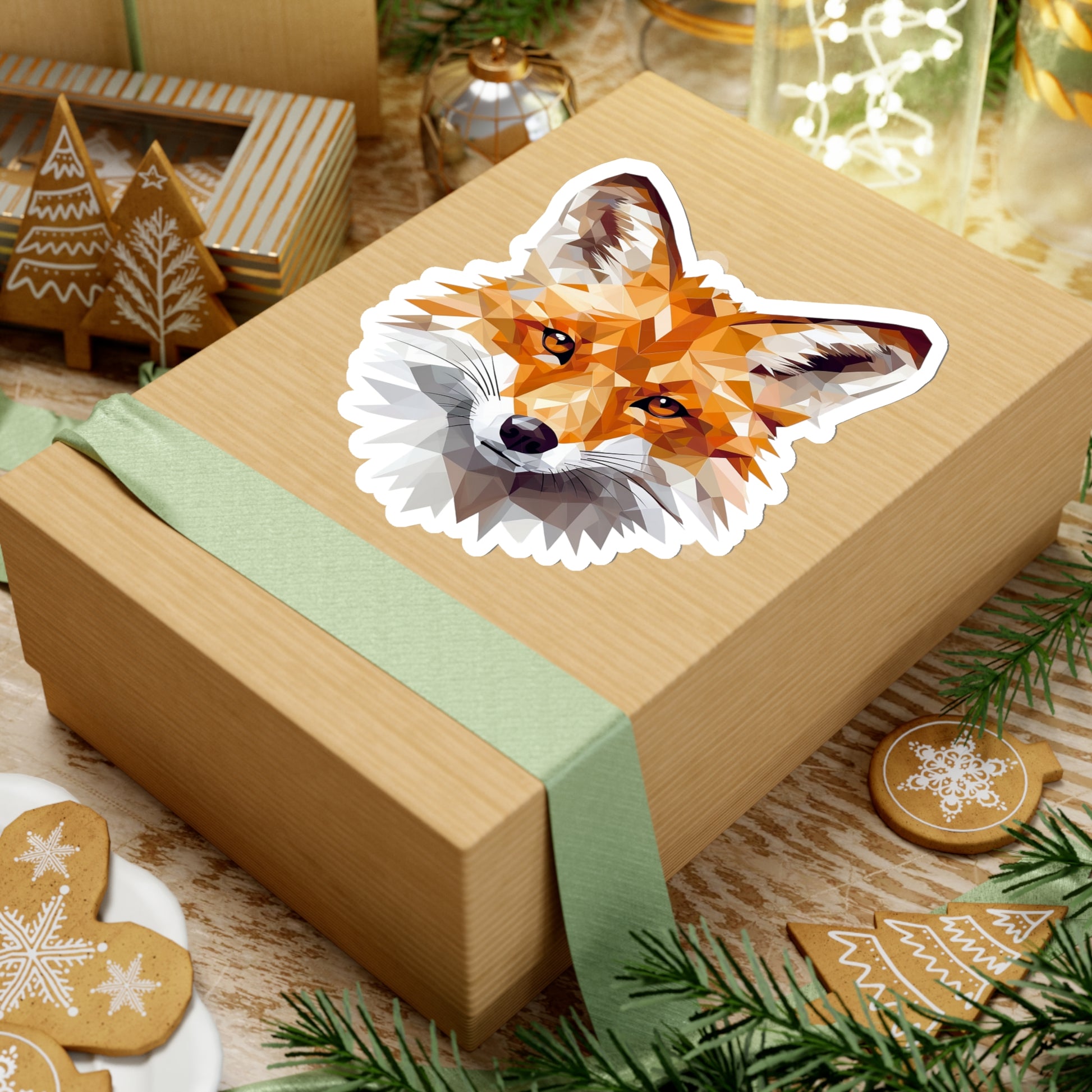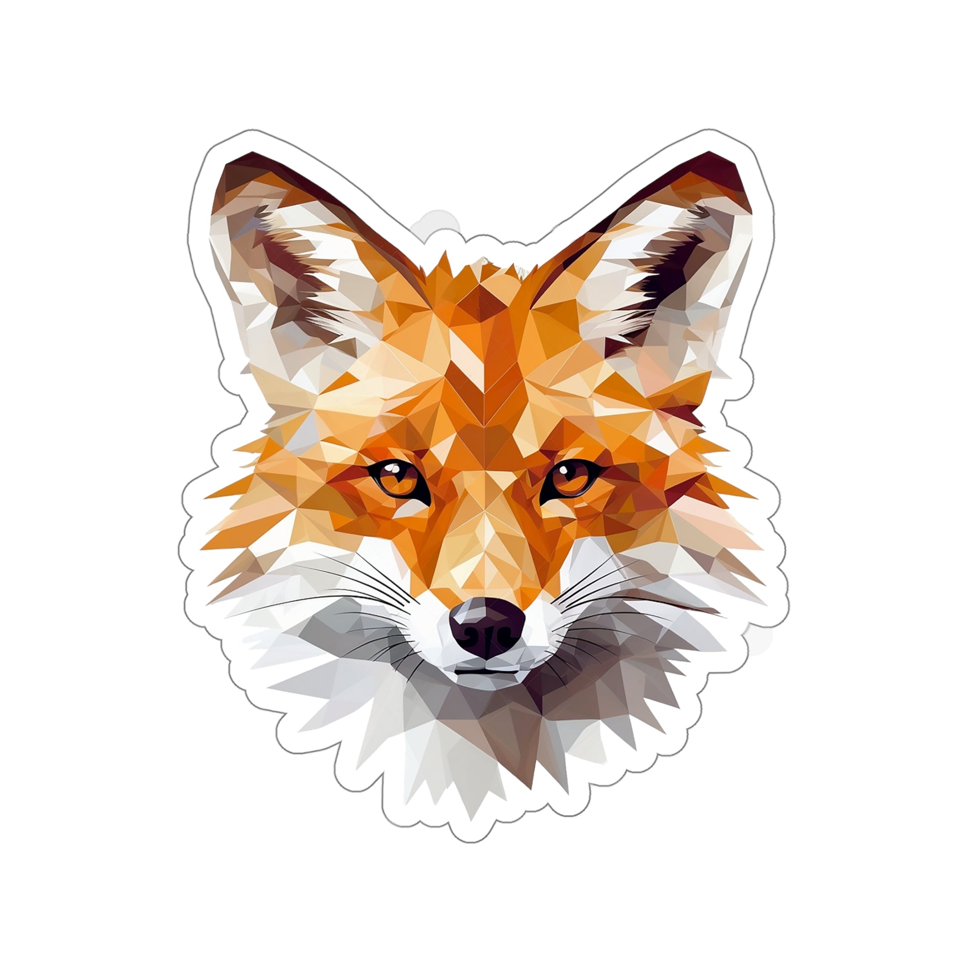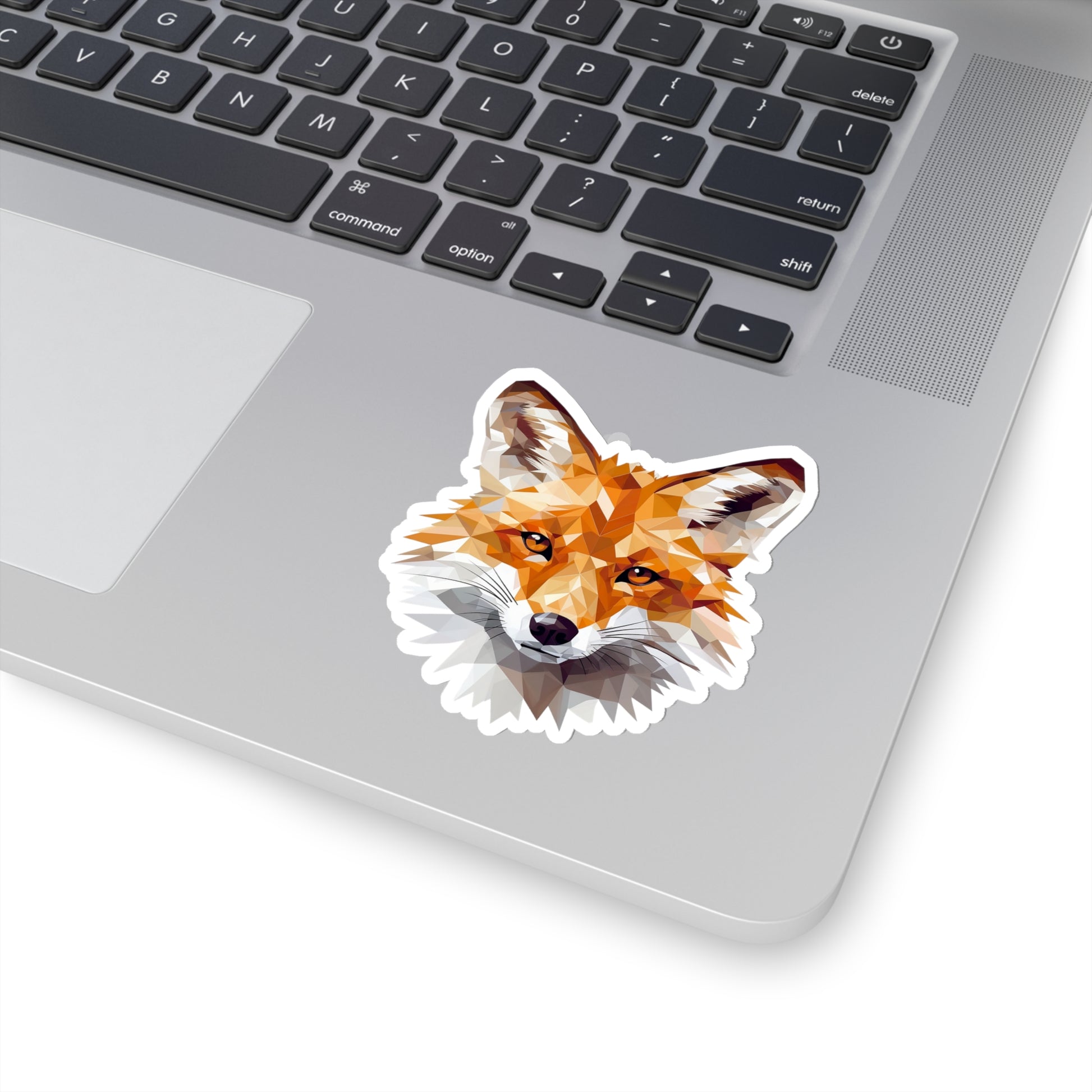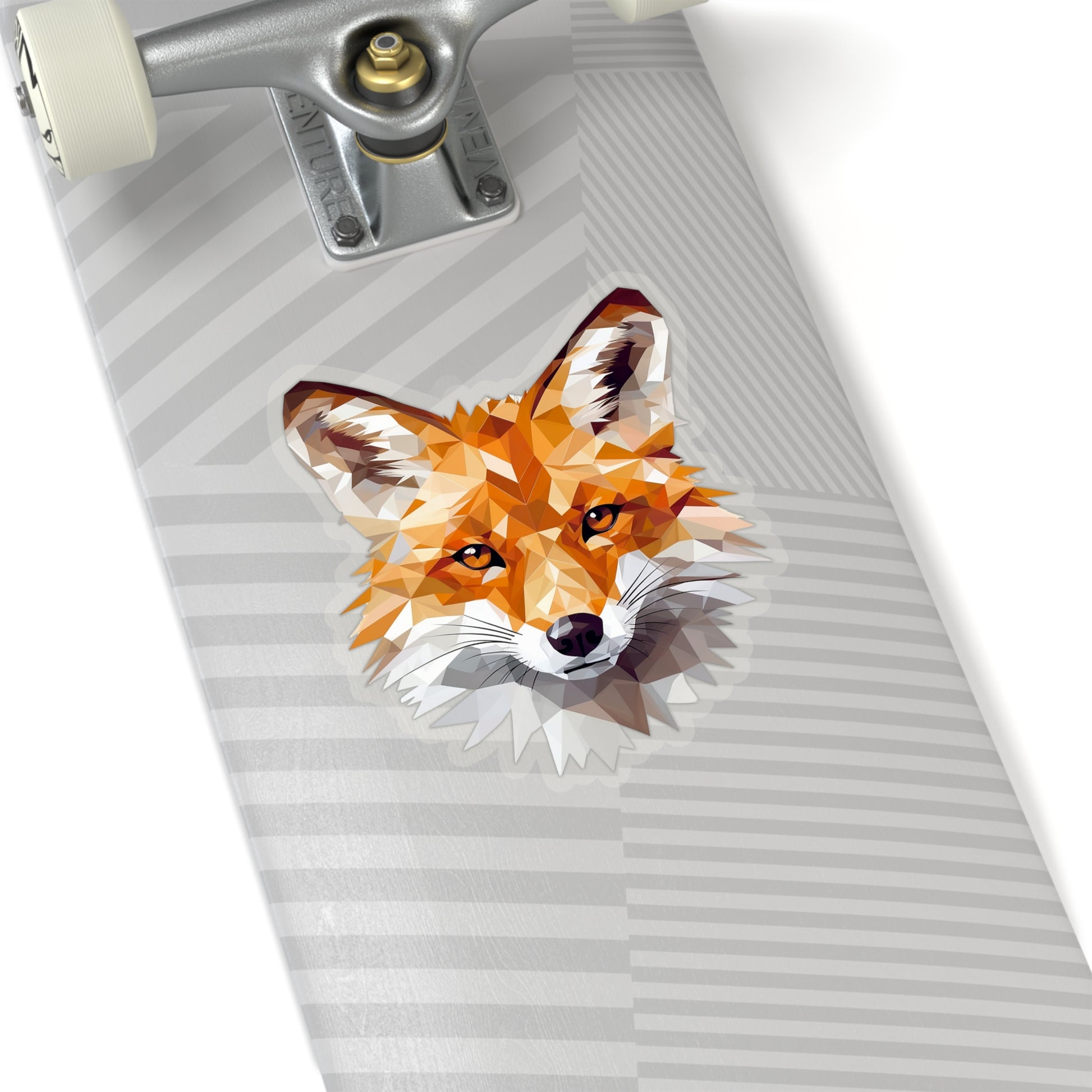 Keywords: Fox sticker, geometric style, vector design, cunning spirit, sharp shapes, vibrant colors, modern and eye-catching, wildlife enthusiast.