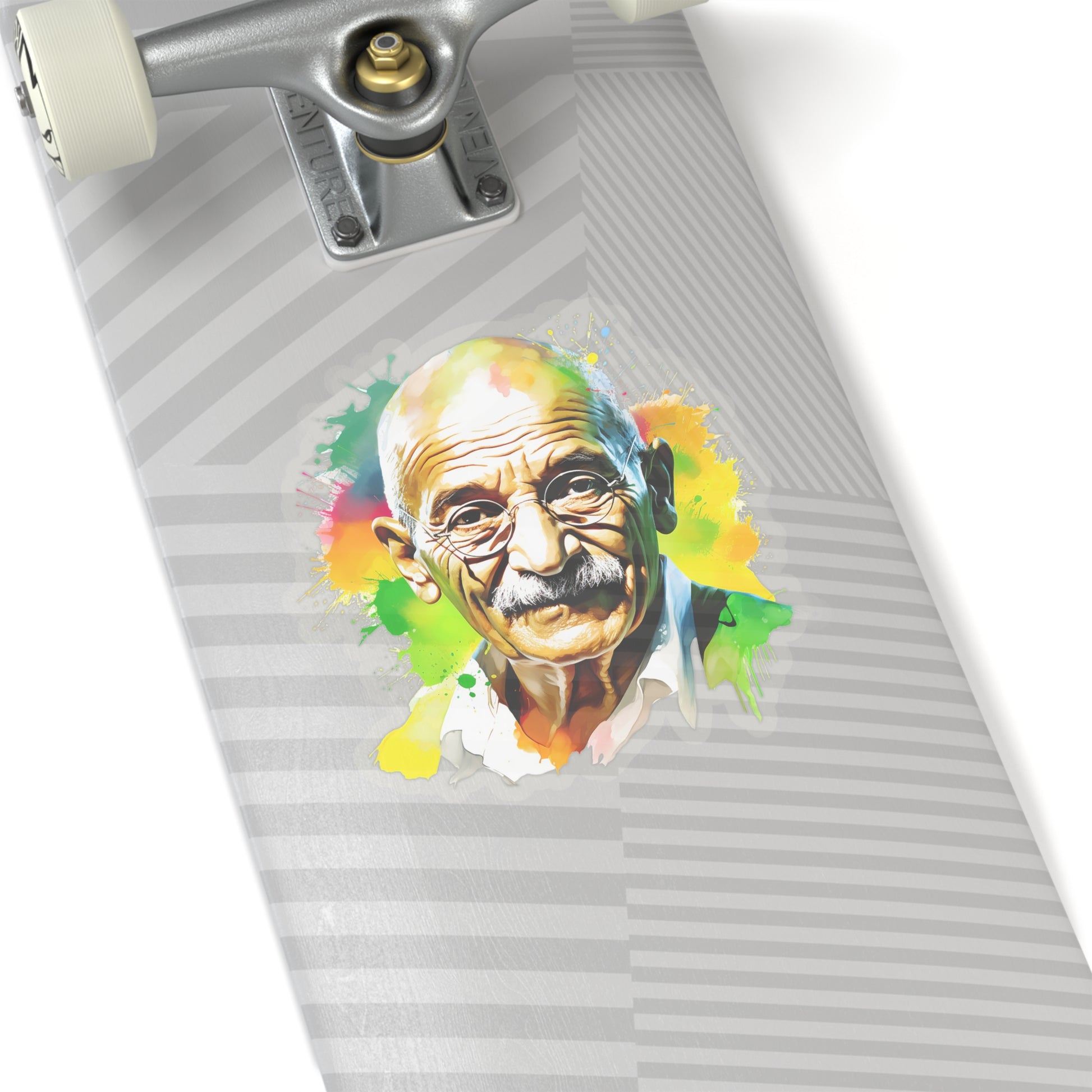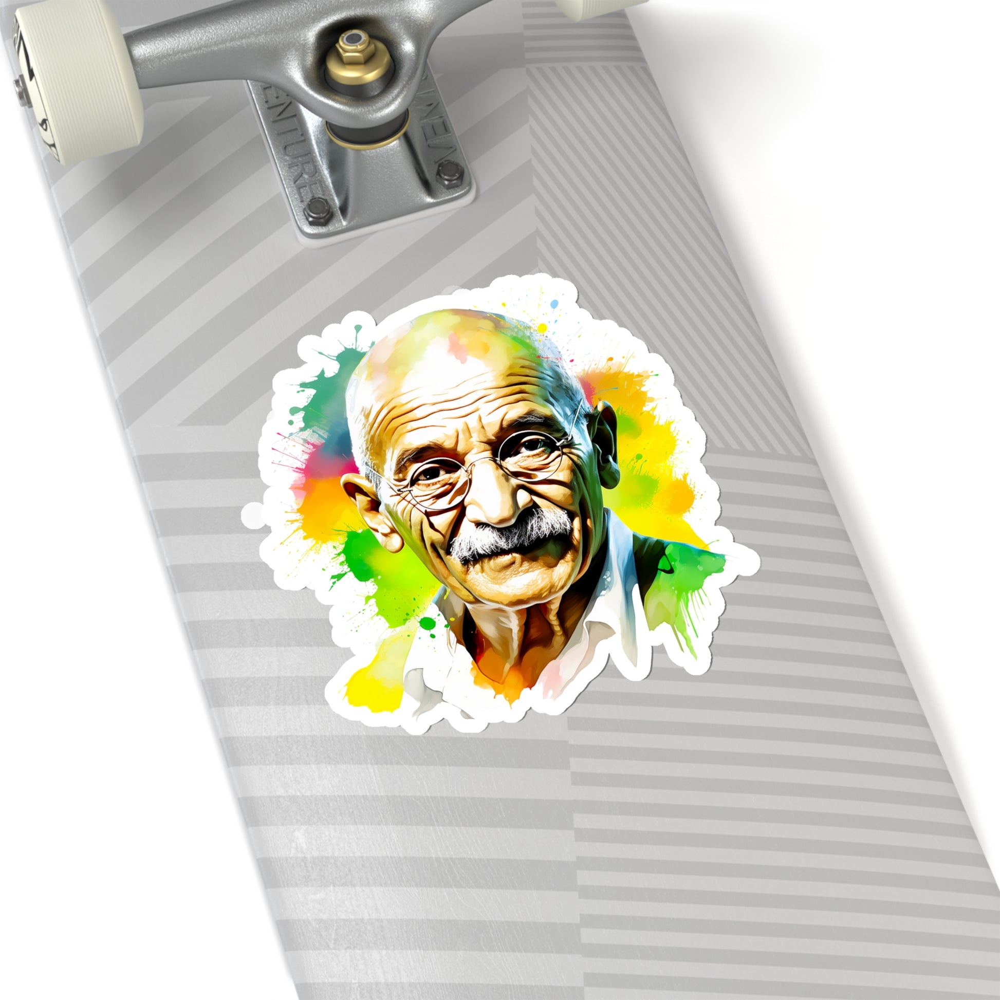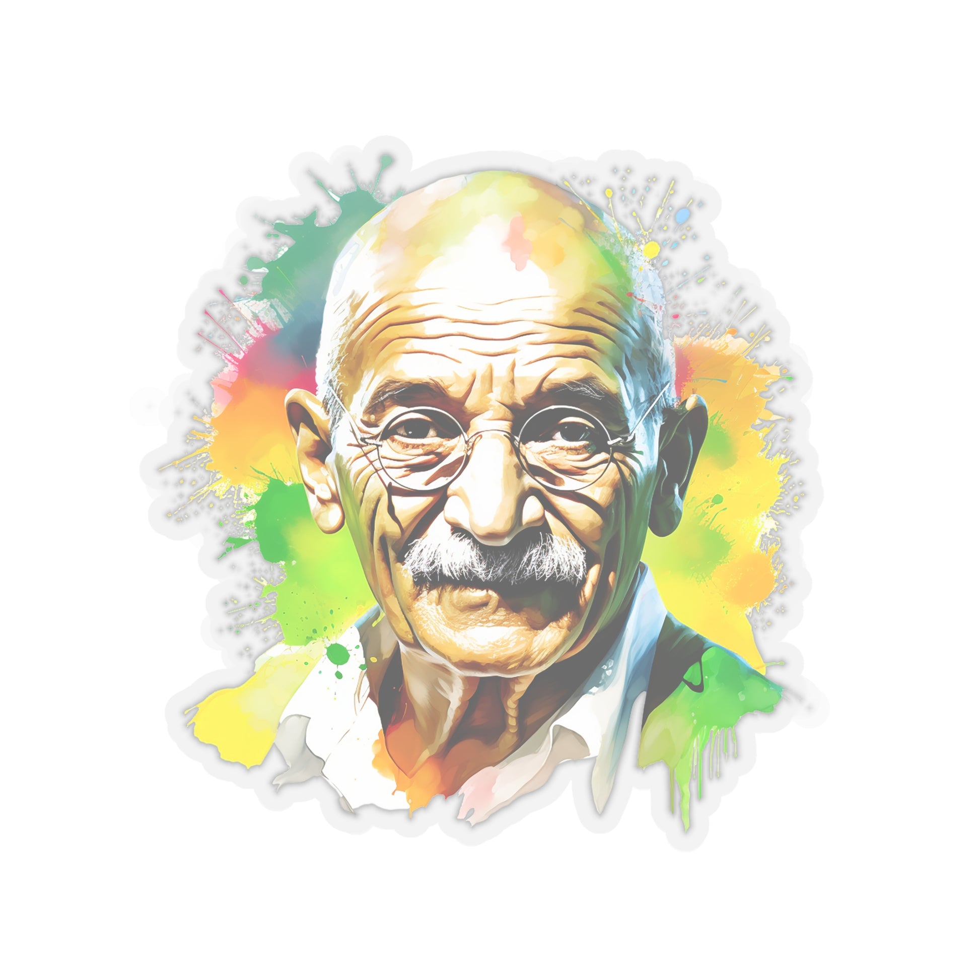 Keywords: Gandhi portrait, Mahatma sticker, Watercolor art, Peace symbol, Indian leader, Non-violence decal, Freedom icon, Salt March, British Raj resist, Indian history, Satyagraha spirit, Independence tribute, National pride.
