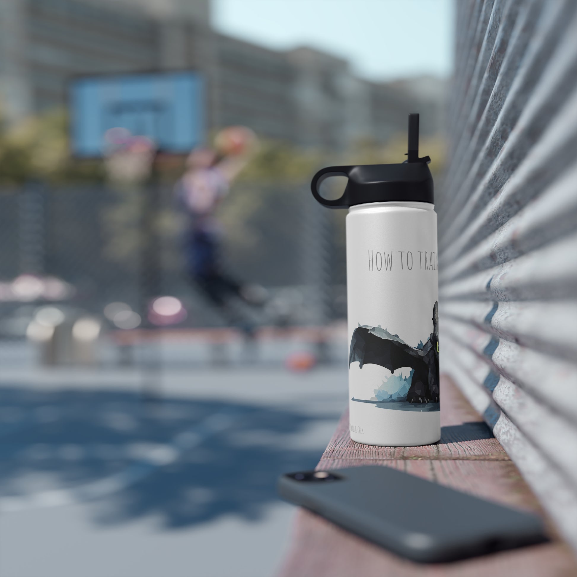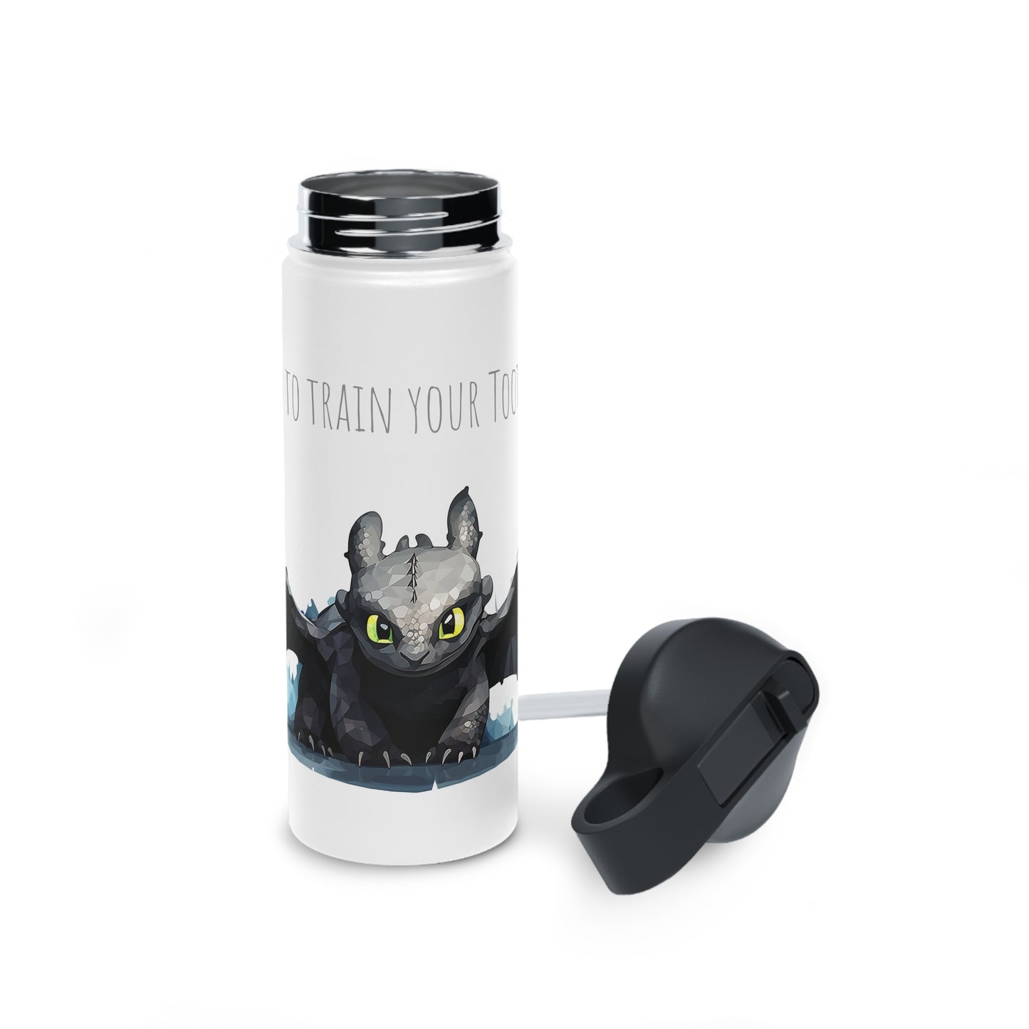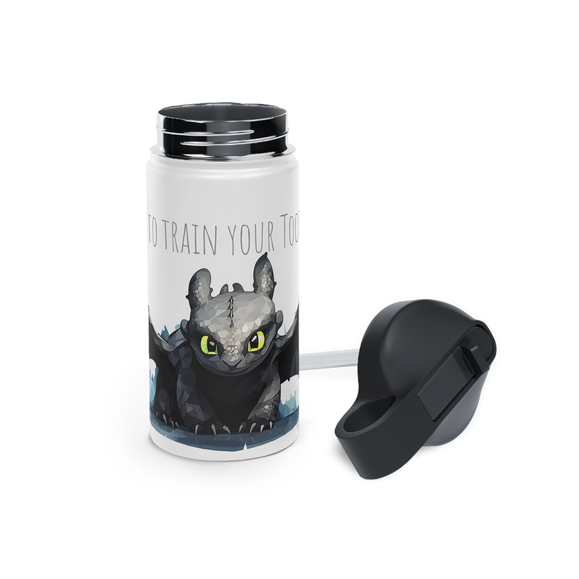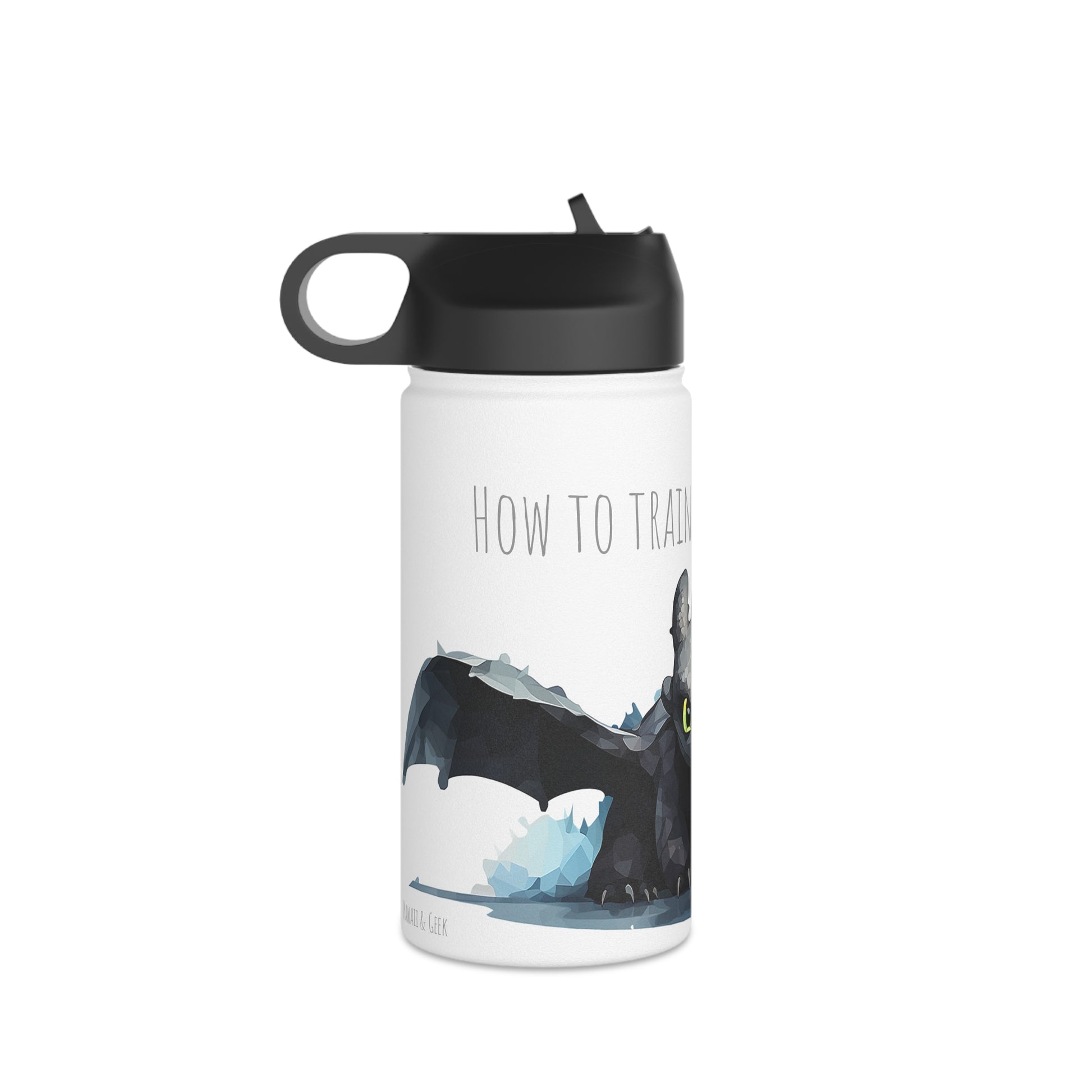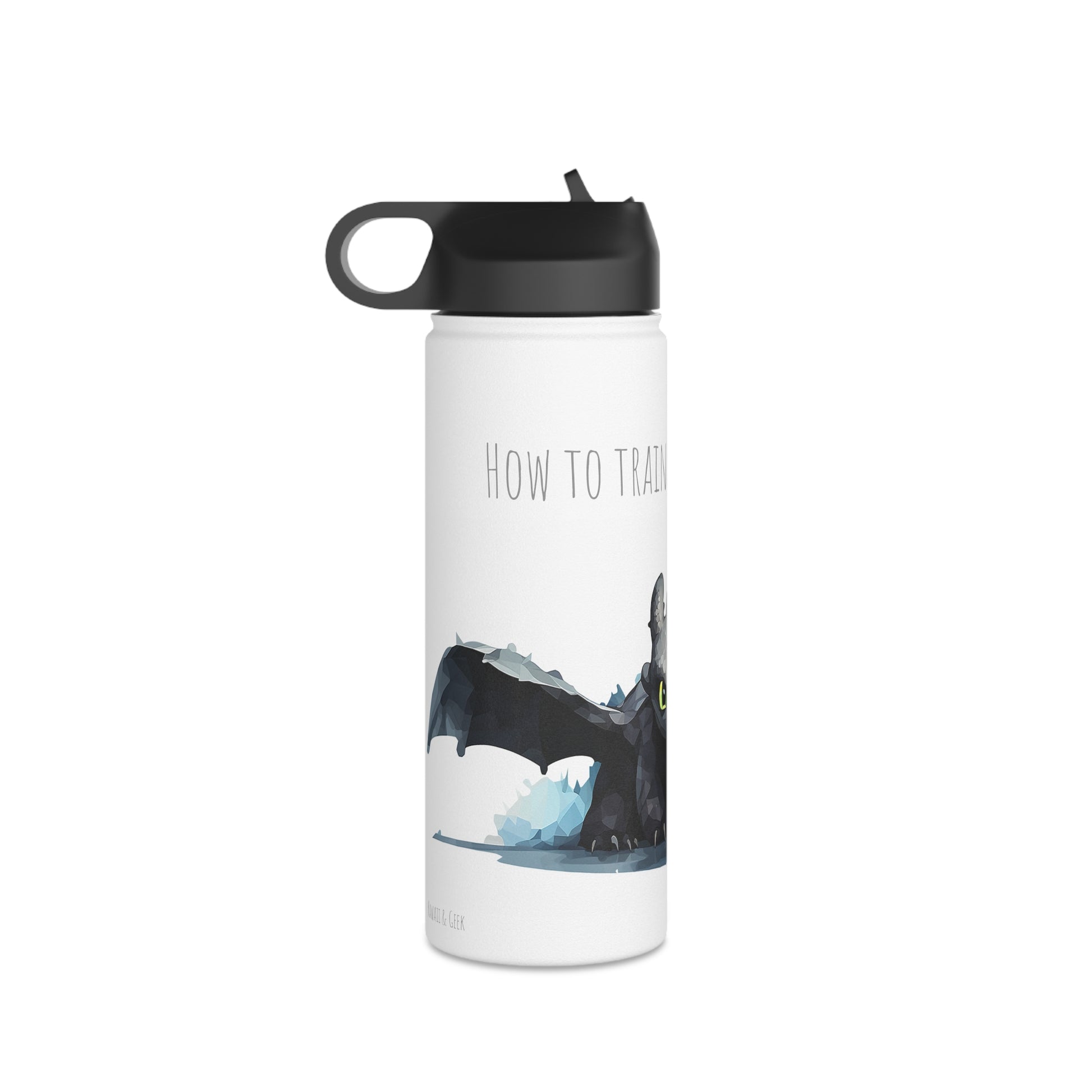 Unleash the adventurer in you with our geometric Toothless-inspired stainless steel water bottle. Embodying the beloved Night Fury from "How to Train Your Dragon," the design combines modern geometric artistry with the playful phrase, "How to train your Toothless." Crafted for fans and adventurers alike, this bottle ensures your drinks stay at the desired temperature as you embark on your own dragon-riding journey.