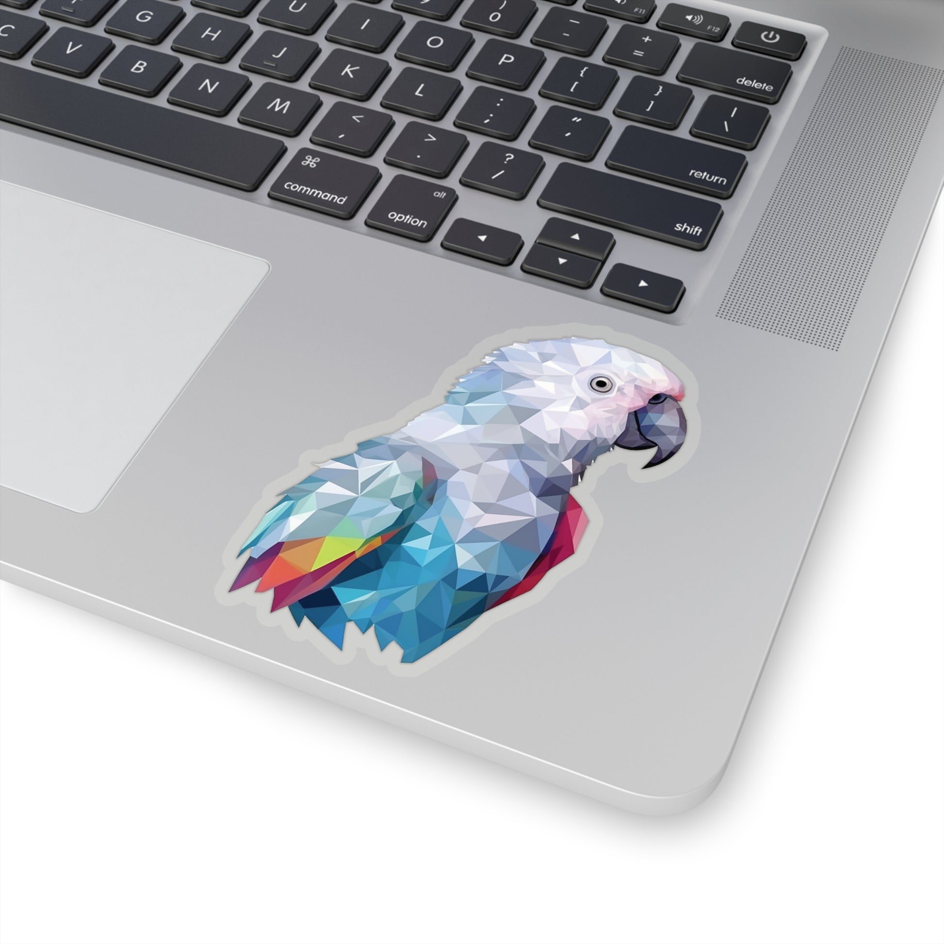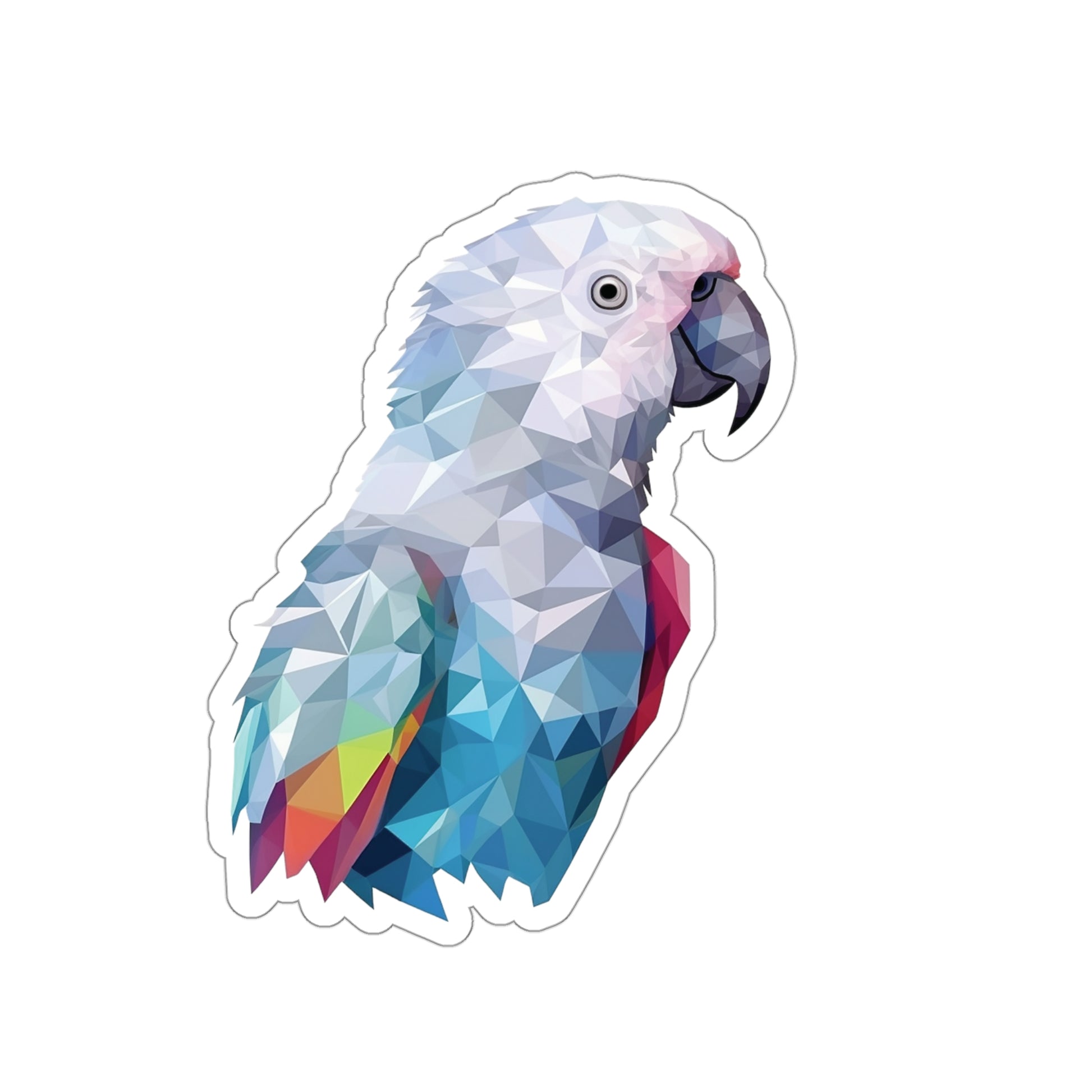 Keywords: grey Parrot sticker, geometric style, vector design, graceful avian presence, intricate patterns, elegant lines, modern and captivating, bird enthusiast.