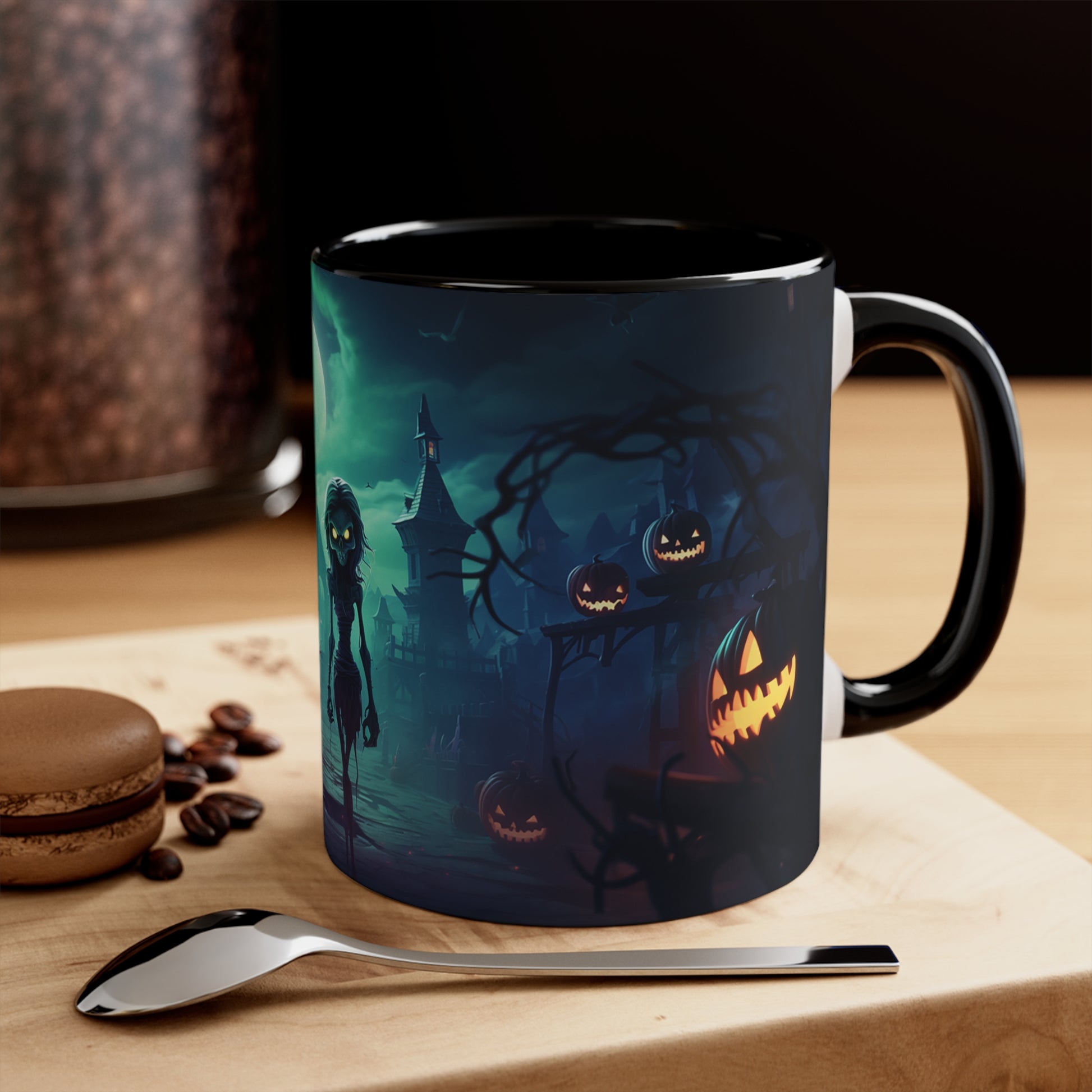 Keywords: Halloween Mug, Zombie Design, Bi-color Cup, Spooky Cemetery, Haunted Mug, All Hallows' Eve, Zombie Brew, Eerie Drinkware, Ghoul Mug, Horror Collector, Graveyard Cup, Macabre Mug, Special Edition.