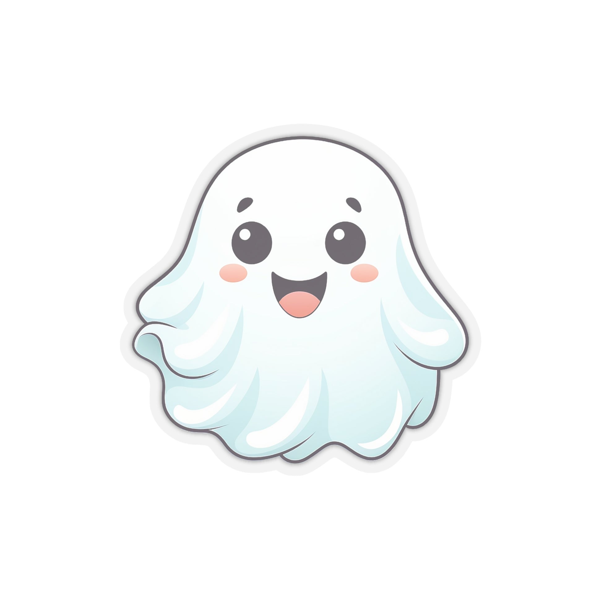 Keywords: Cute Ghost Decal, Halloween Sticker, Ghostly Adhesive, Whimsical Spirit, Hauntingly Cute, Festive Decal, Playful Phantom, Ghost Emblem, Halloween Decor, Charming Spirit, Ghostly Fun, Spooky Cute, Adorable Apparition.
