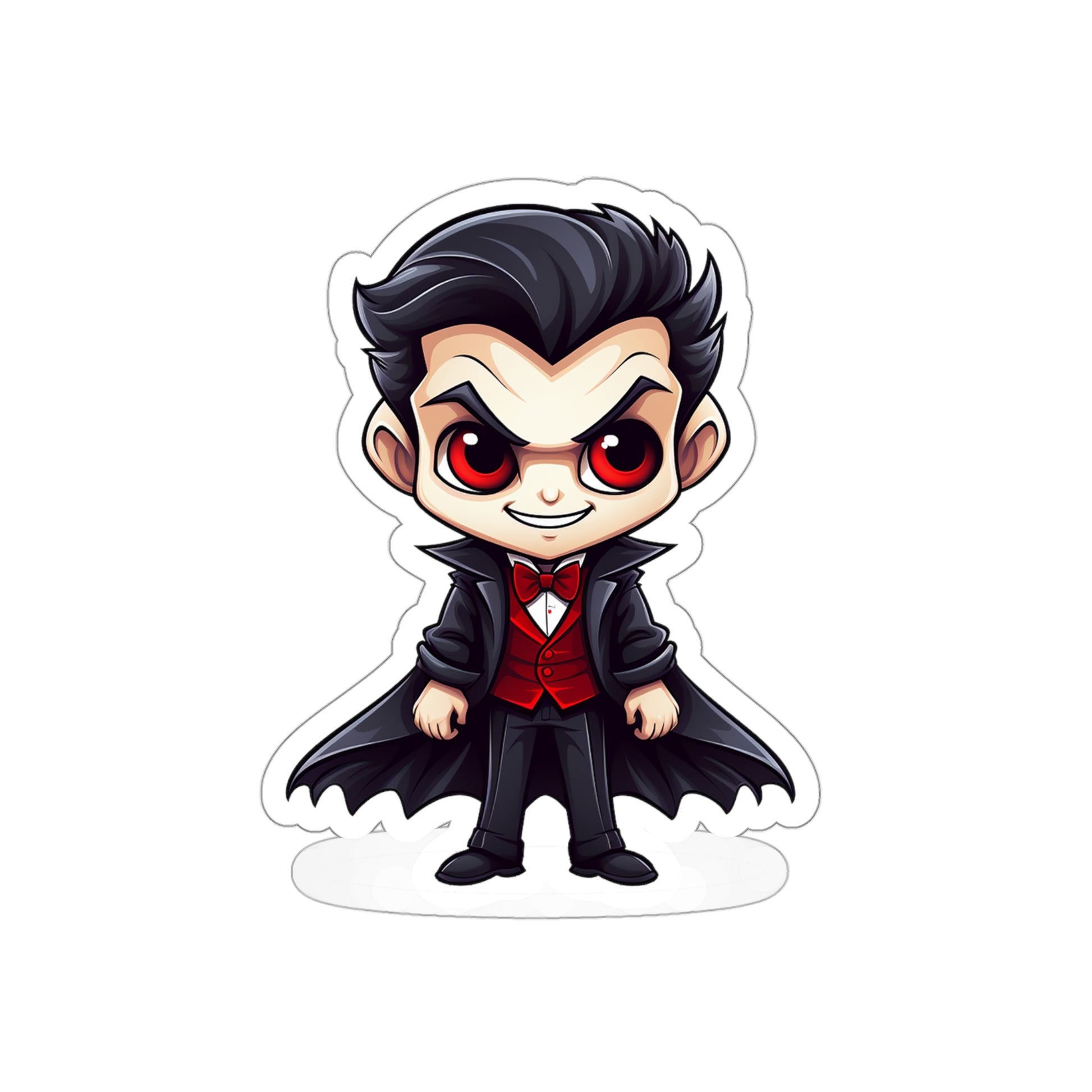Keywords: Vampire Sticker, Halloween Decal, Dracula Emblem, Youthful Vampire, Spooky Boy, Fang-tastic Adhesive, Night Hunter, Halloween Charm, Bloodsucker Decal, Cape Design, Dracula's Son, Little Vampire, Creepy Cute.