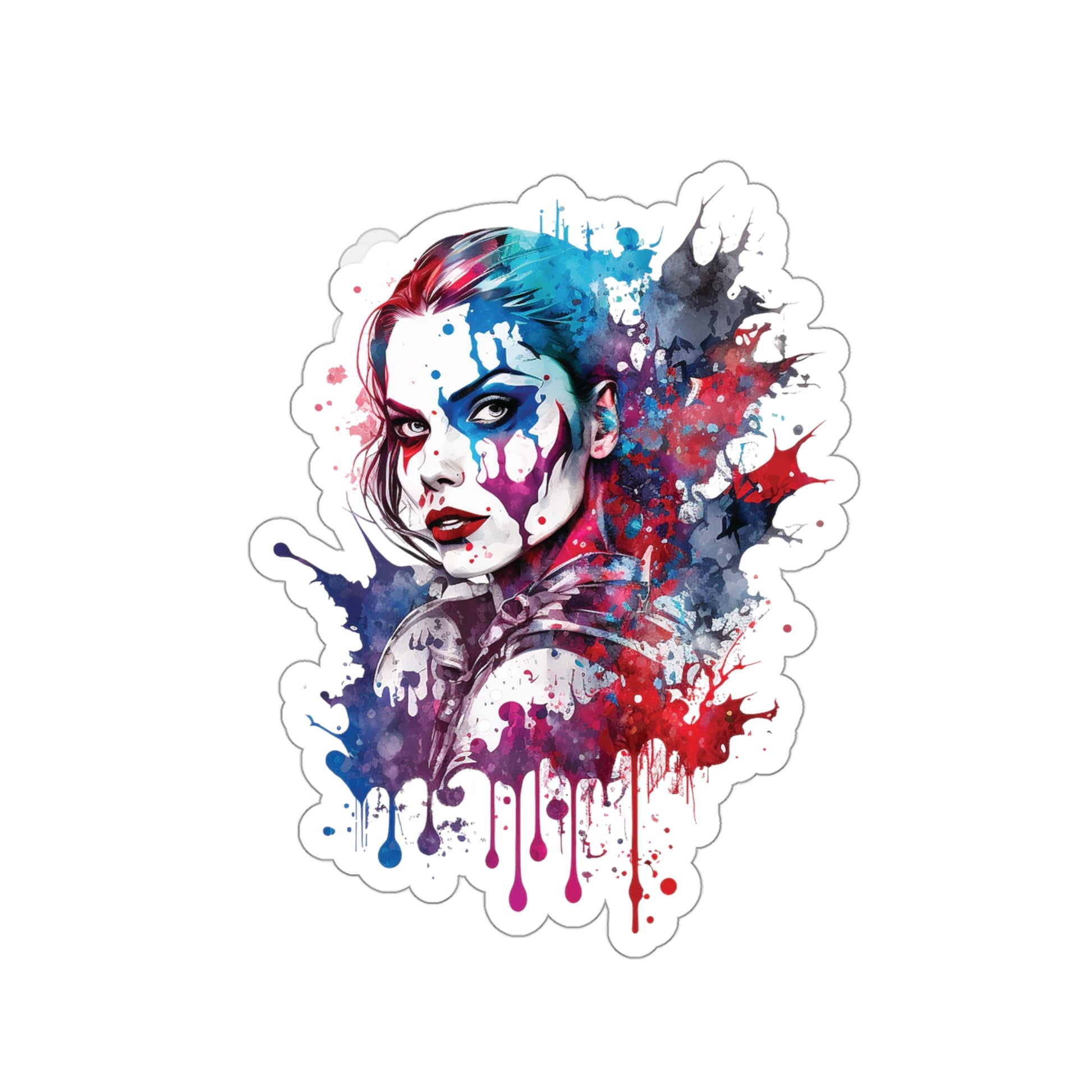 This sticker features Harley Quinn, the beloved antihero from the Batman universe, in a unique combination of pop-art and watercolor styles. Harley Quinn is known for her mischievous and unpredictable nature, and this sticker captures her essence perfectly. This sticker is perfect for anyone who loves Harley Quinn and wants to add some unique and colorful style to their Macbook, smartphone, or any other smooth surface.