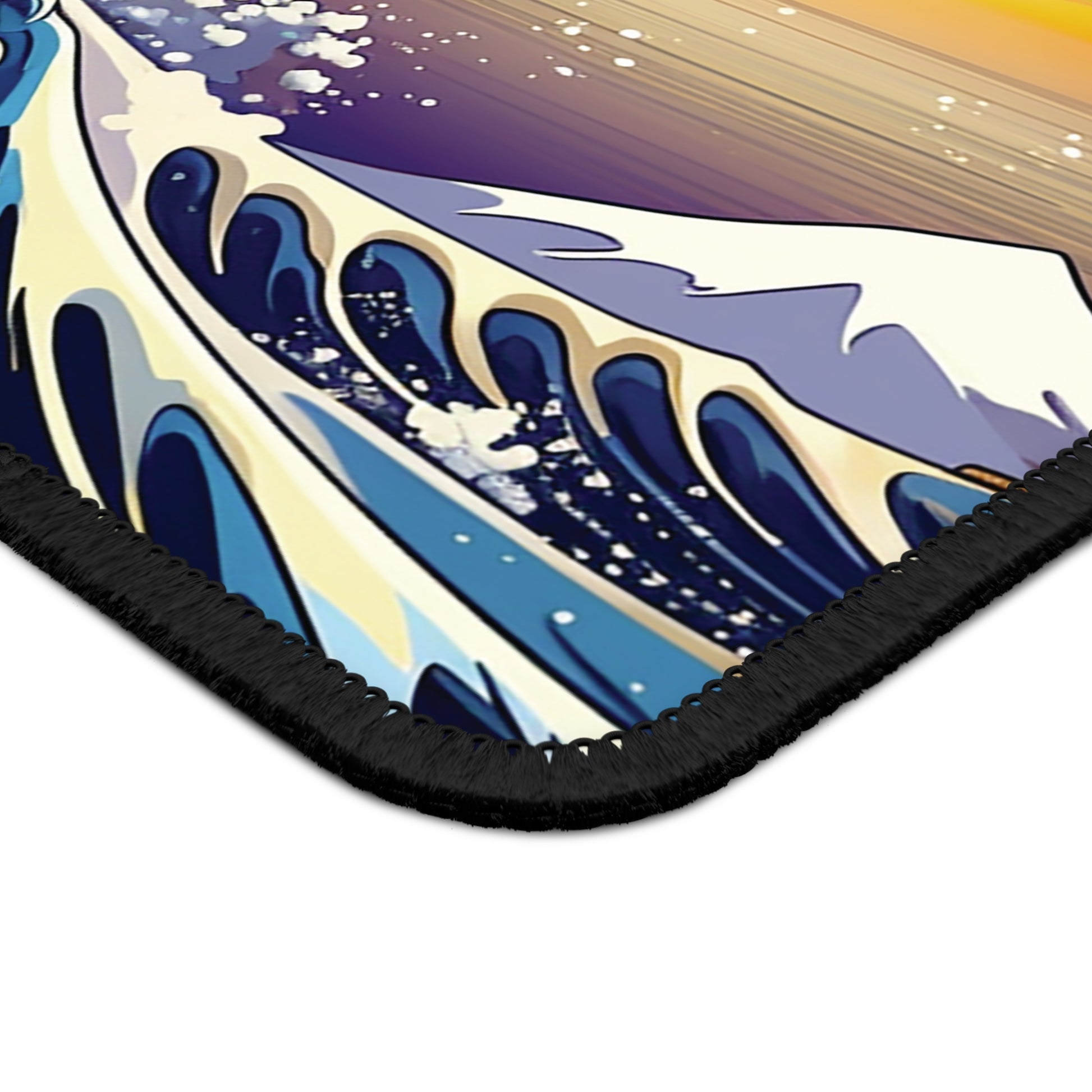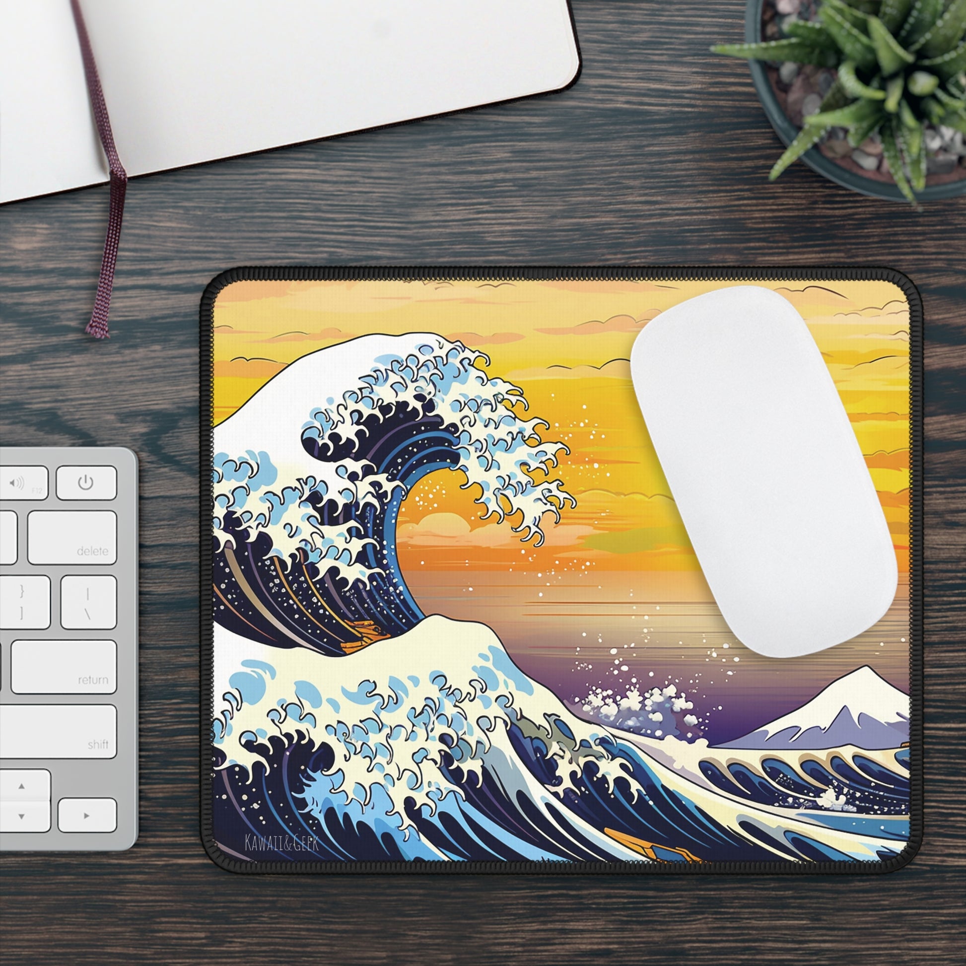 Hokusai-Inspired Big Wave Mouse Pad with Stunning Sunset