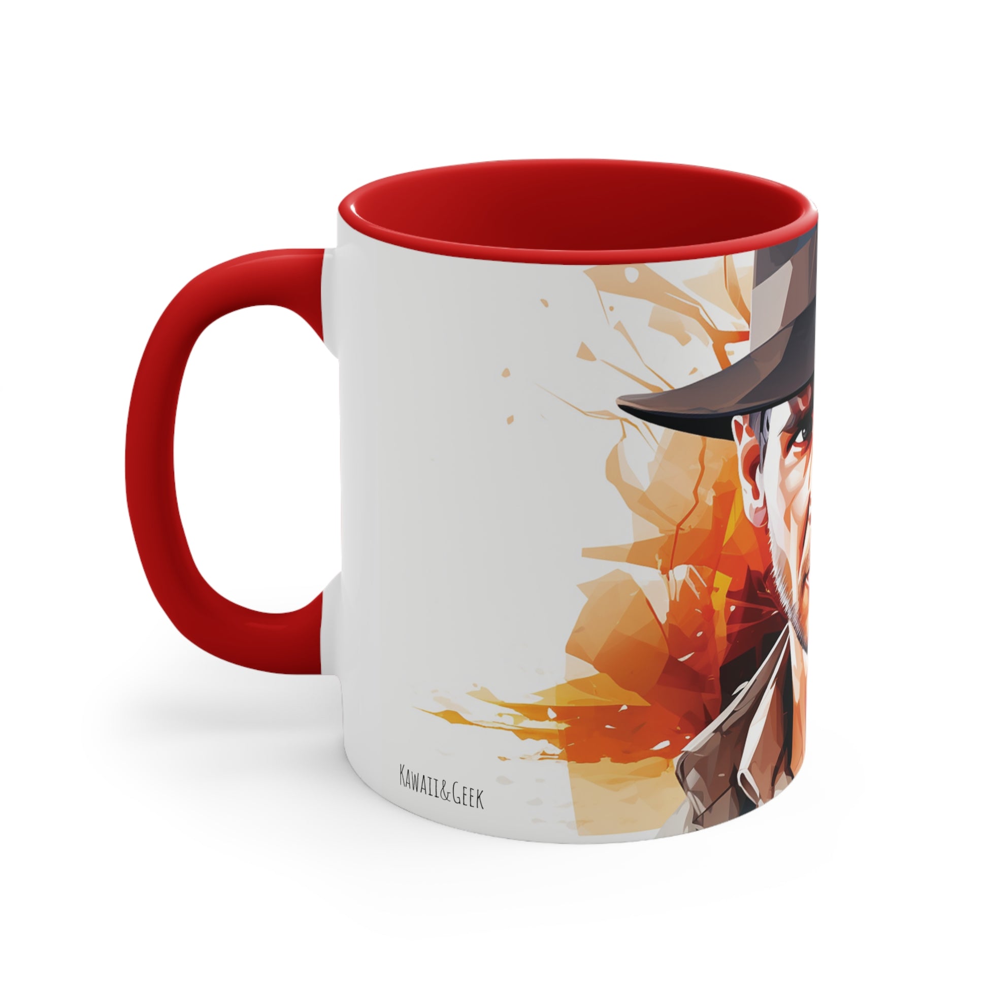 Embark on a thrilling adventure with this 11 oz bicolor mug featuring the iconic Indiana Jones in a captivating geometric style. This mug pays homage to the daring archaeologist's encounters with perilous creatures. Sip your favorite beverage and channel your inner explorer as you embrace the excitement and intrigue of the Indiana Jones universe. Get your Indiana Jones Geometric Bicolor Mug today and embark on your own epic quests.