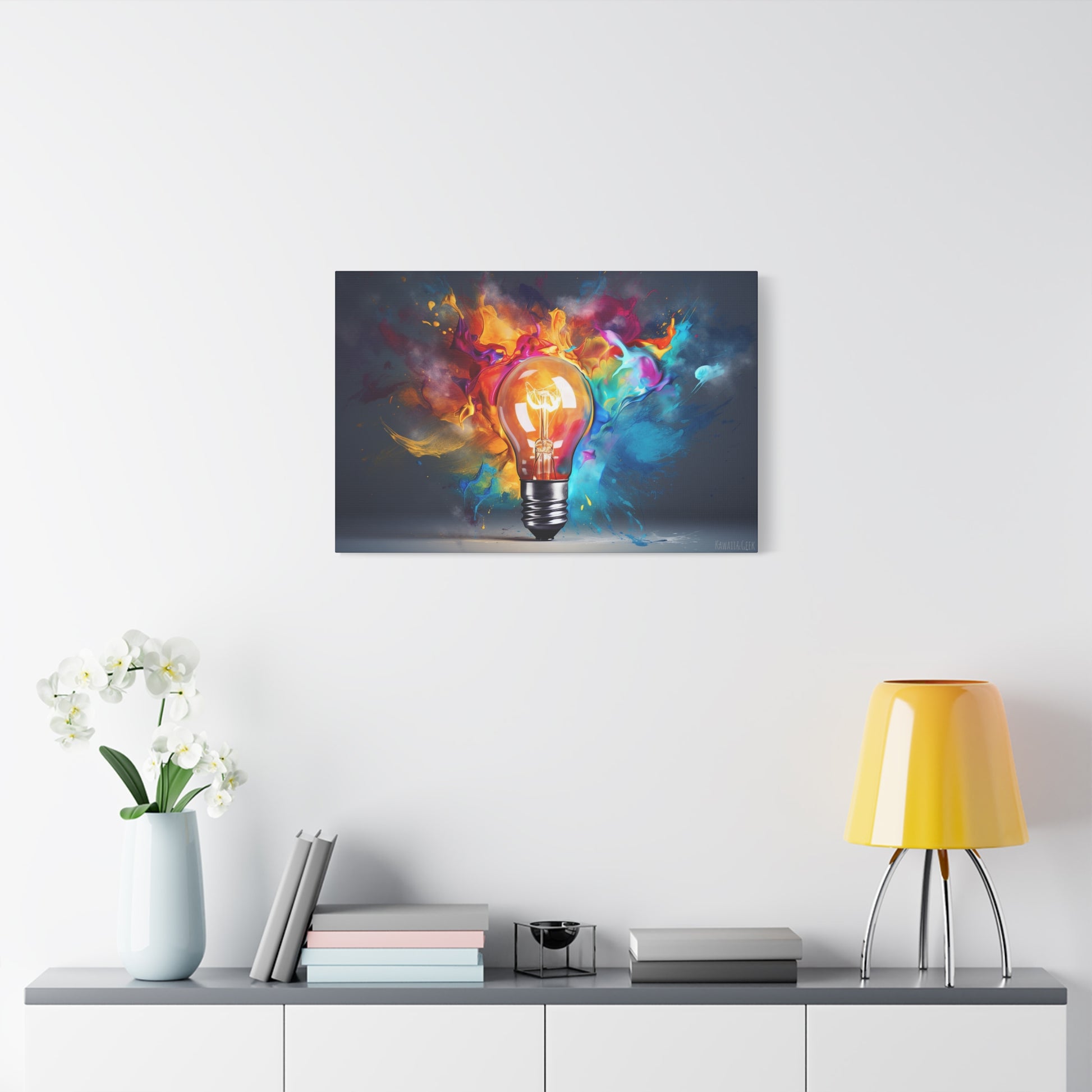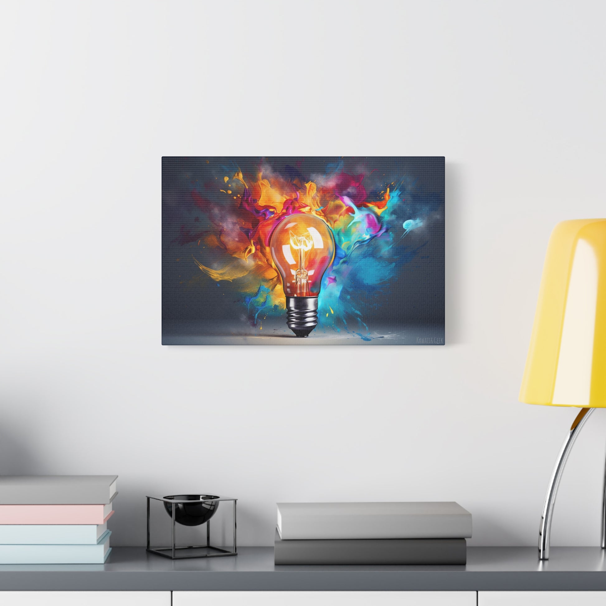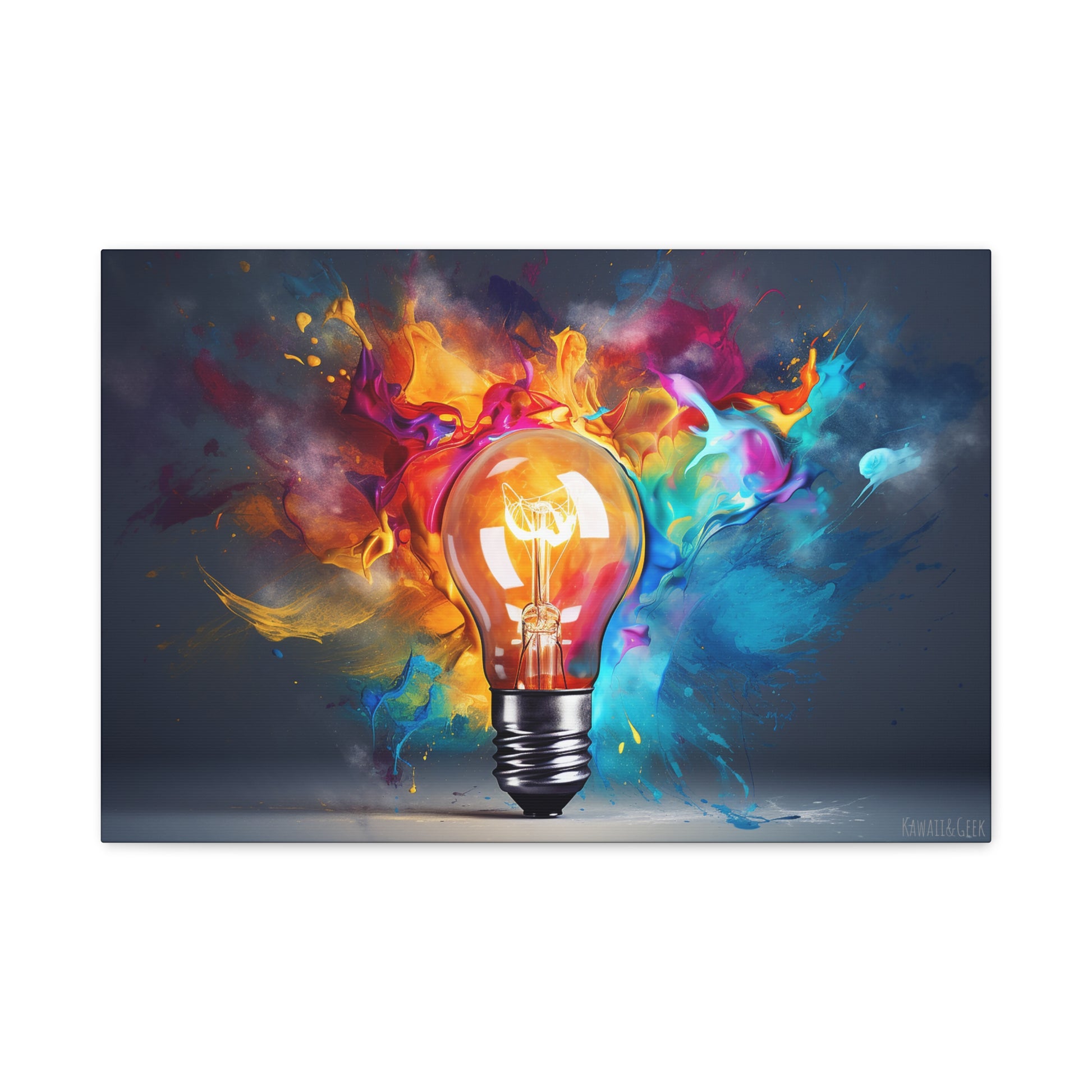 Showcase your space with a canvas that embodies innovation and creativity! Our premium cotton canvas captures the brilliance of a lightbulb bursting with a spectrum of paint colors, representing the spark of a groundbreaking idea. A true testament to imagination and ingenuity, this artwork will inspire anyone who views it, making it a perfect statement piece for home or office.