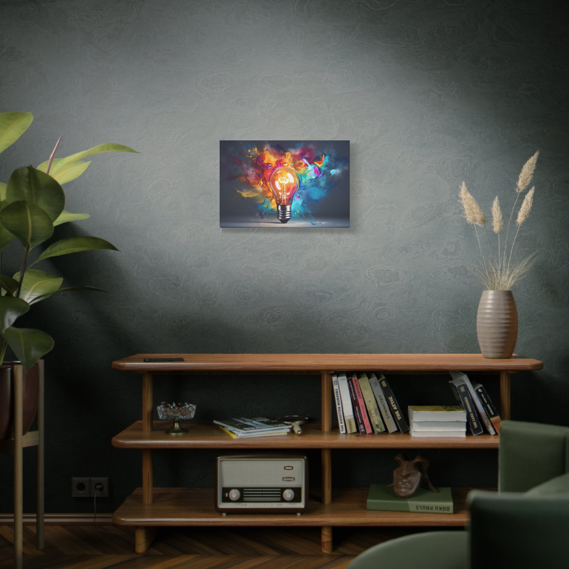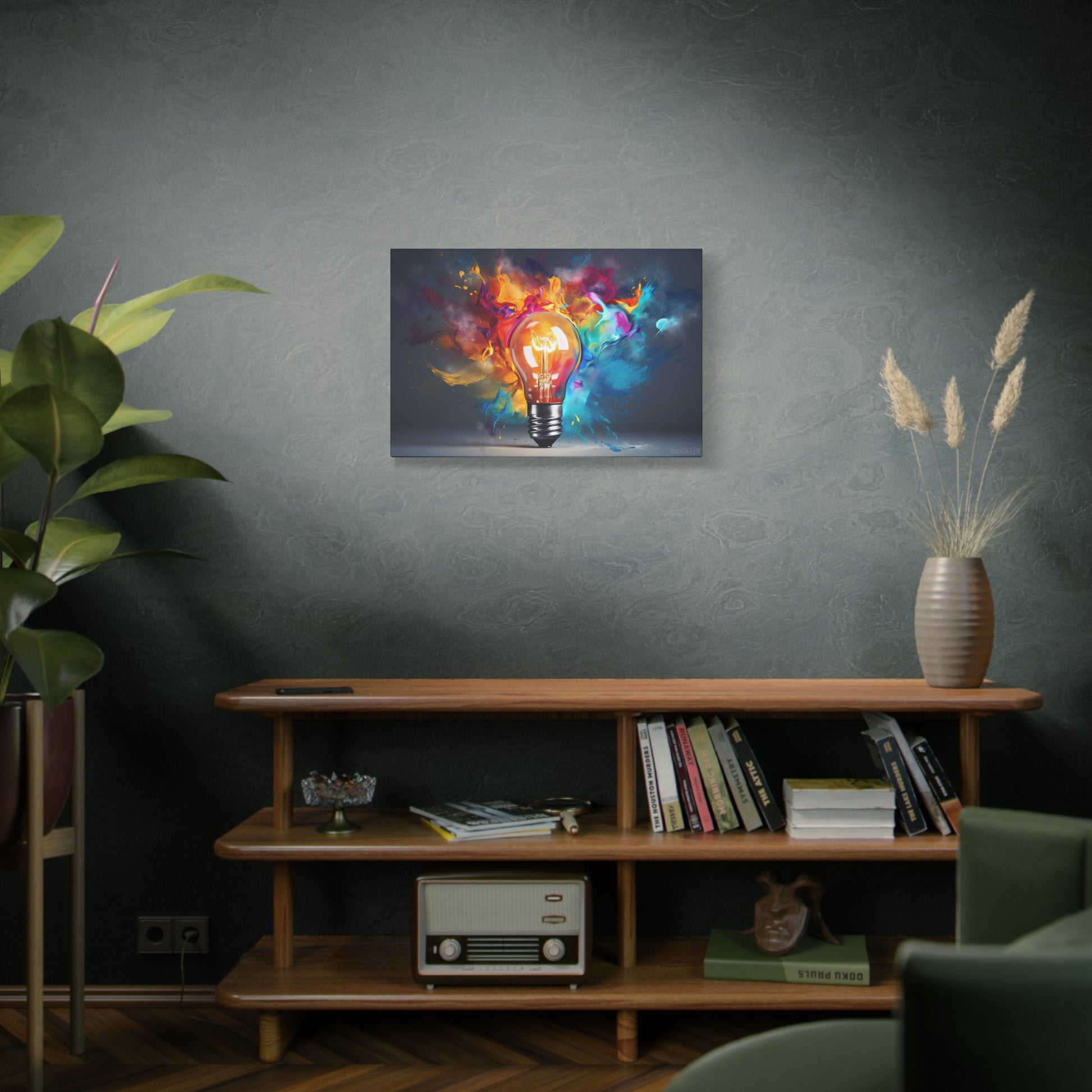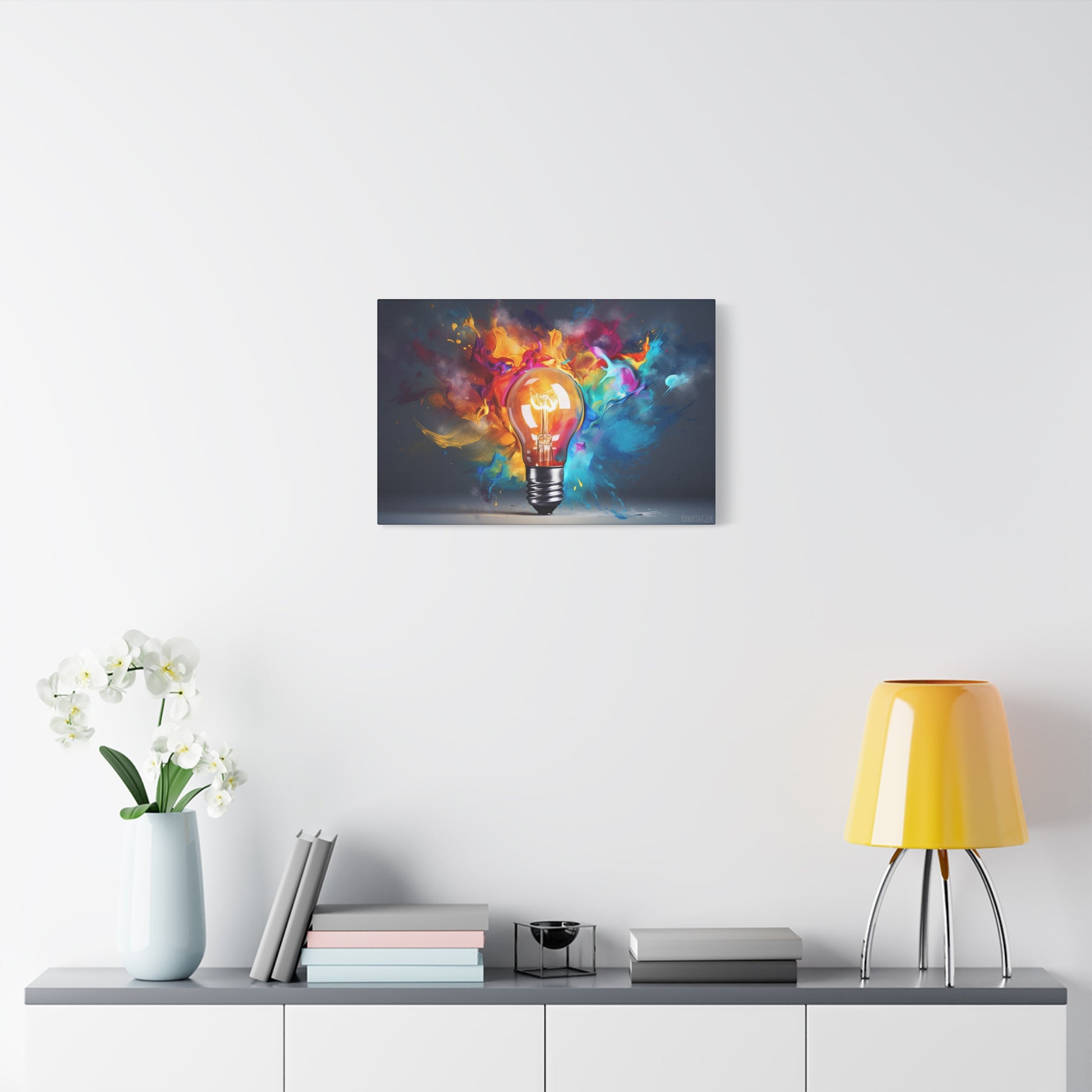Showcase your space with a canvas that embodies innovation and creativity! Our premium cotton canvas captures the brilliance of a lightbulb bursting with a spectrum of paint colors, representing the spark of a groundbreaking idea. A true testament to imagination and ingenuity, this artwork will inspire anyone who views it, making it a perfect statement piece for home or office.
