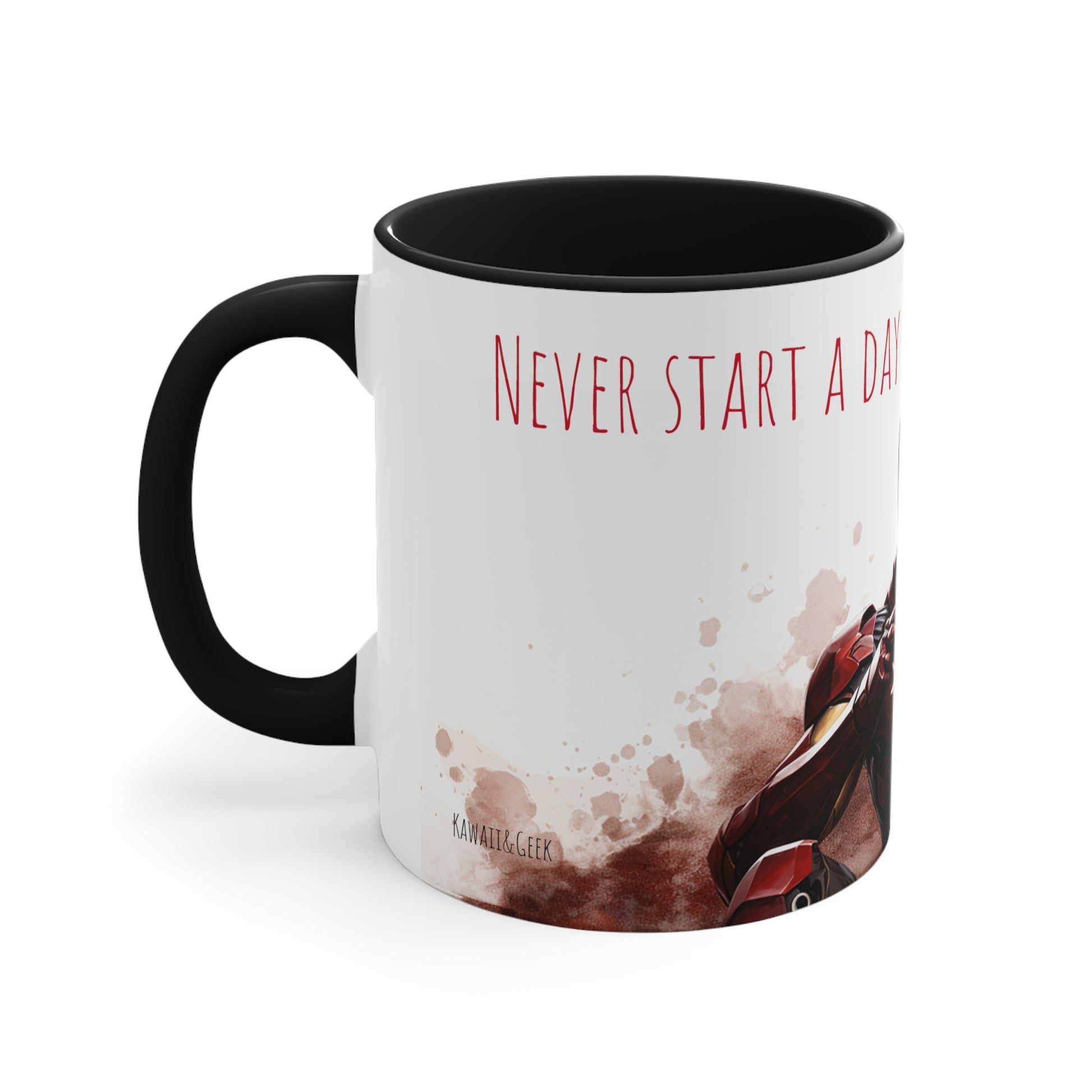 Indulge in the ultimate coffee experience with our Iron Man-inspired mug. Featuring a stylish design of Iron Man enjoying a cup of coffee, this mug is the perfect companion for all Marvel and coffee enthusiasts. Start your day like Tony Stark and never underestimate the power of a good coffee. Made with high-quality materials, this 11 oz bicolor mug combines style and functionality to enhance your drinking experience. Get ready to fuel up with your favorite brew and embrace the superhero within you.