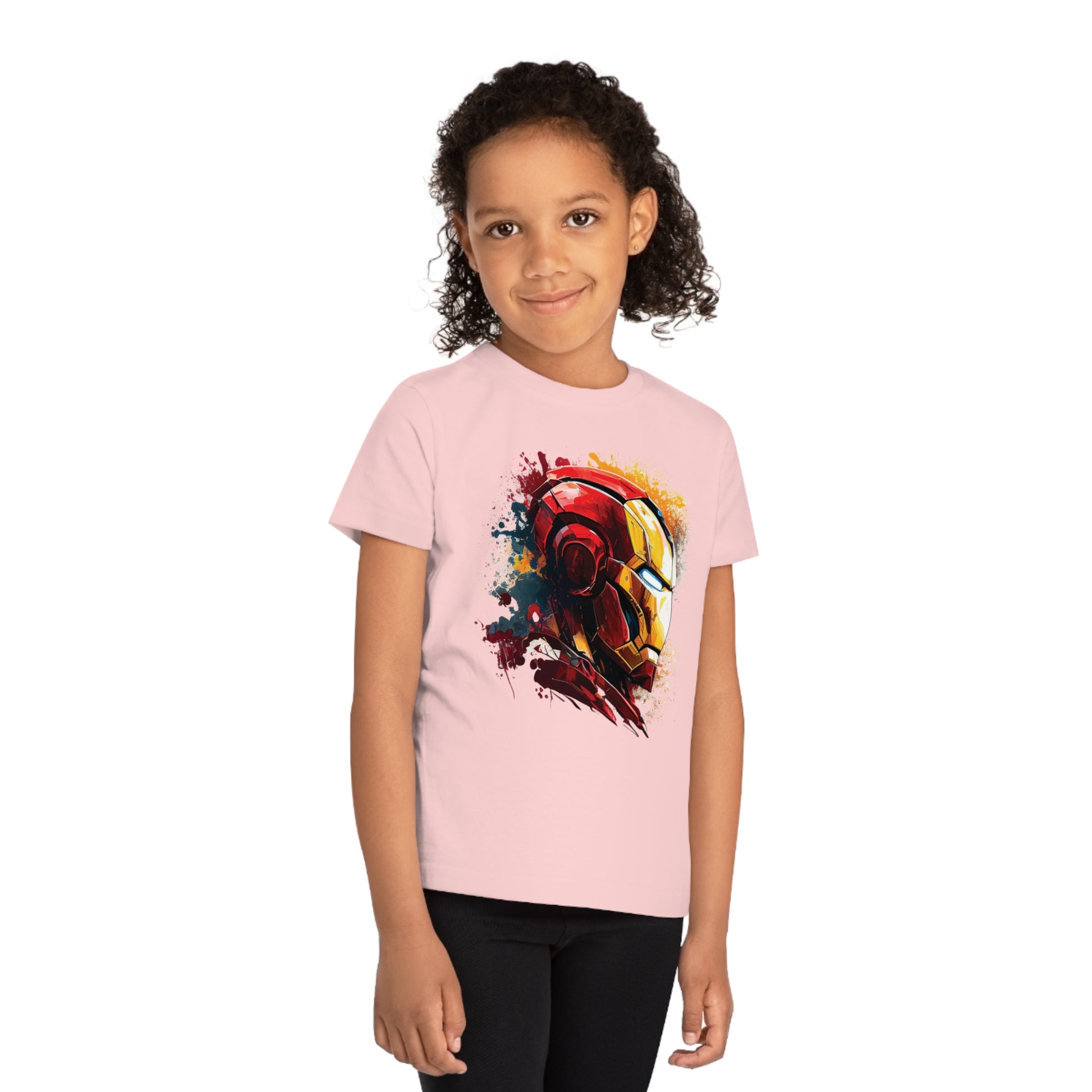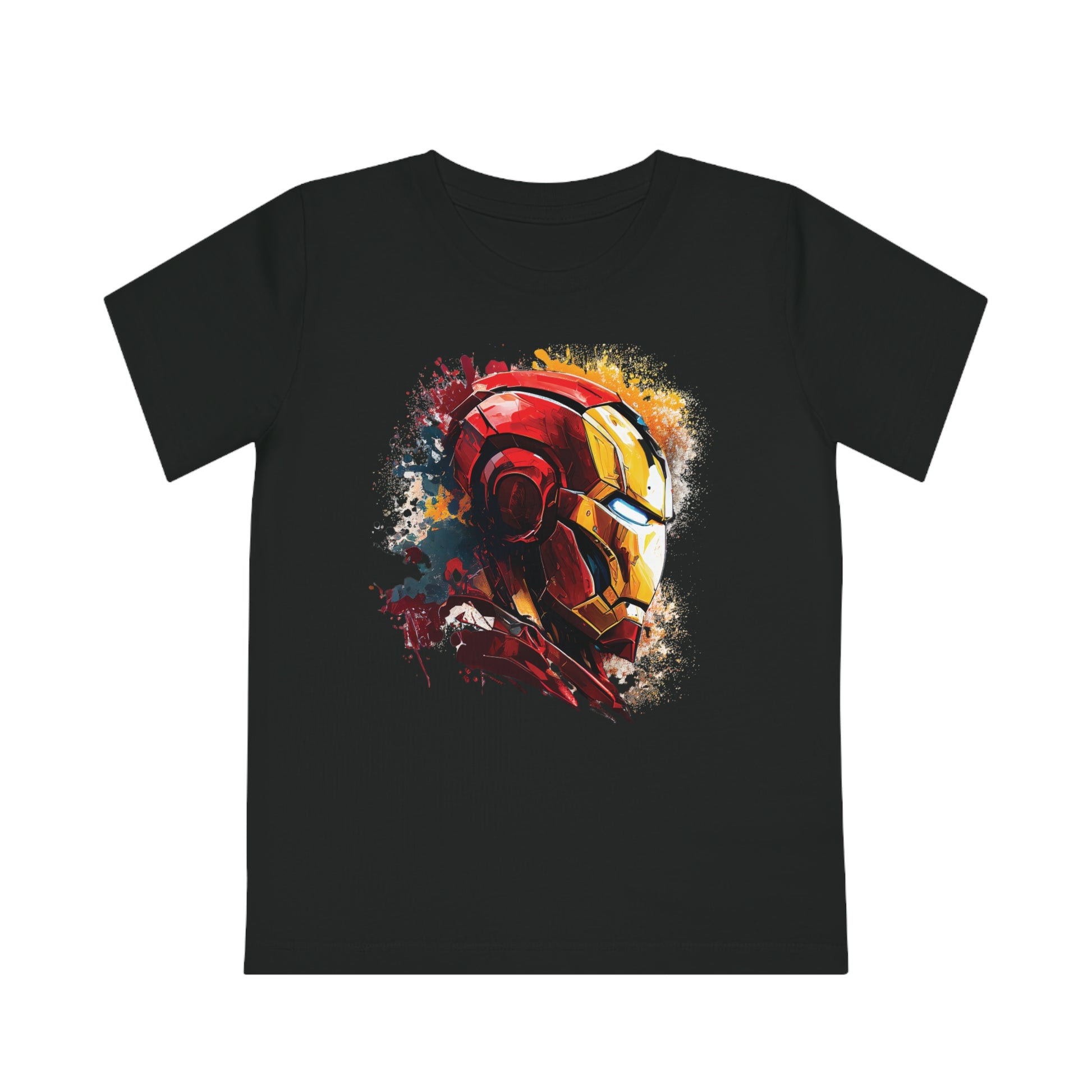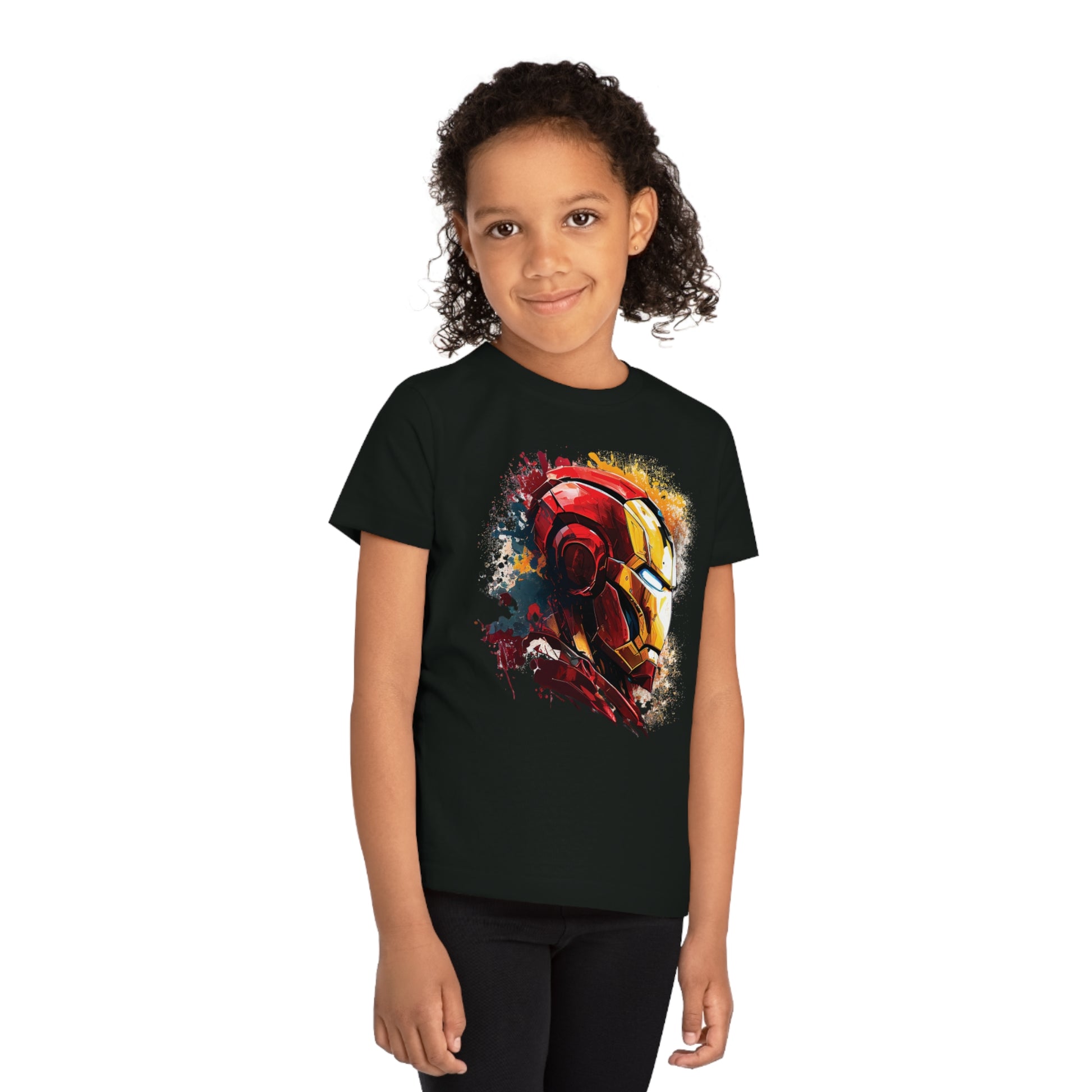 Keywords: Iron Man kids t-shirt, eco-friendly fashion, watercolor style, sustainable materials, vibrant colors, comfortable fit, superhero apparel, imaginative play, avengers