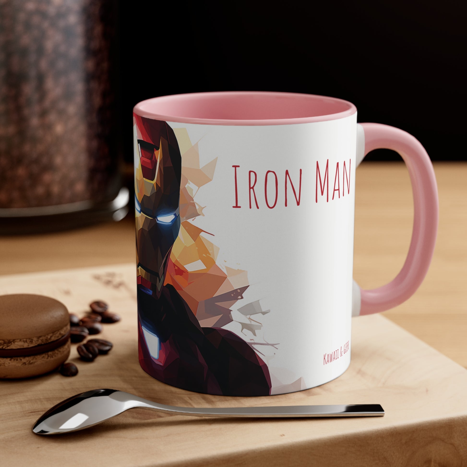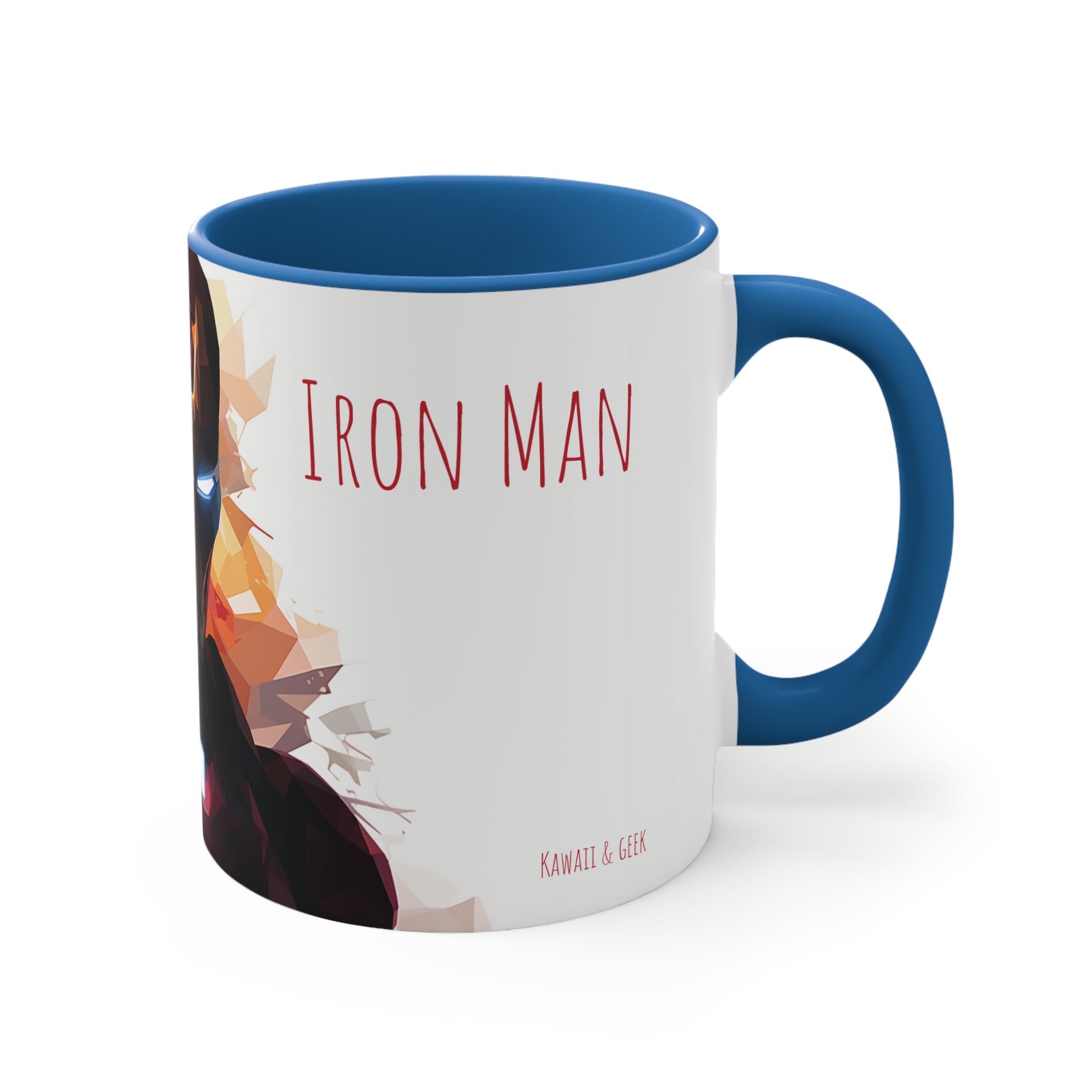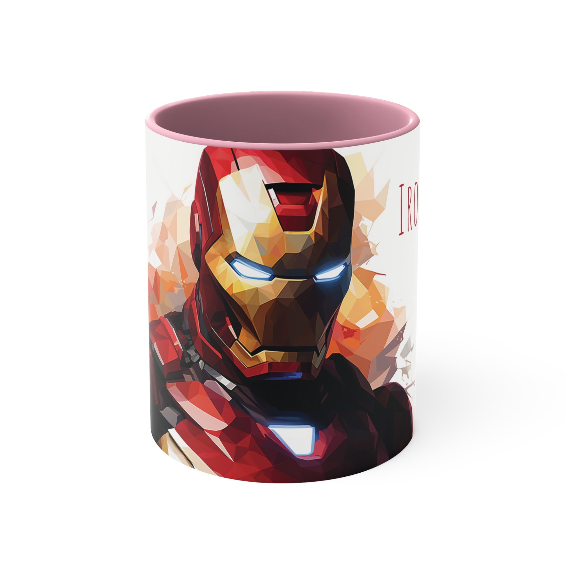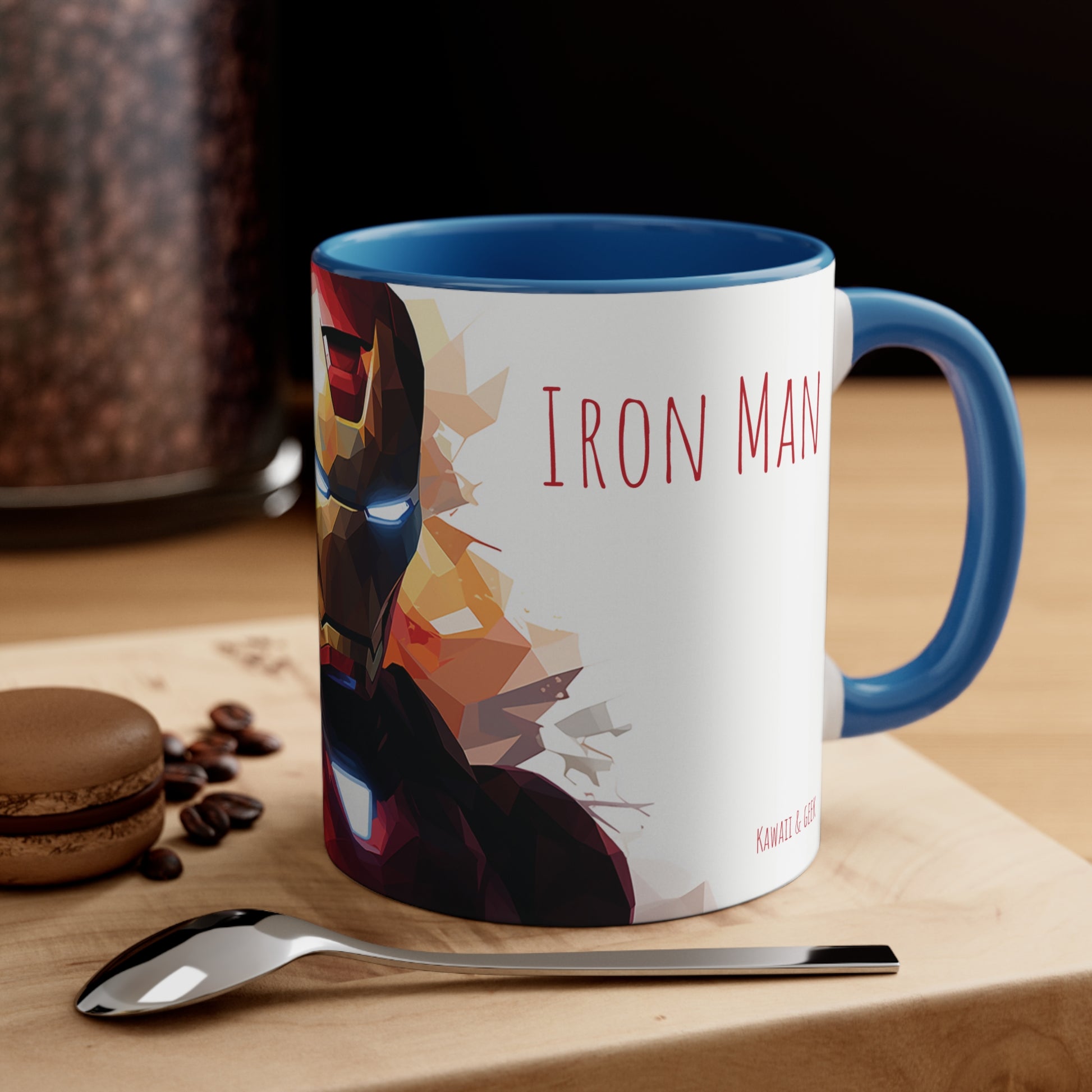 Keywords: Iron Man mug, Geometric style, Bicolor design, I am Iron Man, Superhero power, Iconic character, Modern twist, Heroism, Avengers, Marvel, Coffee or tea, Superhero vibes, Drinkware collectible.