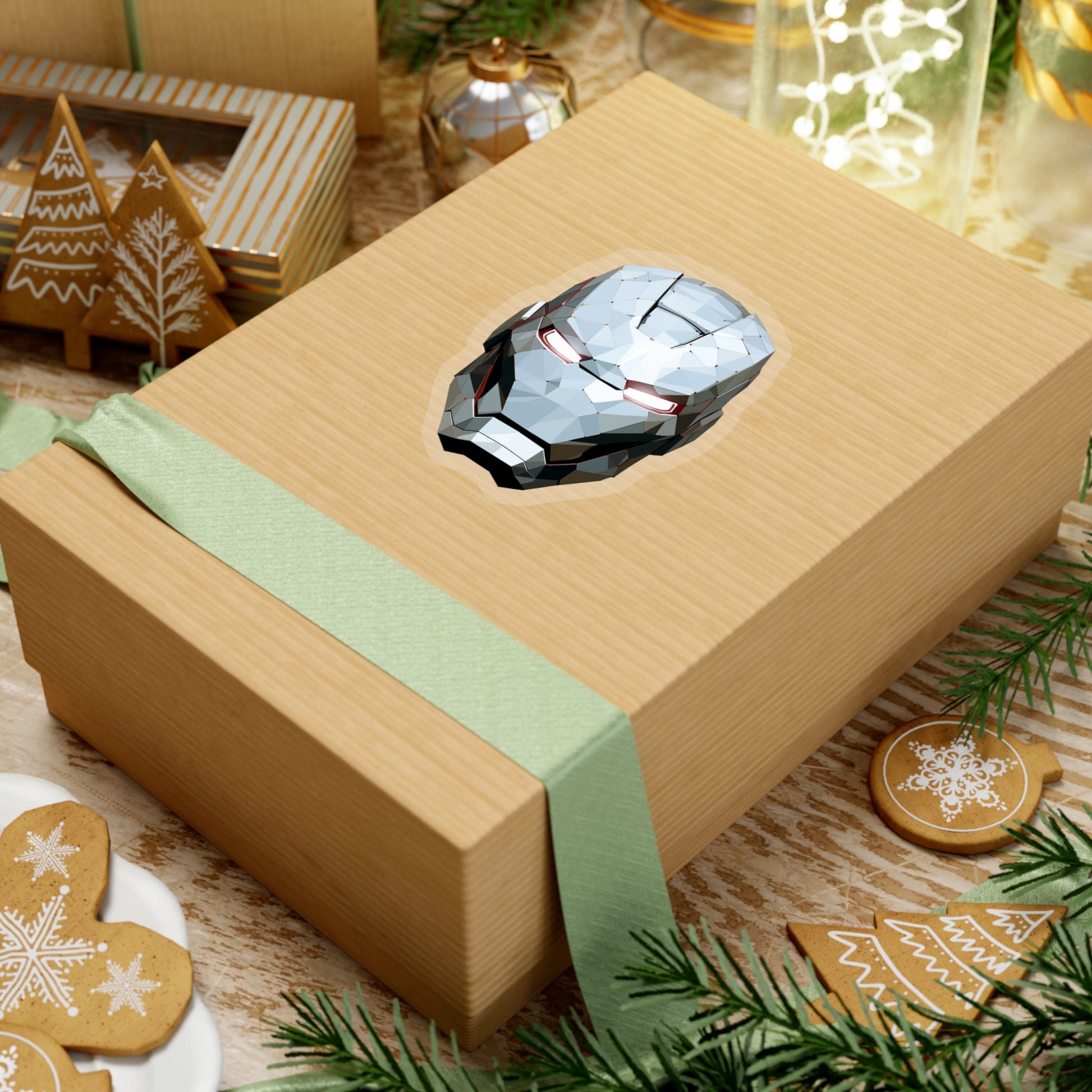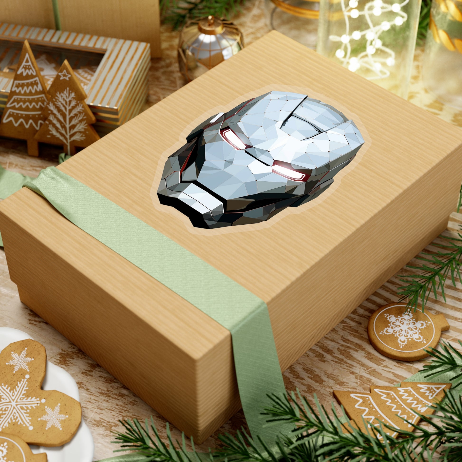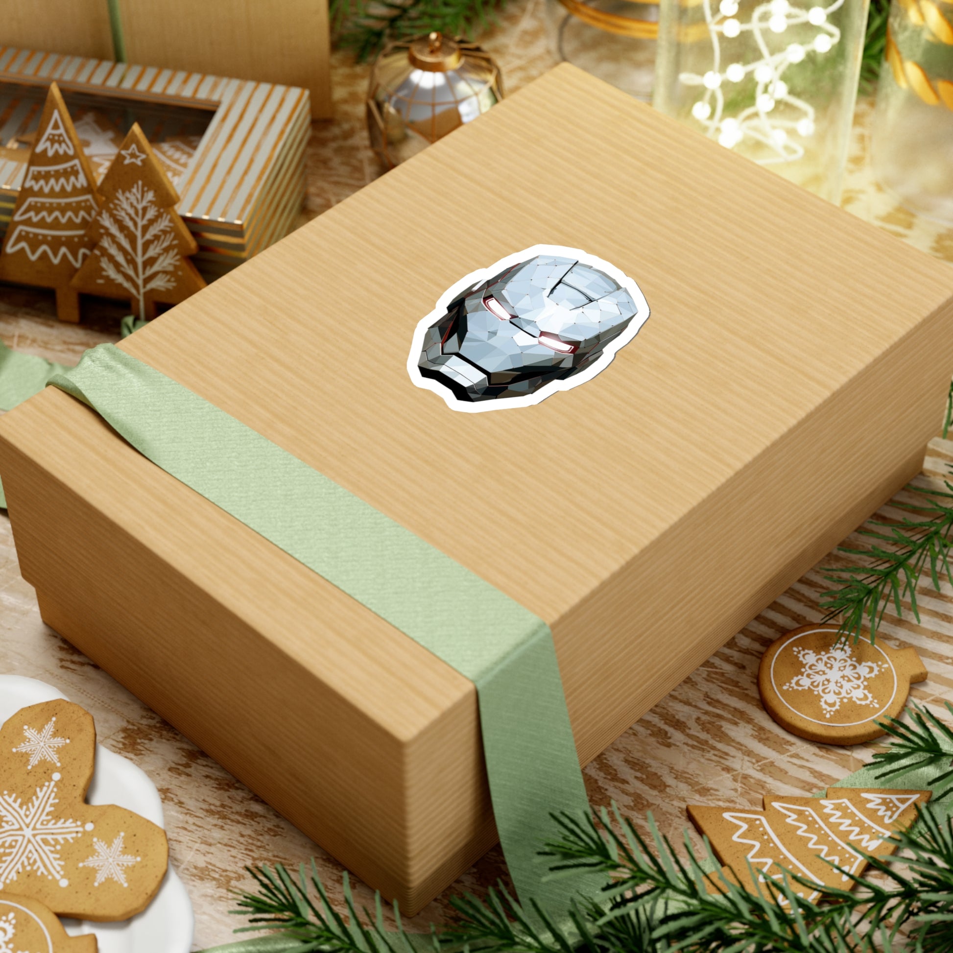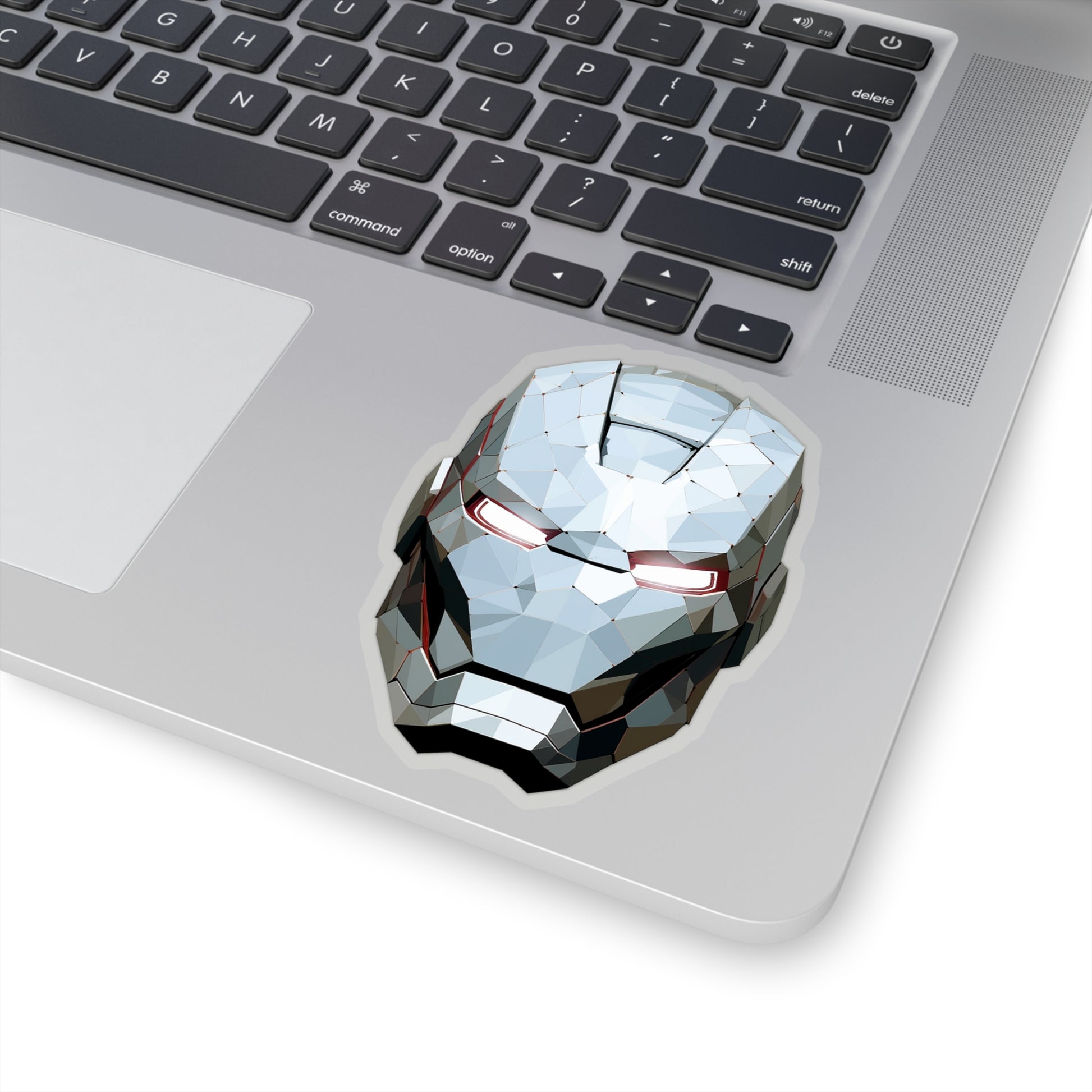 Keywords: Iron Man sticker, geometric style, vector design, minimalist sticker, superhero prowess, sleek and modern, geometric sophistication.