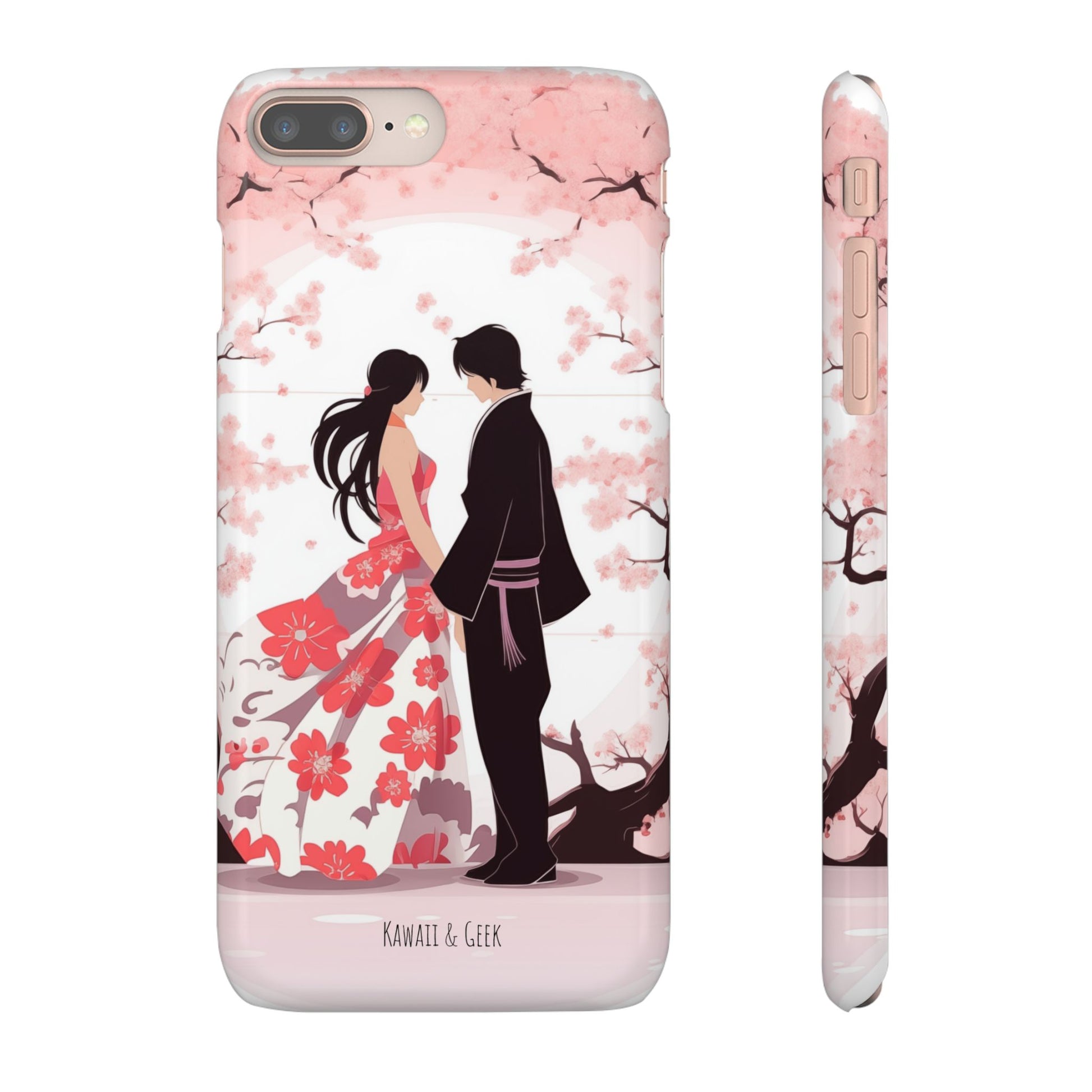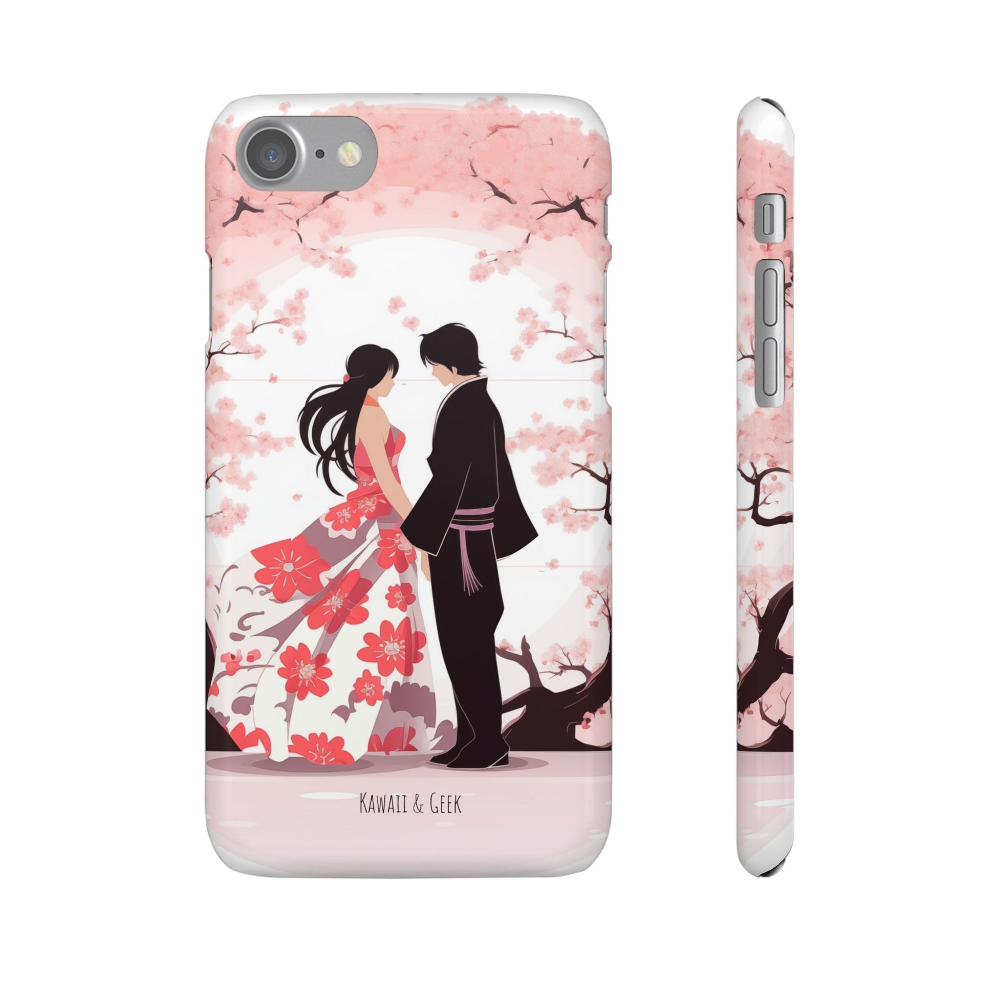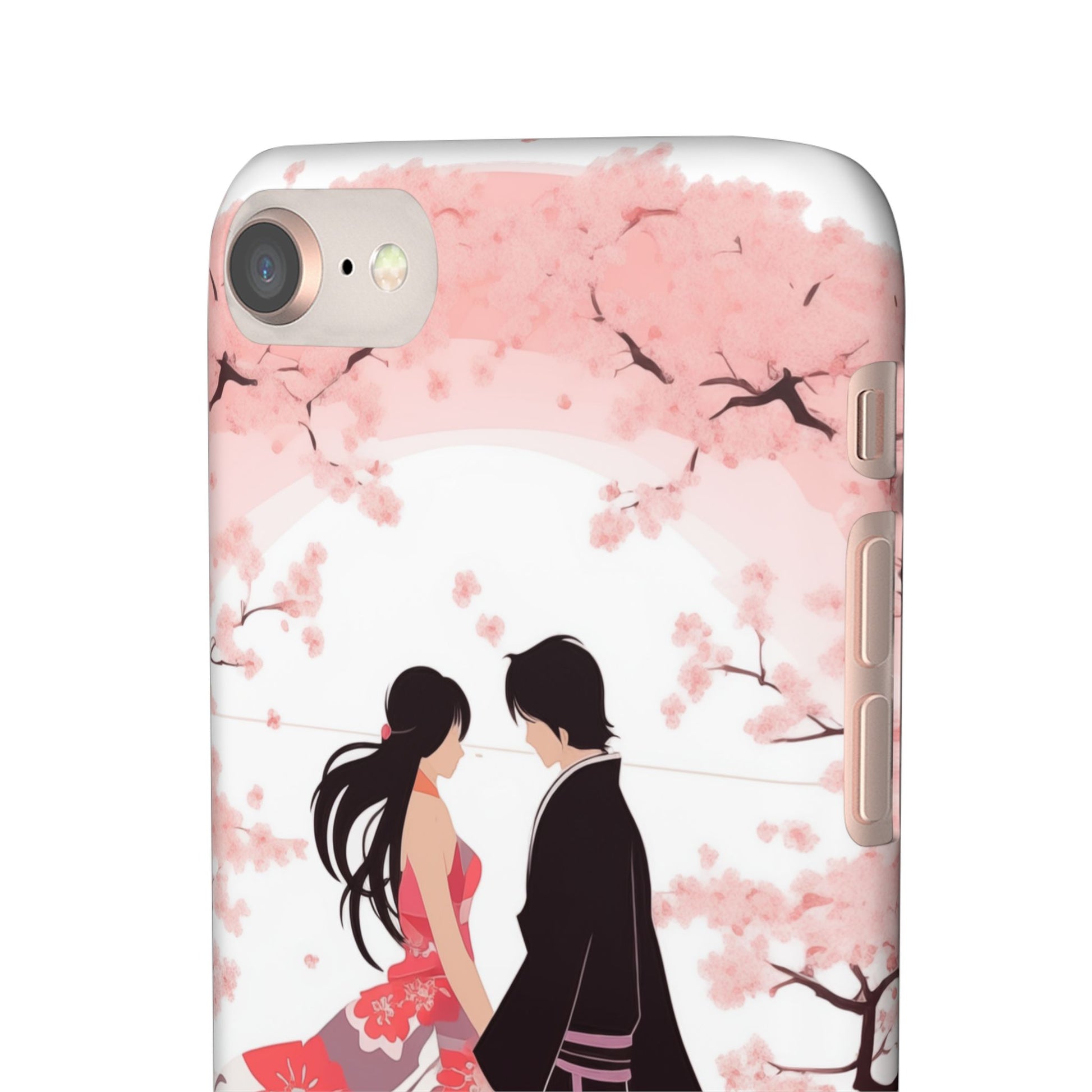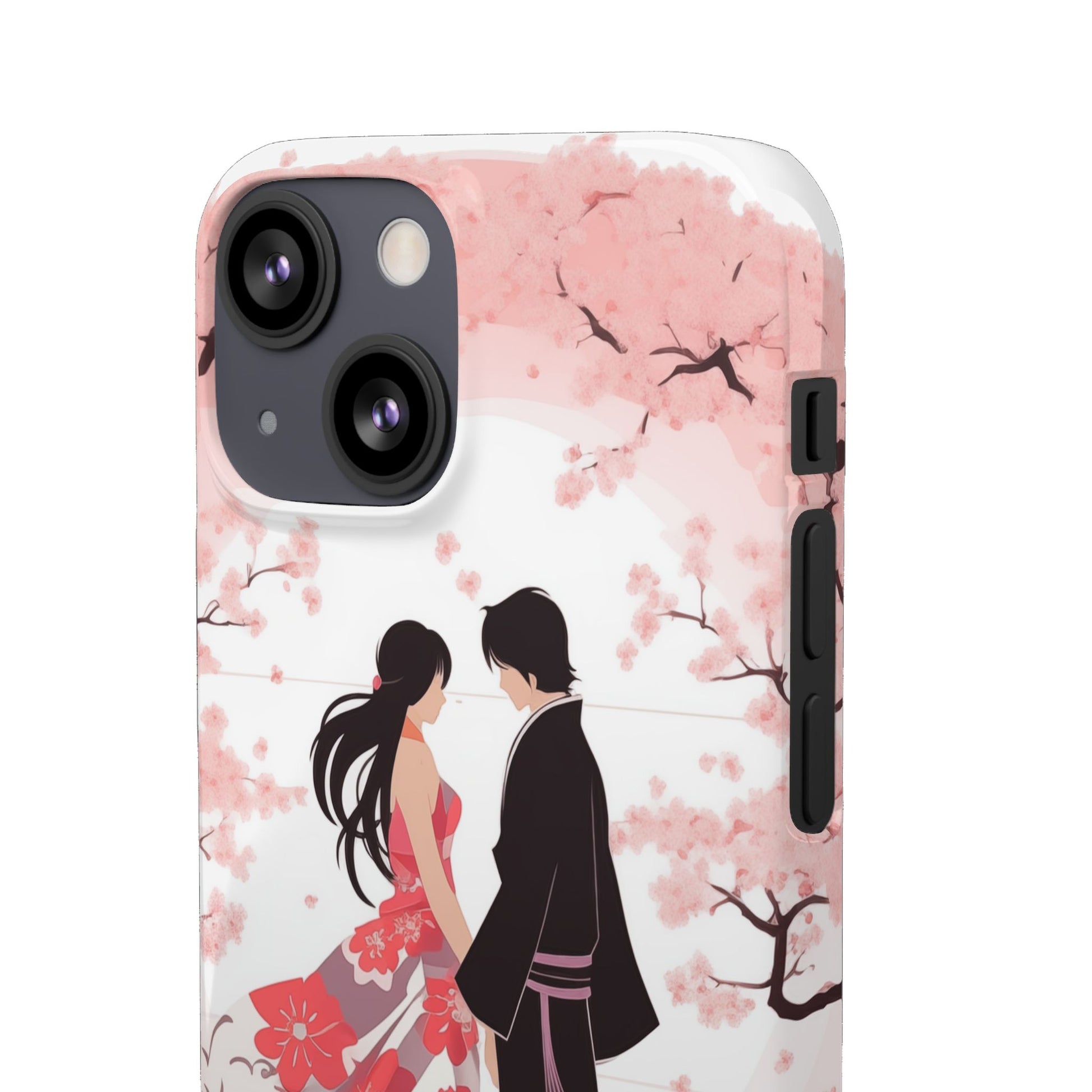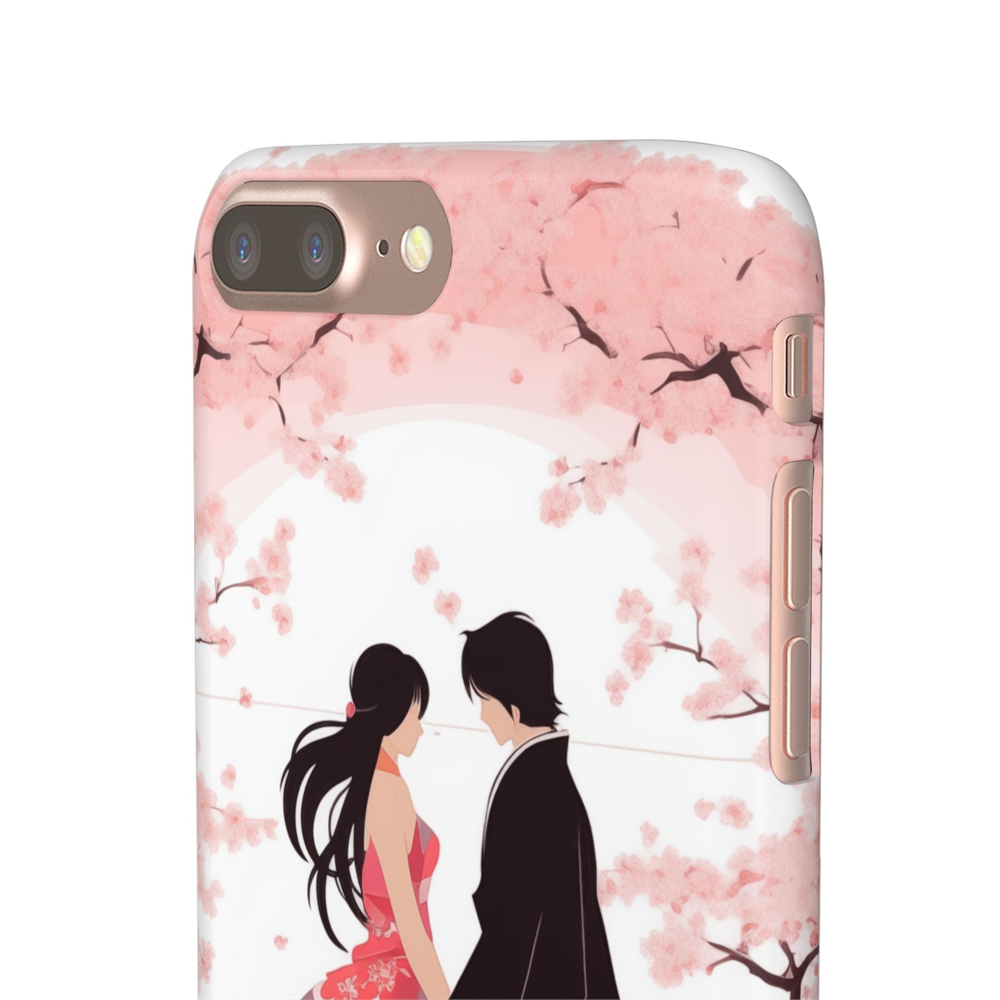 Immerse in the romantic elegance of Japan with our 'Japanese Blossom Love Phone Case', a Valentine's Day special. This exquisite case features a beautifully illustrated cute couple in Japanese-style, tenderly placed under blossoming cherry trees. The vibrant and detailed artwork brings the magic of cherry blossoms, or 'sakura', to your phone, symbolizing love and renewal. Designed to protect your device while adding a touch of artistic charm, this case combines functionality with beauty. Its durable material ensures your phone stays safe from daily wear and tear, while the slim profile maintains its sleek appearance. Perfect for those who appreciate the delicate allure of Japanese aesthetics and the spirit of Valentine's Day, this phone case is a wonderful blend of kawaii culture and timeless romance."