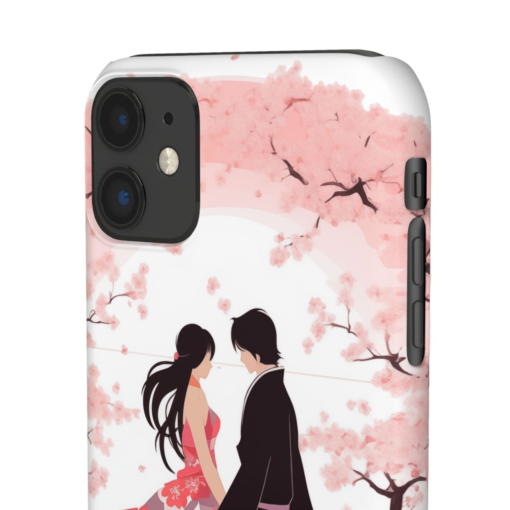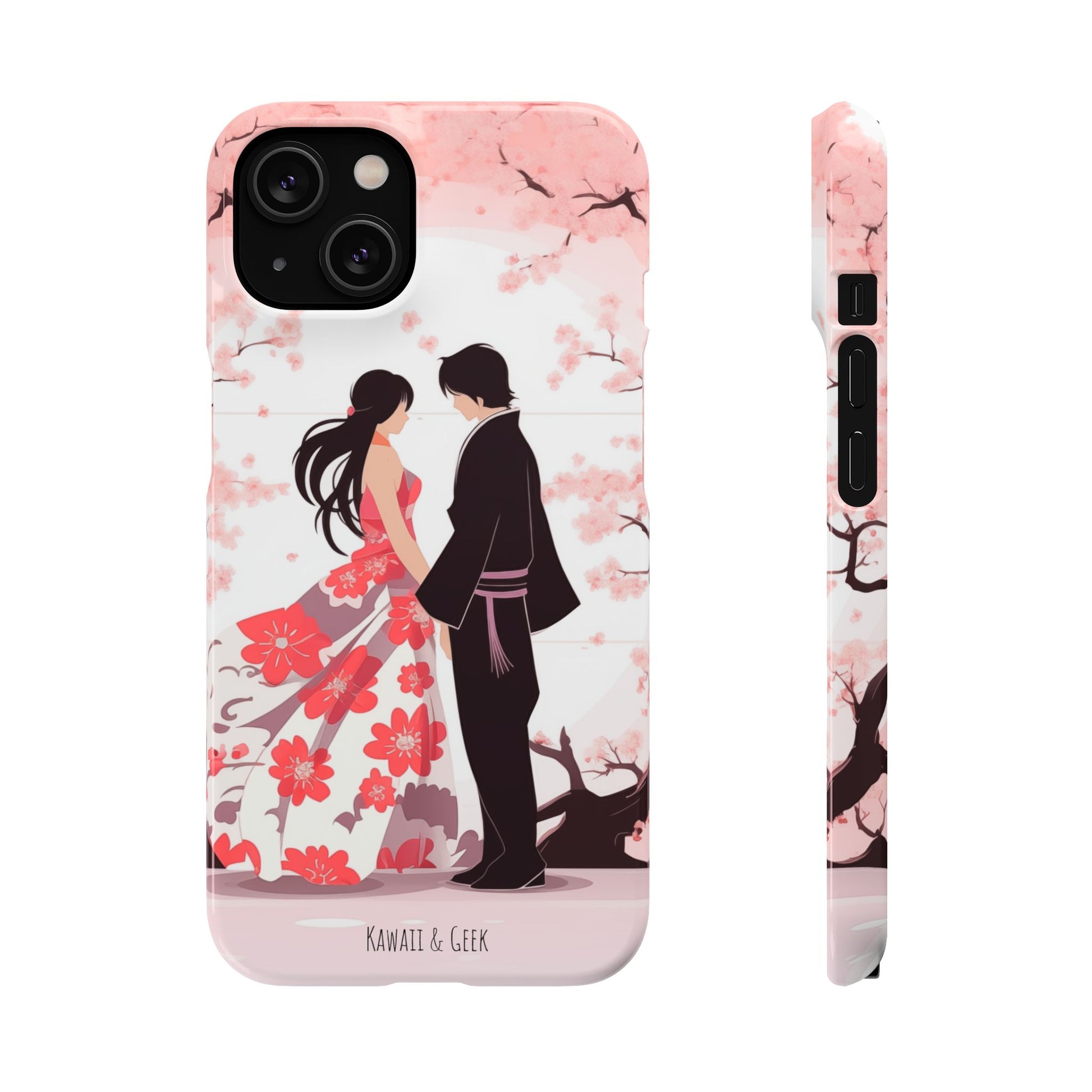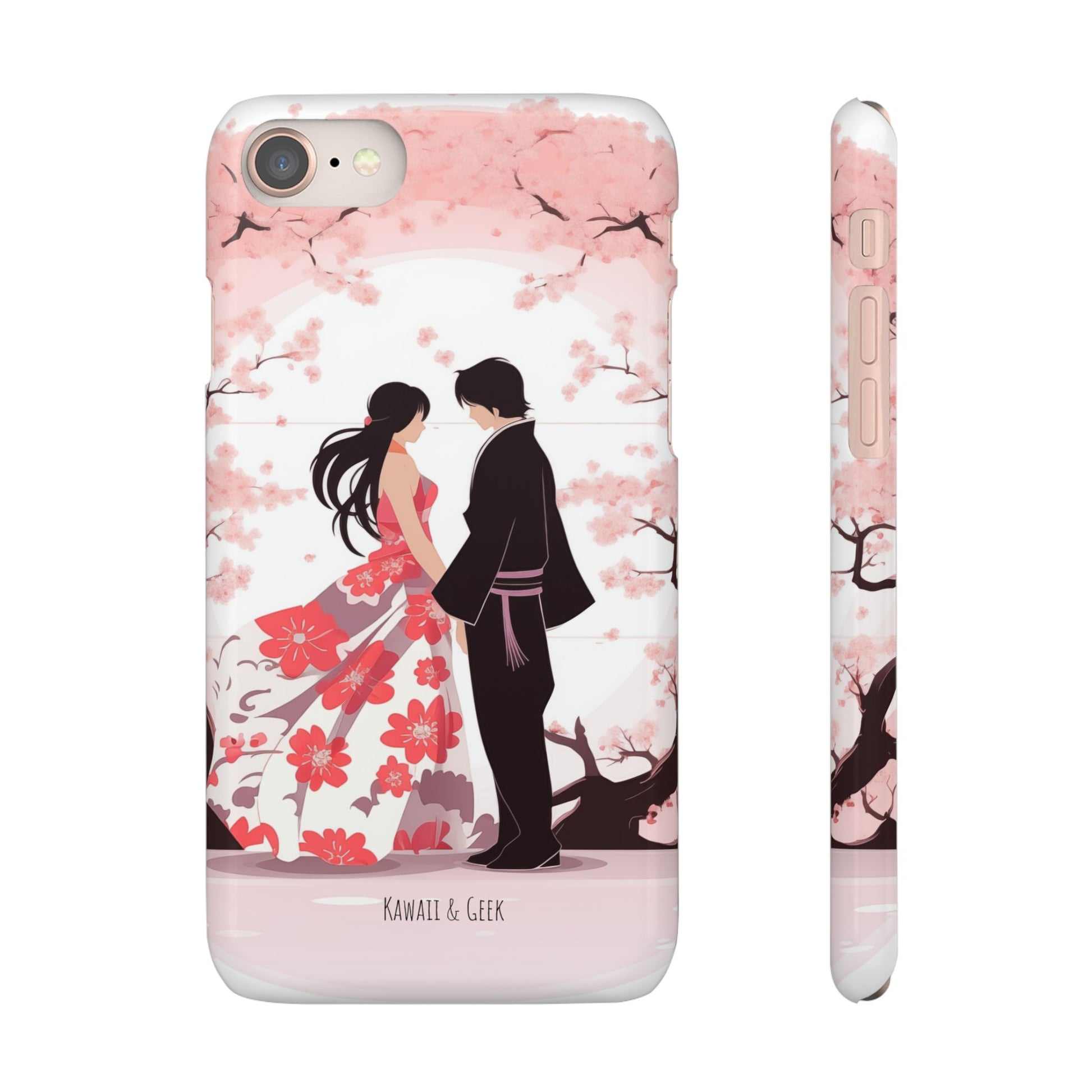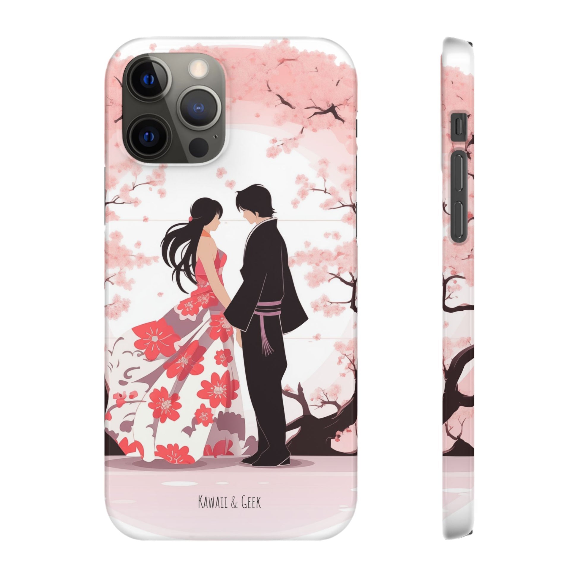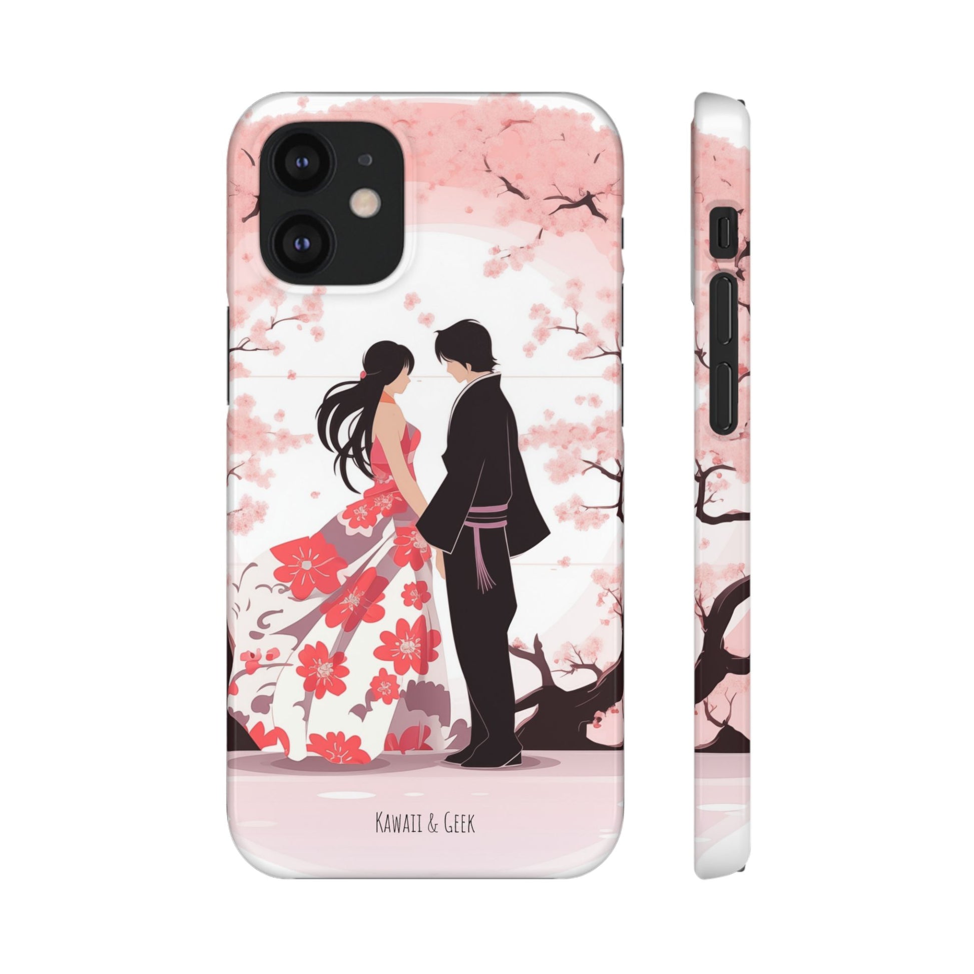 Immerse in the romantic elegance of Japan with our 'Japanese Blossom Love Phone Case', a Valentine's Day special. This exquisite case features a beautifully illustrated cute couple in Japanese-style, tenderly placed under blossoming cherry trees. The vibrant and detailed artwork brings the magic of cherry blossoms, or 'sakura', to your phone, symbolizing love and renewal. Designed to protect your device while adding a touch of artistic charm, this case combines functionality with beauty. Its durable material ensures your phone stays safe from daily wear and tear, while the slim profile maintains its sleek appearance. Perfect for those who appreciate the delicate allure of Japanese aesthetics and the spirit of Valentine's Day, this phone case is a wonderful blend of kawaii culture and timeless romance."