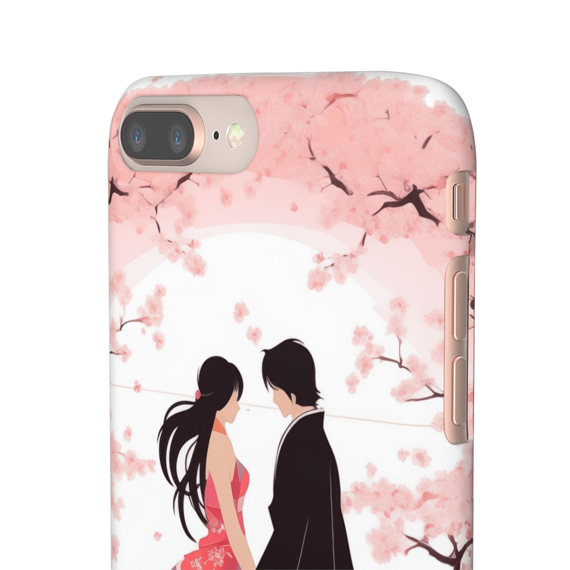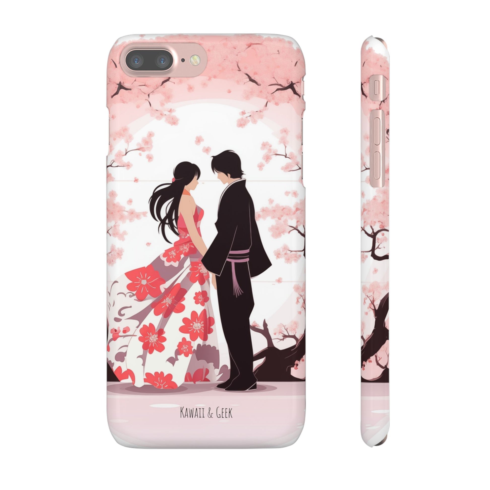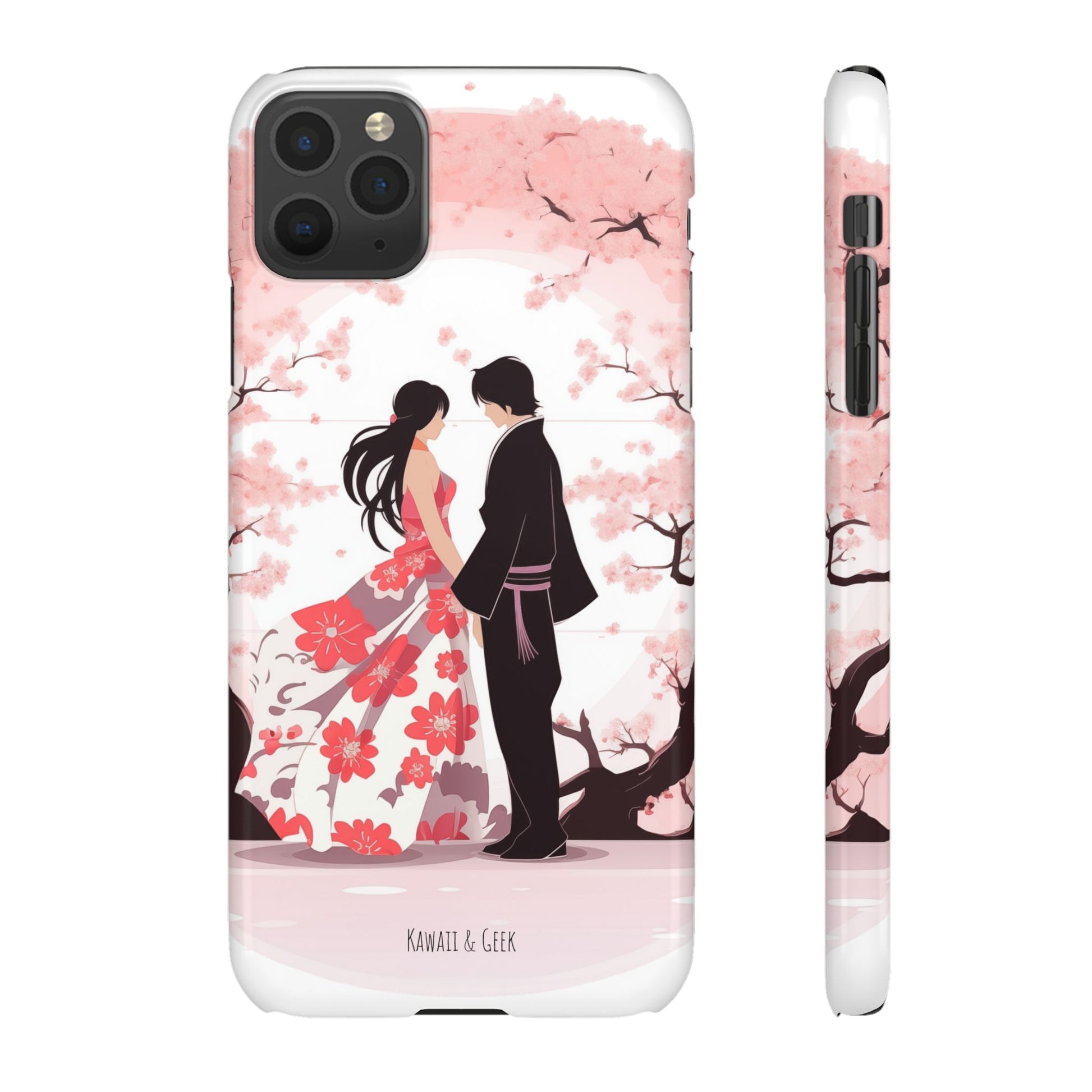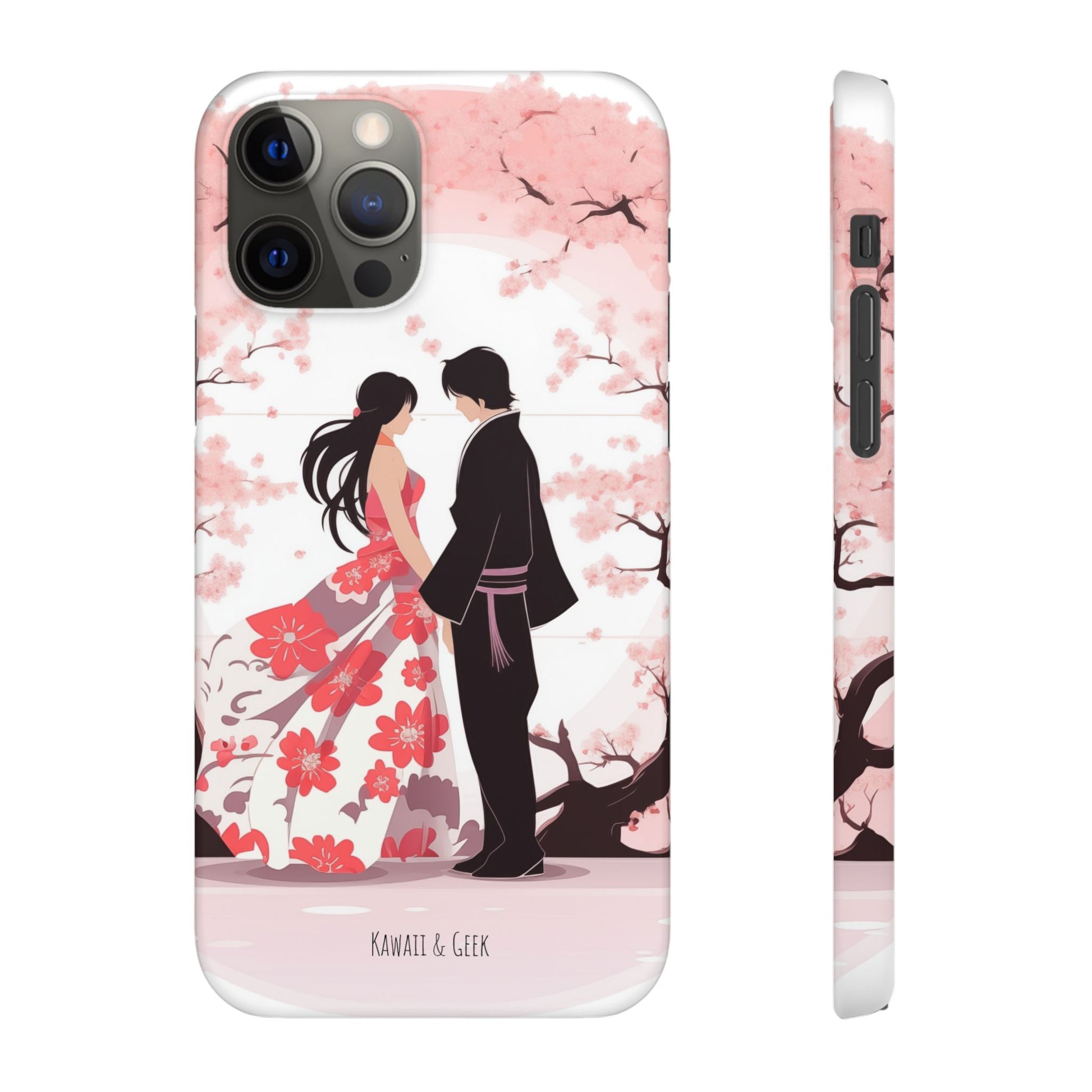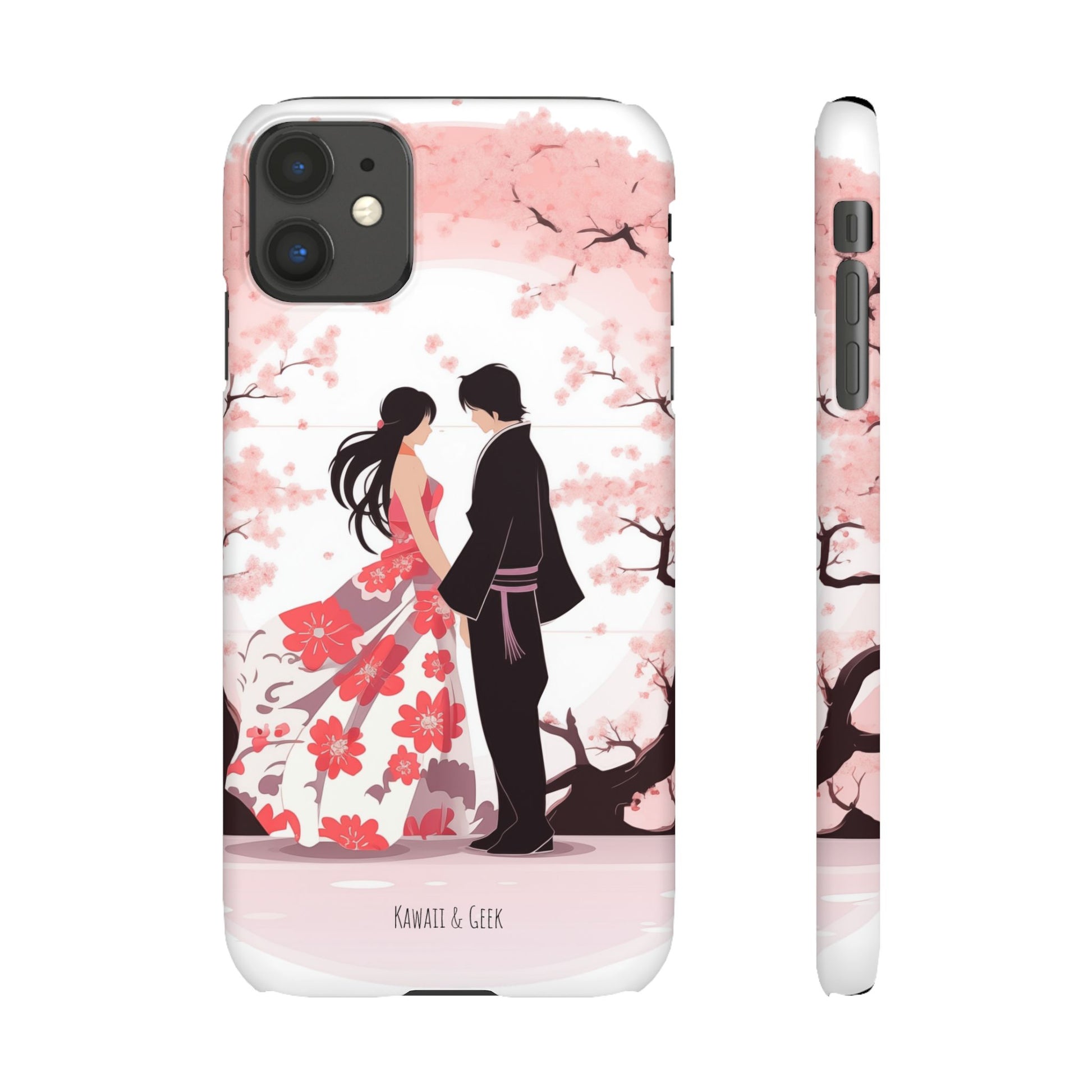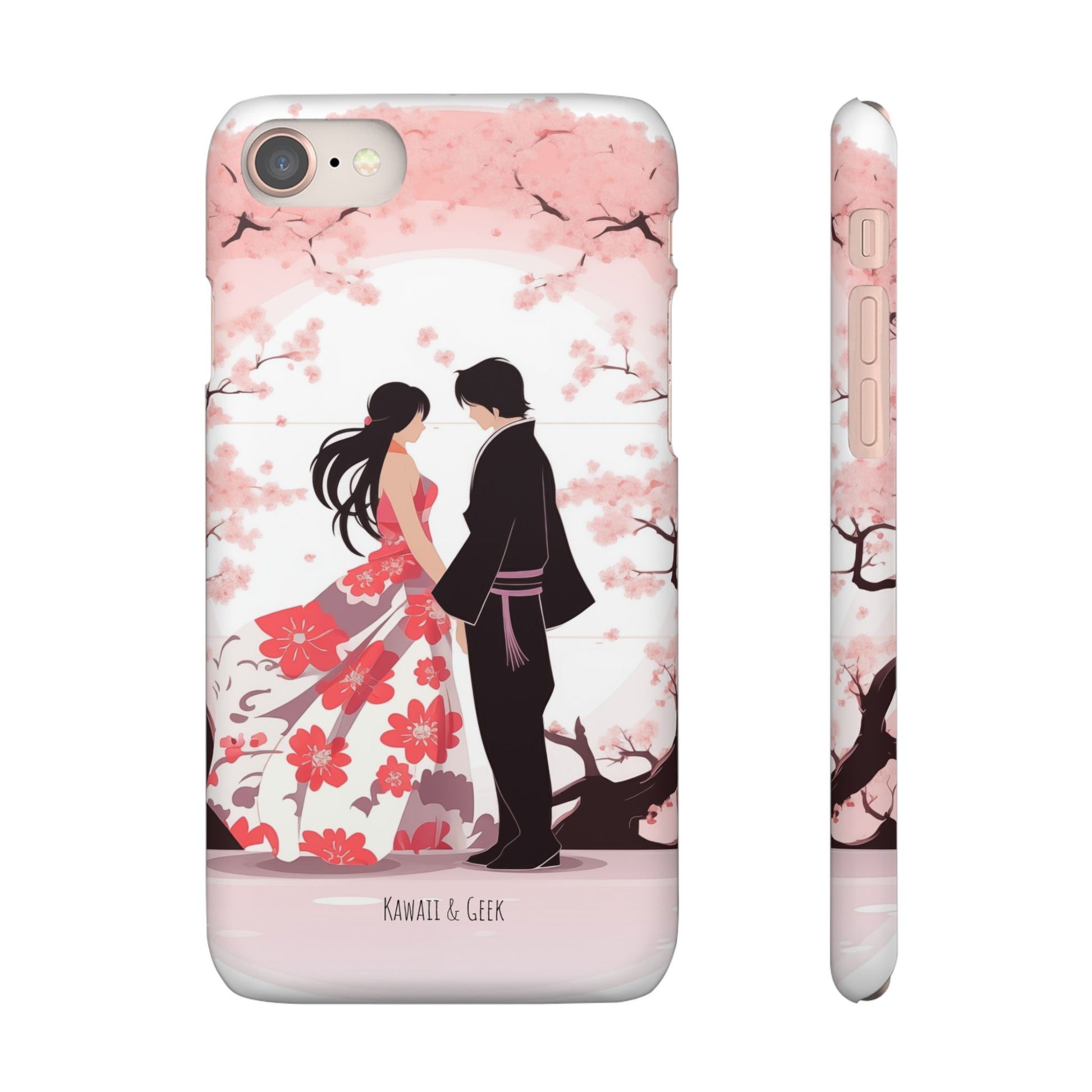Immerse in the romantic elegance of Japan with our 'Japanese Blossom Love Phone Case', a Valentine's Day special. This exquisite case features a beautifully illustrated cute couple in Japanese-style, tenderly placed under blossoming cherry trees. The vibrant and detailed artwork brings the magic of cherry blossoms, or 'sakura', to your phone, symbolizing love and renewal. Designed to protect your device while adding a touch of artistic charm, this case combines functionality with beauty. Its durable material ensures your phone stays safe from daily wear and tear, while the slim profile maintains its sleek appearance. Perfect for those who appreciate the delicate allure of Japanese aesthetics and the spirit of Valentine's Day, this phone case is a wonderful blend of kawaii culture and timeless romance."