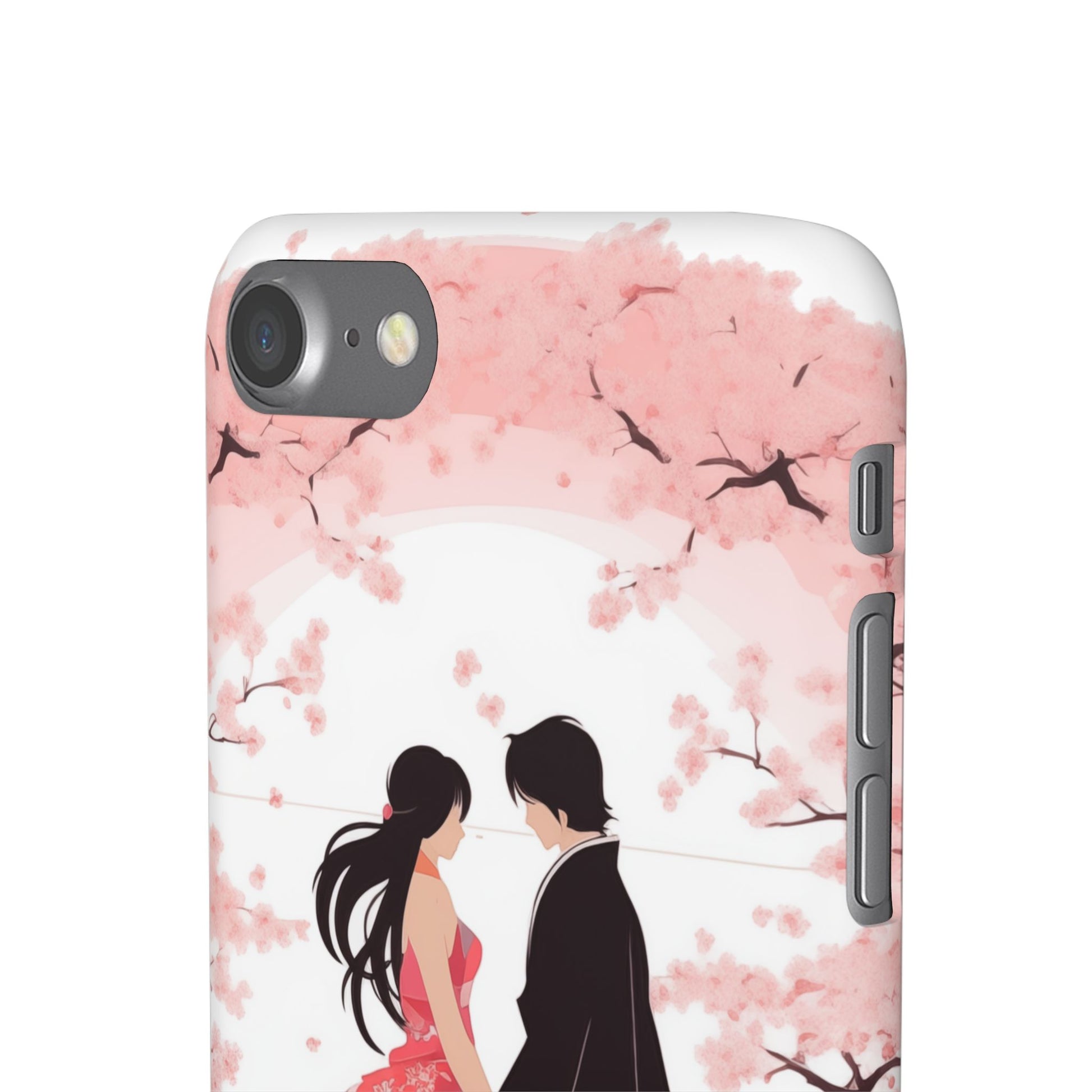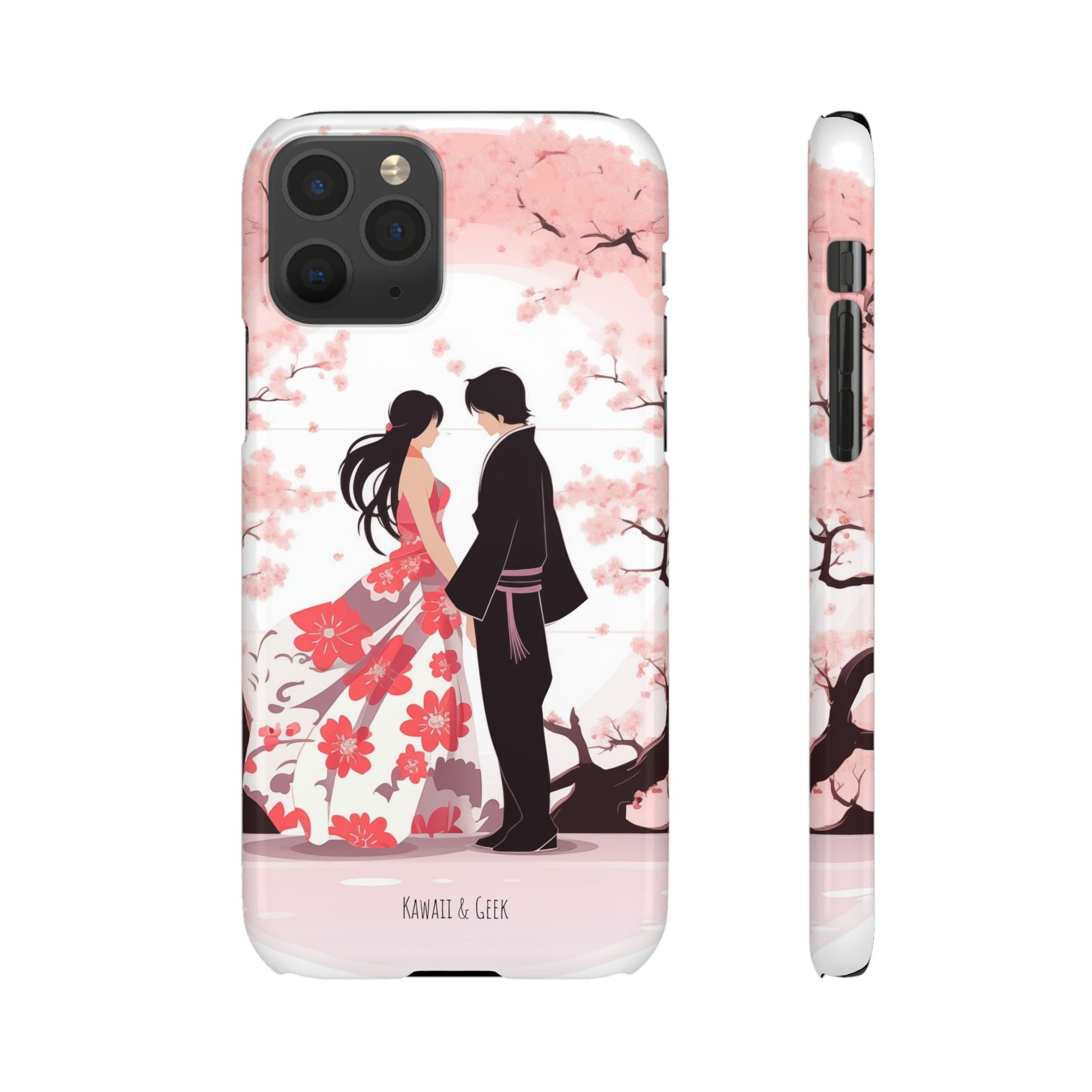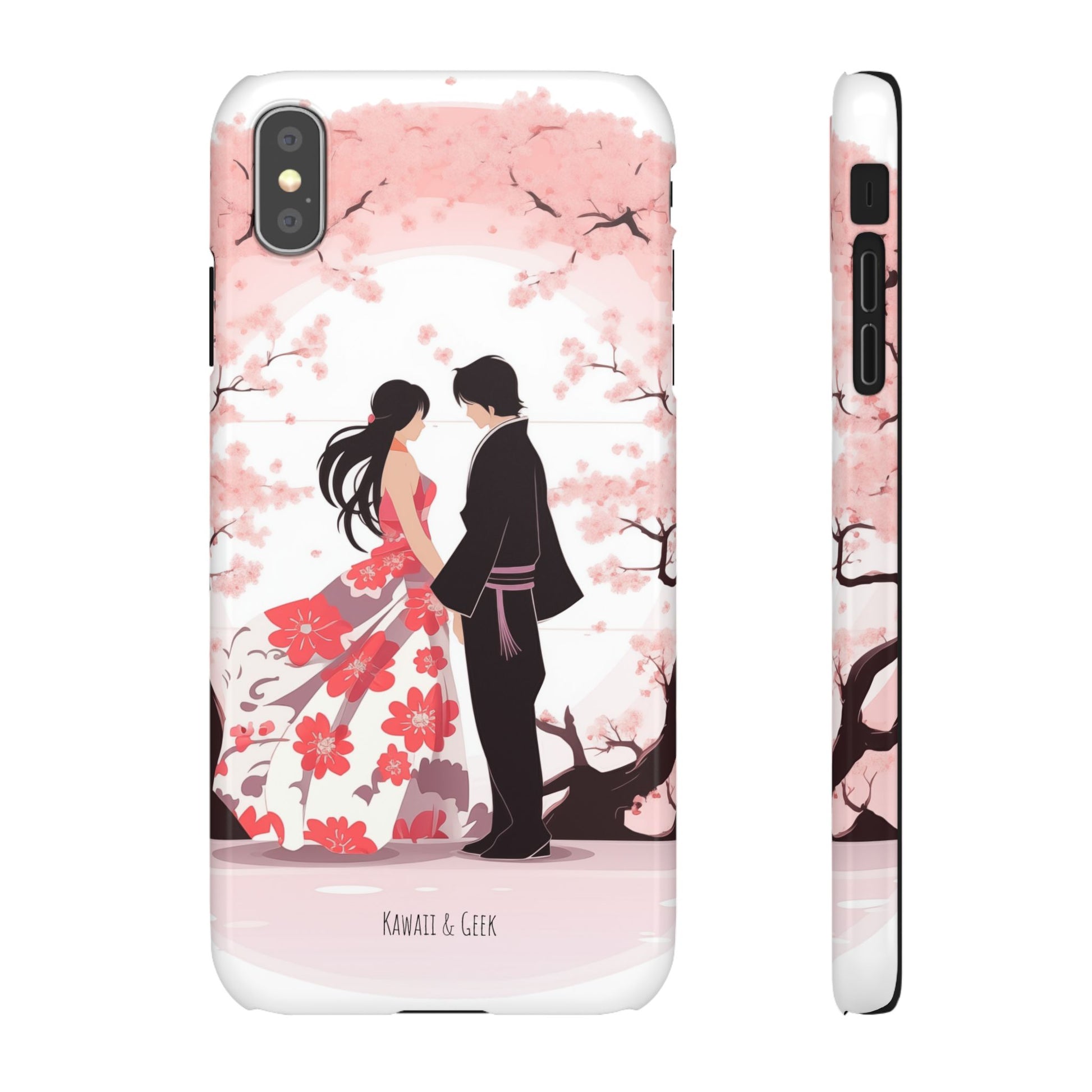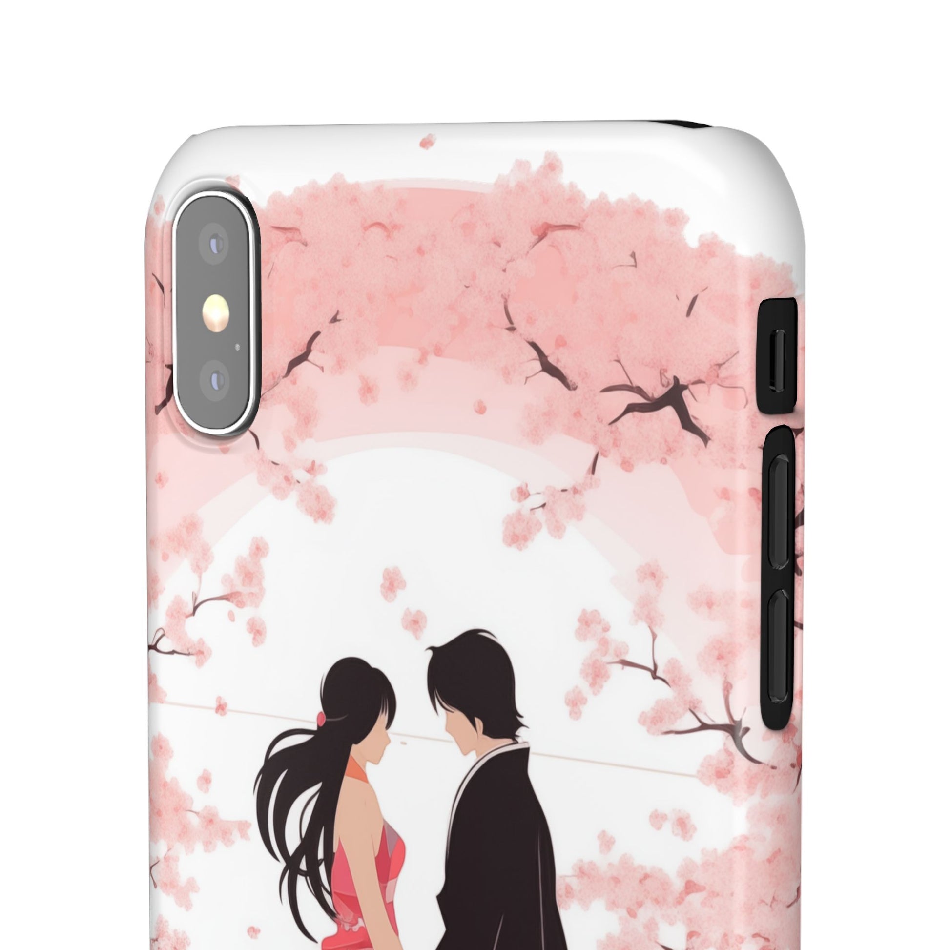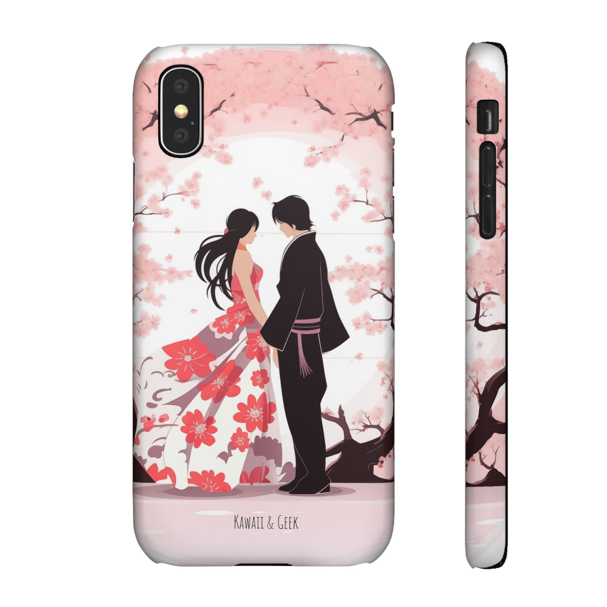 Immerse in the romantic elegance of Japan with our 'Japanese Blossom Love Phone Case', a Valentine's Day special. This exquisite case features a beautifully illustrated cute couple in Japanese-style, tenderly placed under blossoming cherry trees. The vibrant and detailed artwork brings the magic of cherry blossoms, or 'sakura', to your phone, symbolizing love and renewal. Designed to protect your device while adding a touch of artistic charm, this case combines functionality with beauty. Its durable material ensures your phone stays safe from daily wear and tear, while the slim profile maintains its sleek appearance. Perfect for those who appreciate the delicate allure of Japanese aesthetics and the spirit of Valentine's Day, this phone case is a wonderful blend of kawaii culture and timeless romance."