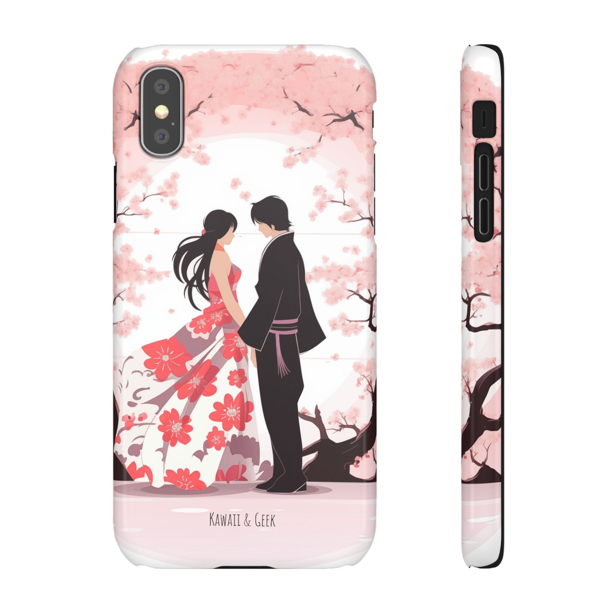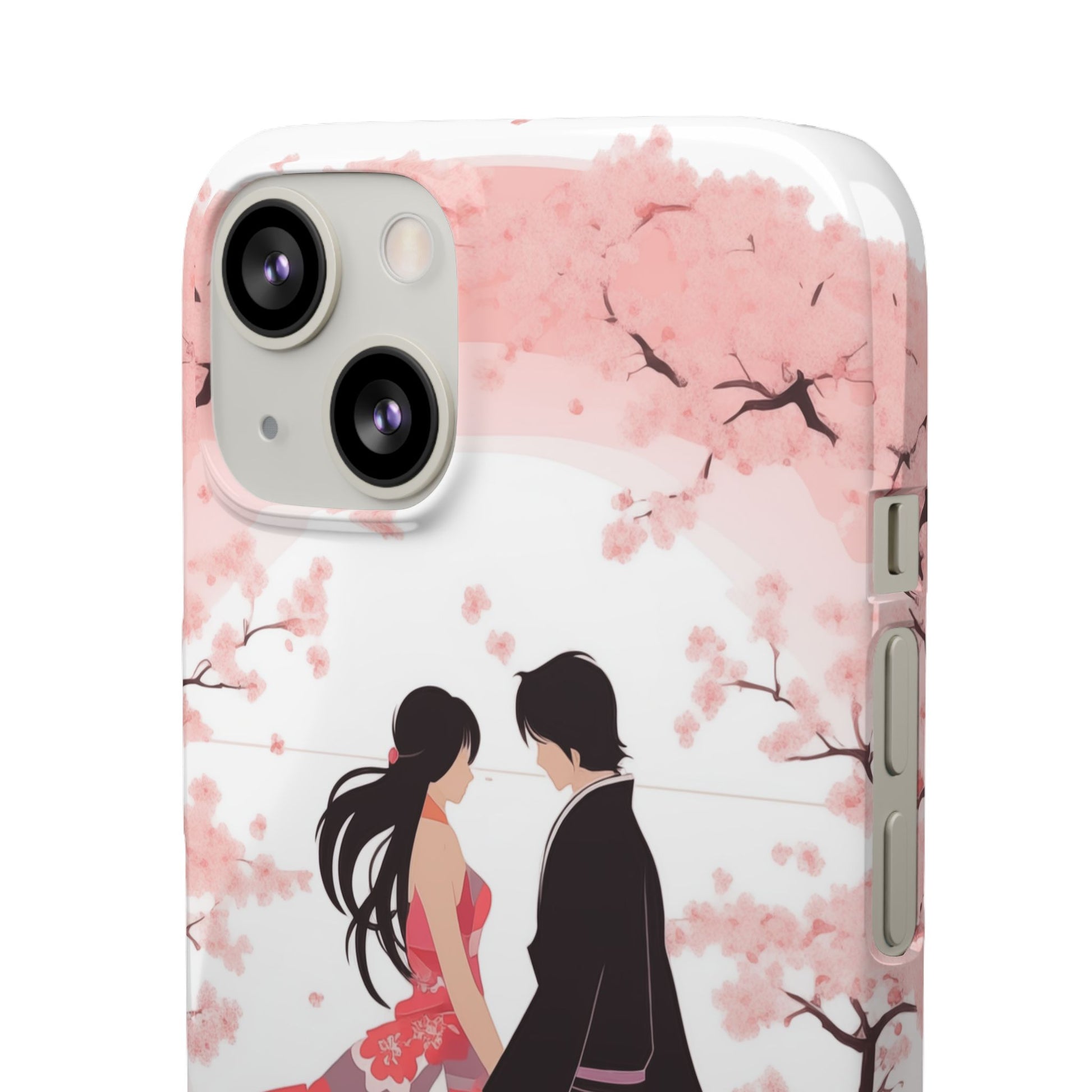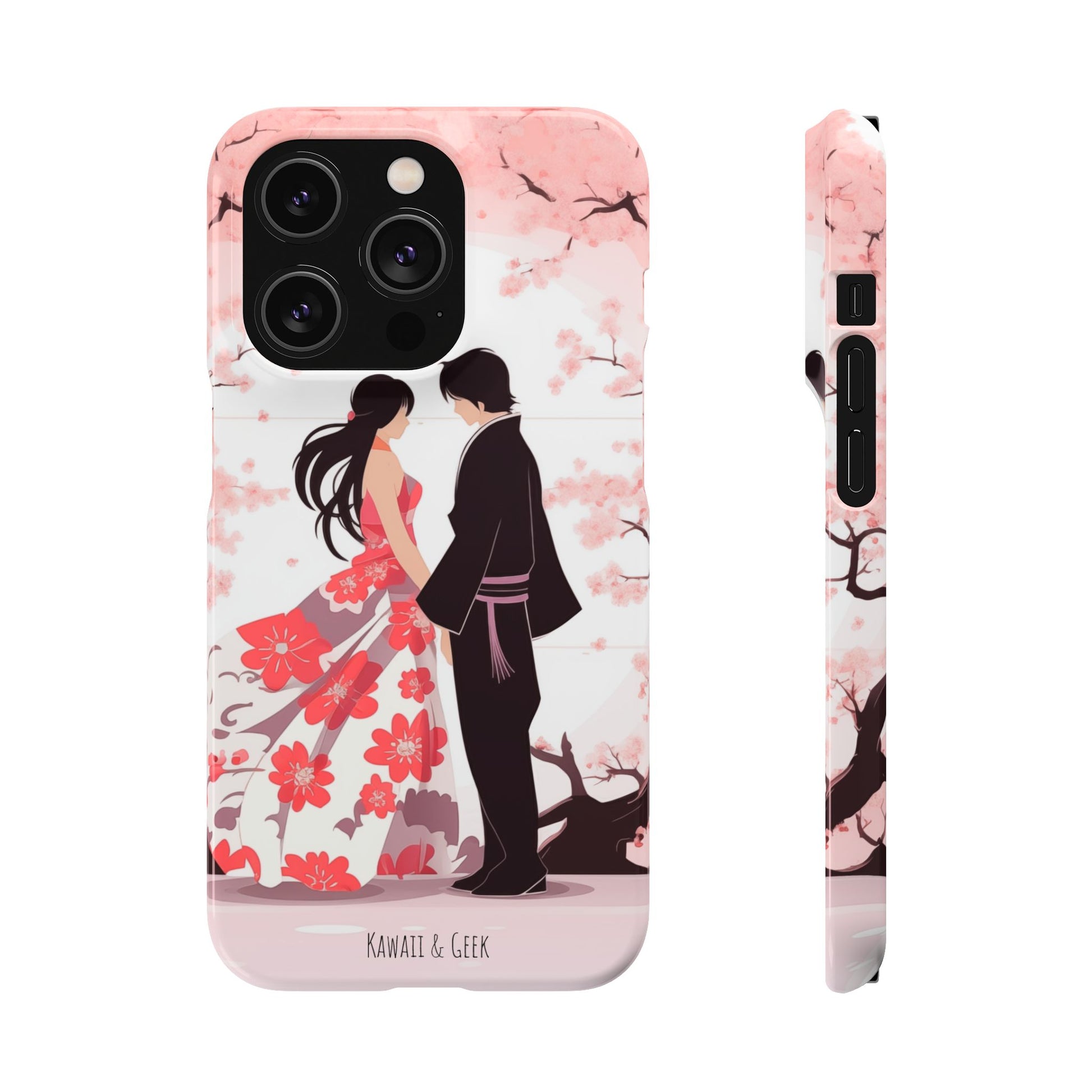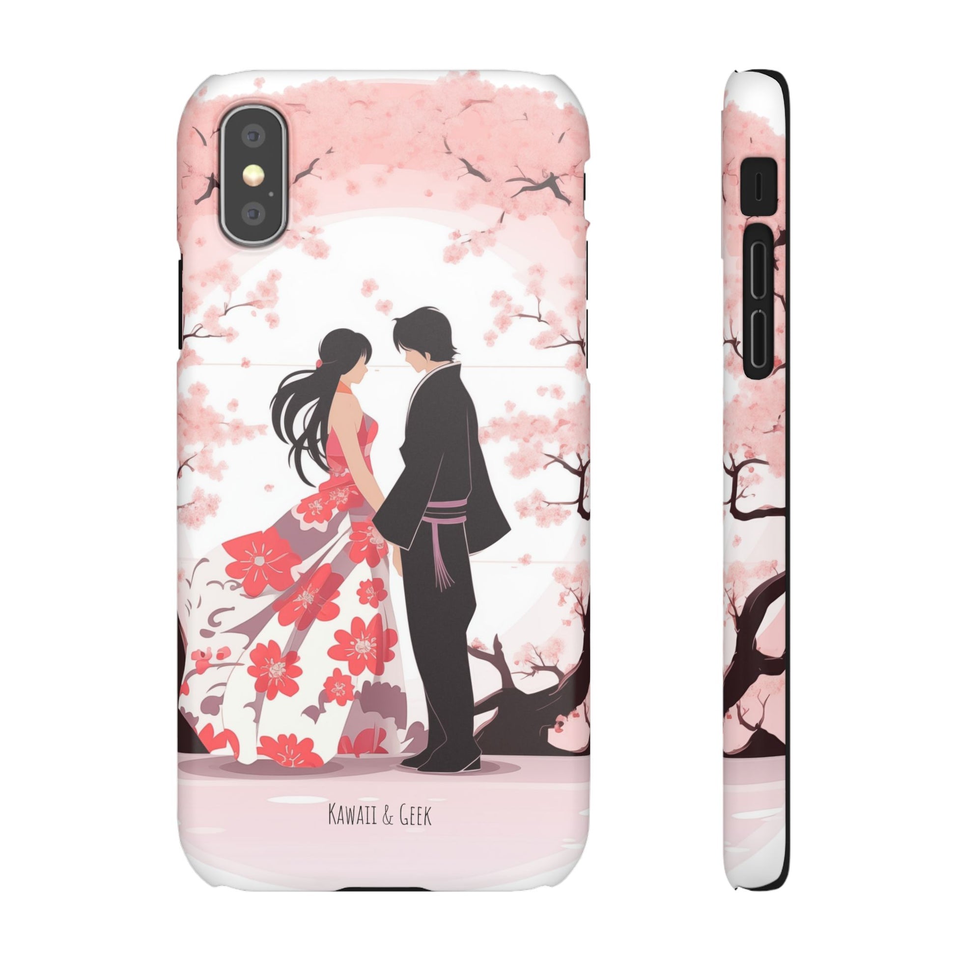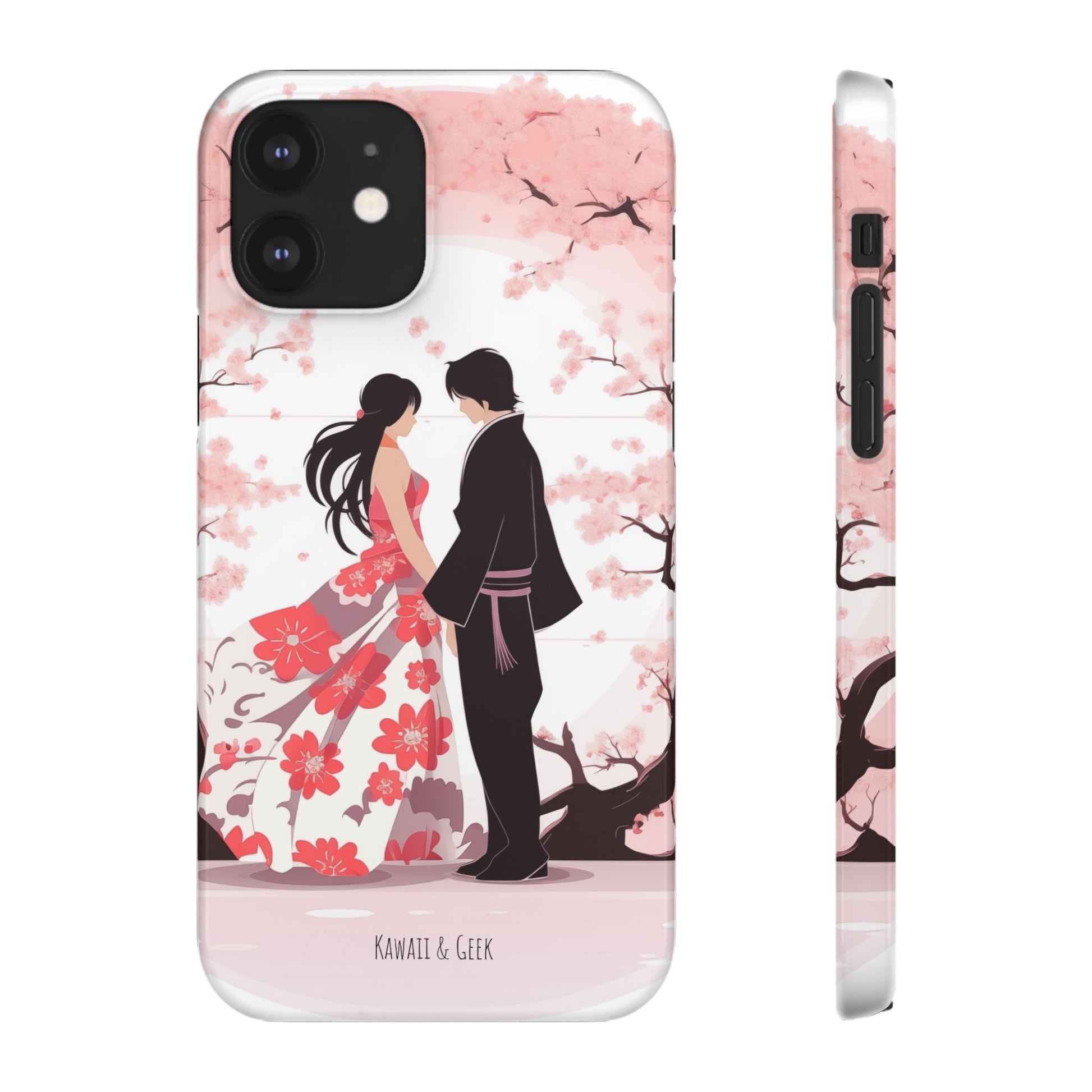 Immerse in the romantic elegance of Japan with our 'Japanese Blossom Love Phone Case', a Valentine's Day special. This exquisite case features a beautifully illustrated cute couple in Japanese-style, tenderly placed under blossoming cherry trees. The vibrant and detailed artwork brings the magic of cherry blossoms, or 'sakura', to your phone, symbolizing love and renewal. Designed to protect your device while adding a touch of artistic charm, this case combines functionality with beauty. Its durable material ensures your phone stays safe from daily wear and tear, while the slim profile maintains its sleek appearance. Perfect for those who appreciate the delicate allure of Japanese aesthetics and the spirit of Valentine's Day, this phone case is a wonderful blend of kawaii culture and timeless romance."