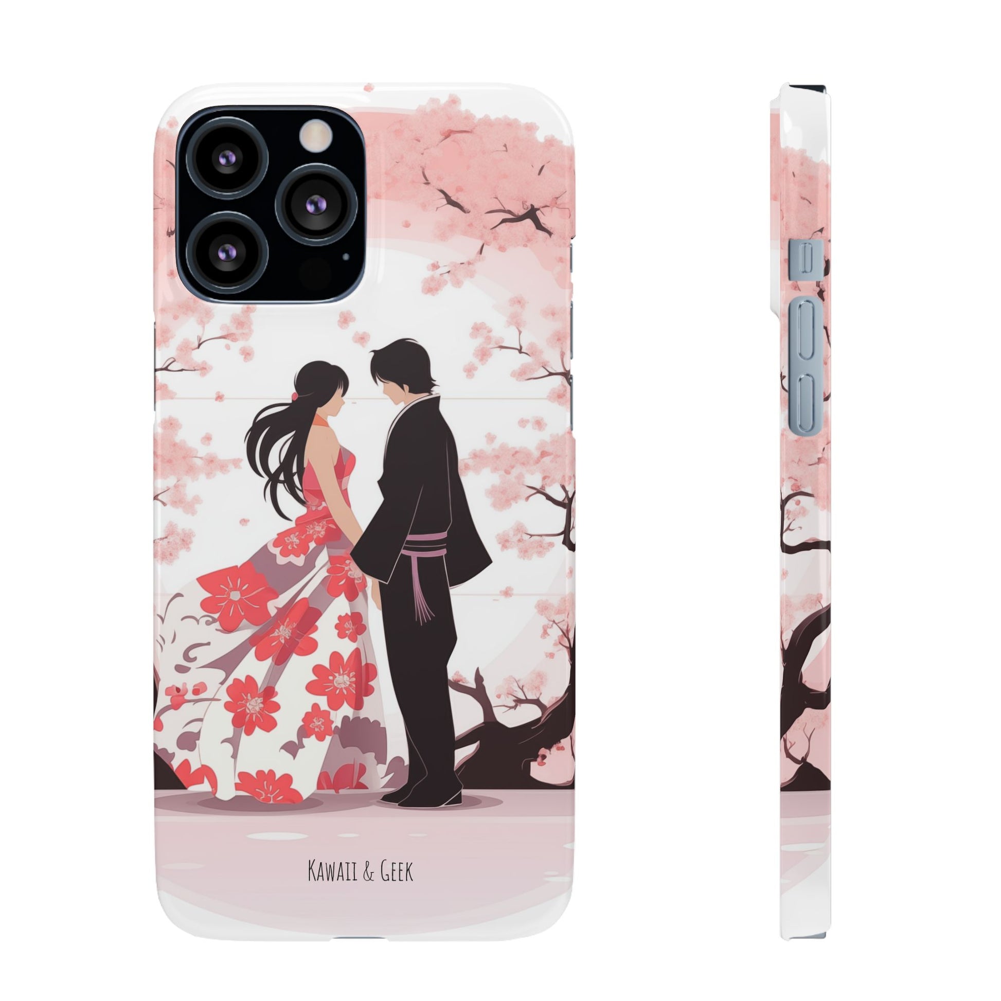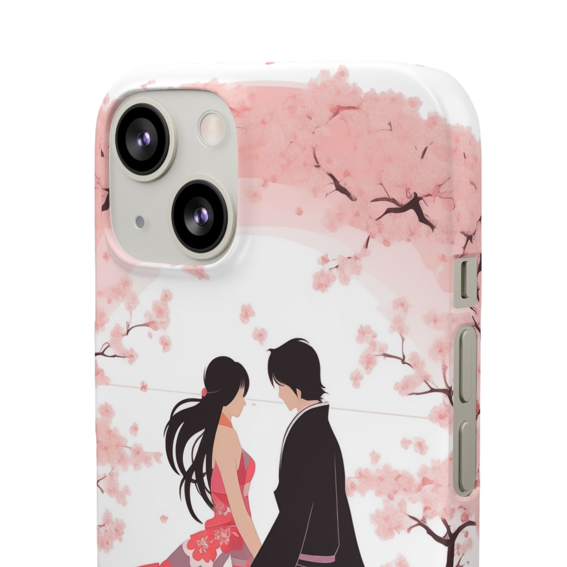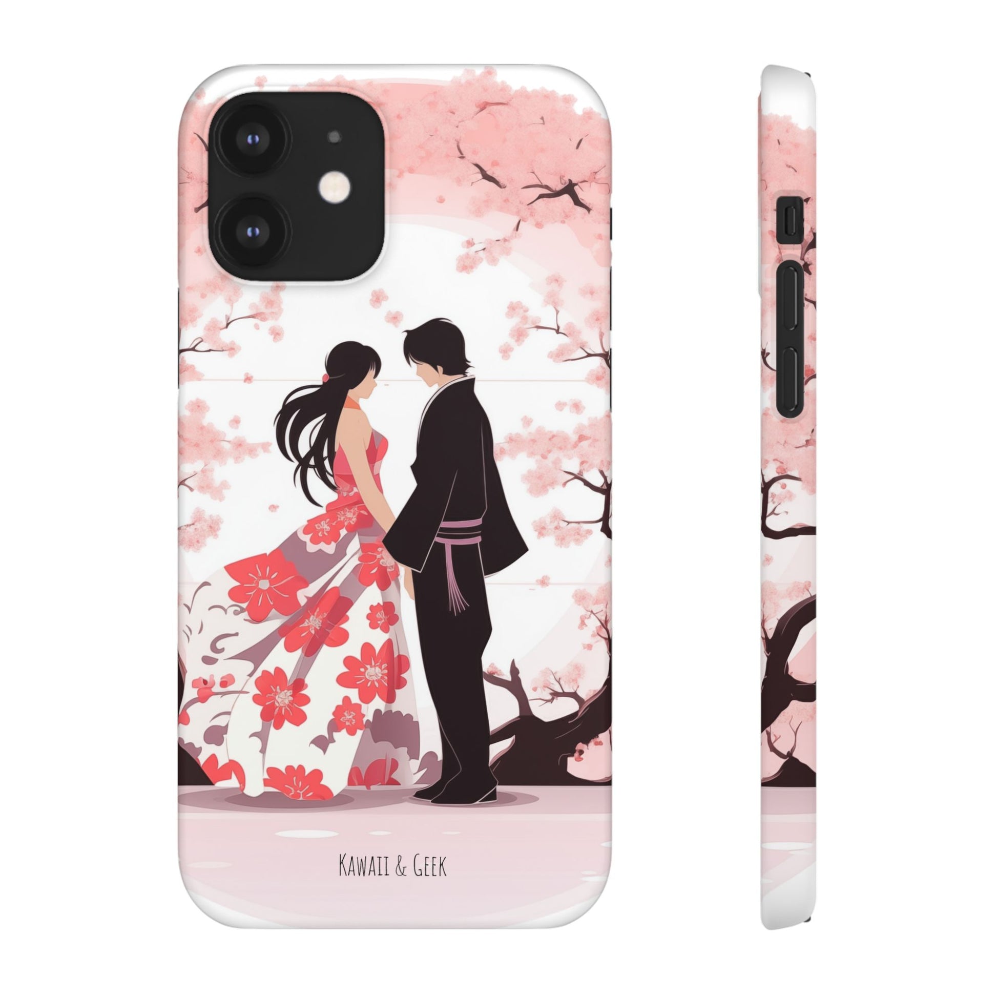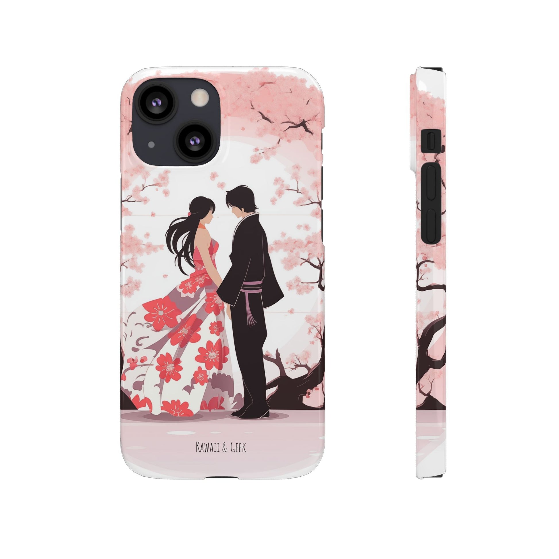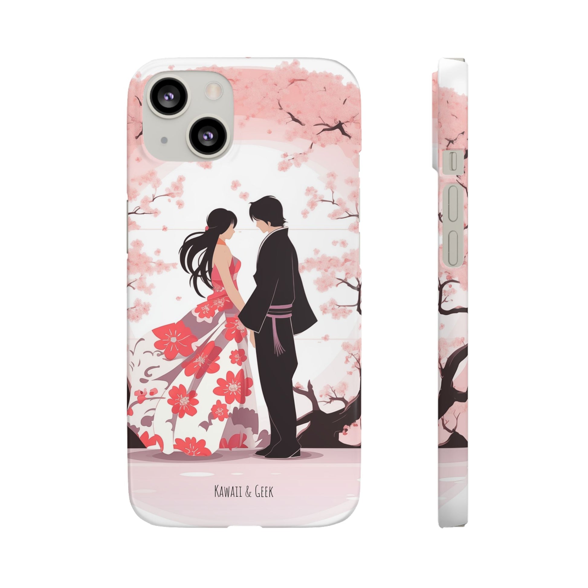 Immerse in the romantic elegance of Japan with our 'Japanese Blossom Love Phone Case', a Valentine's Day special. This exquisite case features a beautifully illustrated cute couple in Japanese-style, tenderly placed under blossoming cherry trees. The vibrant and detailed artwork brings the magic of cherry blossoms, or 'sakura', to your phone, symbolizing love and renewal. Designed to protect your device while adding a touch of artistic charm, this case combines functionality with beauty. Its durable material ensures your phone stays safe from daily wear and tear, while the slim profile maintains its sleek appearance. Perfect for those who appreciate the delicate allure of Japanese aesthetics and the spirit of Valentine's Day, this phone case is a wonderful blend of kawaii culture and timeless romance."