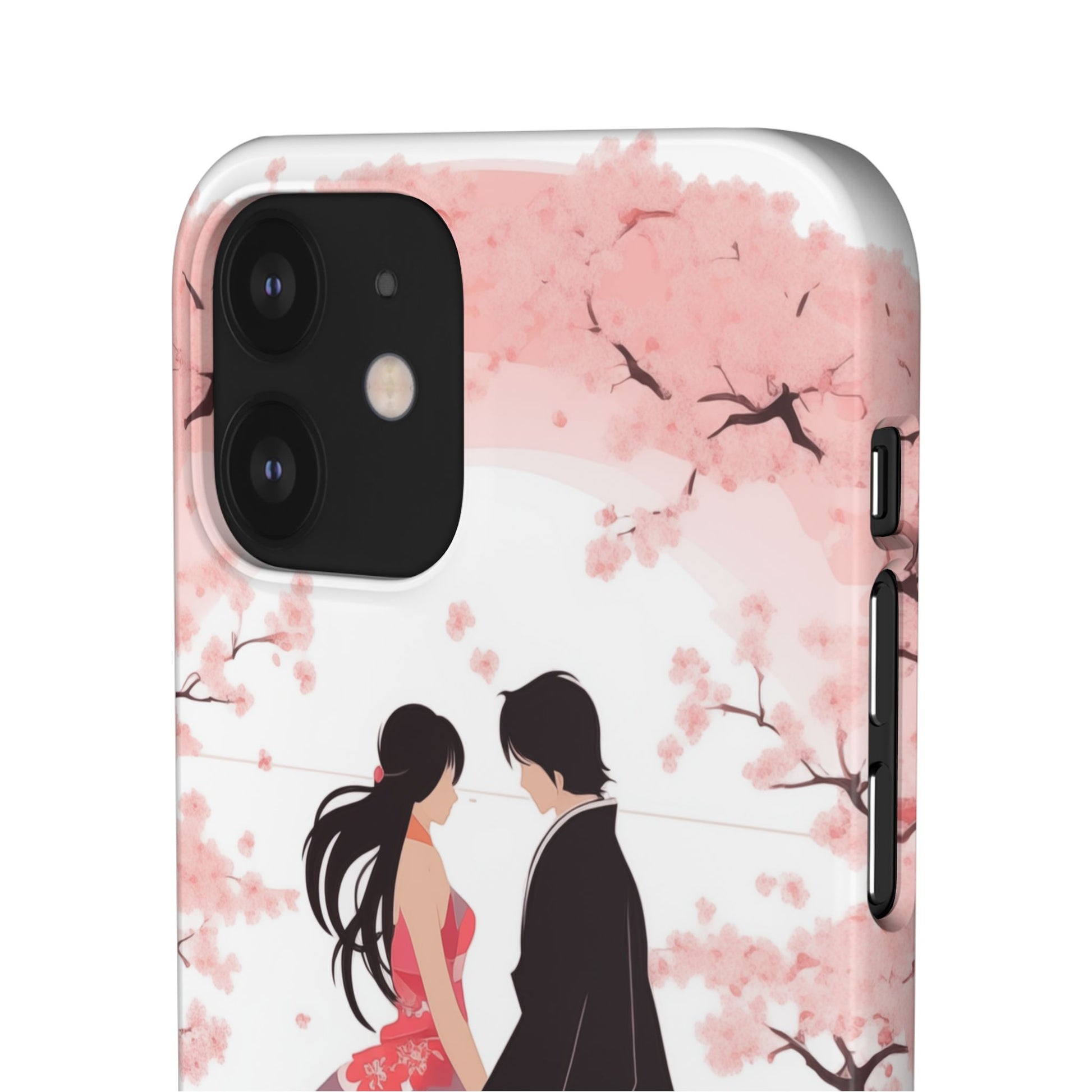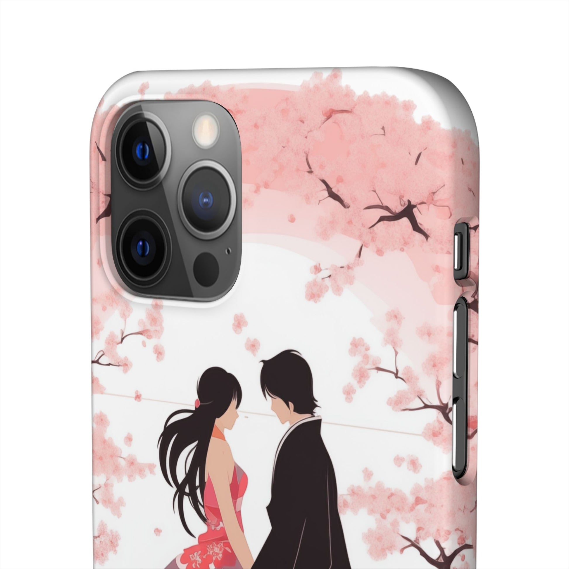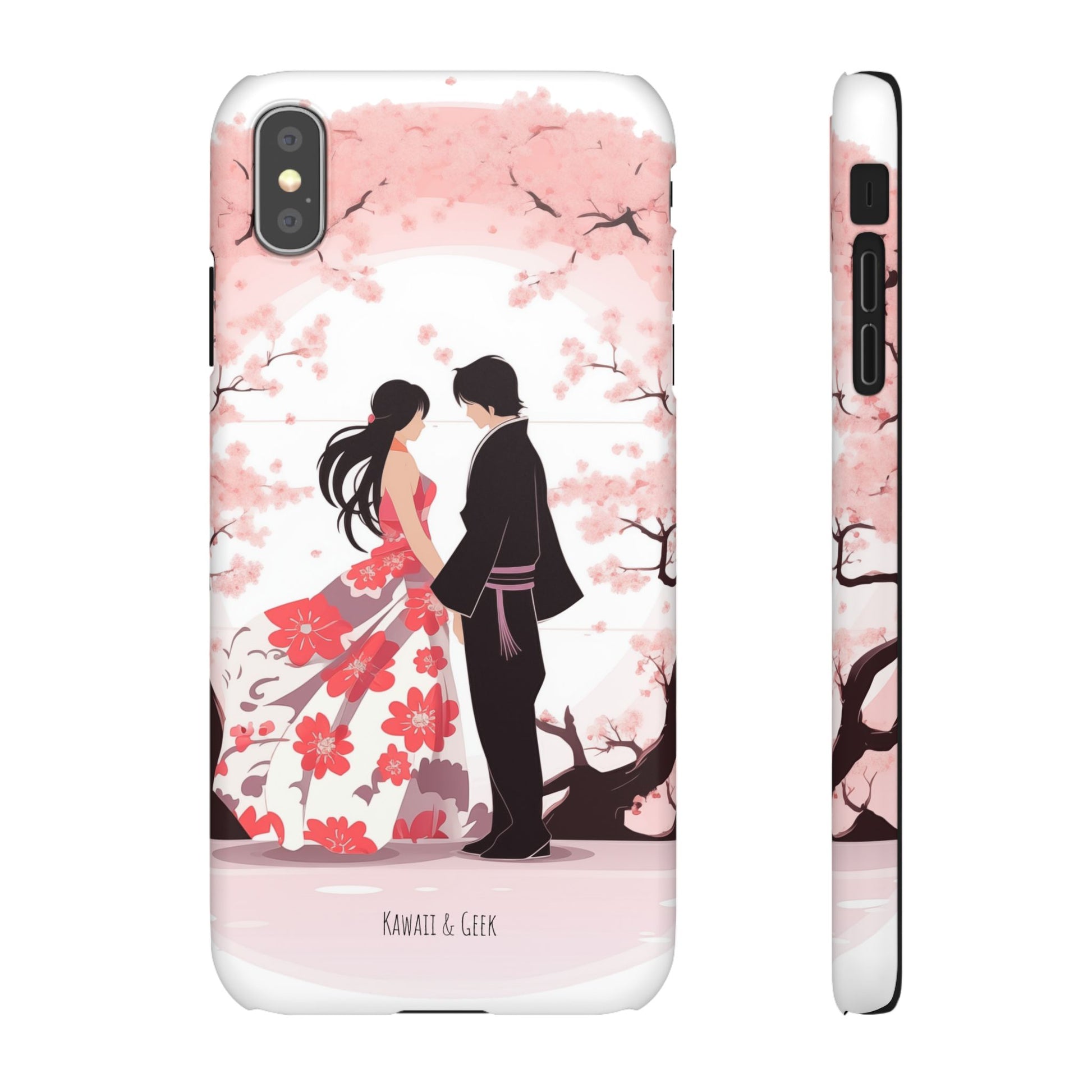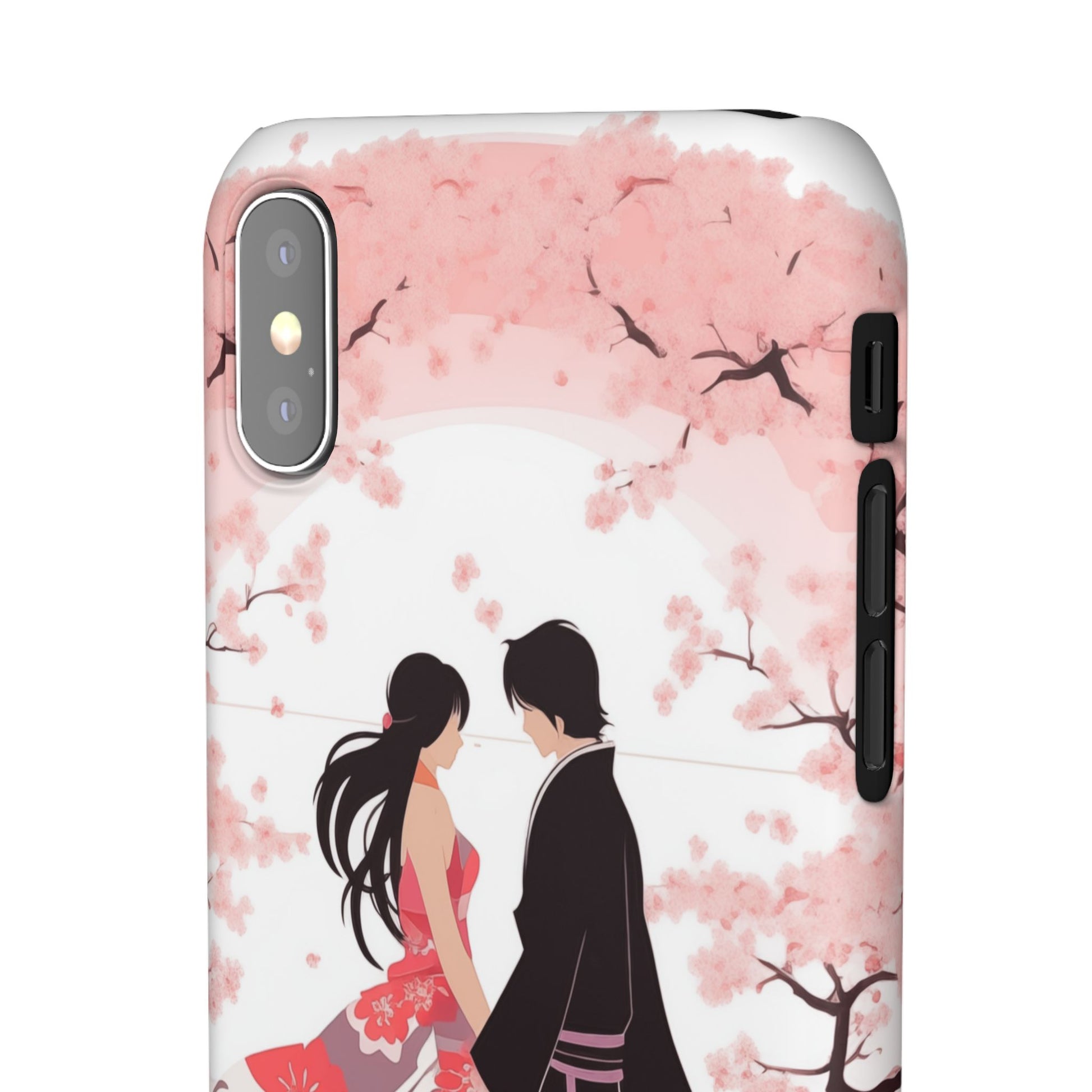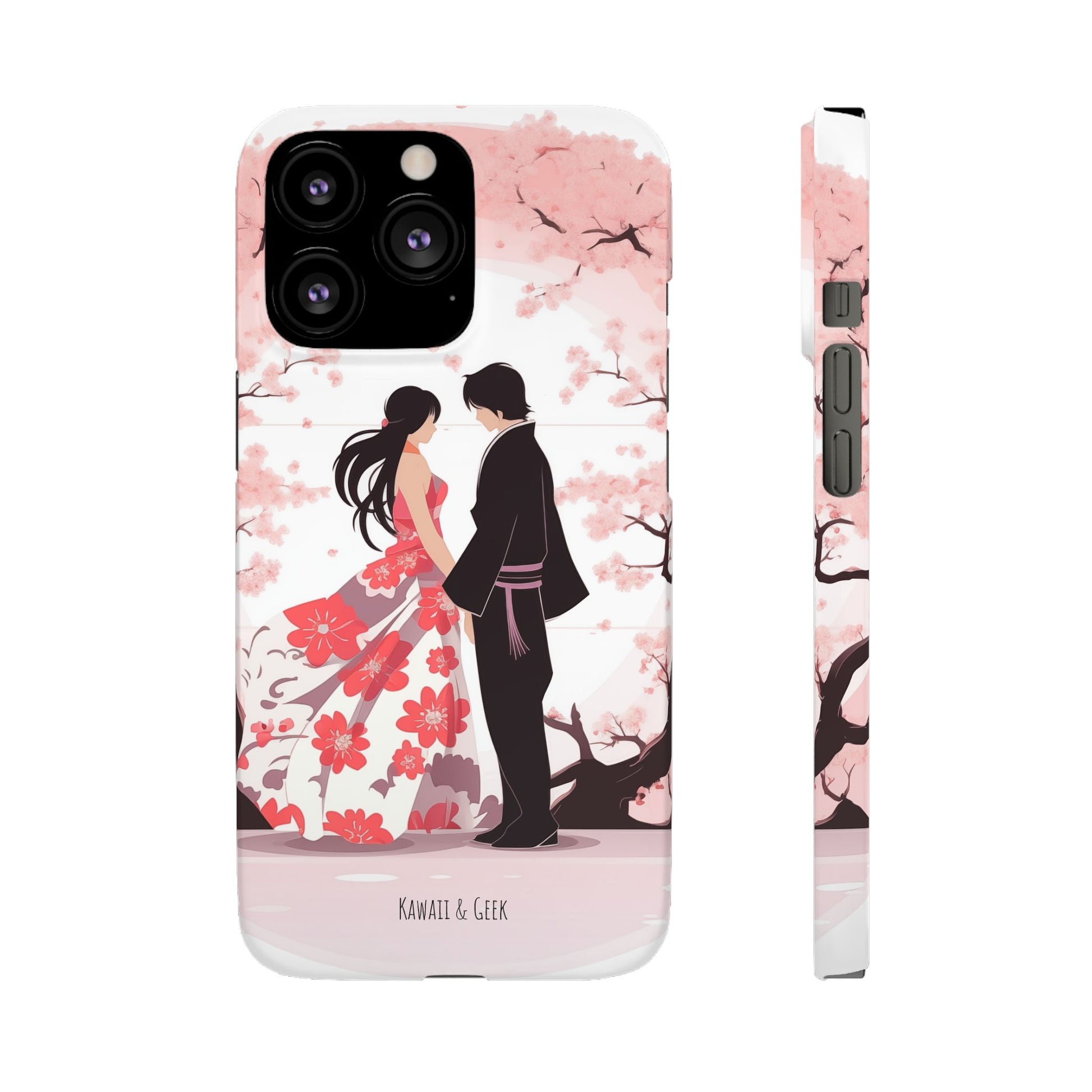 Immerse in the romantic elegance of Japan with our 'Japanese Blossom Love Phone Case', a Valentine's Day special. This exquisite case features a beautifully illustrated cute couple in Japanese-style, tenderly placed under blossoming cherry trees. The vibrant and detailed artwork brings the magic of cherry blossoms, or 'sakura', to your phone, symbolizing love and renewal. Designed to protect your device while adding a touch of artistic charm, this case combines functionality with beauty. Its durable material ensures your phone stays safe from daily wear and tear, while the slim profile maintains its sleek appearance. Perfect for those who appreciate the delicate allure of Japanese aesthetics and the spirit of Valentine's Day, this phone case is a wonderful blend of kawaii culture and timeless romance."