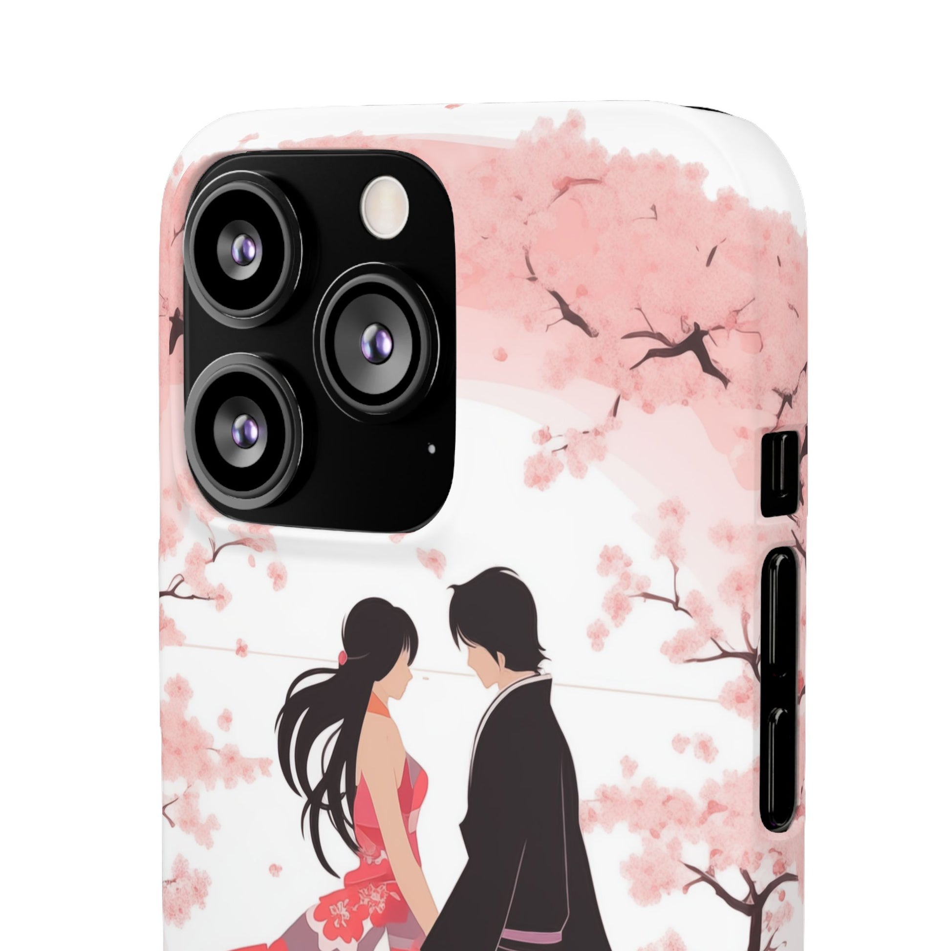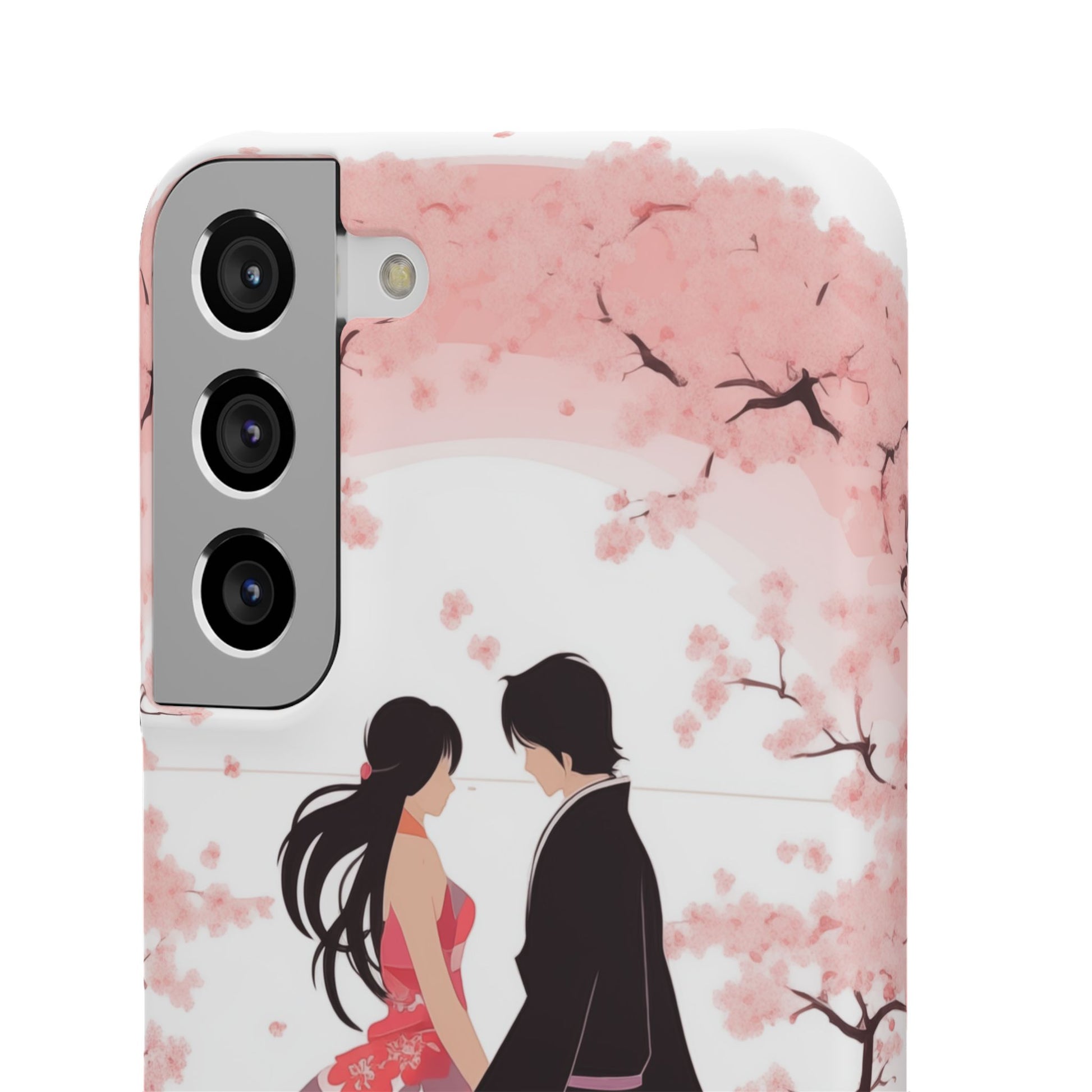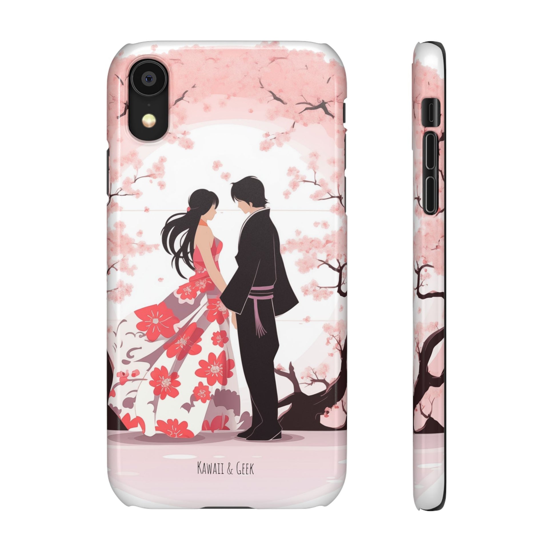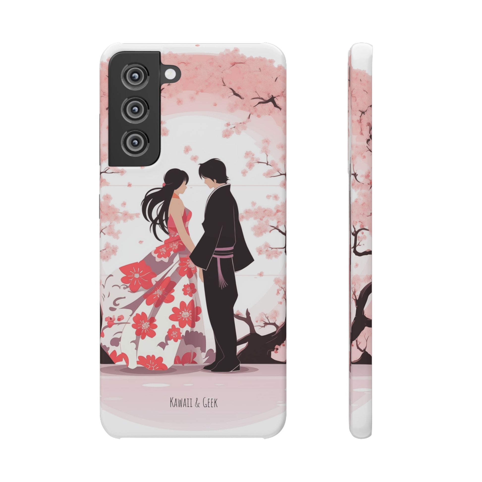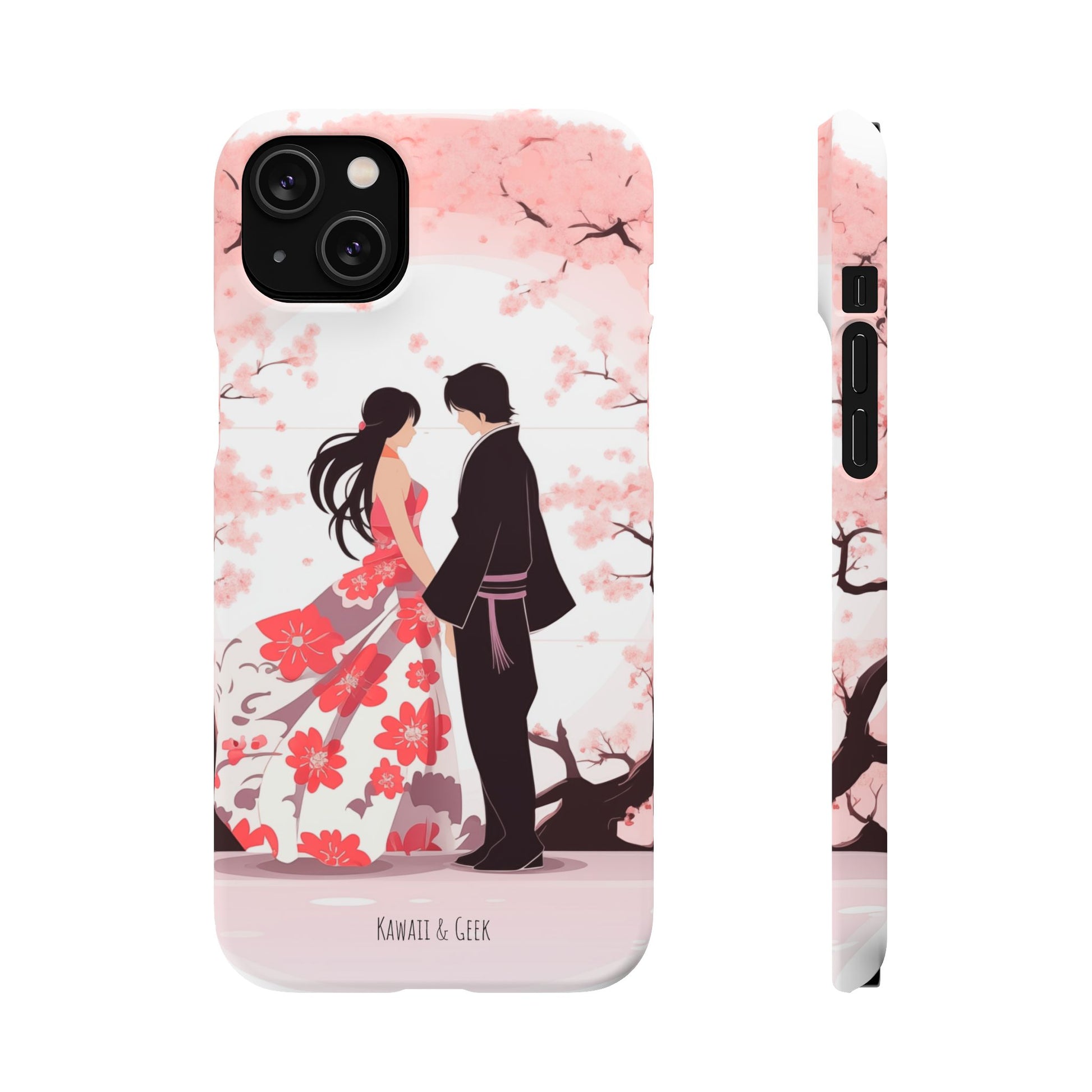 Immerse in the romantic elegance of Japan with our 'Japanese Blossom Love Phone Case', a Valentine's Day special. This exquisite case features a beautifully illustrated cute couple in Japanese-style, tenderly placed under blossoming cherry trees. The vibrant and detailed artwork brings the magic of cherry blossoms, or 'sakura', to your phone, symbolizing love and renewal. Designed to protect your device while adding a touch of artistic charm, this case combines functionality with beauty. Its durable material ensures your phone stays safe from daily wear and tear, while the slim profile maintains its sleek appearance. Perfect for those who appreciate the delicate allure of Japanese aesthetics and the spirit of Valentine's Day, this phone case is a wonderful blend of kawaii culture and timeless romance."