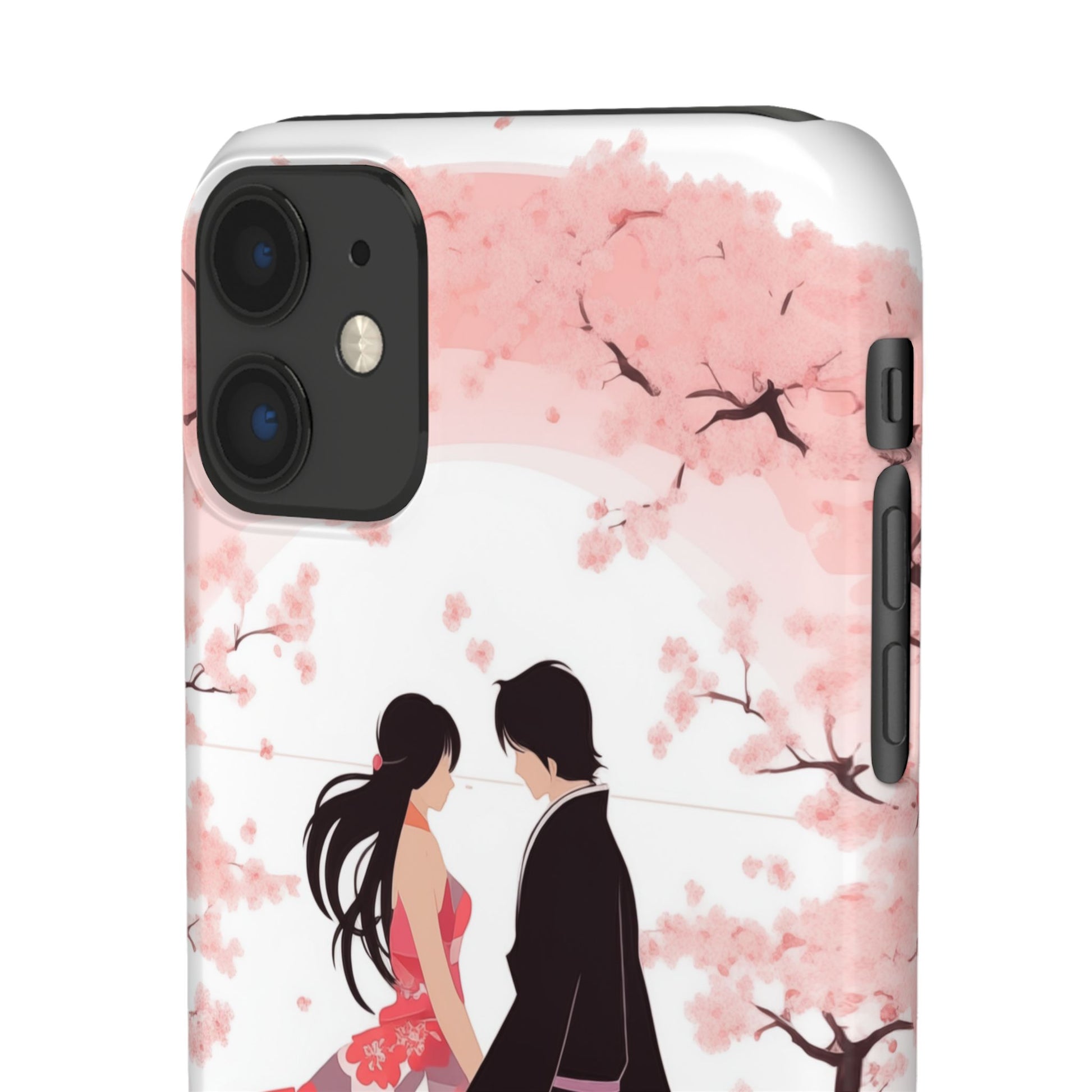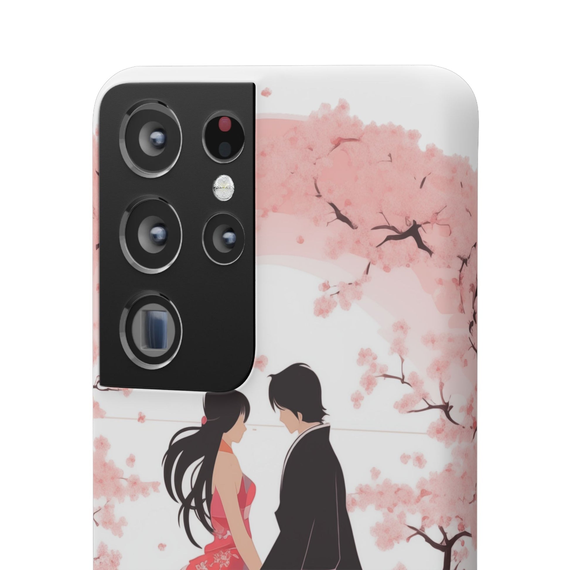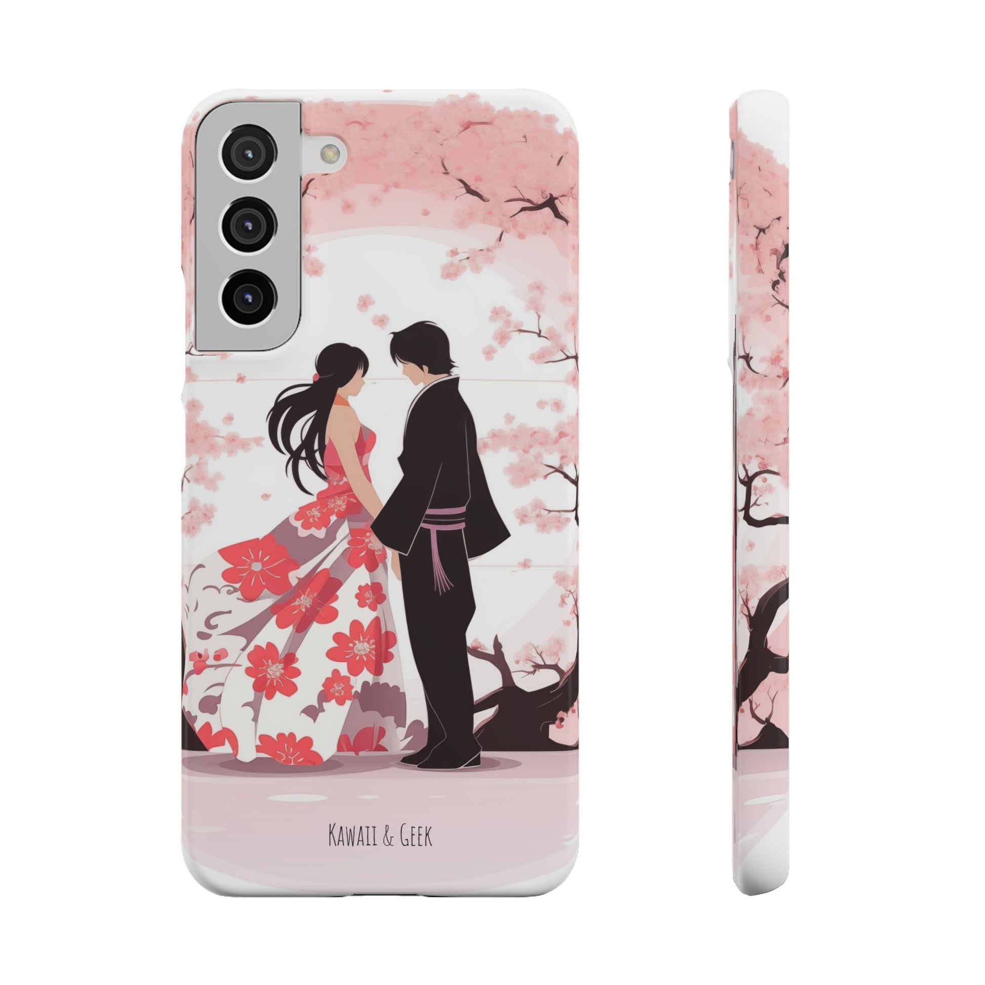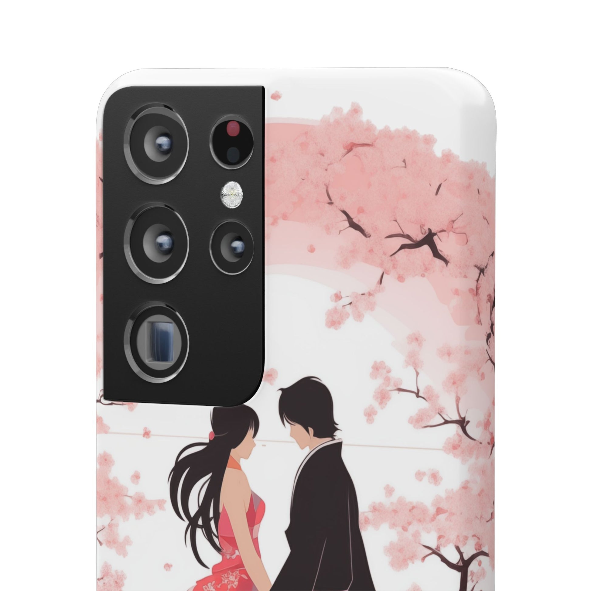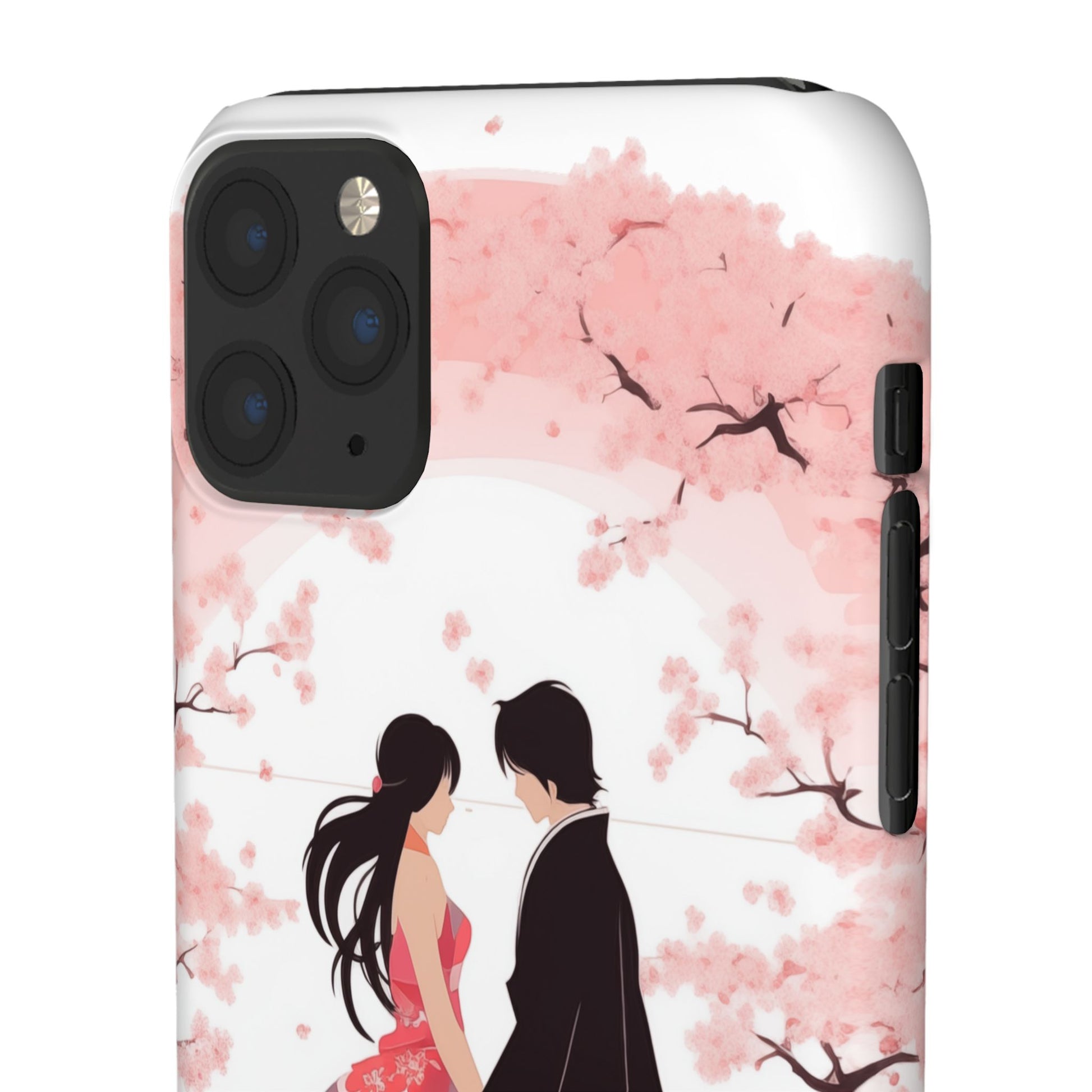 Immerse in the romantic elegance of Japan with our 'Japanese Blossom Love Phone Case', a Valentine's Day special. This exquisite case features a beautifully illustrated cute couple in Japanese-style, tenderly placed under blossoming cherry trees. The vibrant and detailed artwork brings the magic of cherry blossoms, or 'sakura', to your phone, symbolizing love and renewal. Designed to protect your device while adding a touch of artistic charm, this case combines functionality with beauty. Its durable material ensures your phone stays safe from daily wear and tear, while the slim profile maintains its sleek appearance. Perfect for those who appreciate the delicate allure of Japanese aesthetics and the spirit of Valentine's Day, this phone case is a wonderful blend of kawaii culture and timeless romance."