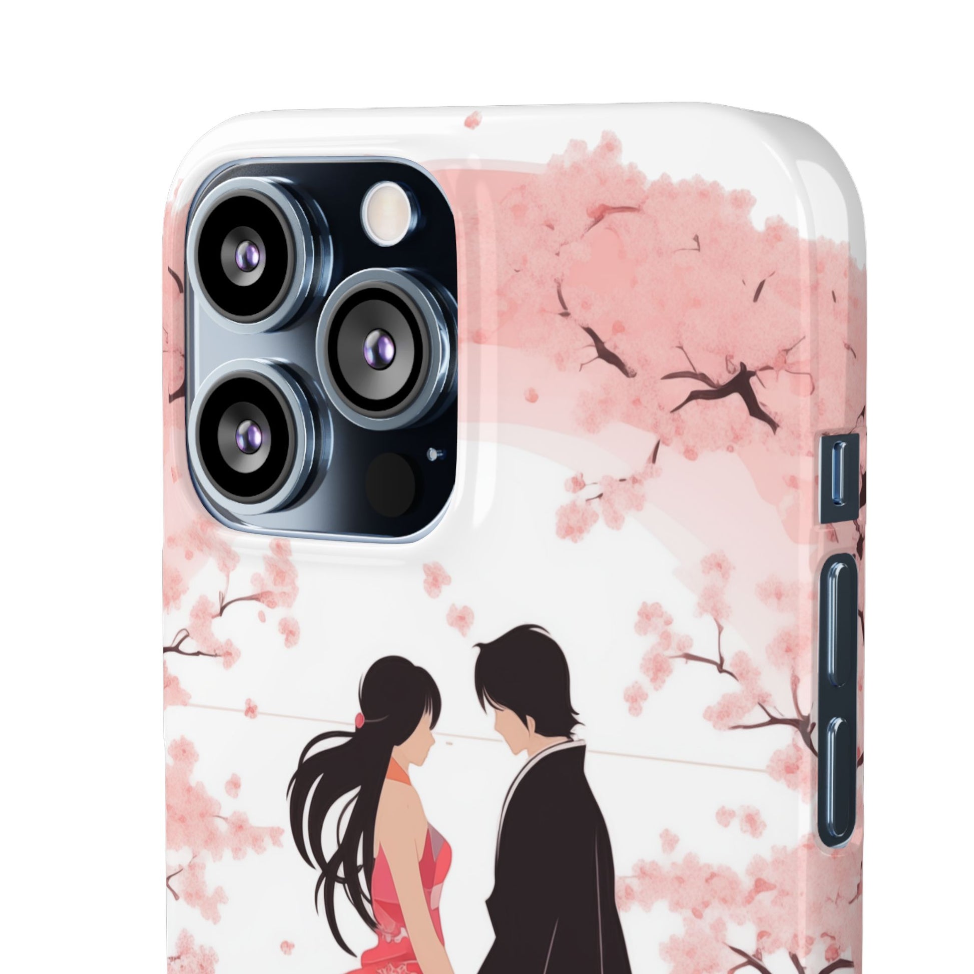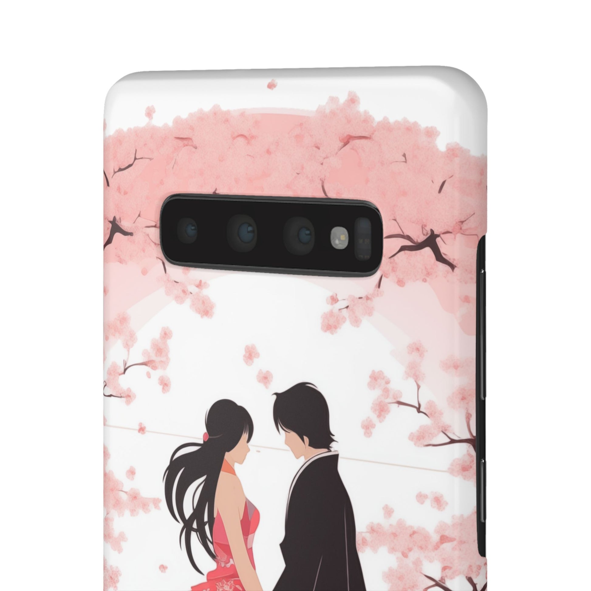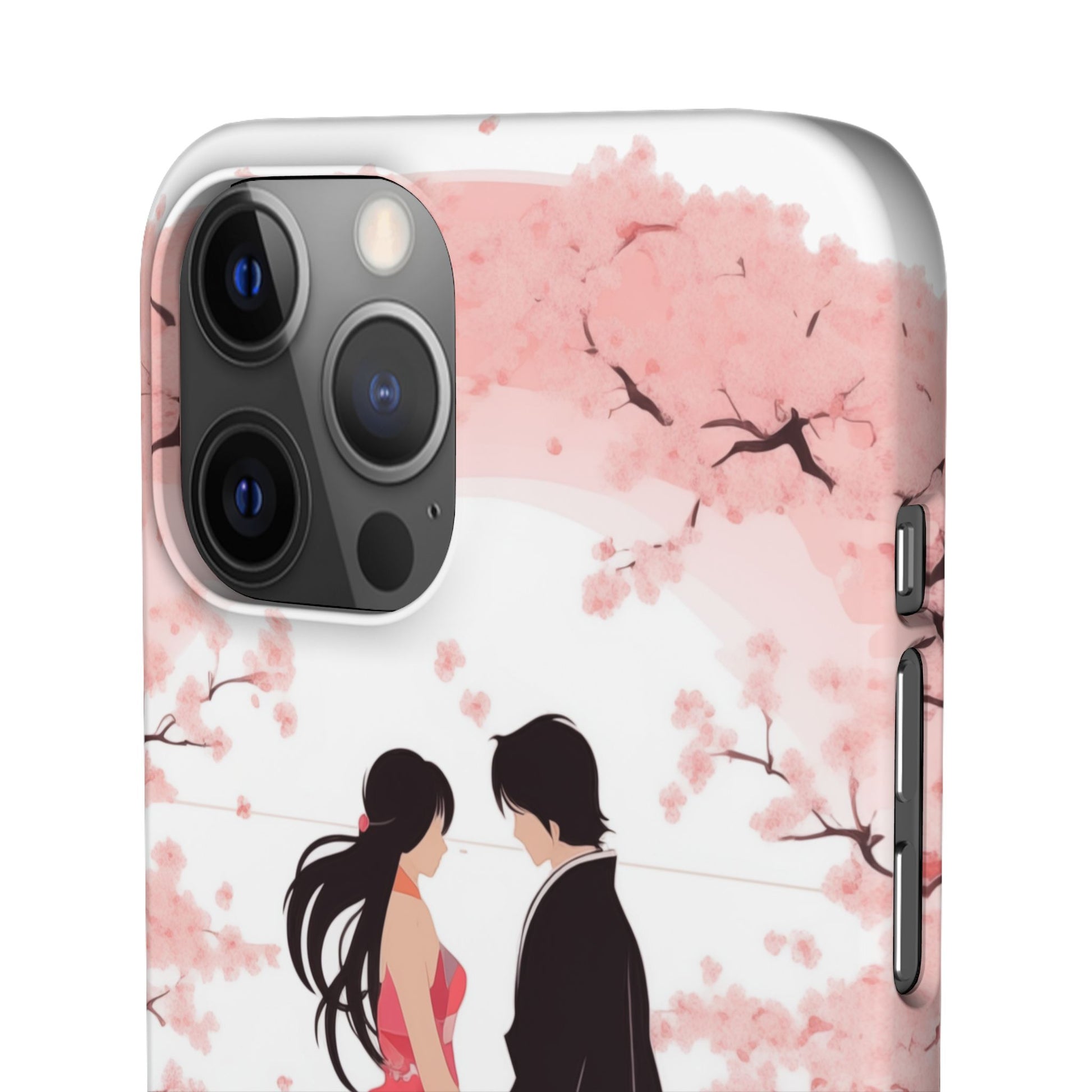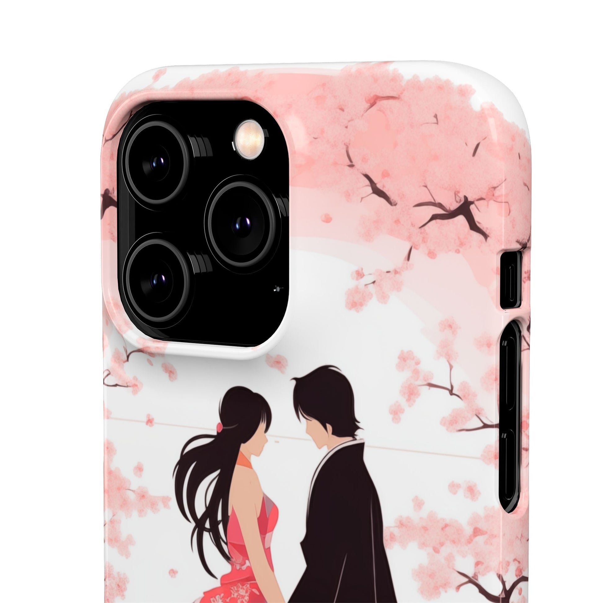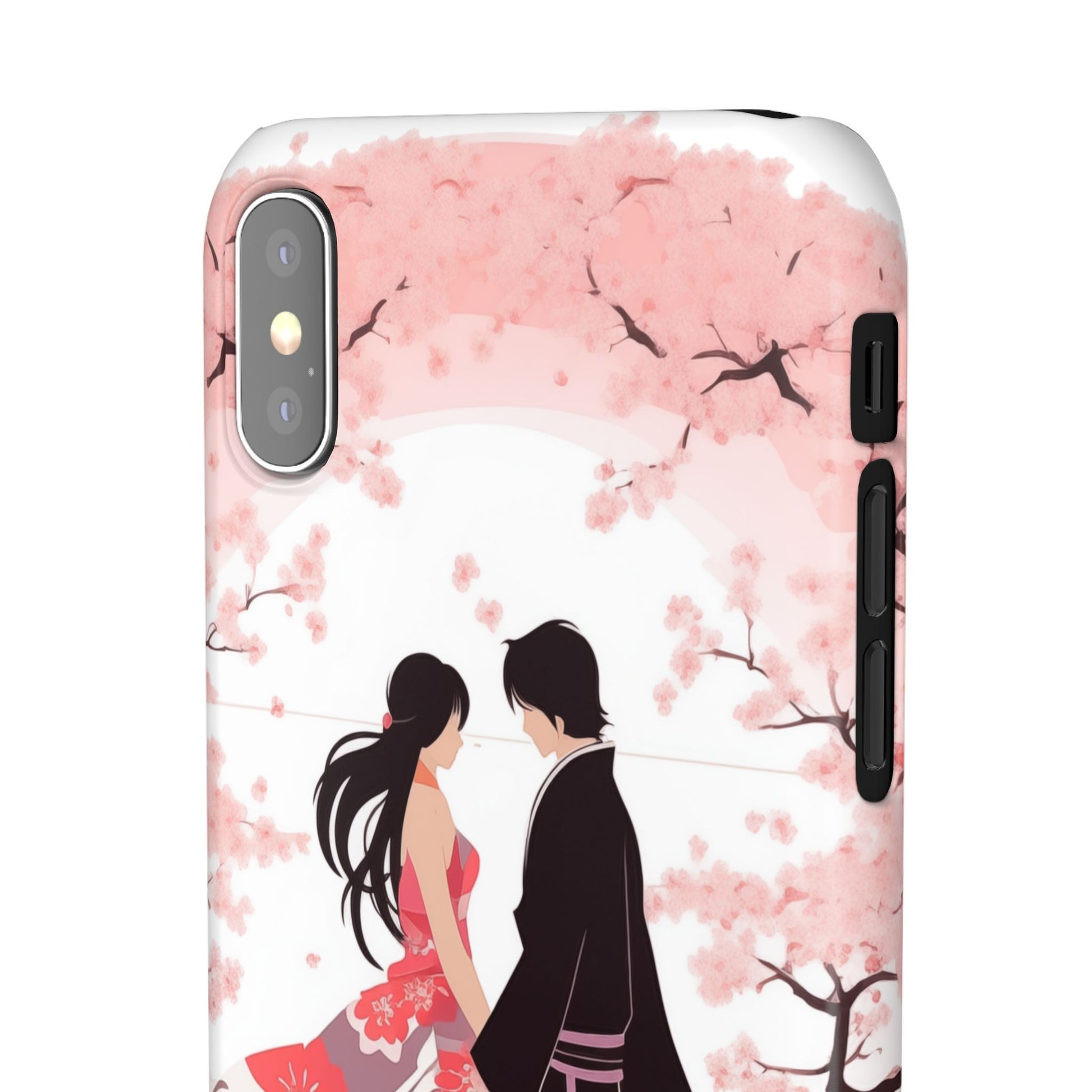 Immerse in the romantic elegance of Japan with our 'Japanese Blossom Love Phone Case', a Valentine's Day special. This exquisite case features a beautifully illustrated cute couple in Japanese-style, tenderly placed under blossoming cherry trees. The vibrant and detailed artwork brings the magic of cherry blossoms, or 'sakura', to your phone, symbolizing love and renewal. Designed to protect your device while adding a touch of artistic charm, this case combines functionality with beauty. Its durable material ensures your phone stays safe from daily wear and tear, while the slim profile maintains its sleek appearance. Perfect for those who appreciate the delicate allure of Japanese aesthetics and the spirit of Valentine's Day, this phone case is a wonderful blend of kawaii culture and timeless romance."