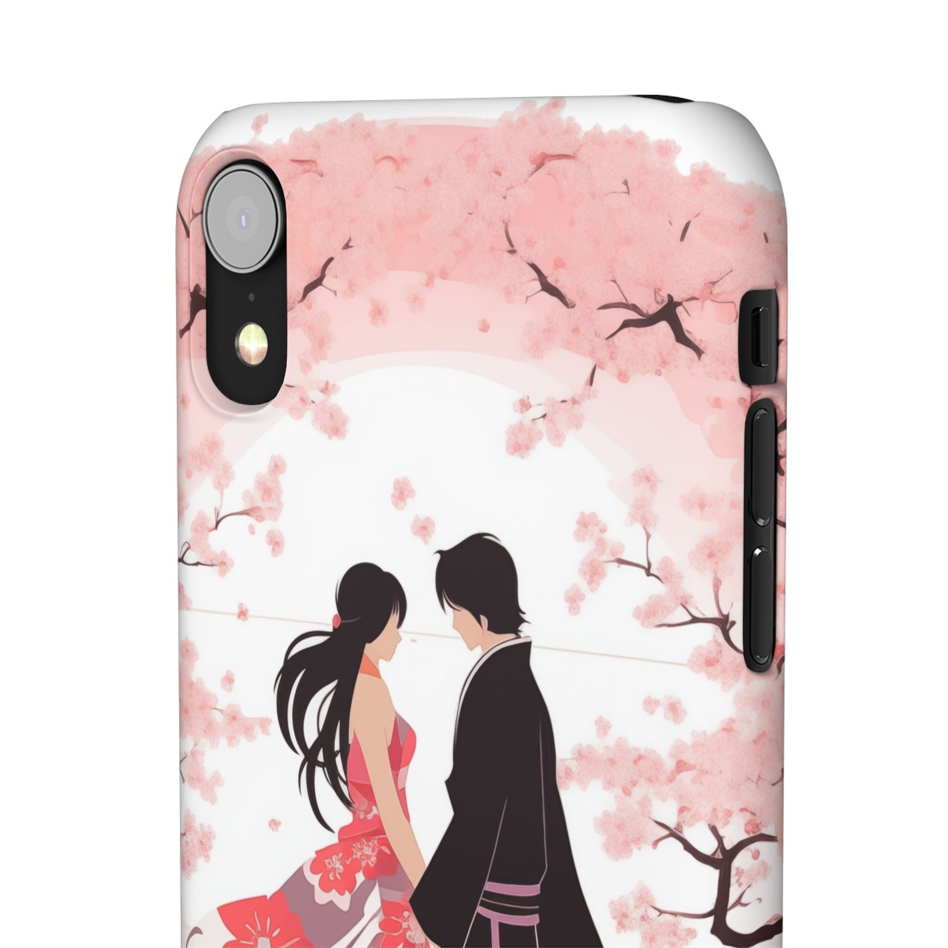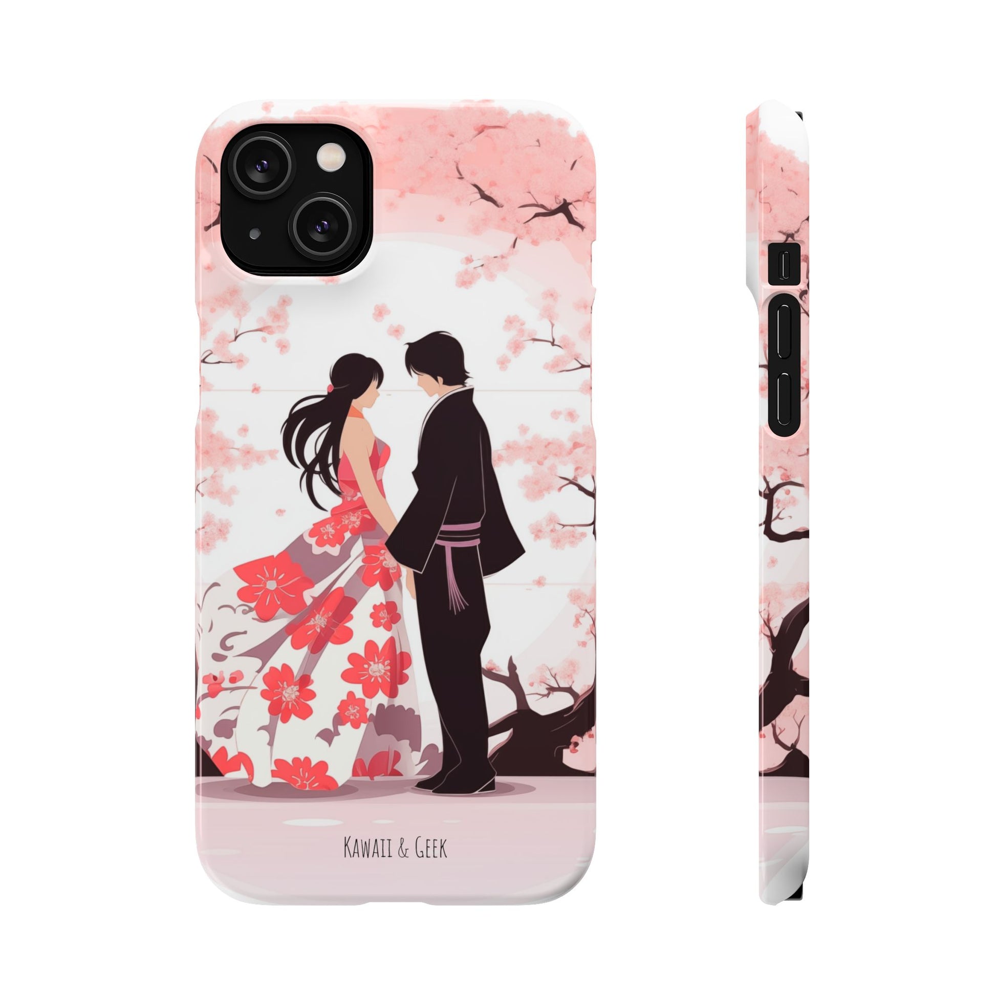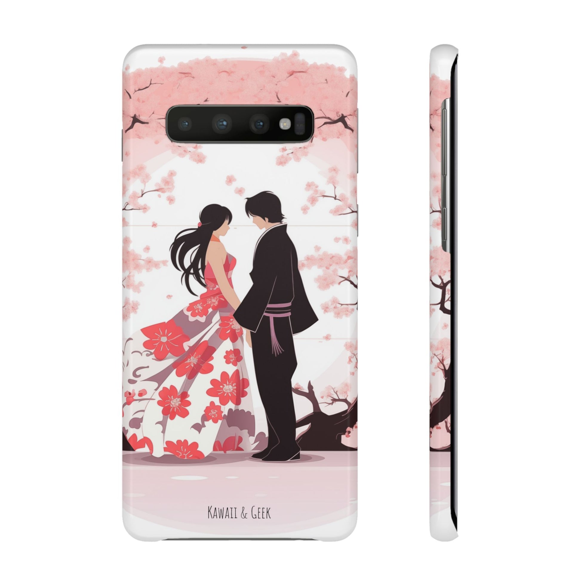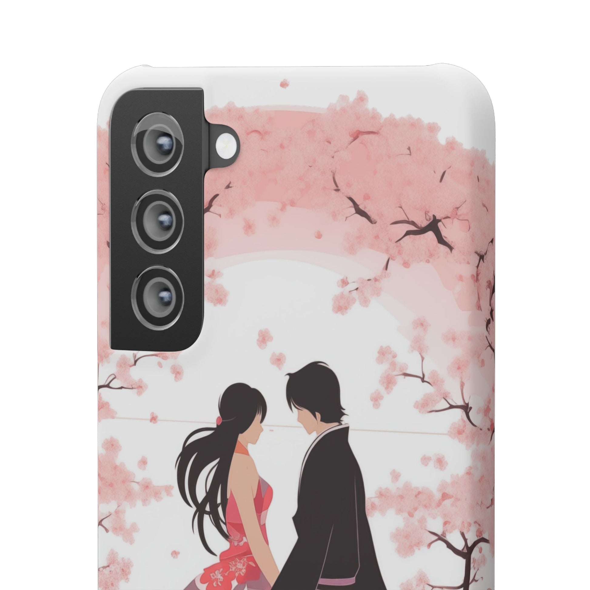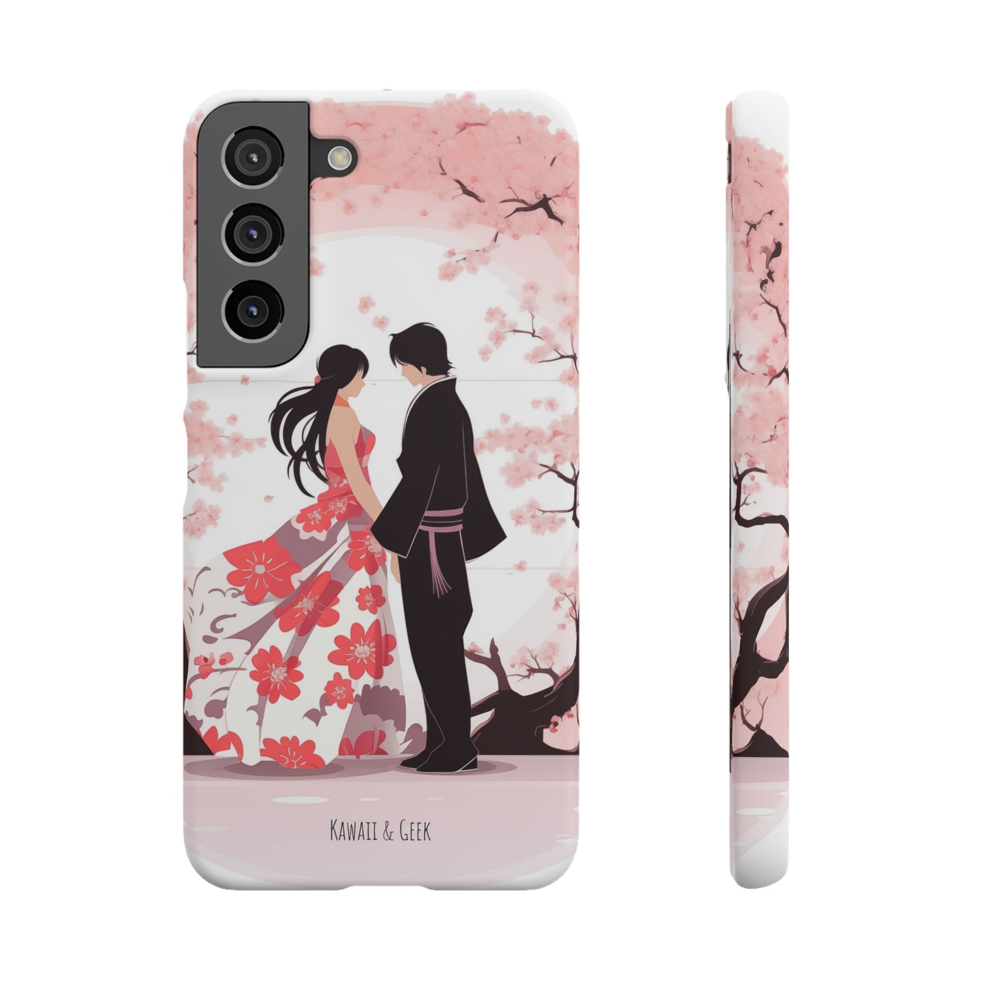 Immerse in the romantic elegance of Japan with our 'Japanese Blossom Love Phone Case', a Valentine's Day special. This exquisite case features a beautifully illustrated cute couple in Japanese-style, tenderly placed under blossoming cherry trees. The vibrant and detailed artwork brings the magic of cherry blossoms, or 'sakura', to your phone, symbolizing love and renewal. Designed to protect your device while adding a touch of artistic charm, this case combines functionality with beauty. Its durable material ensures your phone stays safe from daily wear and tear, while the slim profile maintains its sleek appearance. Perfect for those who appreciate the delicate allure of Japanese aesthetics and the spirit of Valentine's Day, this phone case is a wonderful blend of kawaii culture and timeless romance."