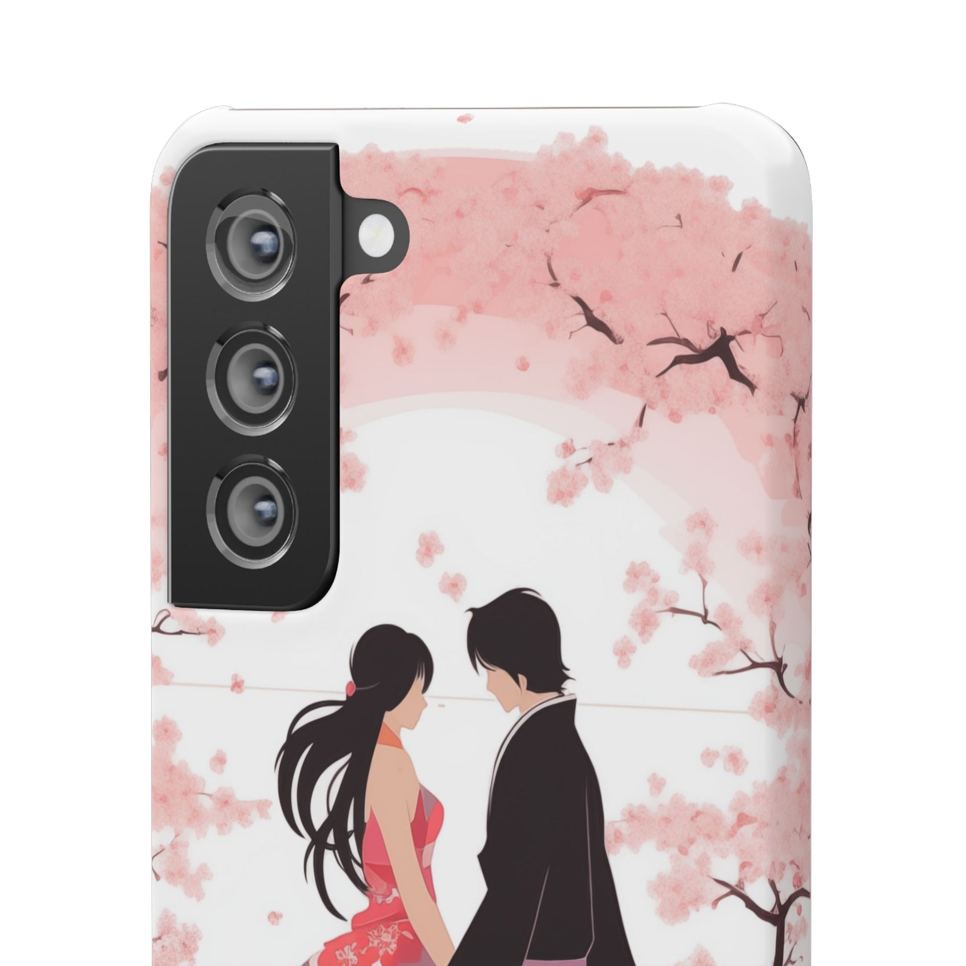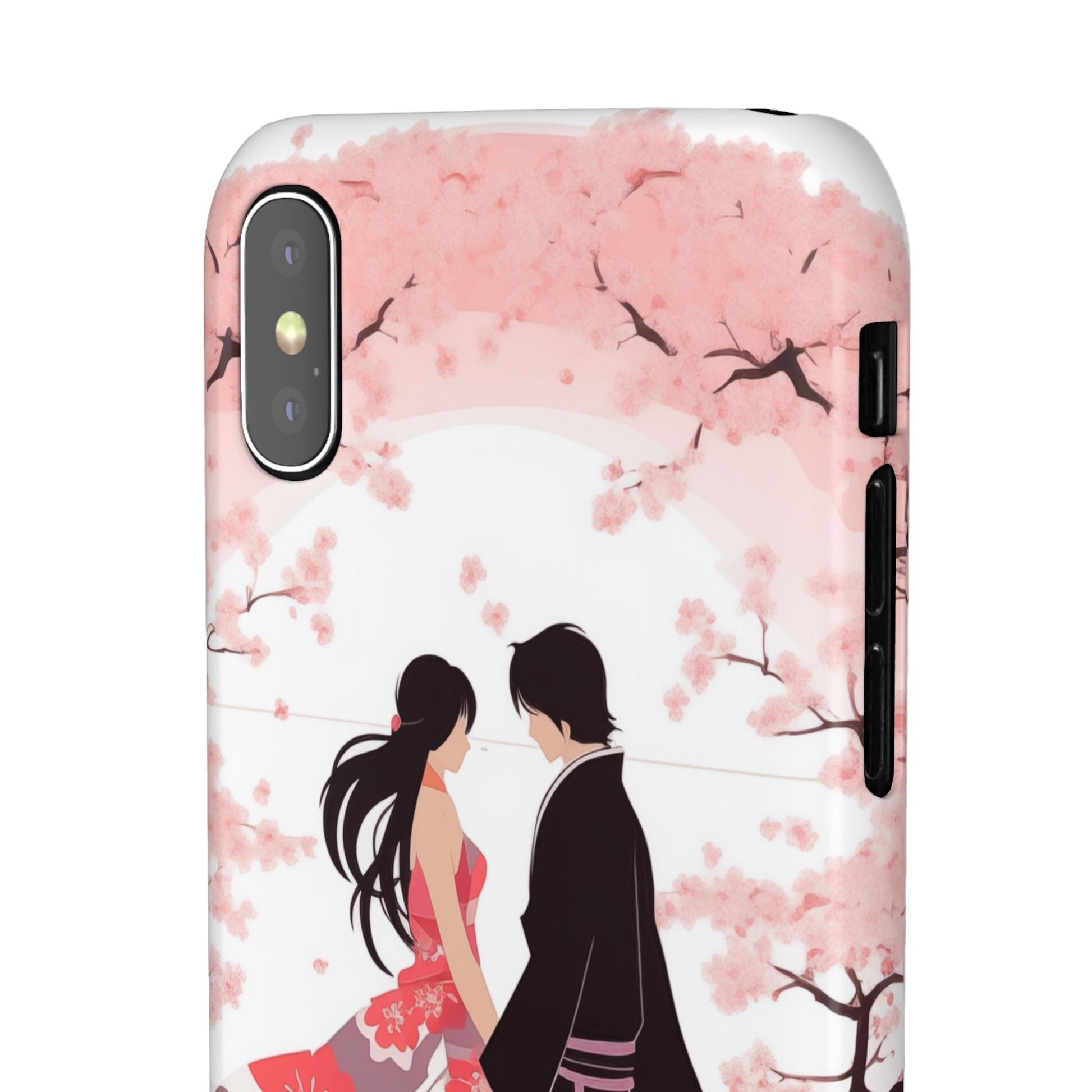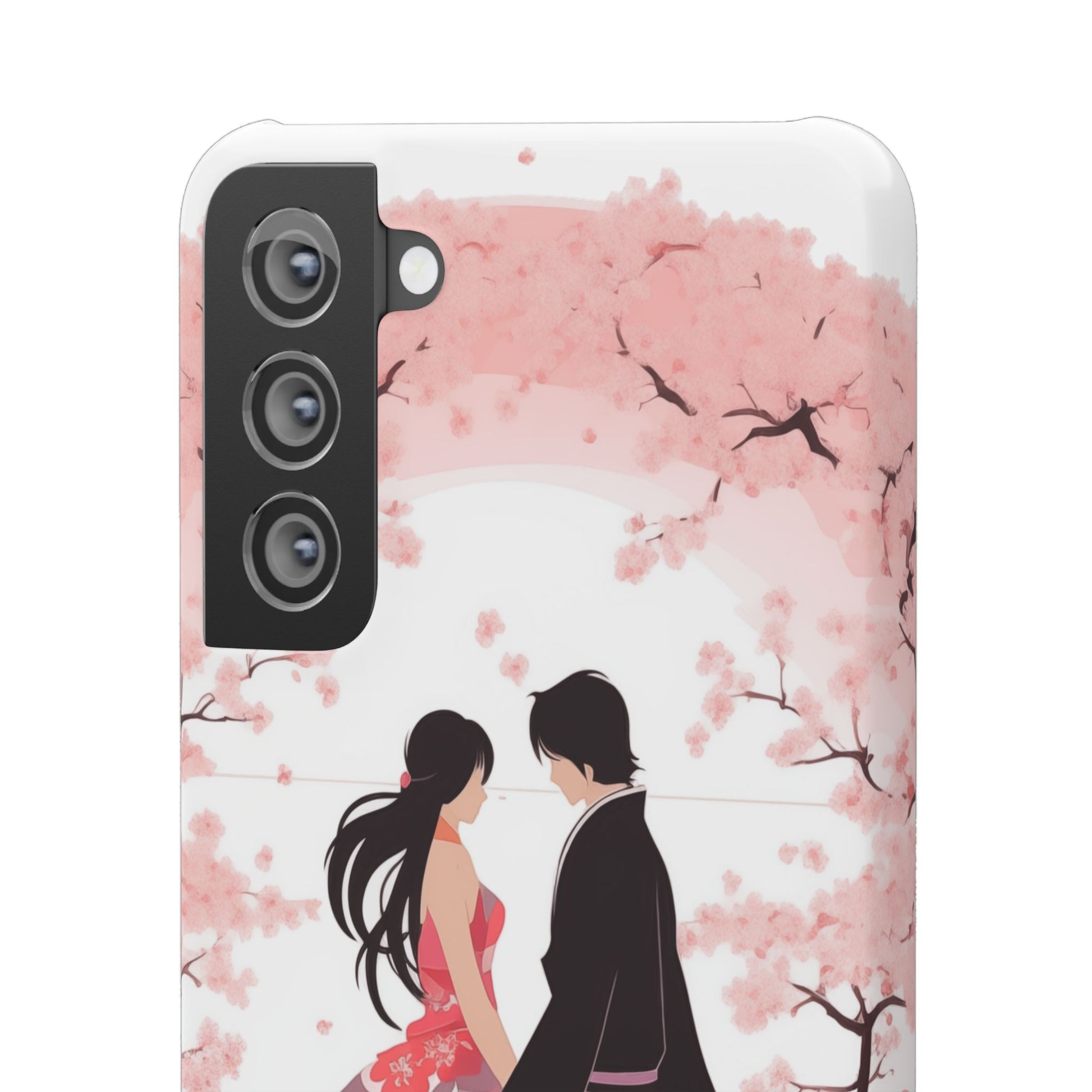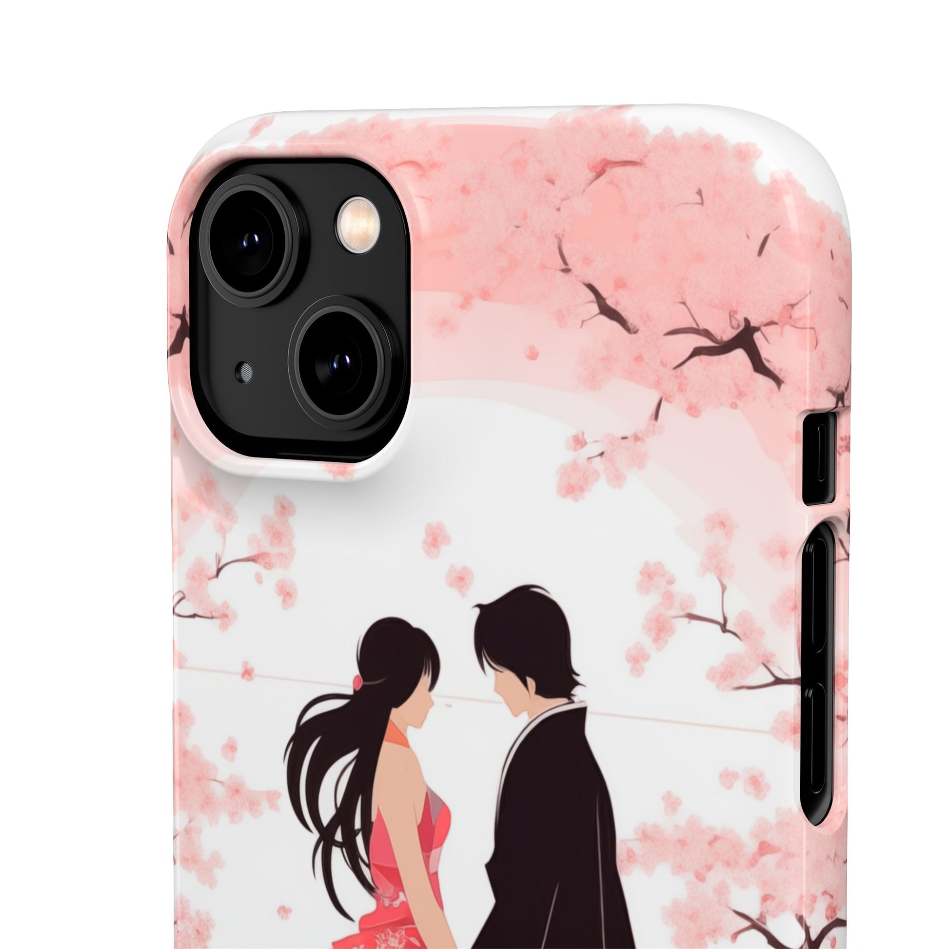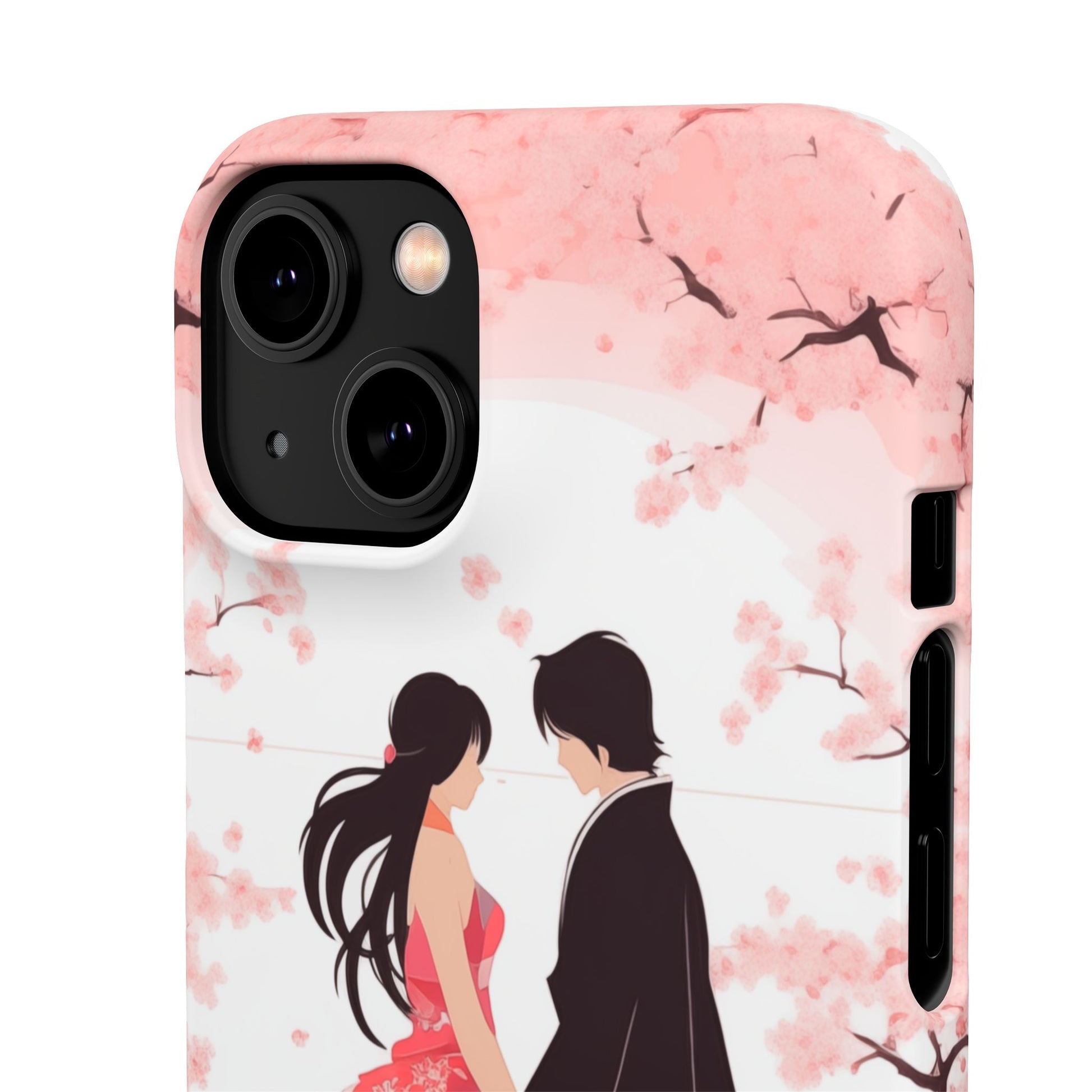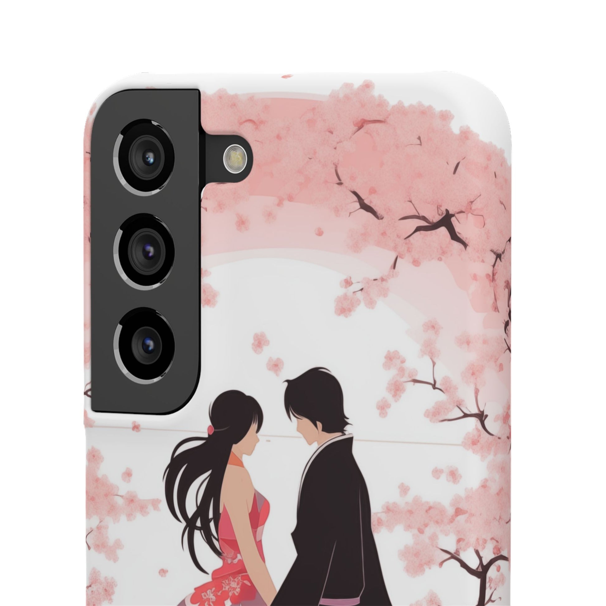 Immerse in the romantic elegance of Japan with our 'Japanese Blossom Love Phone Case', a Valentine's Day special. This exquisite case features a beautifully illustrated cute couple in Japanese-style, tenderly placed under blossoming cherry trees. The vibrant and detailed artwork brings the magic of cherry blossoms, or 'sakura', to your phone, symbolizing love and renewal. Designed to protect your device while adding a touch of artistic charm, this case combines functionality with beauty. Its durable material ensures your phone stays safe from daily wear and tear, while the slim profile maintains its sleek appearance. Perfect for those who appreciate the delicate allure of Japanese aesthetics and the spirit of Valentine's Day, this phone case is a wonderful blend of kawaii culture and timeless romance."